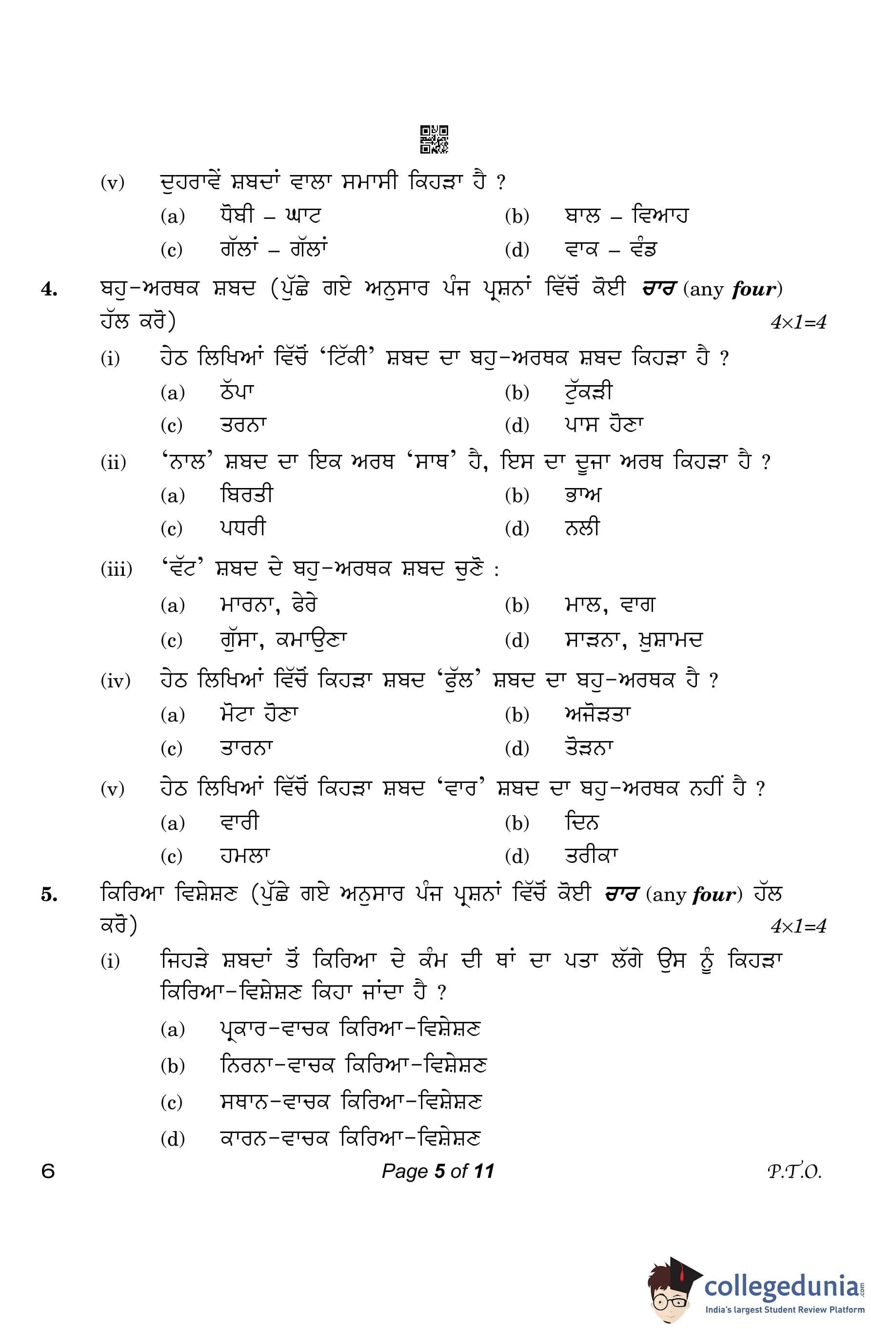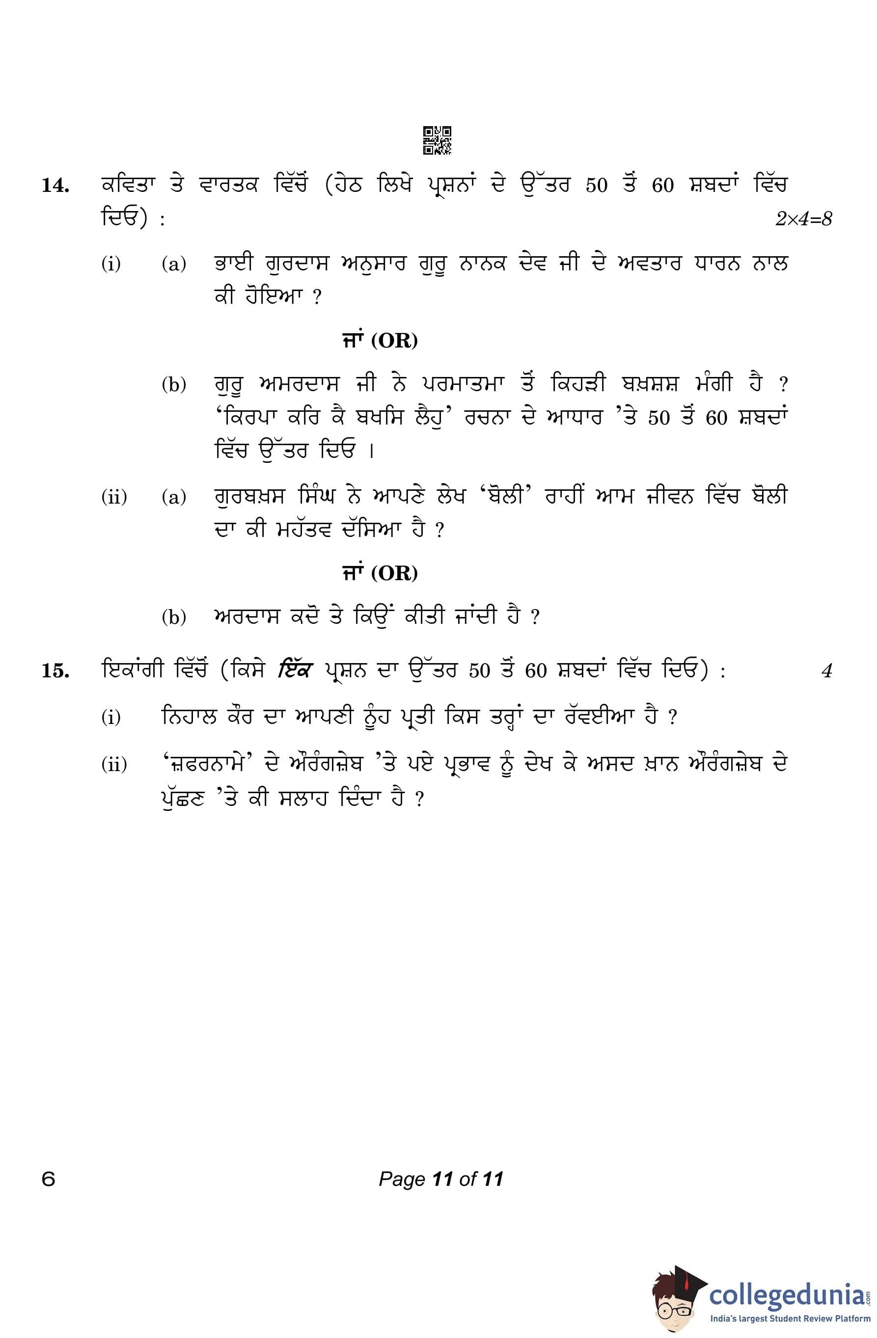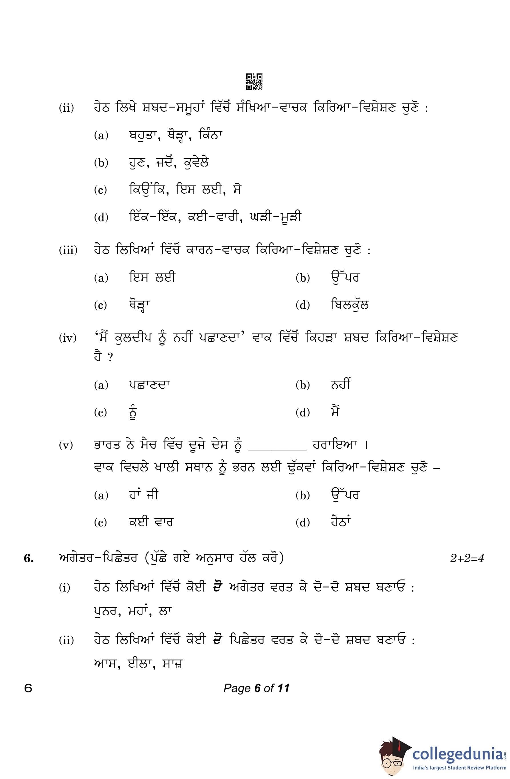 CBSE Class 10 Punjabi Question Paper 2023 (Set 4- 6) with Answer Key pdf is available for download here. The exam was conducted by Central Board of Secondary Education on March 1, 2023. The question paper comprised a total of 15 questions divided among 4 sections.