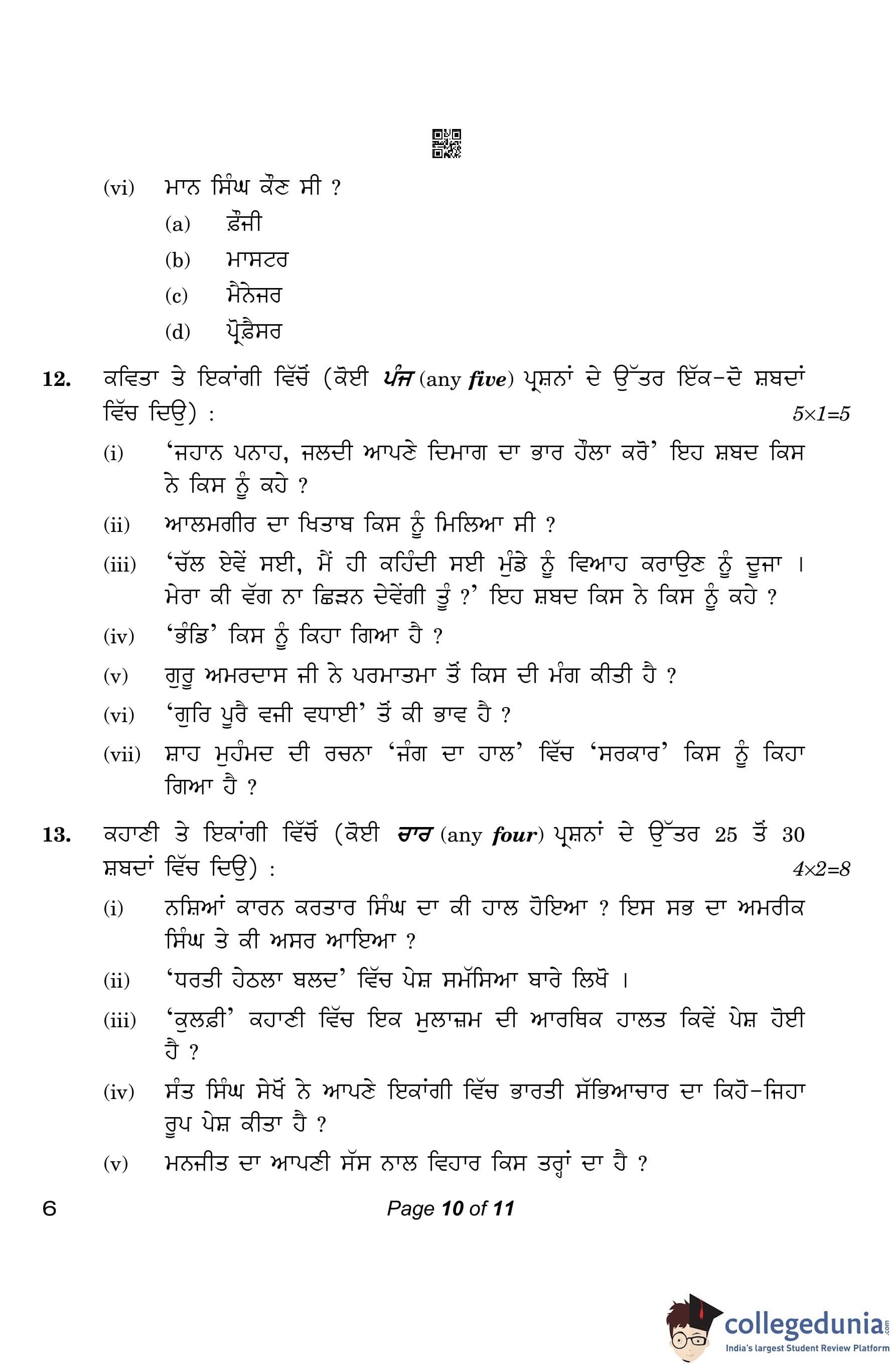 | CBSE Class 10 Punjabi Question Paper 2023 PDF | CBSE Class 10 Punjabi Answer Key 2023 PDF | Detailed Solutions |