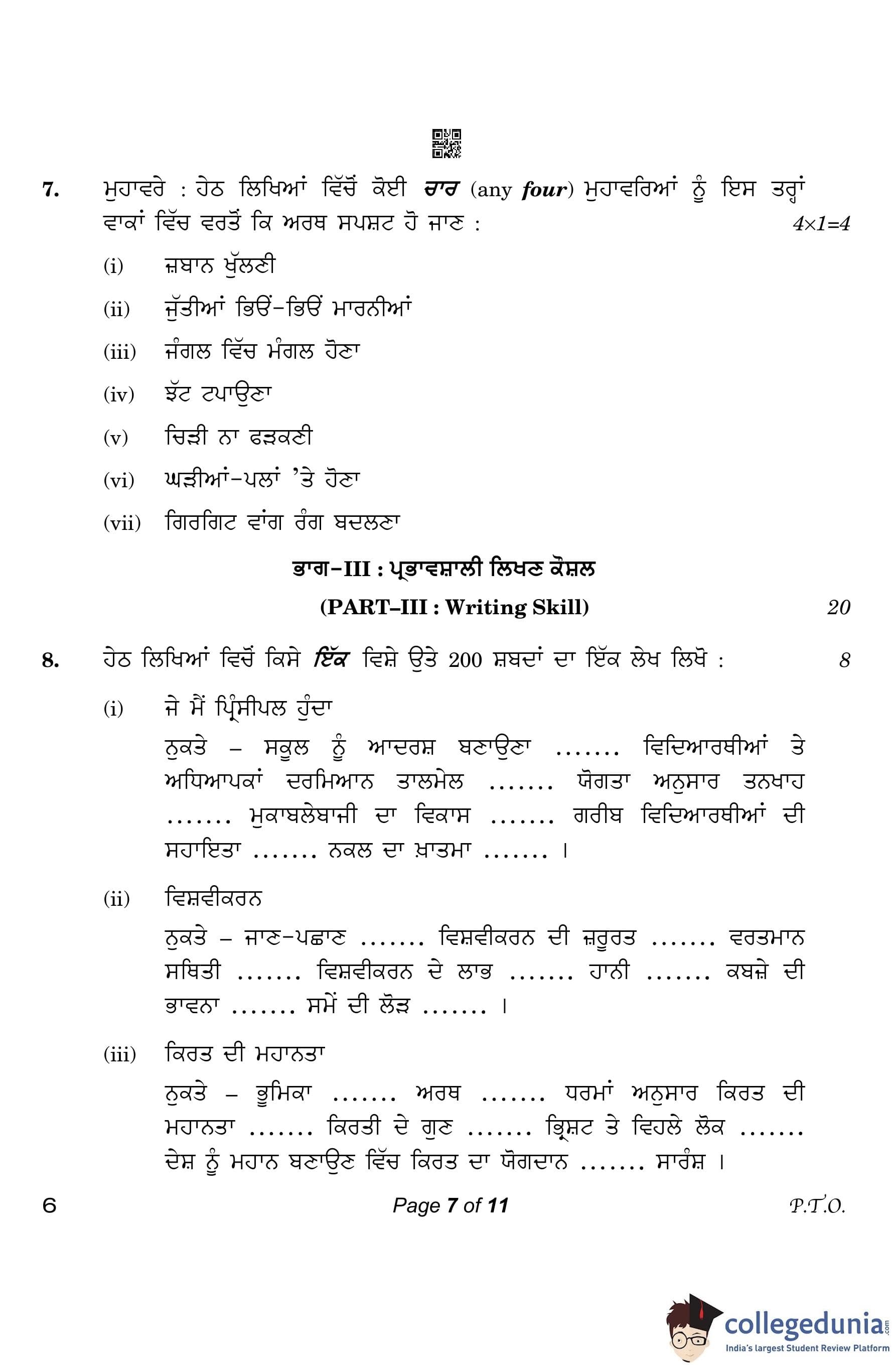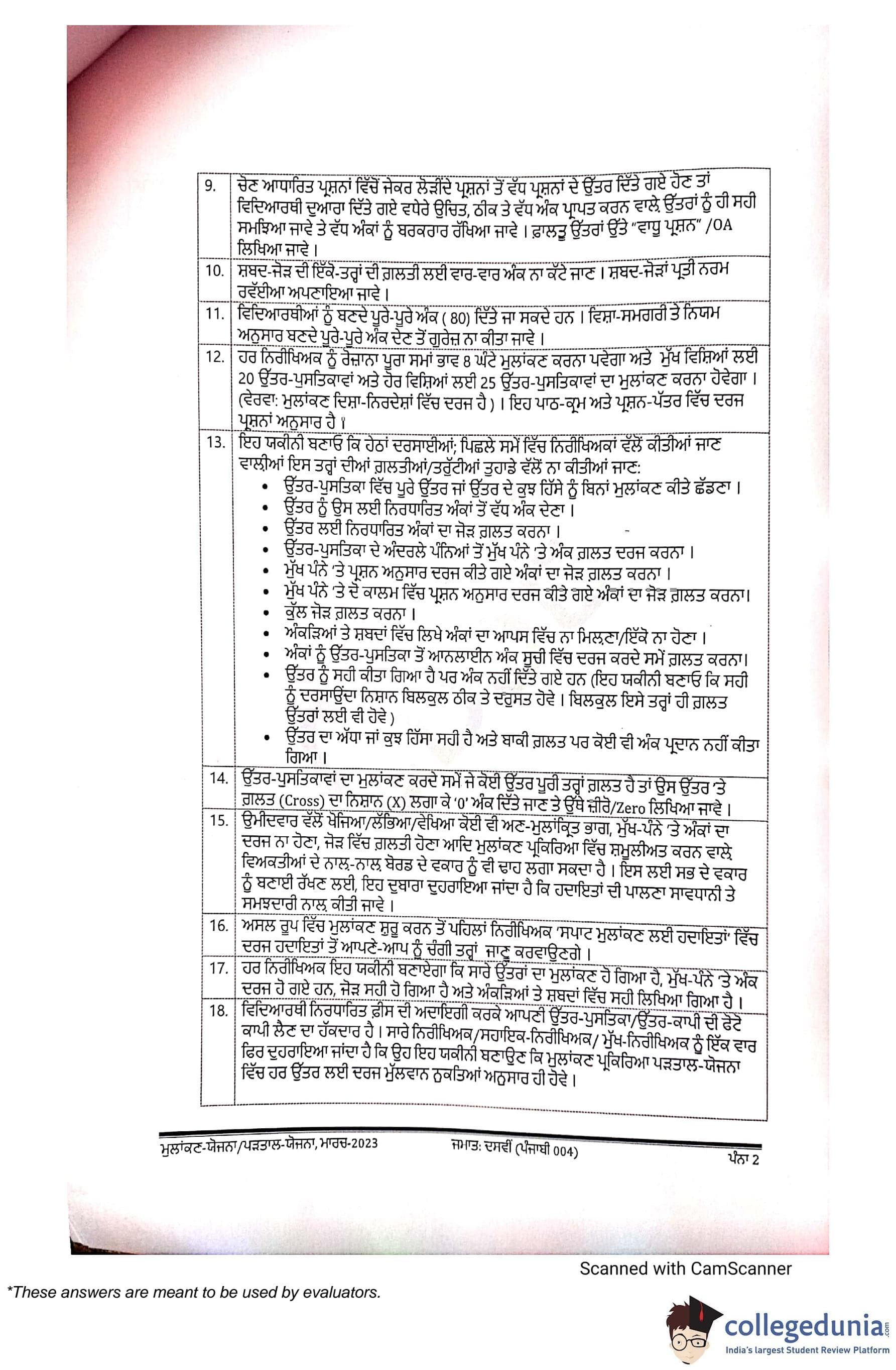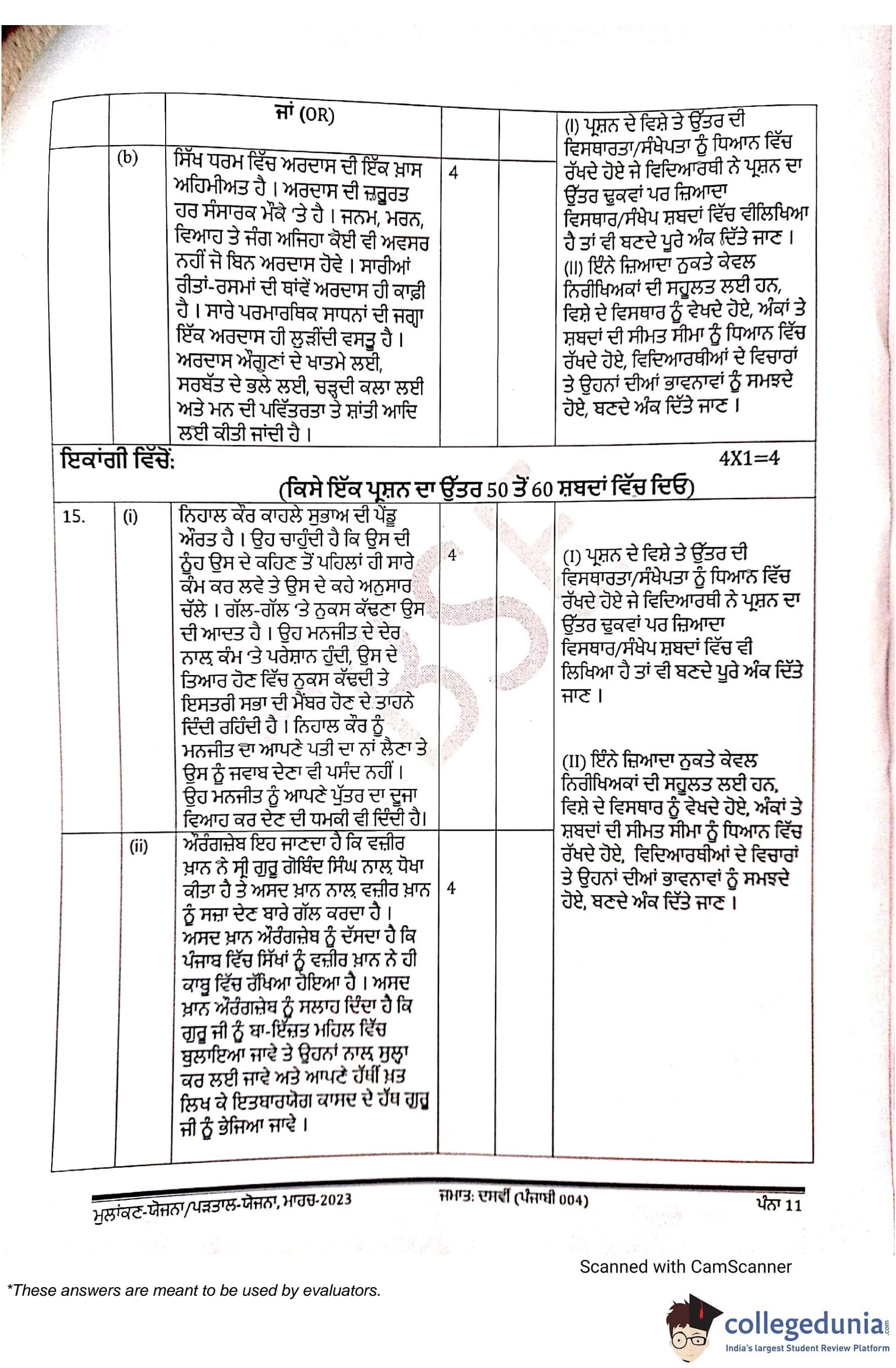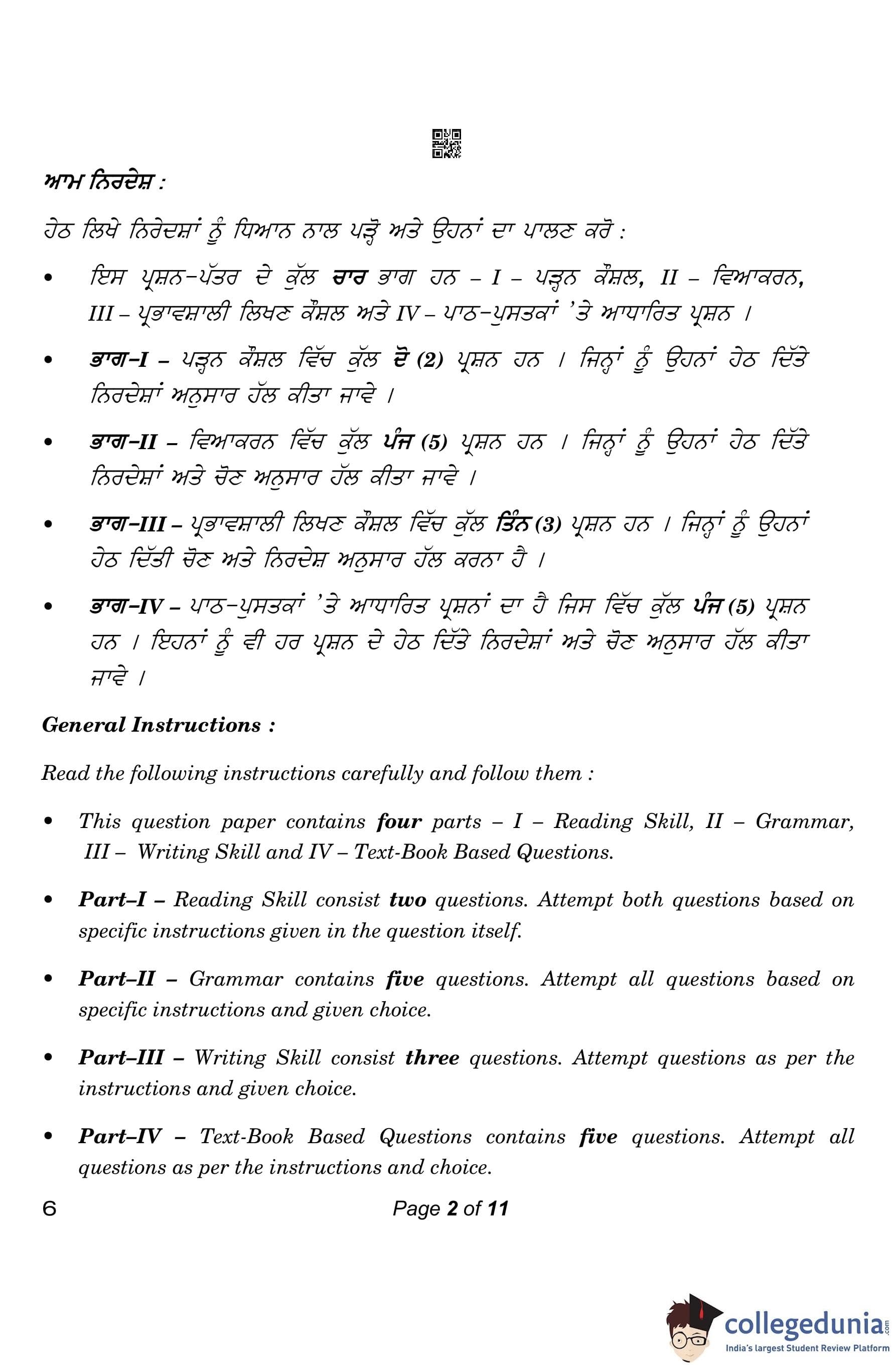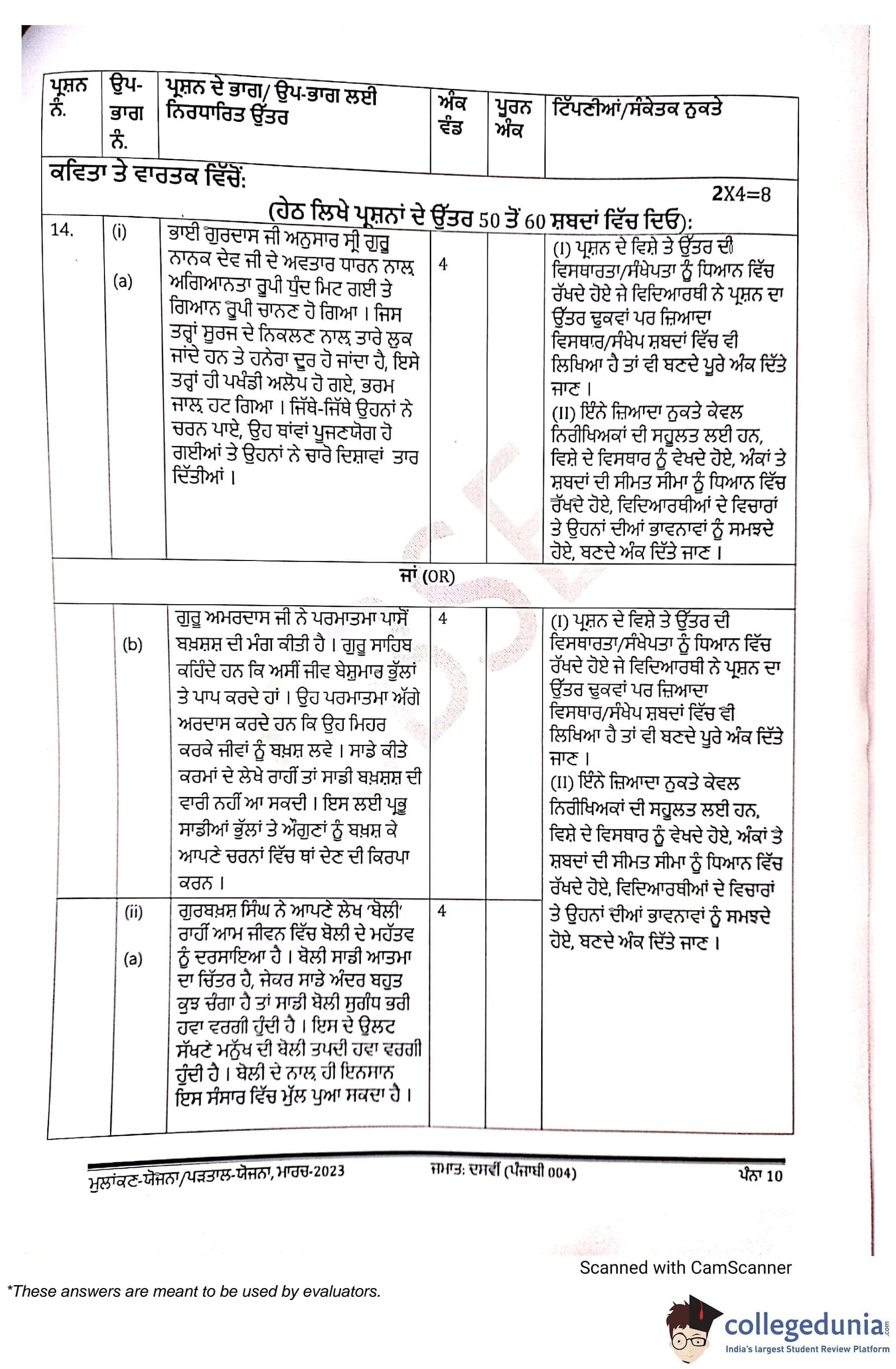 CBSE Class 10 Punjabi Question Paper 2023 with Answer Key