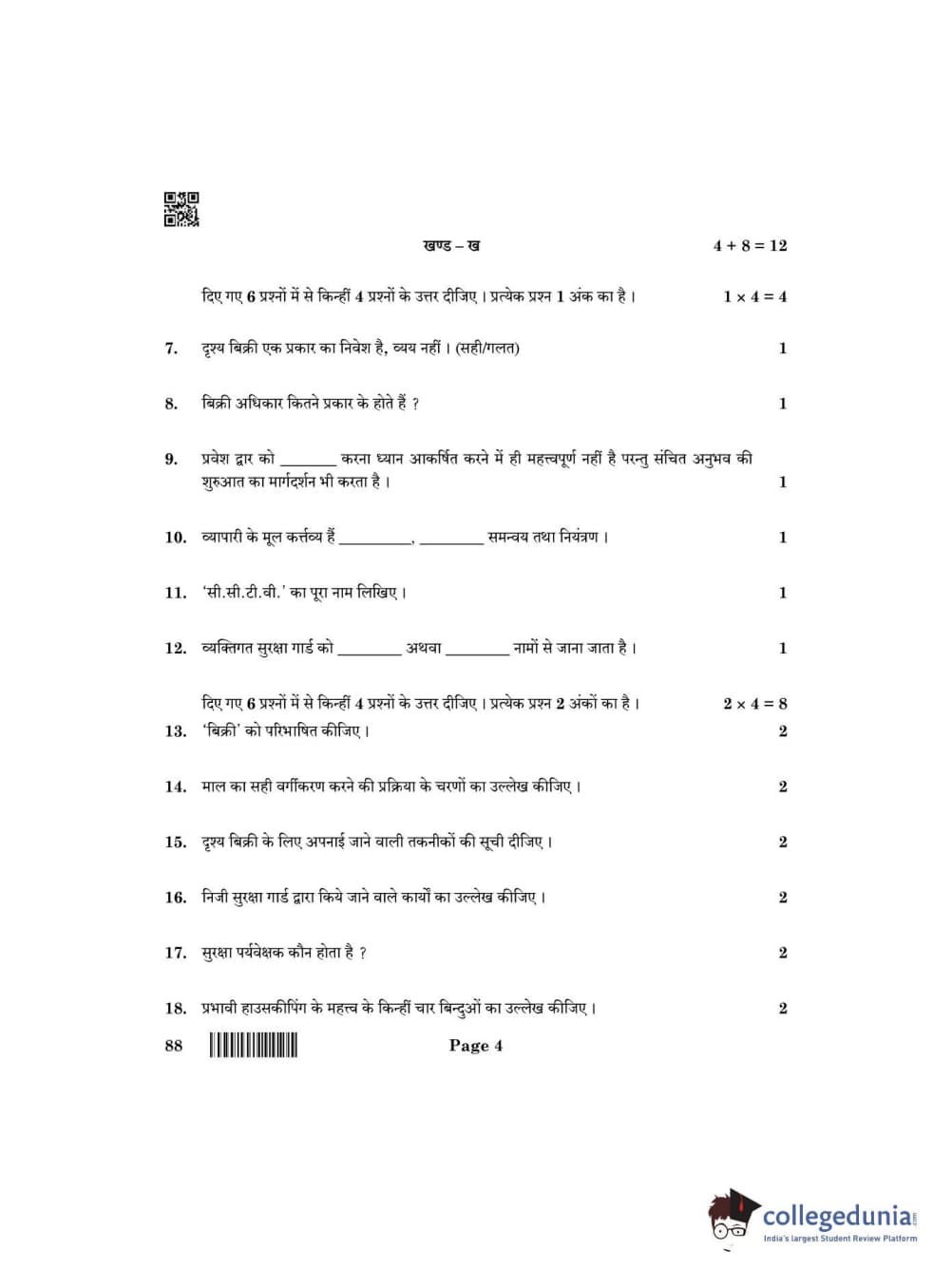 CBSE Class 10 Retail Question Paper 2022 with Answer Key Set 4 is available for download. The exam was conducted by the Central Board of Secondary Education on April 28, 2022 in the Morning Session 10:30 AM to 11:30 AM. The medium of paper was English & Hindi. The question paper comprised a total of 21 questions divided among 3 sections.