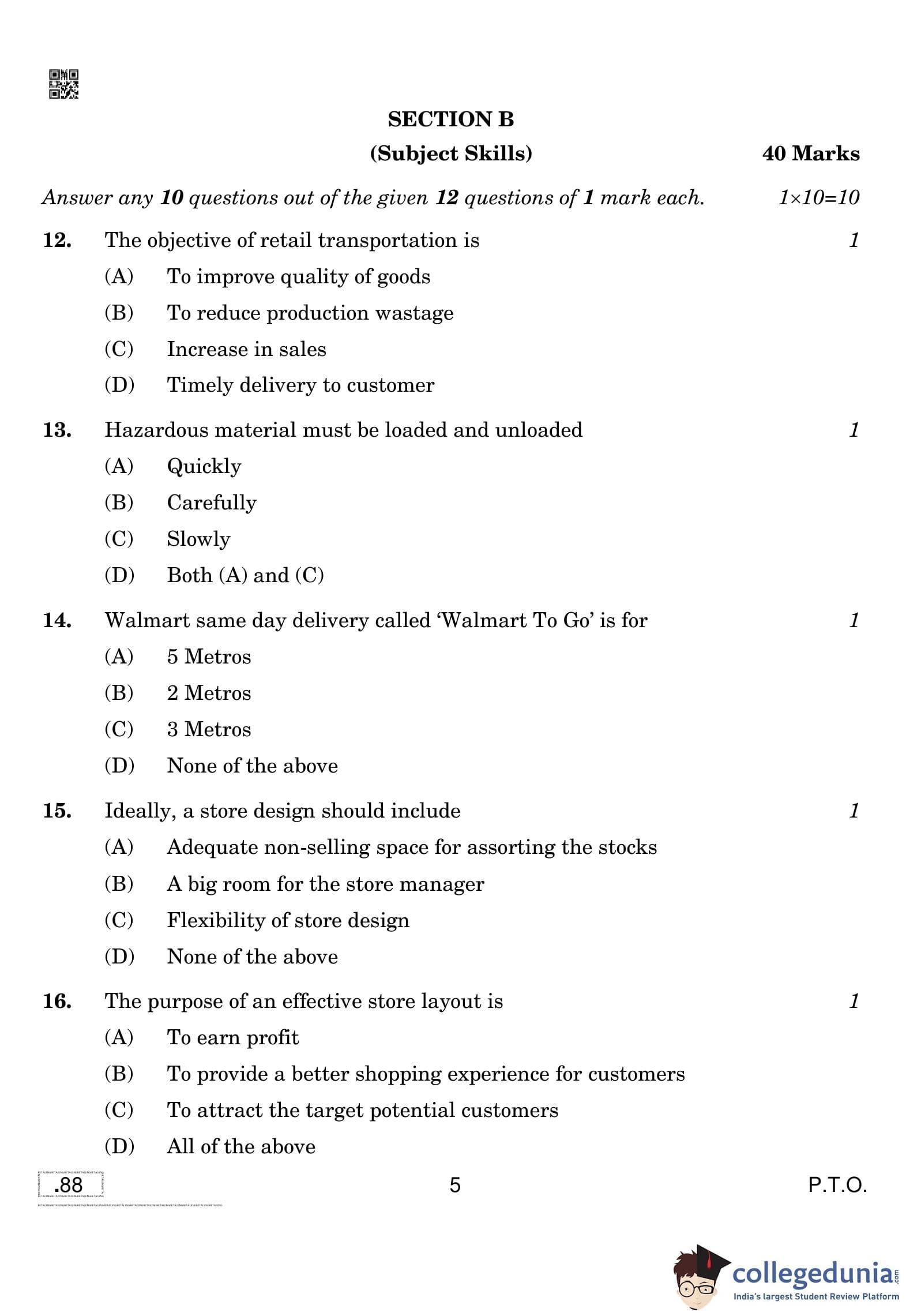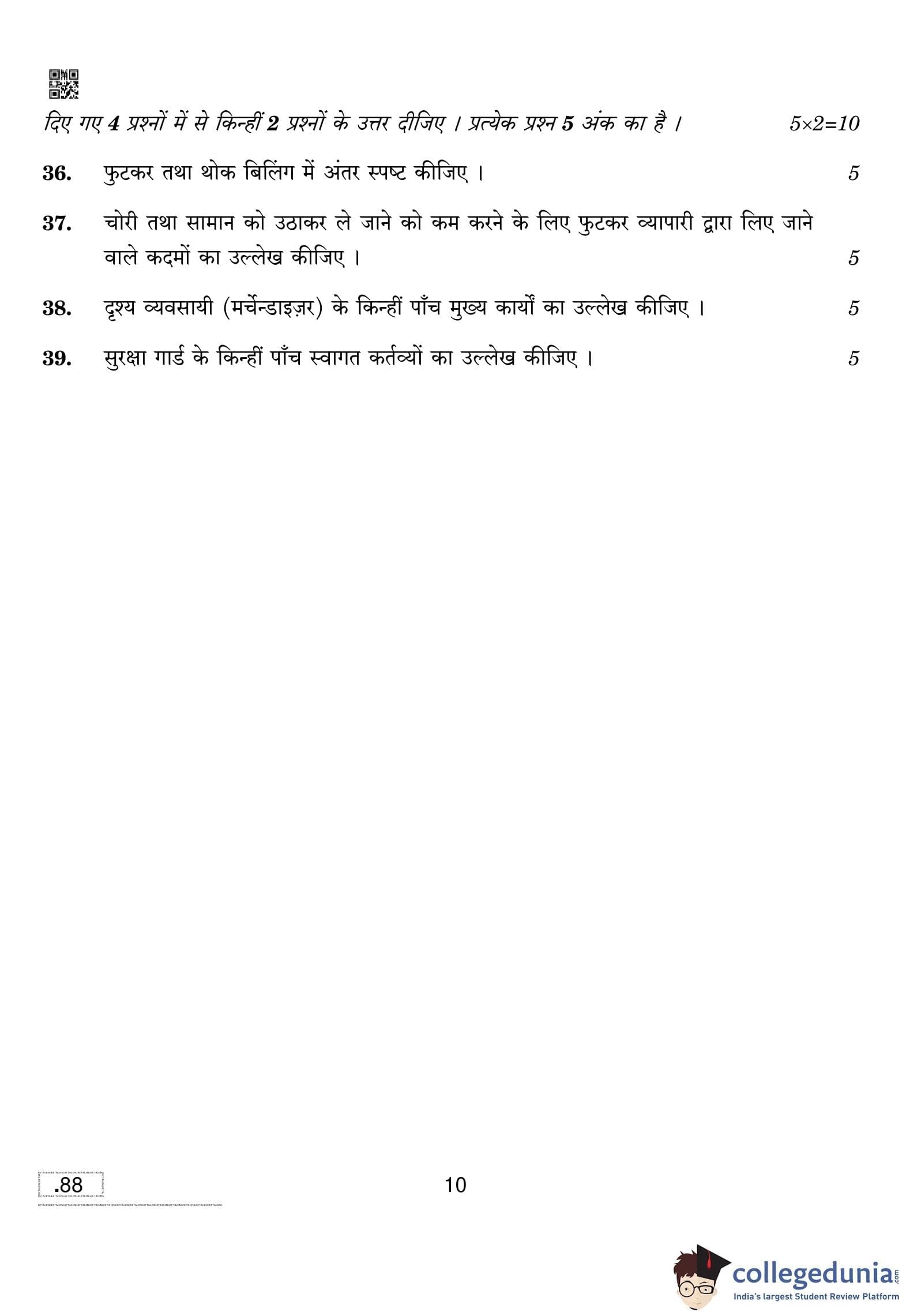 CBSE Class 10 Retailing Question Paper 2020 with Answer Key (February 15)