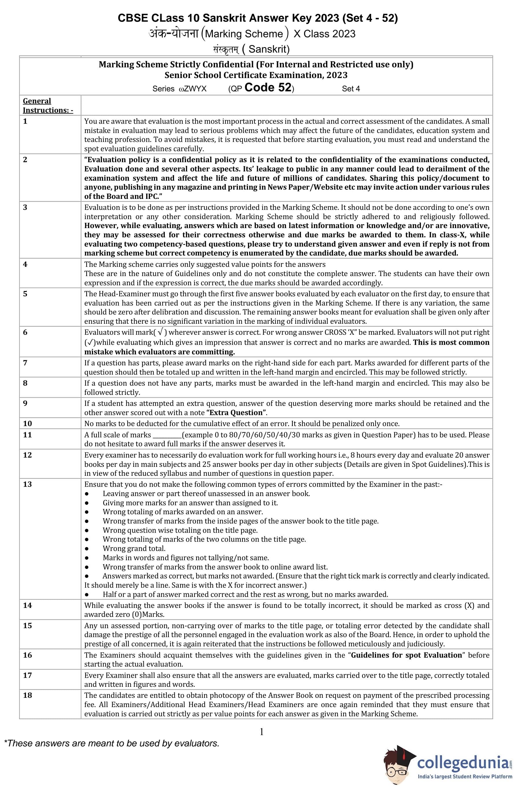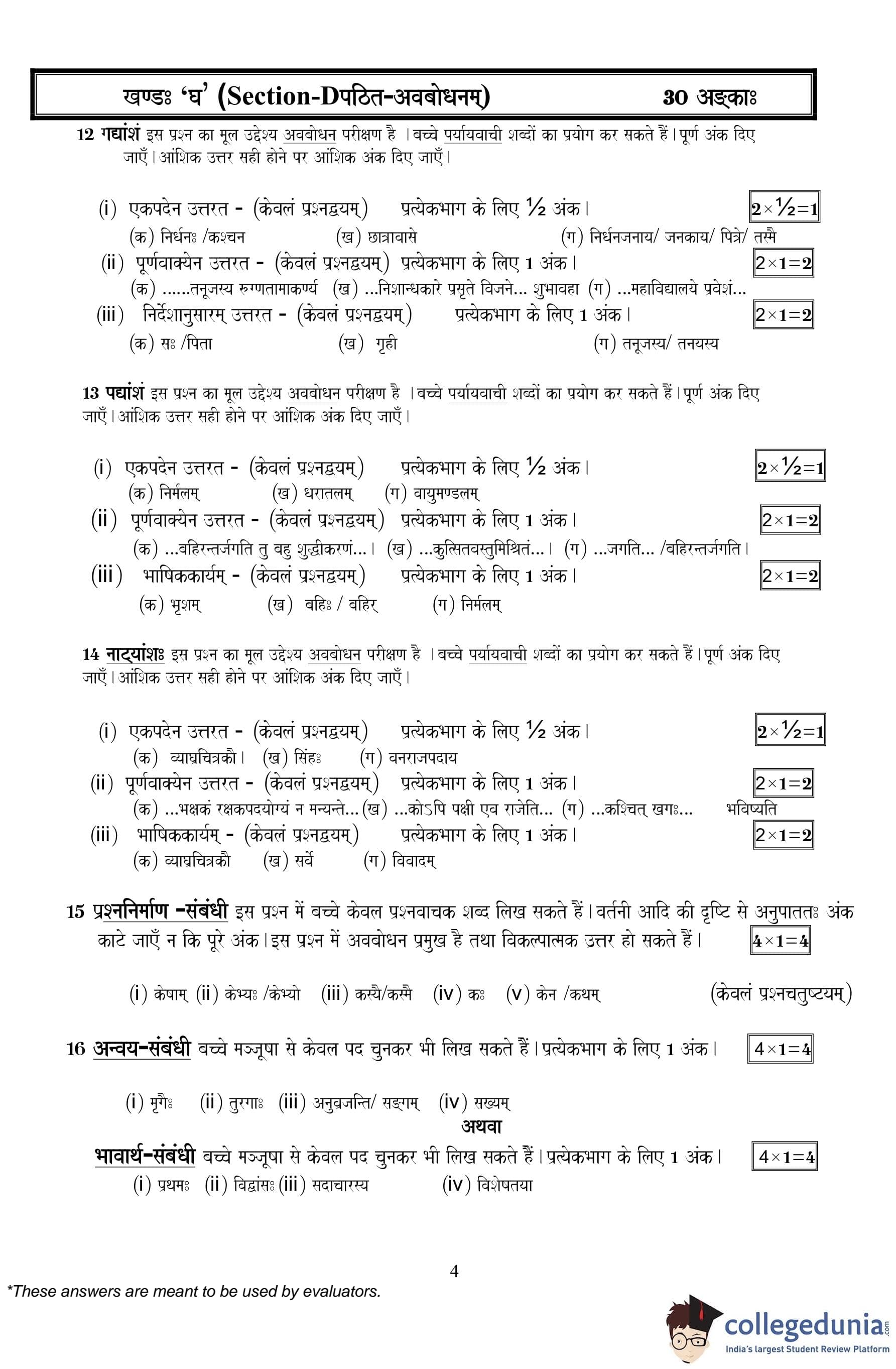 | CBSE Class 10 Sanskrit Question Paper 2023 PDF | CBSE Class 10 Sanskrit Answer Key 2023 PDF | Detailed Solutions |