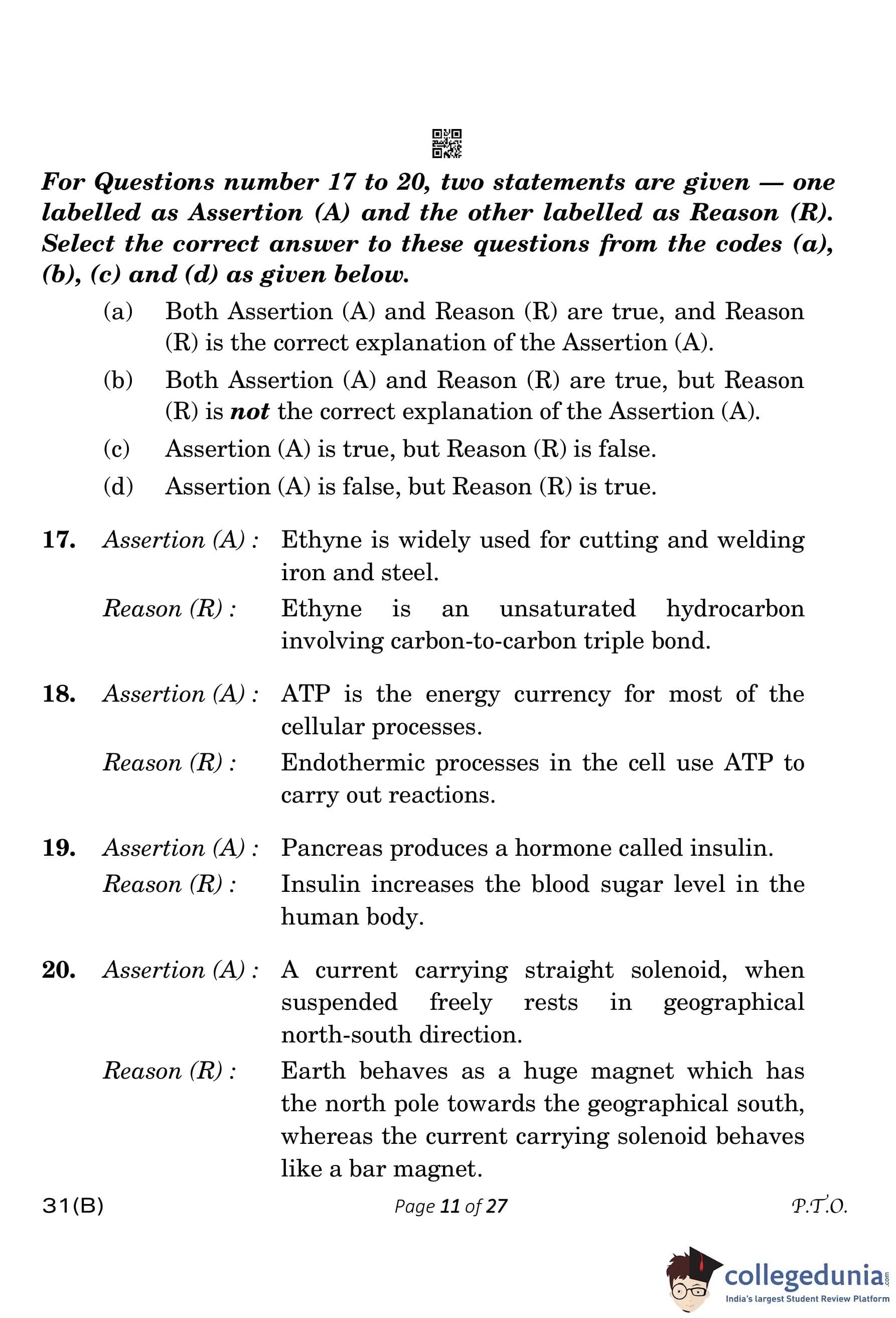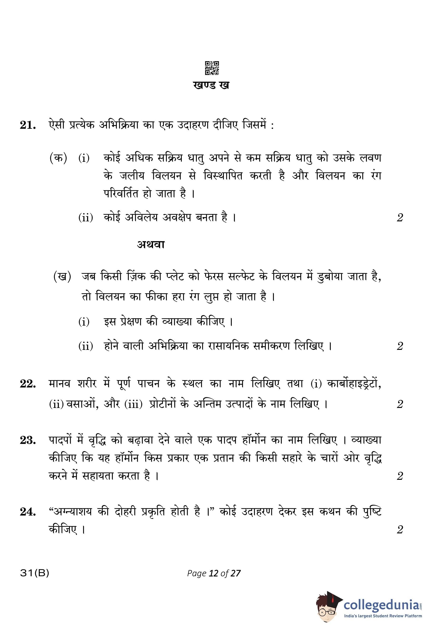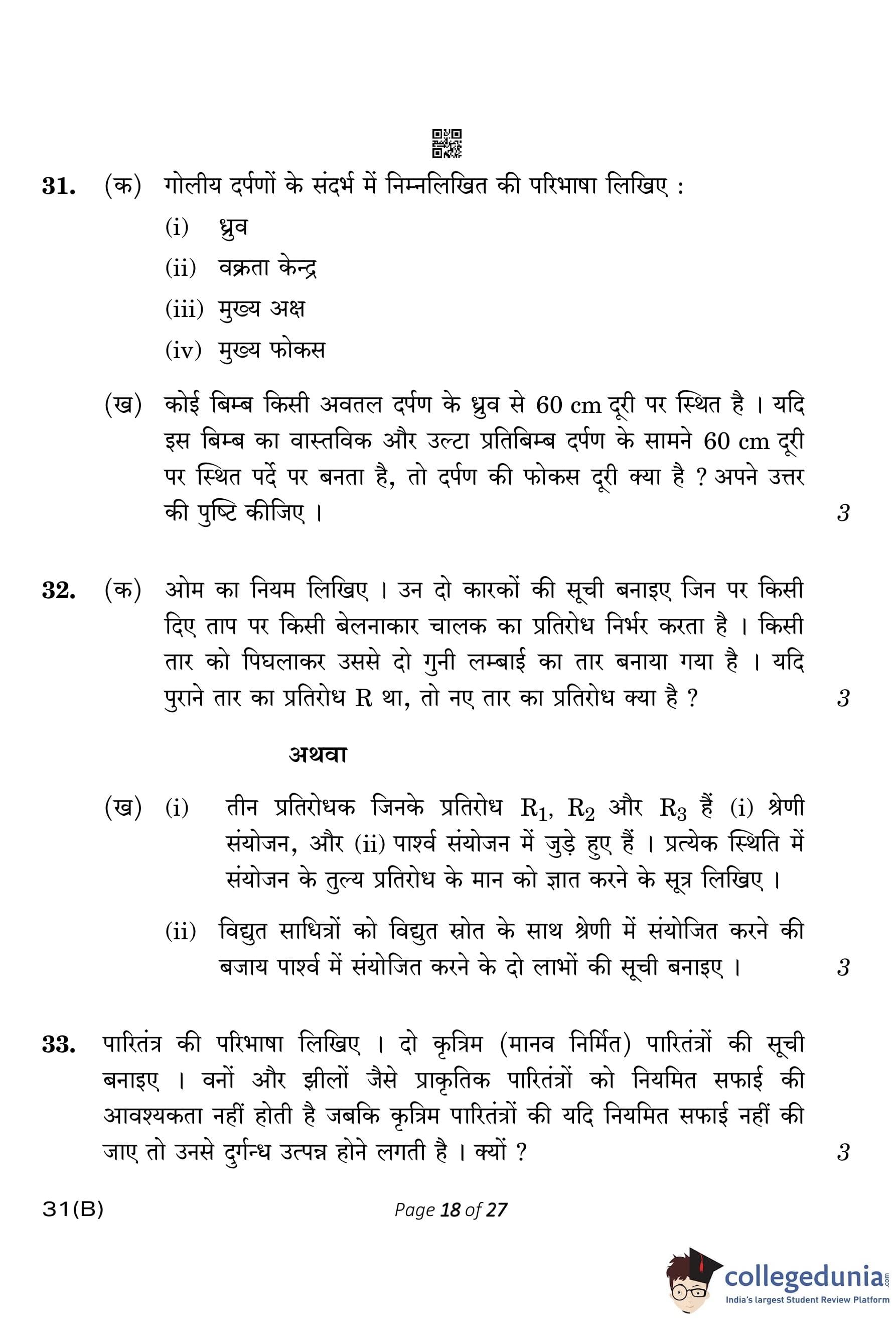CBSE Class 10 Science (Blind) Compartment Question Paper 2023 with Answer Key