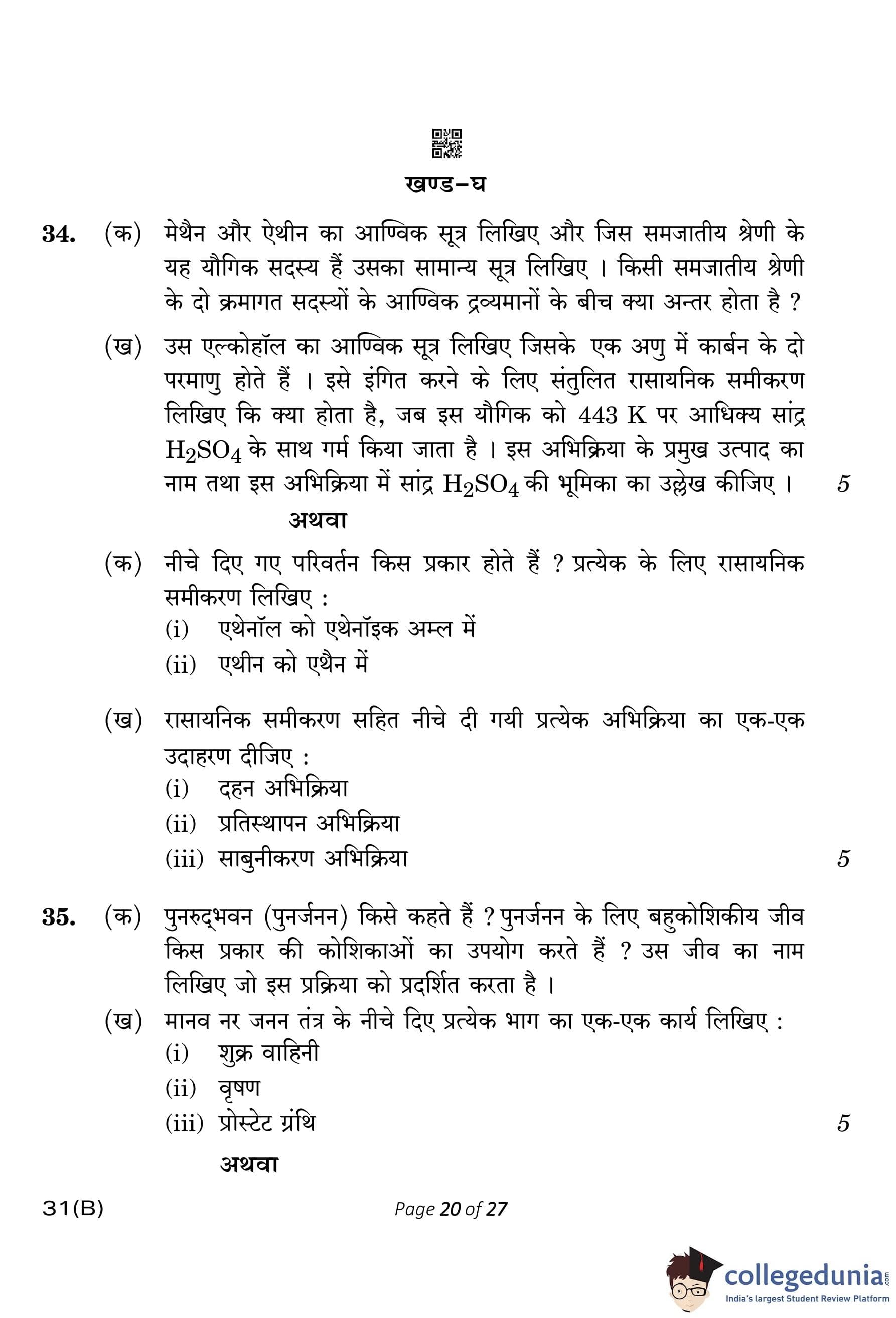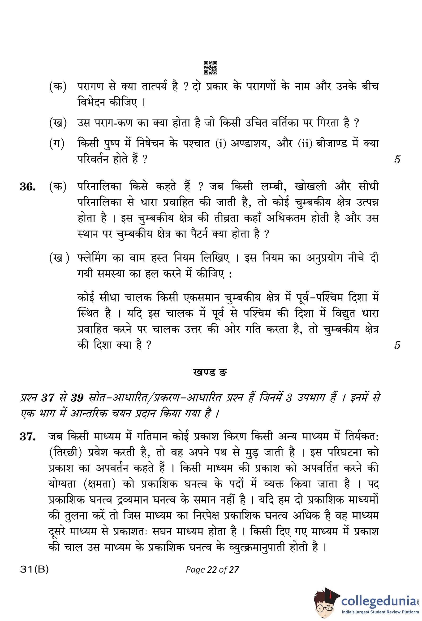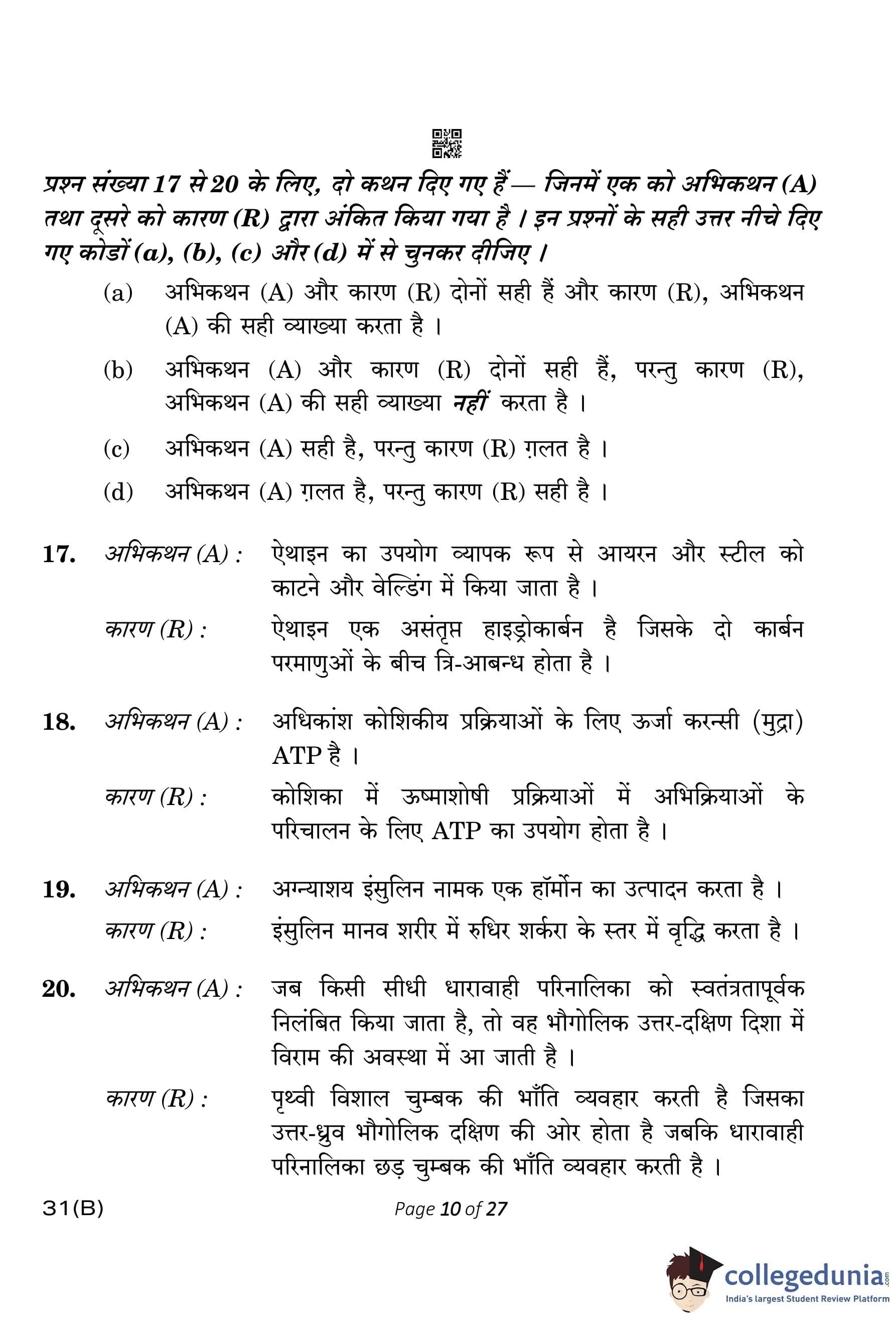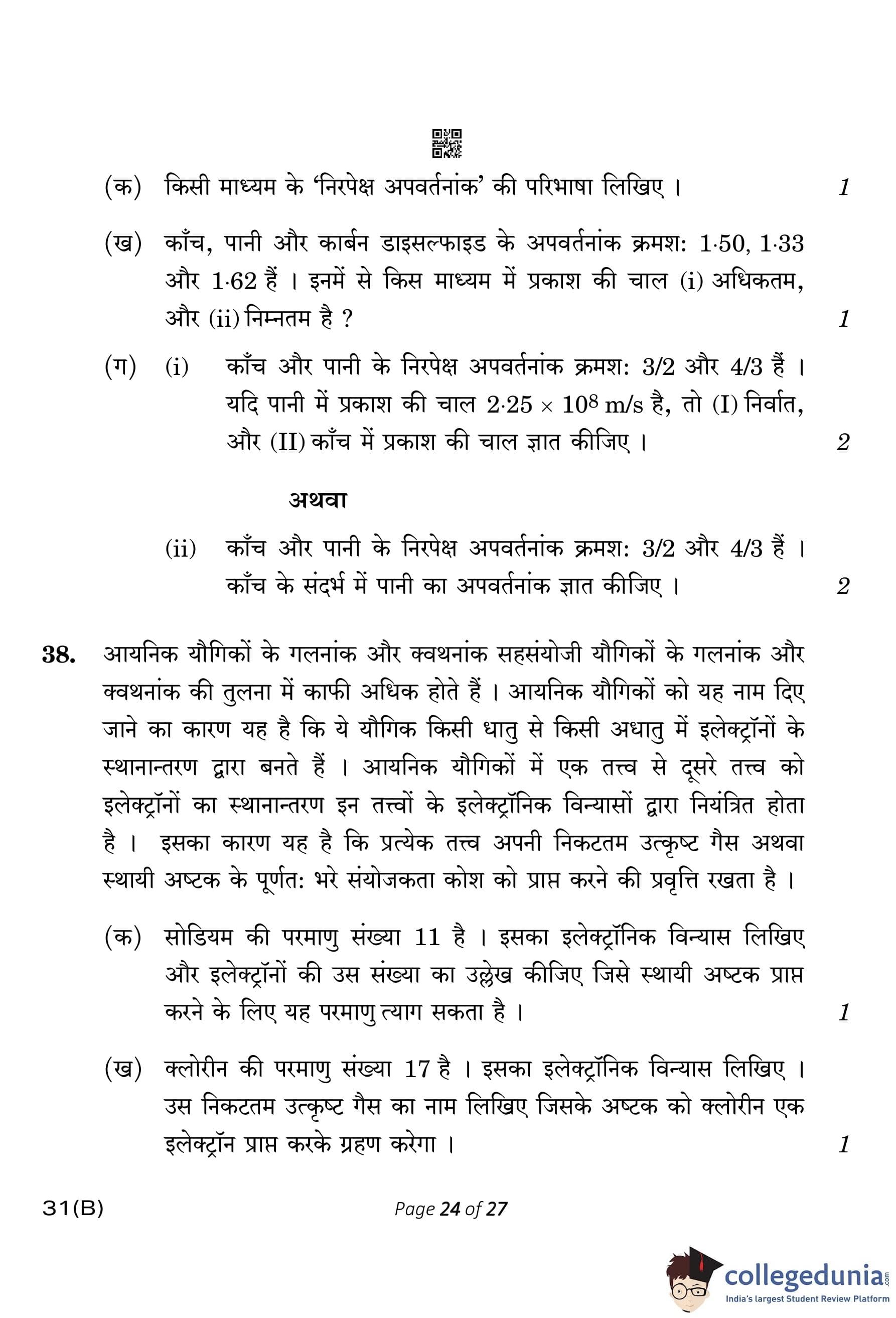 CBSE Class 10 Science (Blind) Compartment Question Paper 2023 with Answer Key