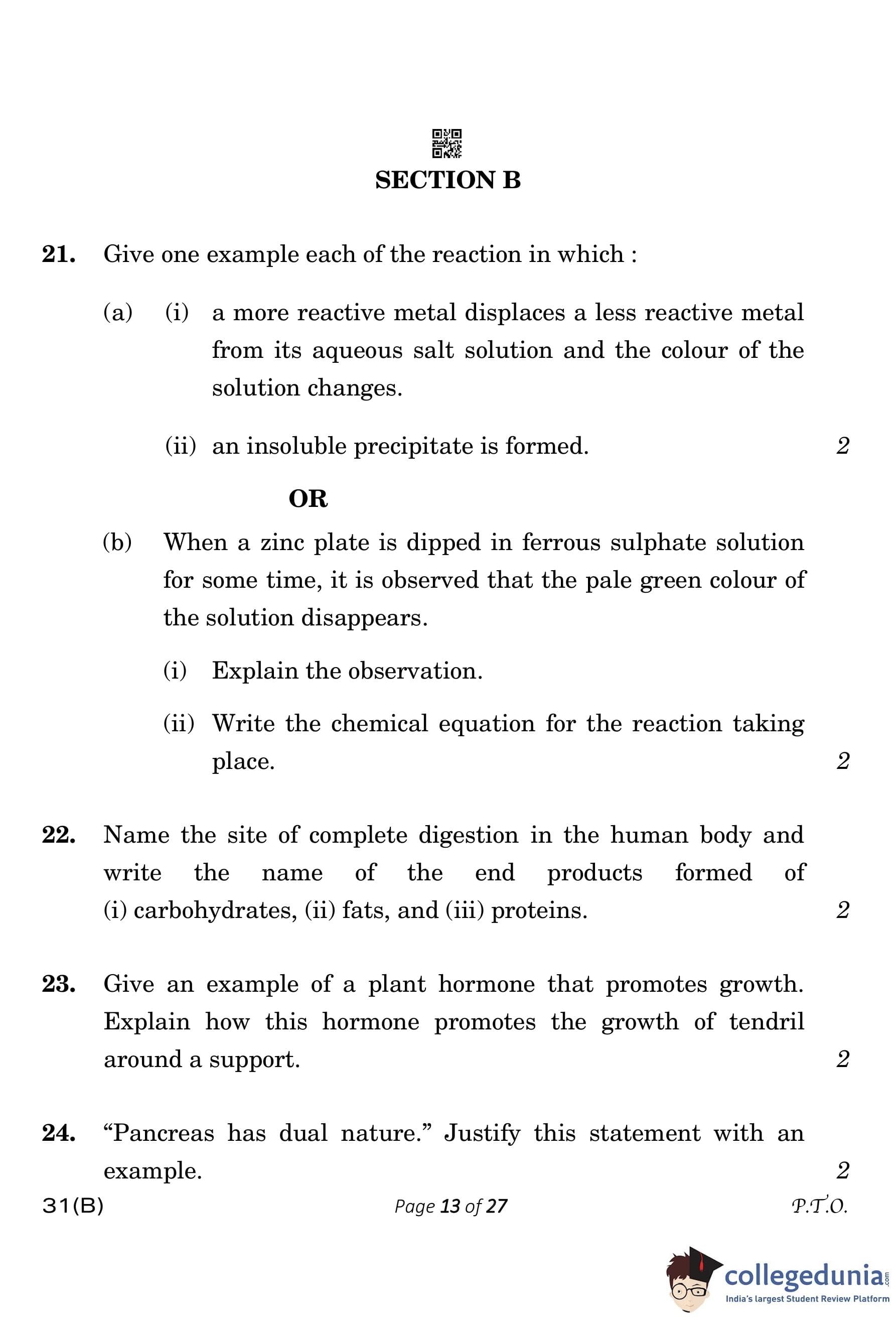| CBSE Class 10 Science Question Paper 2023 PDF | CBSE Class 10 Science Answer Key 2023 PDF |