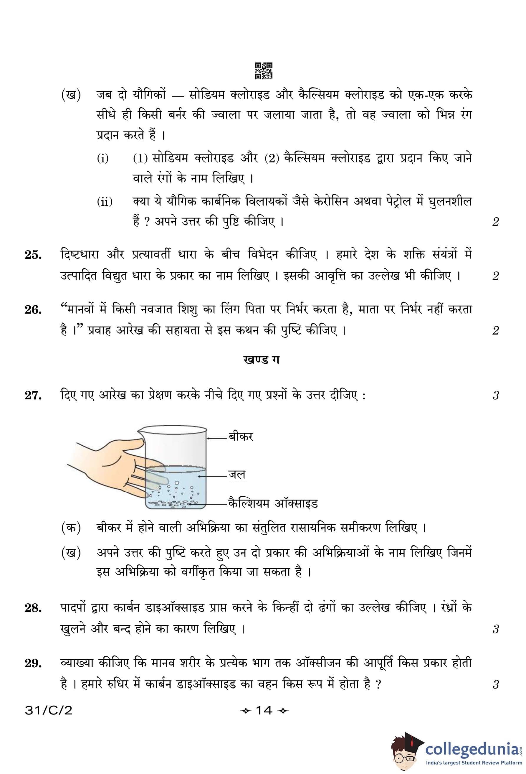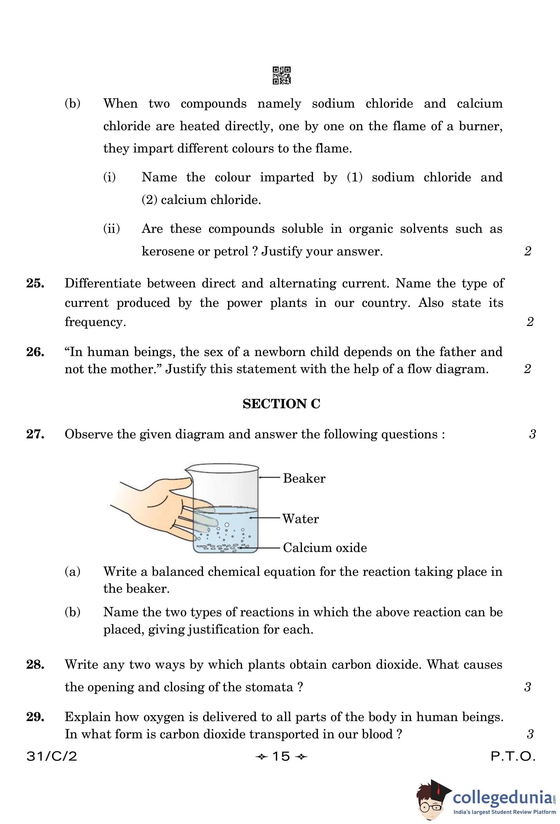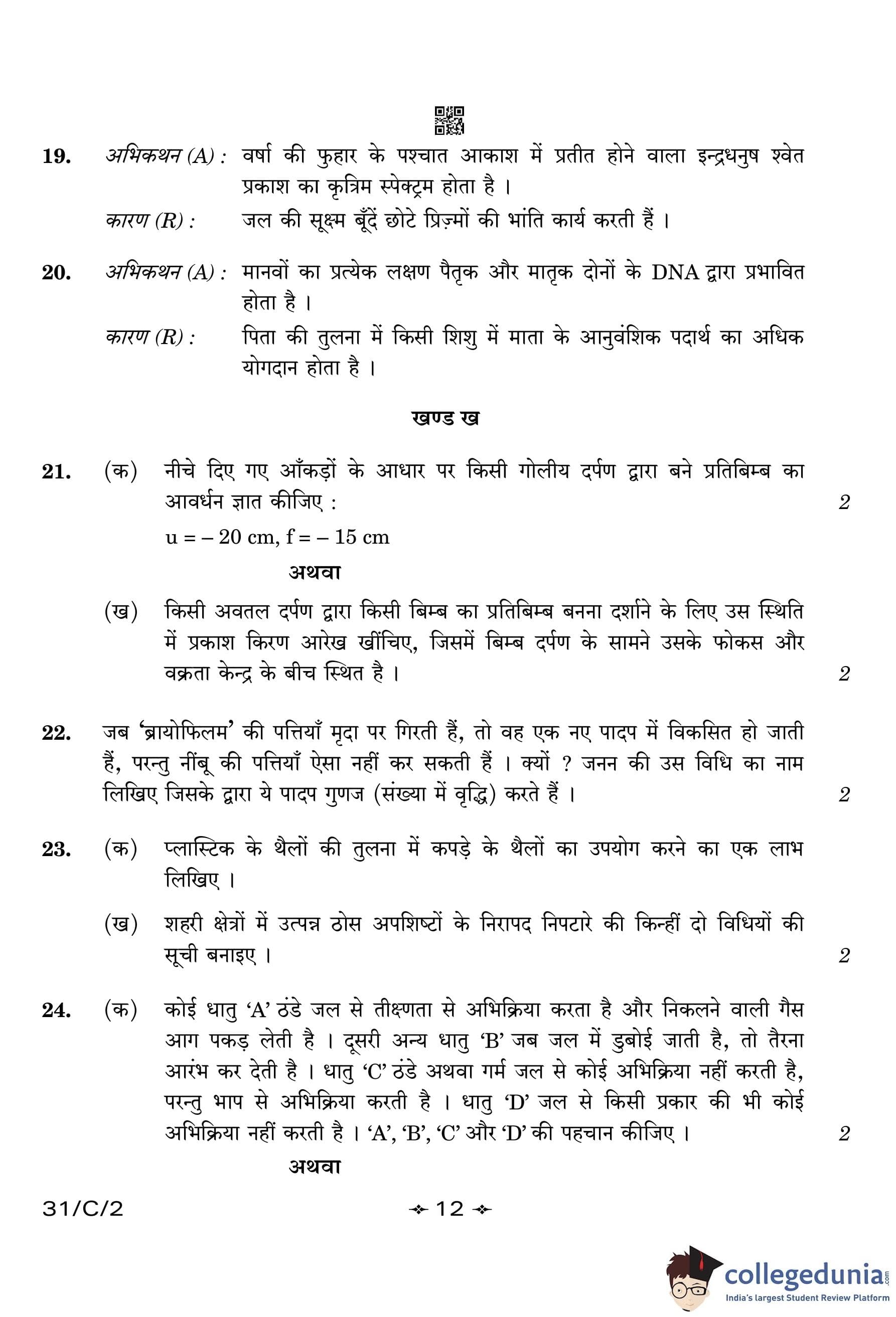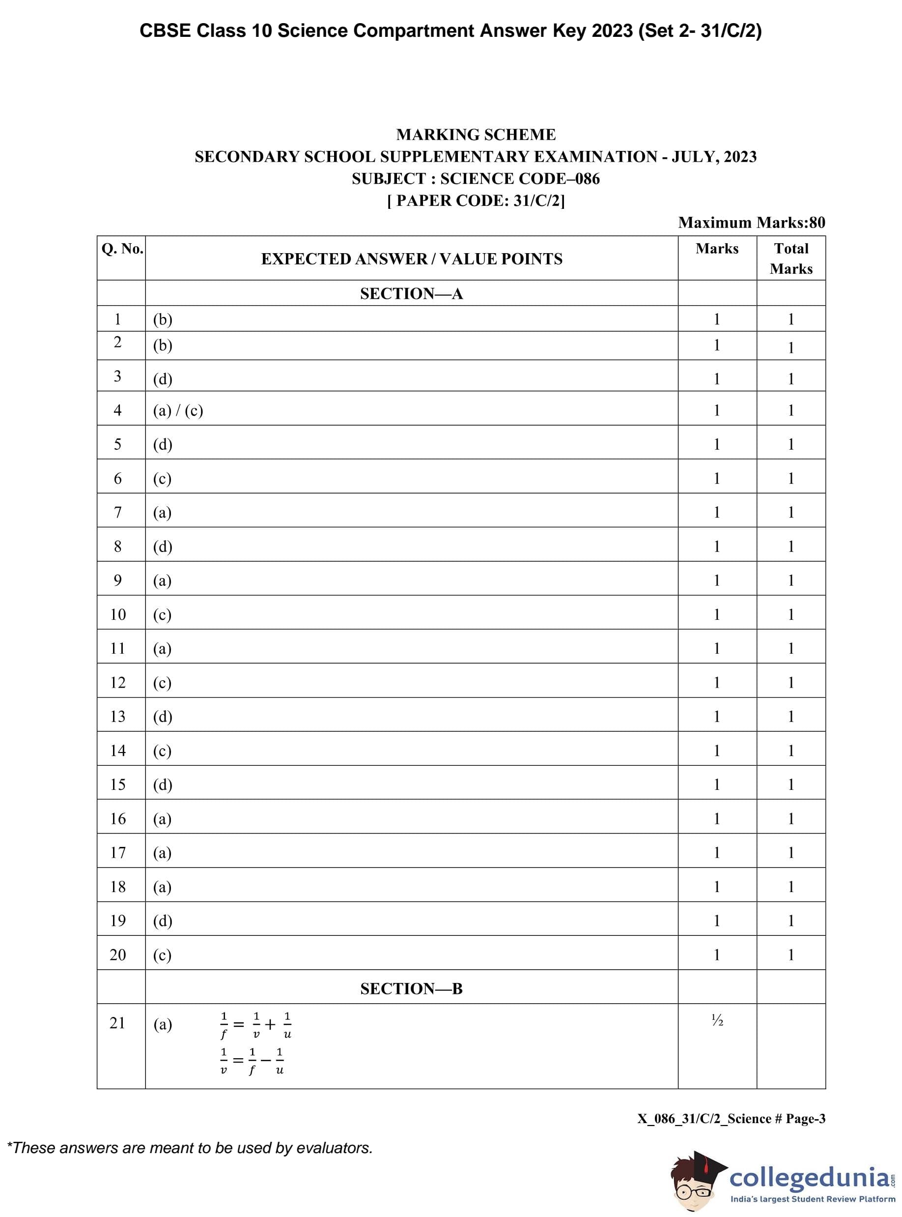 CBSE Class 10 Science (Set 2- 31/C/2) Compartment Question Paper 2023 with Answer Key