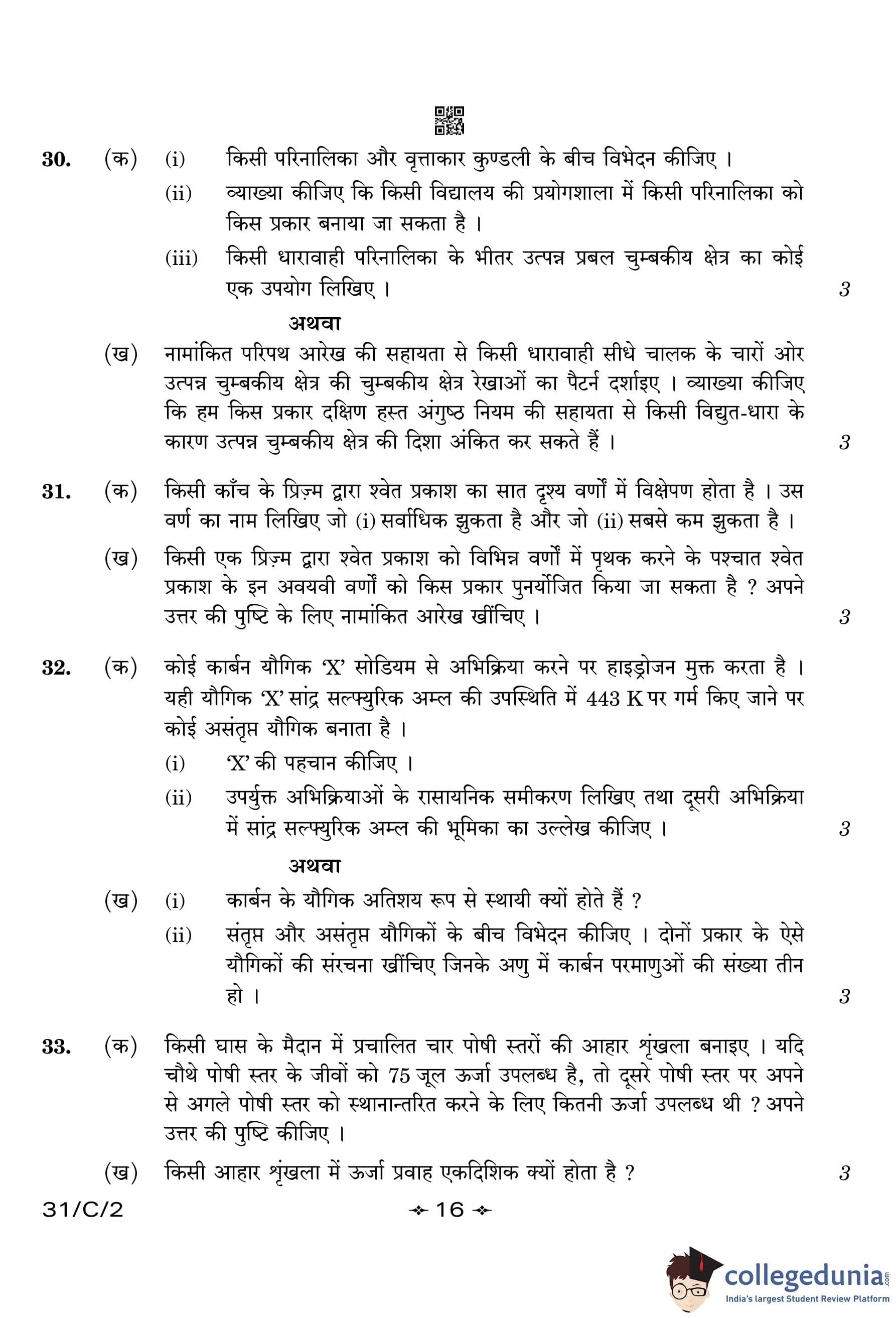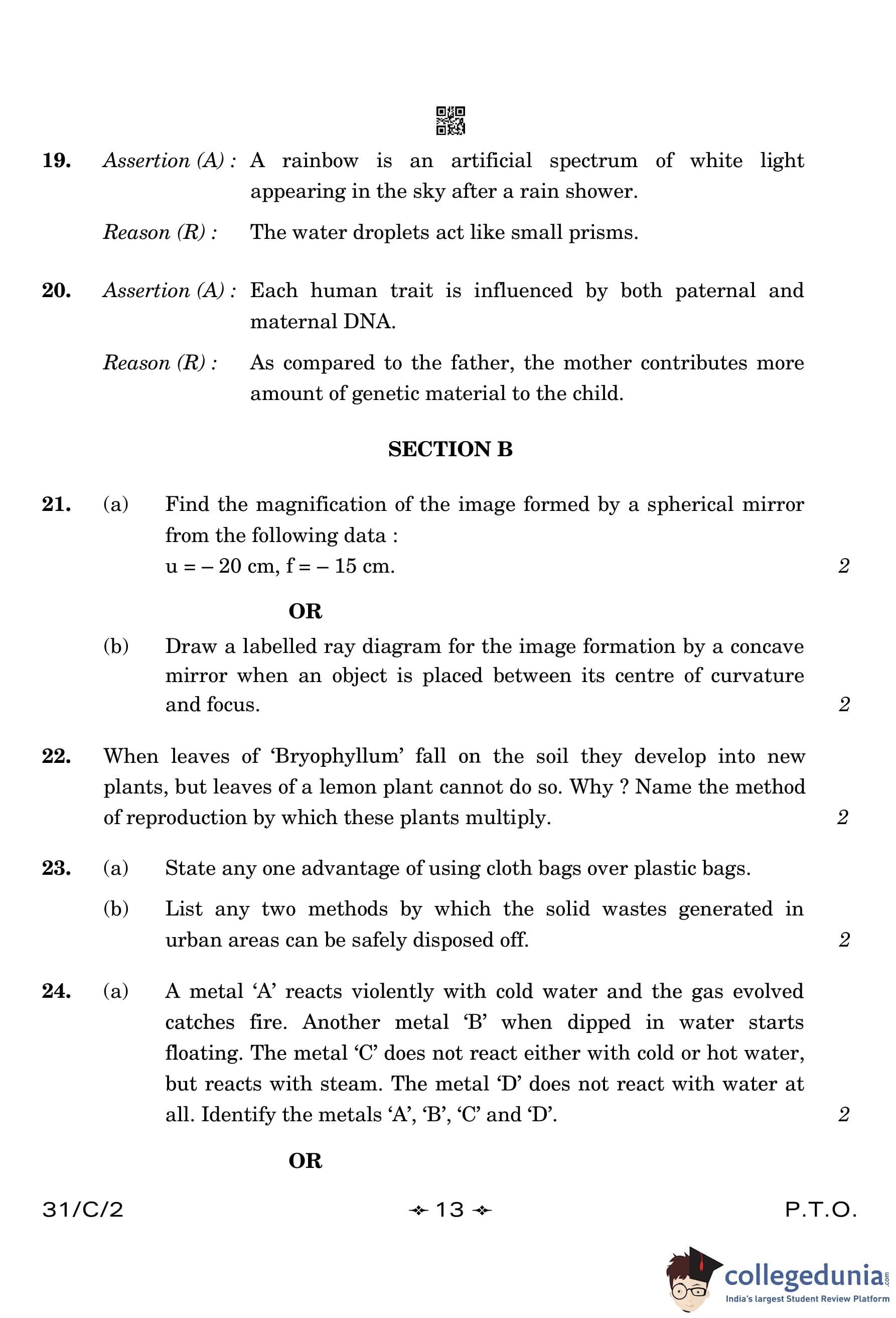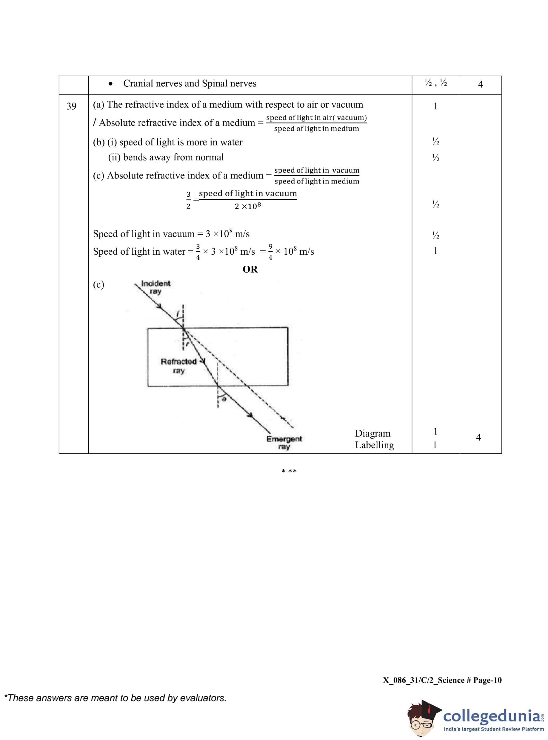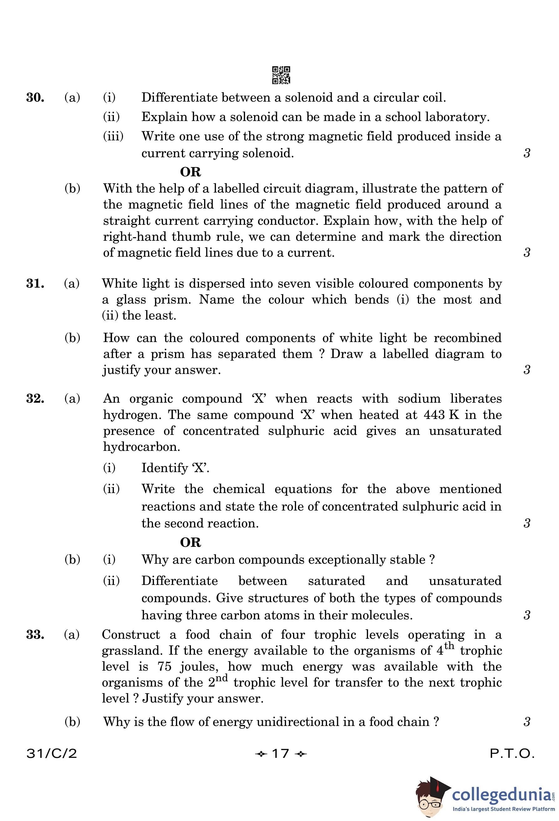 CBSE Class 10 Science (Set 2- 31/C/2) Compartment Question Paper 2023 with Answer Key