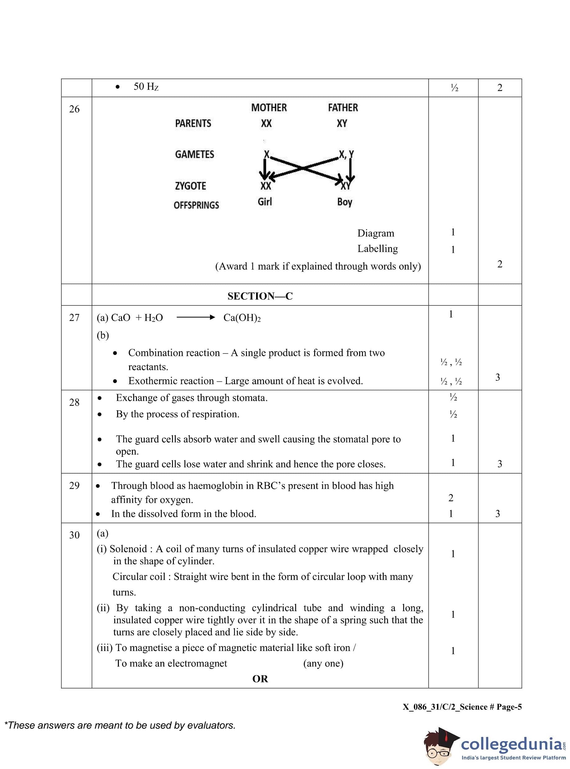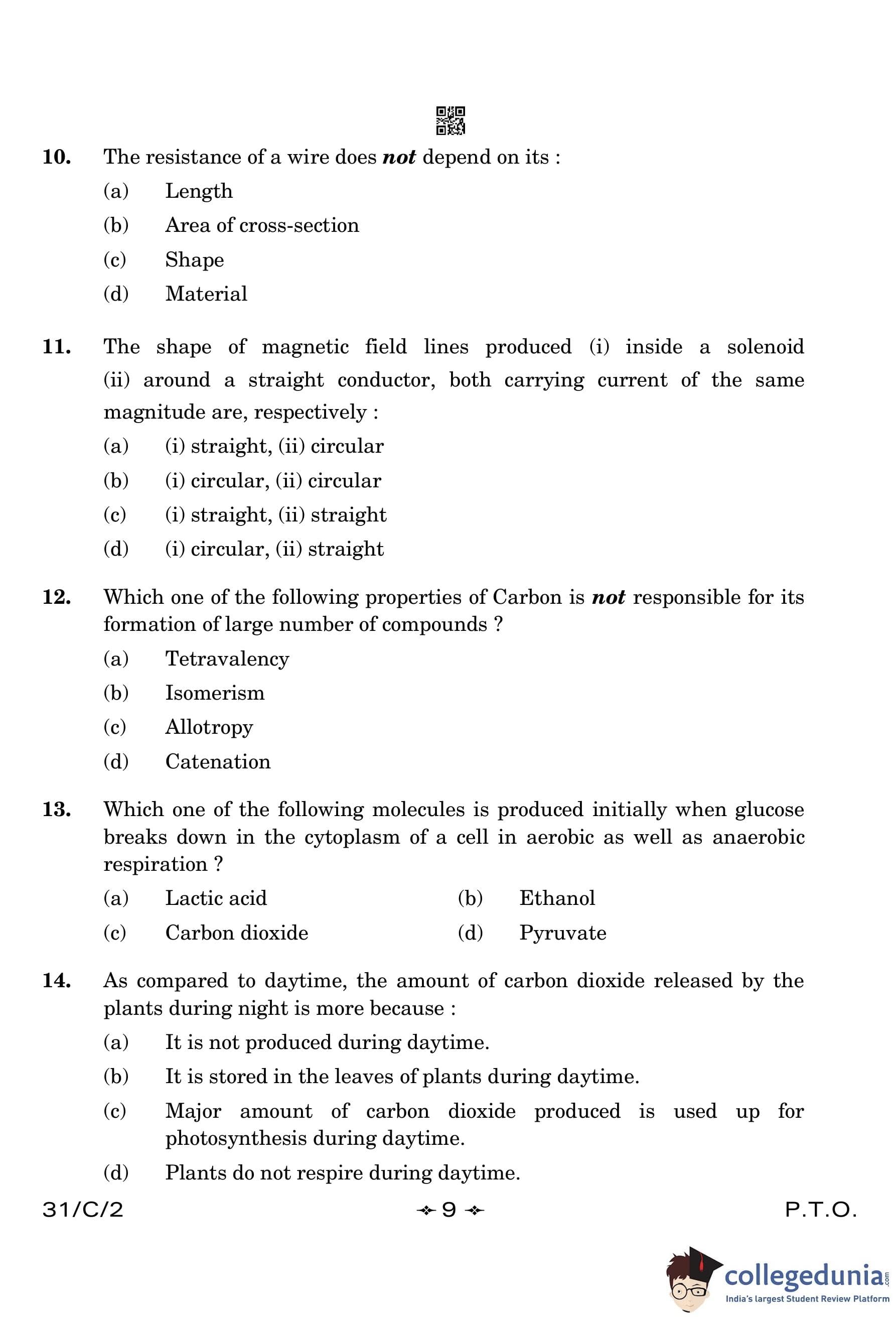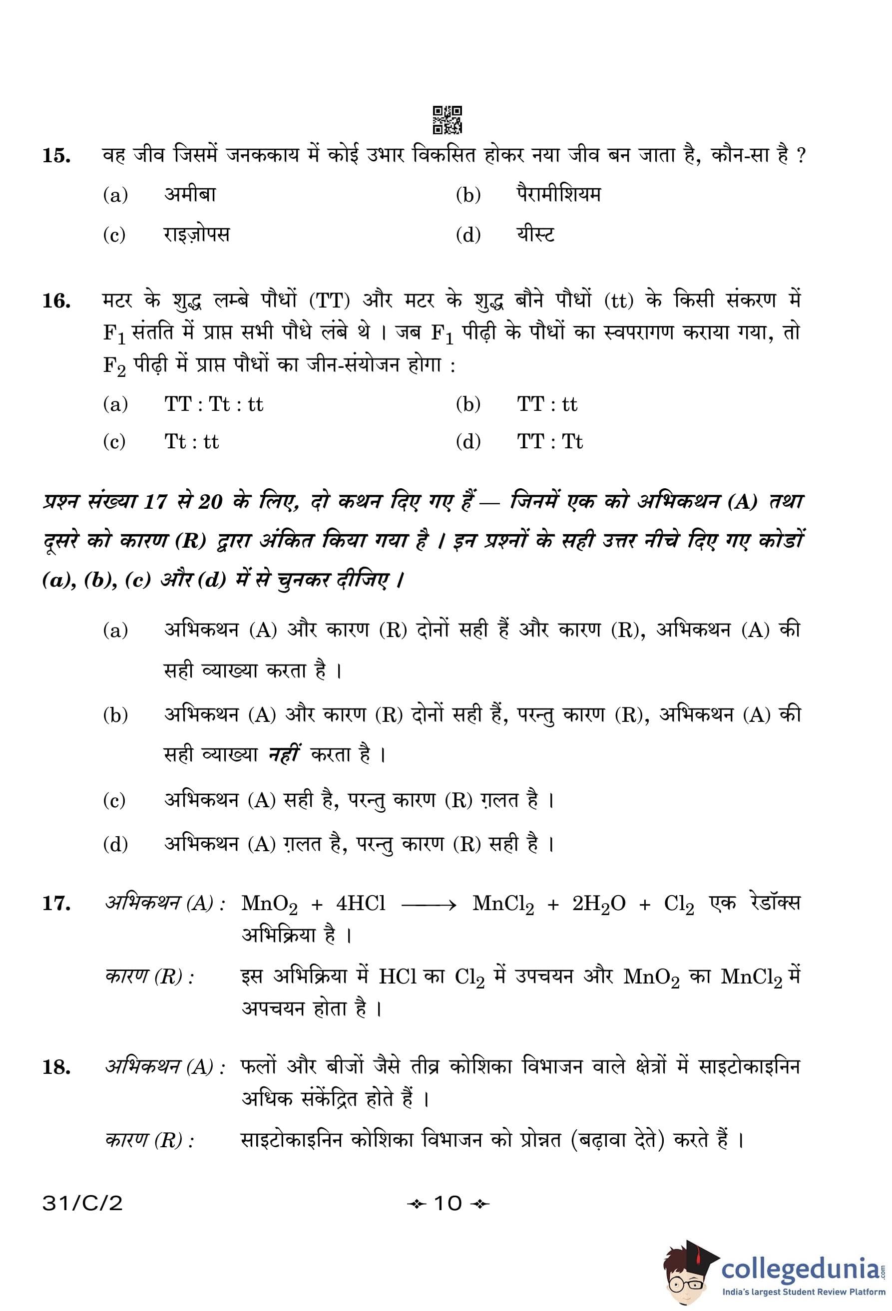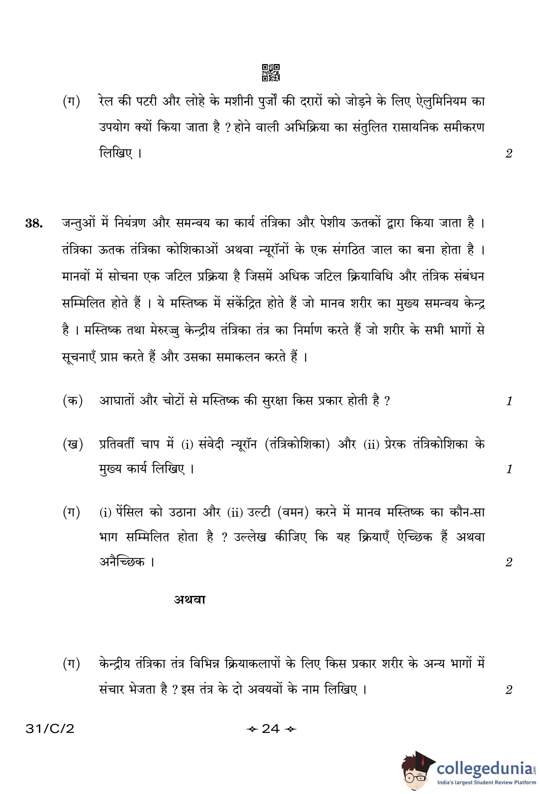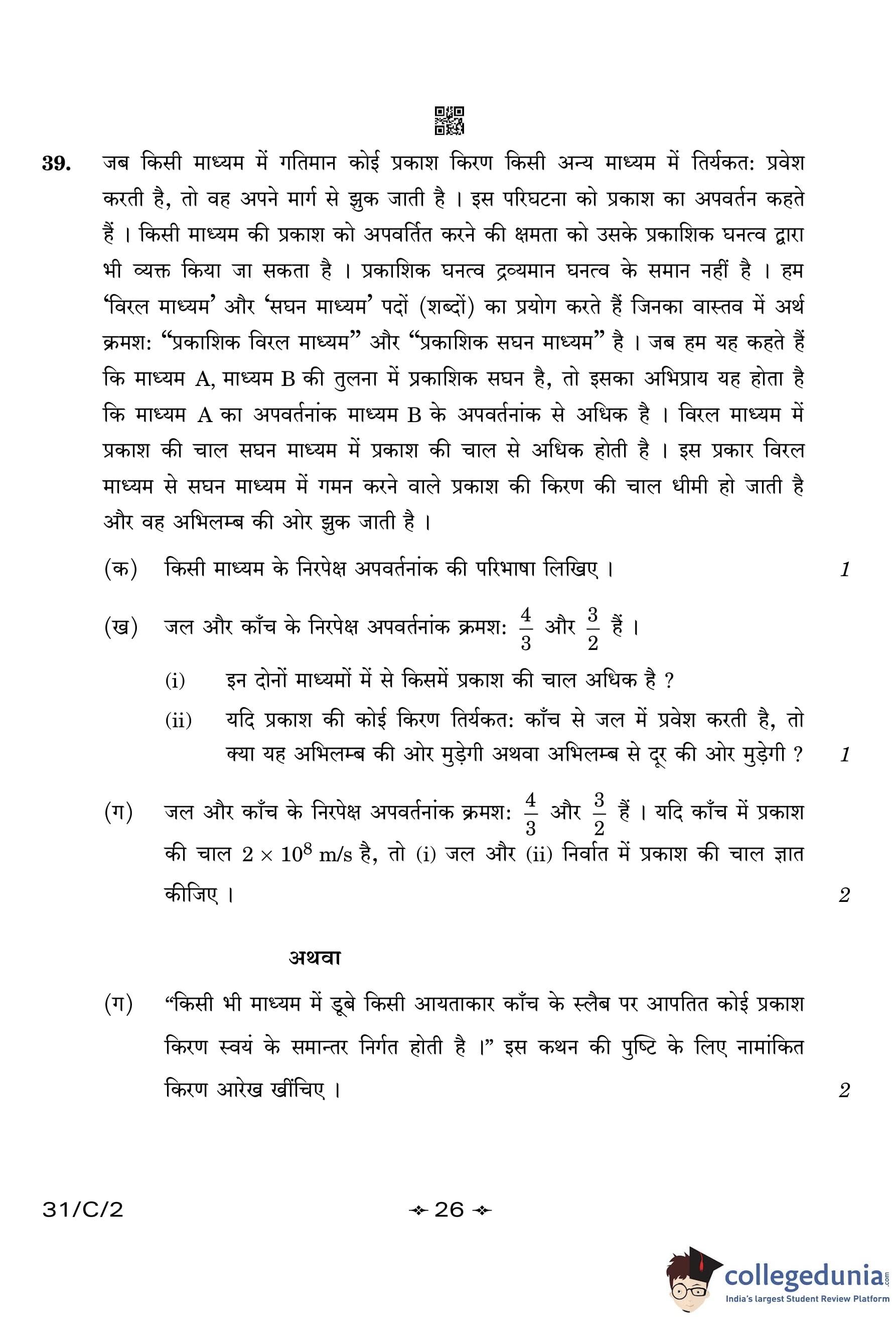CBSE Class 10 Science (Set 2- 31/C/2) Compartment Question Paper 2023 with Answer Key