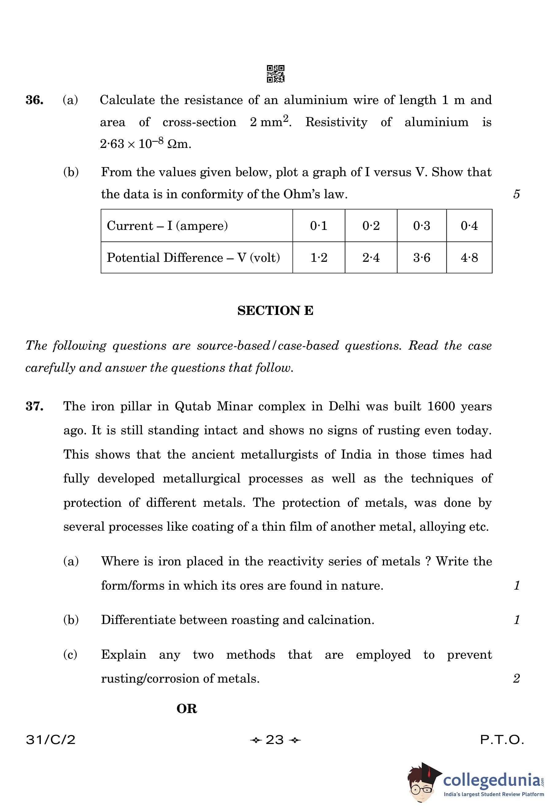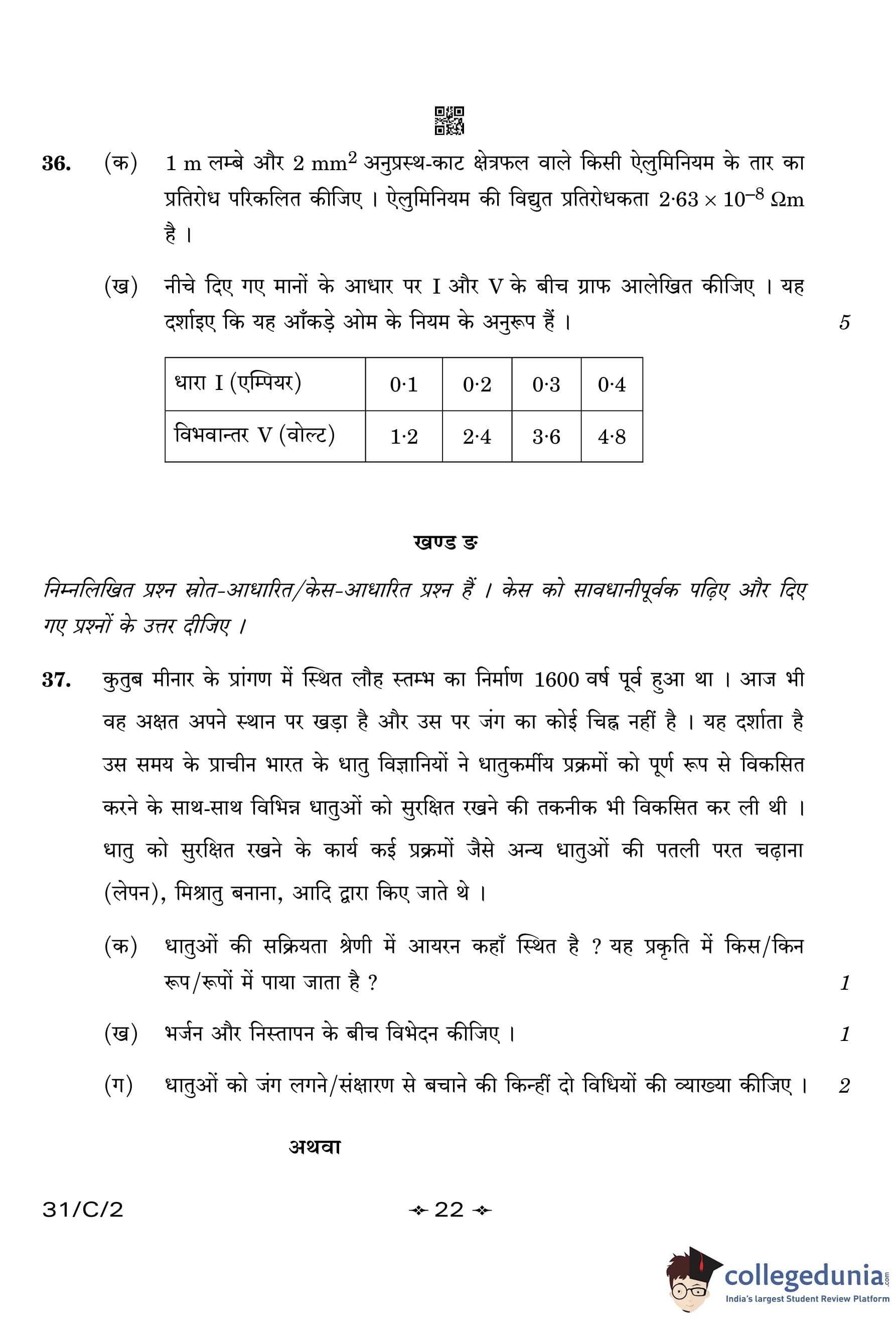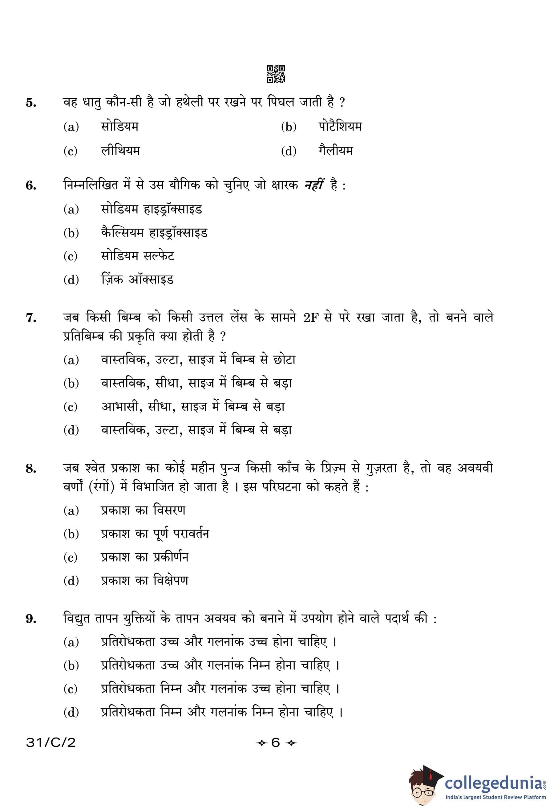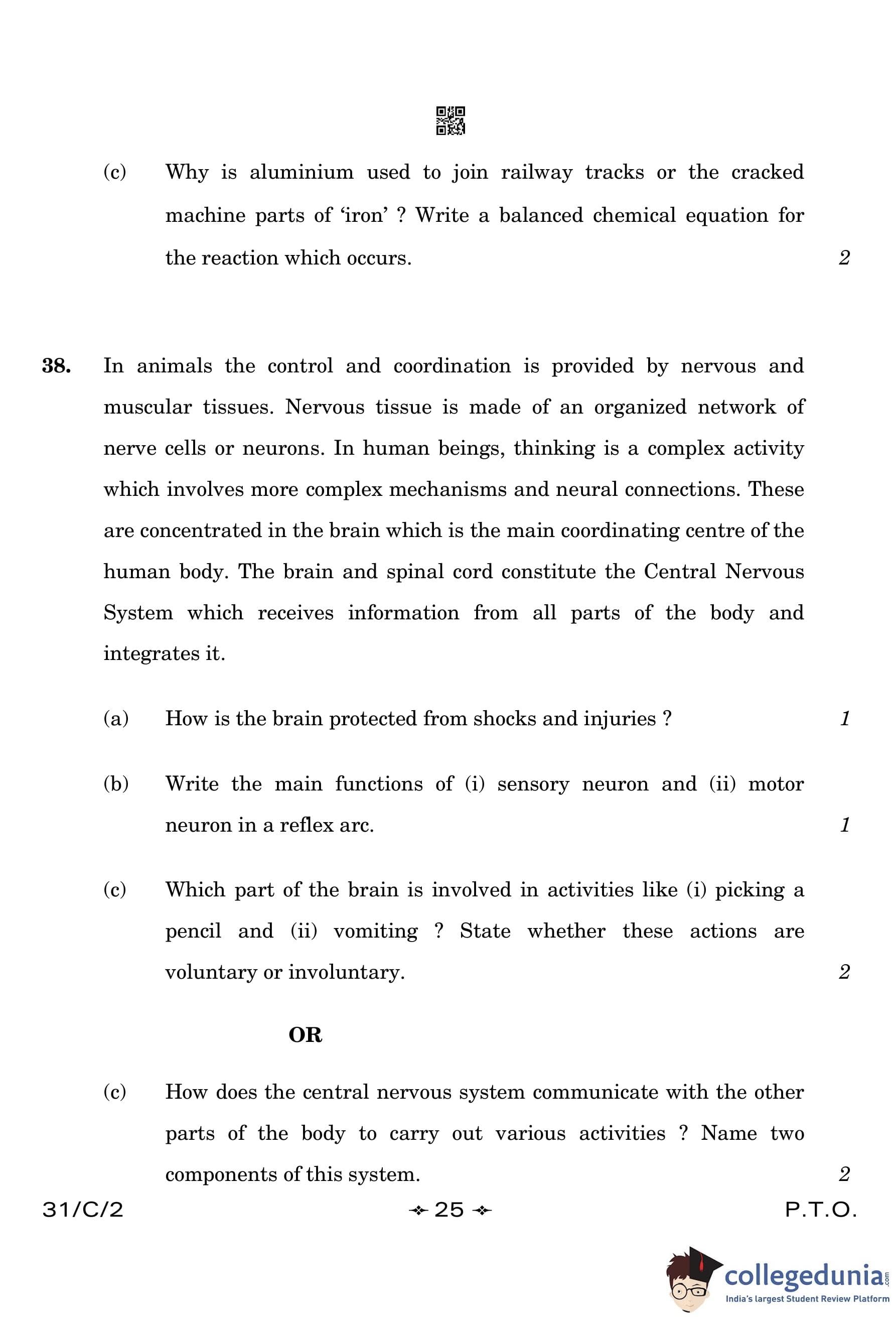 CBSE Class 10 Science (Set 2- 31/C/2) Compartment Question Paper 2023 with Answer Key