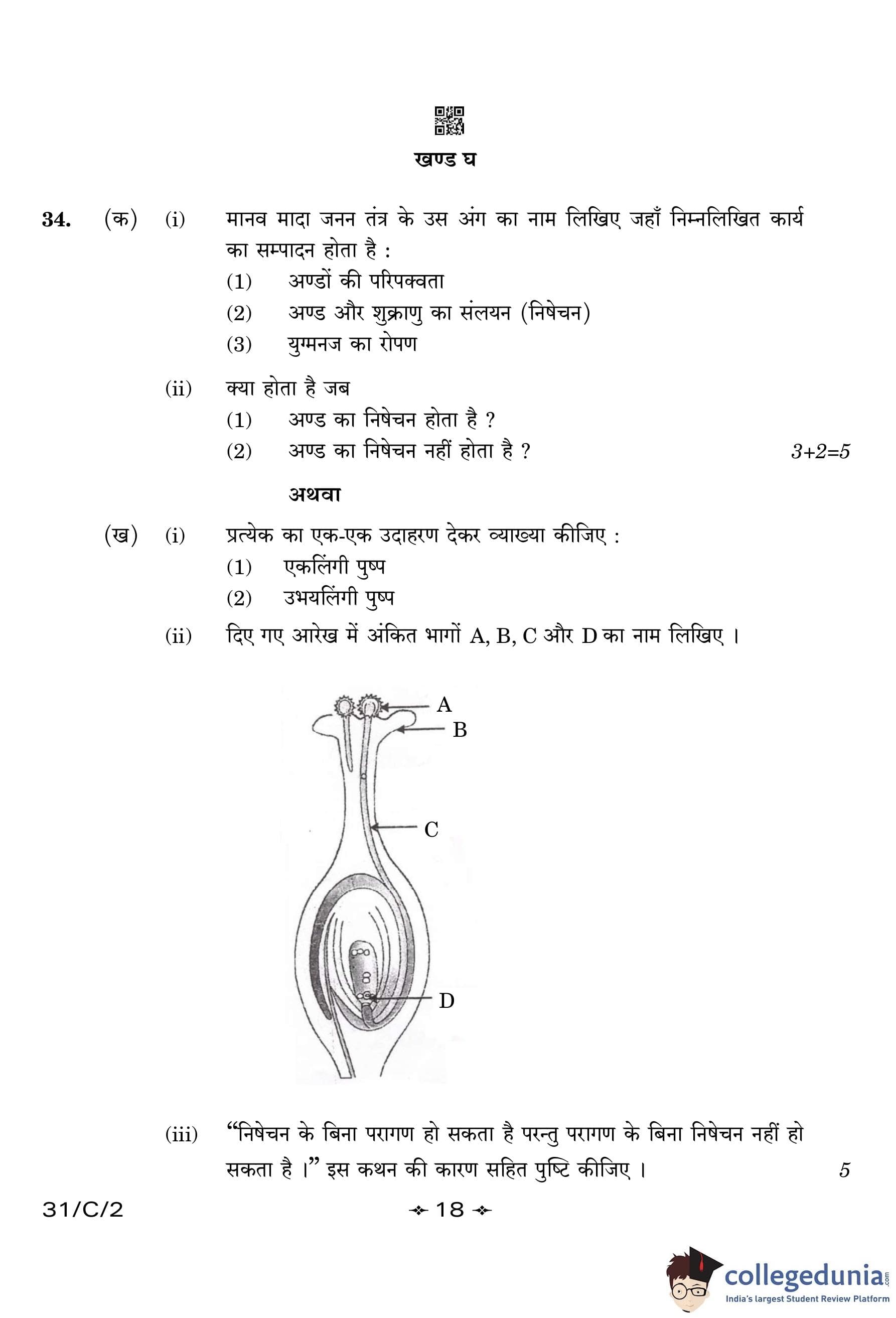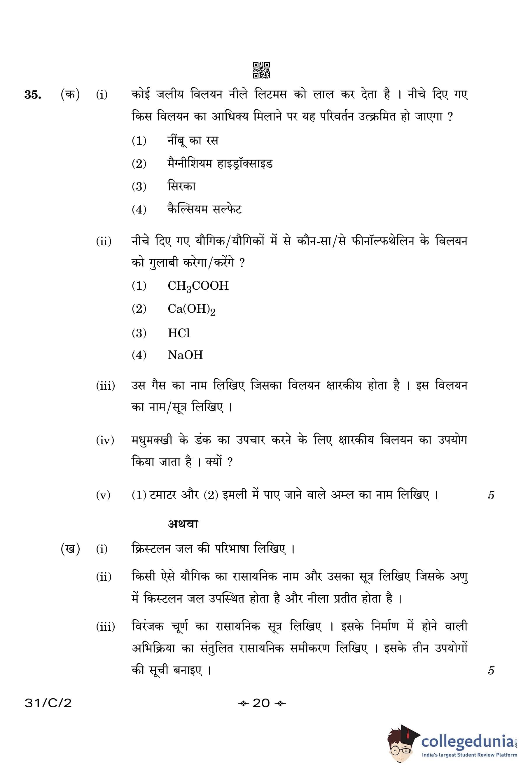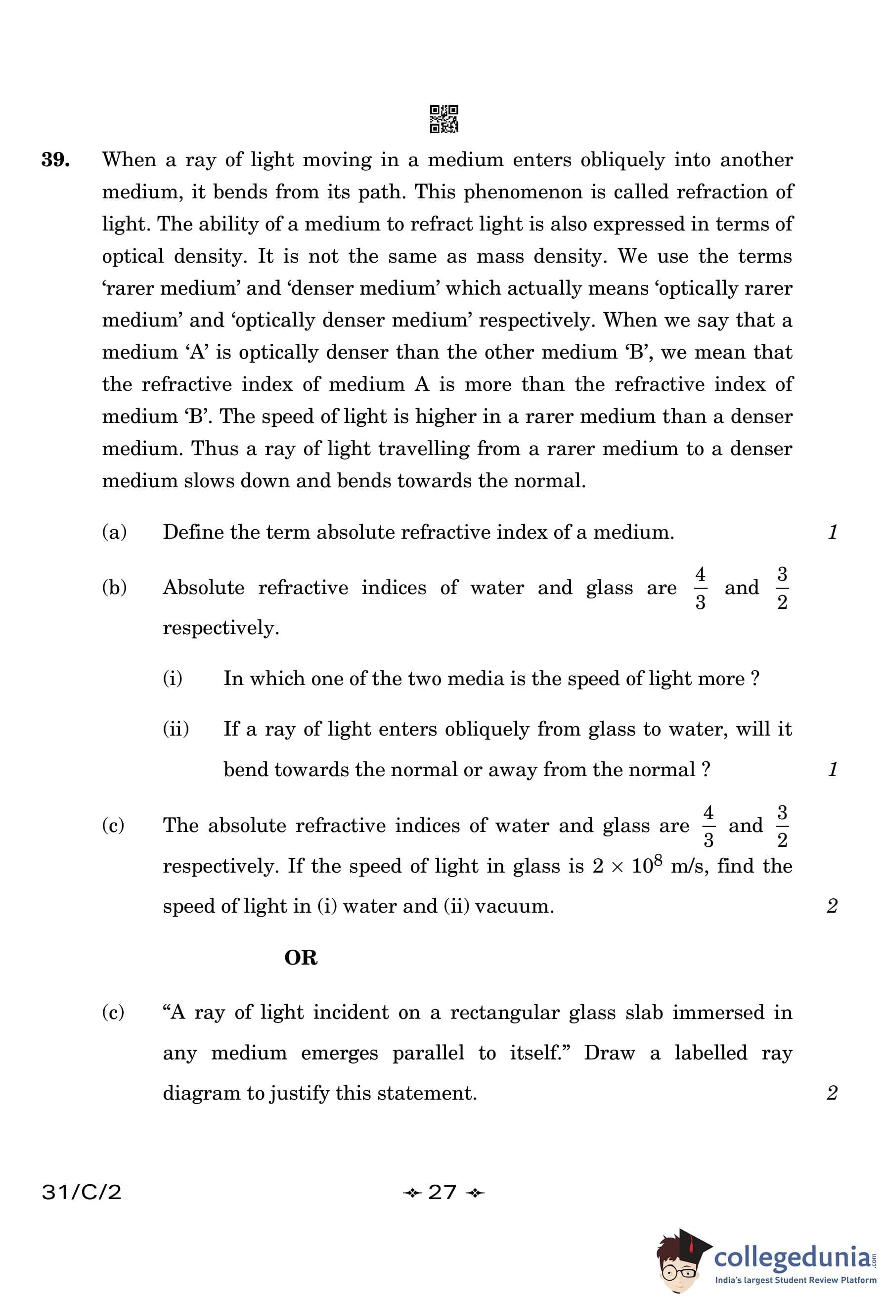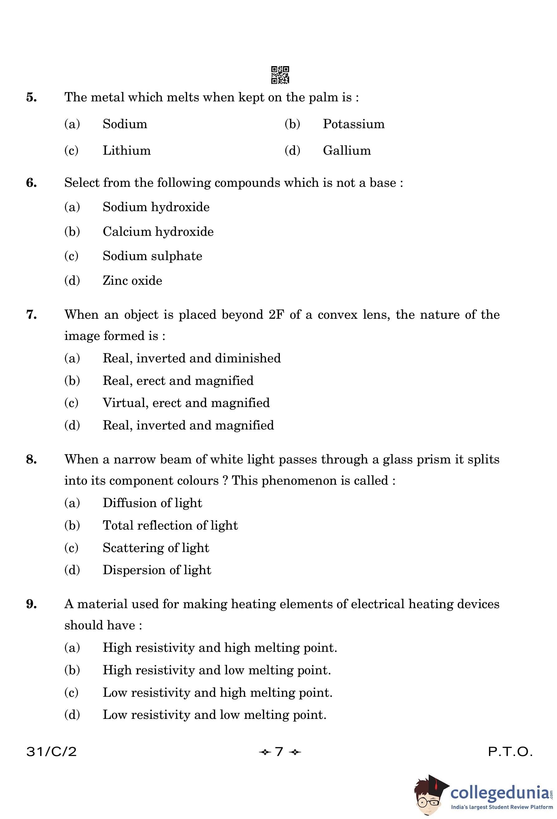 CBSE Class 10 Science (Set 2- 31/C/2) Compartment Question Paper 2023 with Answer Key