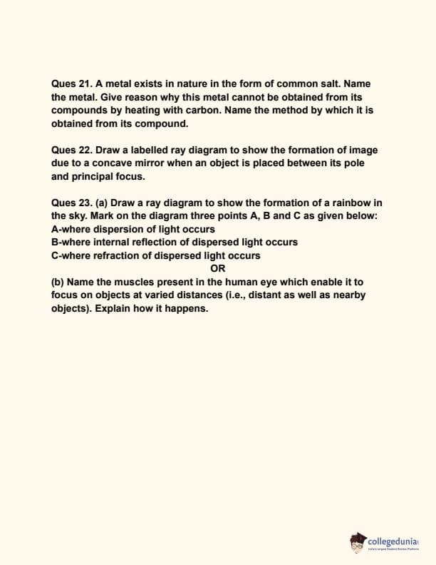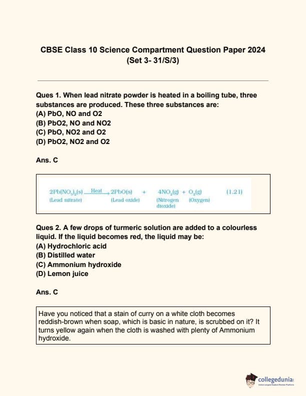 CBSE Class 10 Science (Set 3- 31/S/3) Compartment Question Paper 2024 with Answer Key