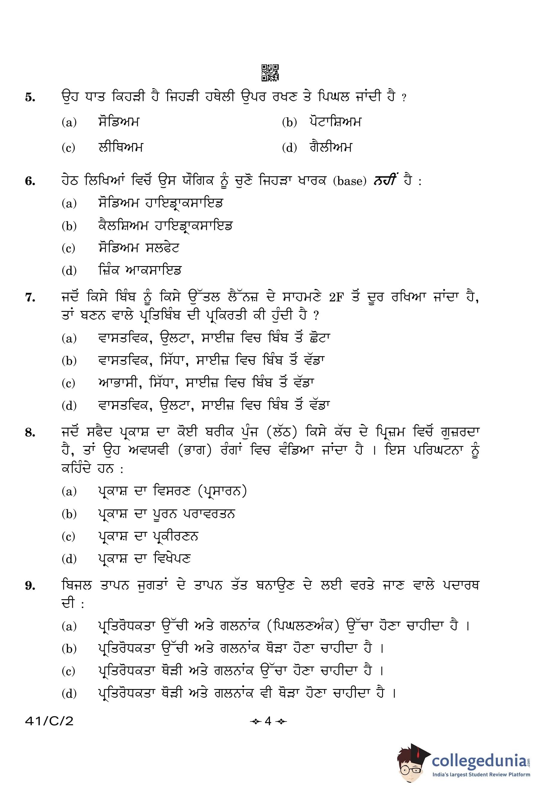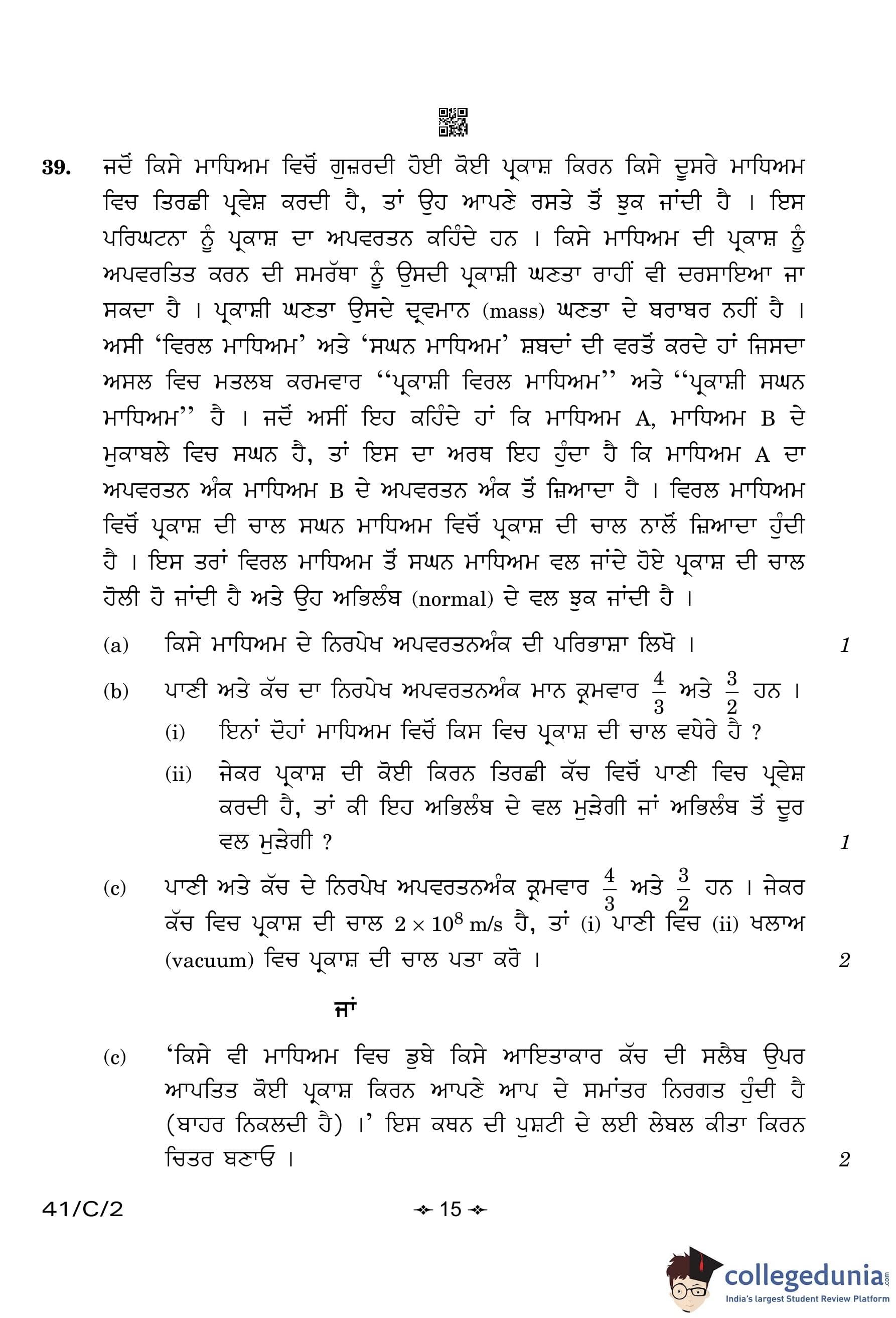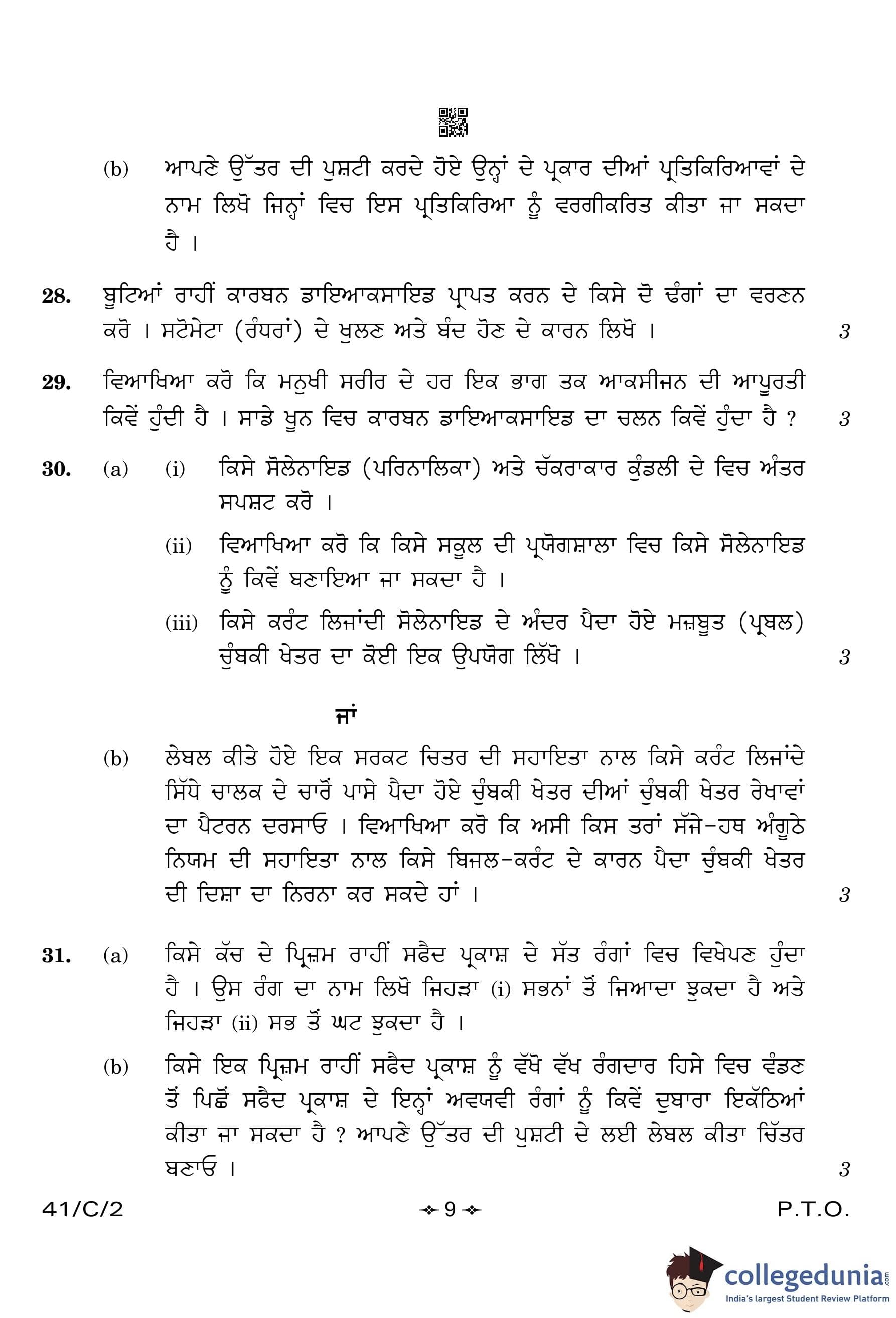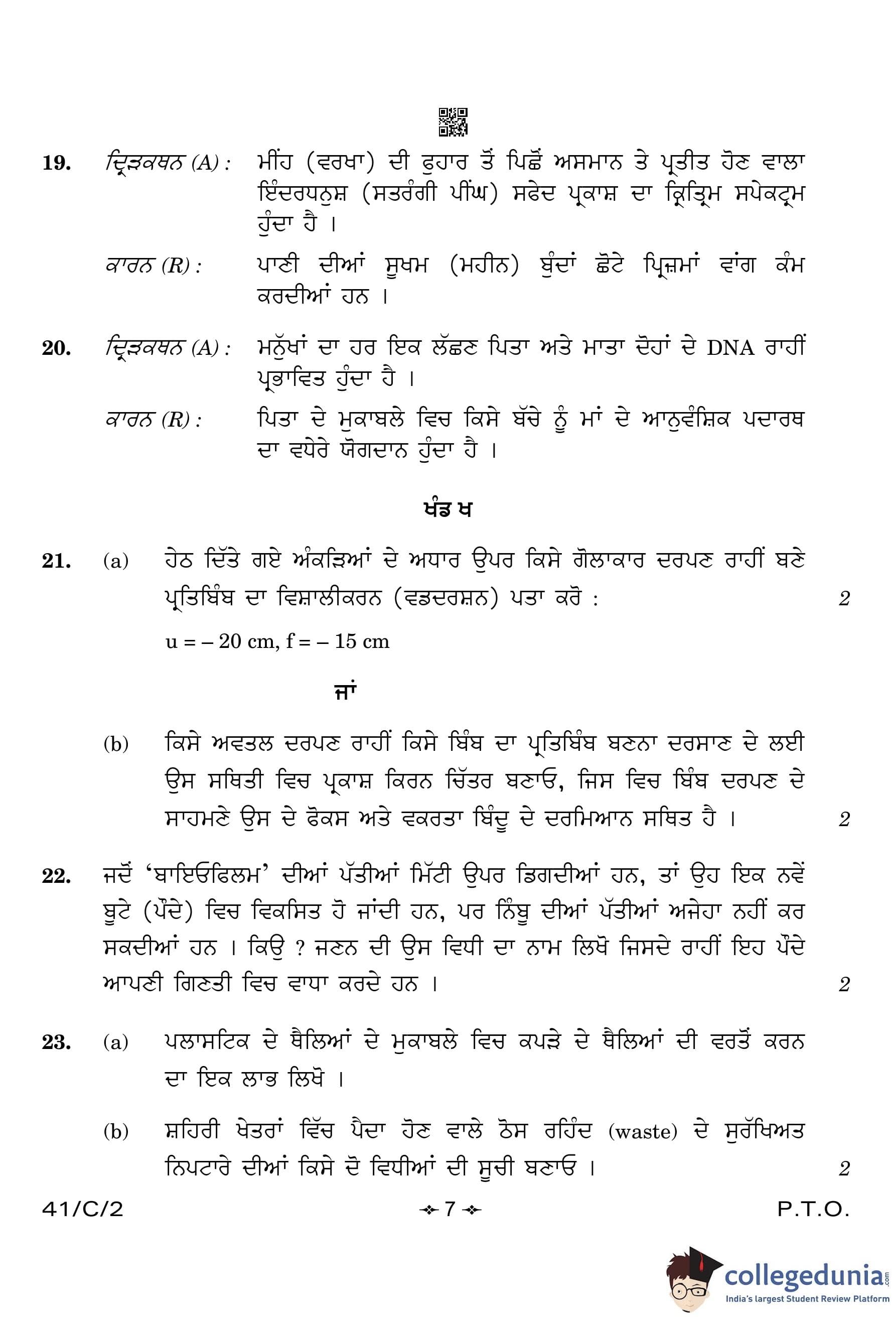 CBSE Class 10 Science (Punjabi) (Set 2- 41/C/2) Compartment Question Paper 2023 with Answer Key
