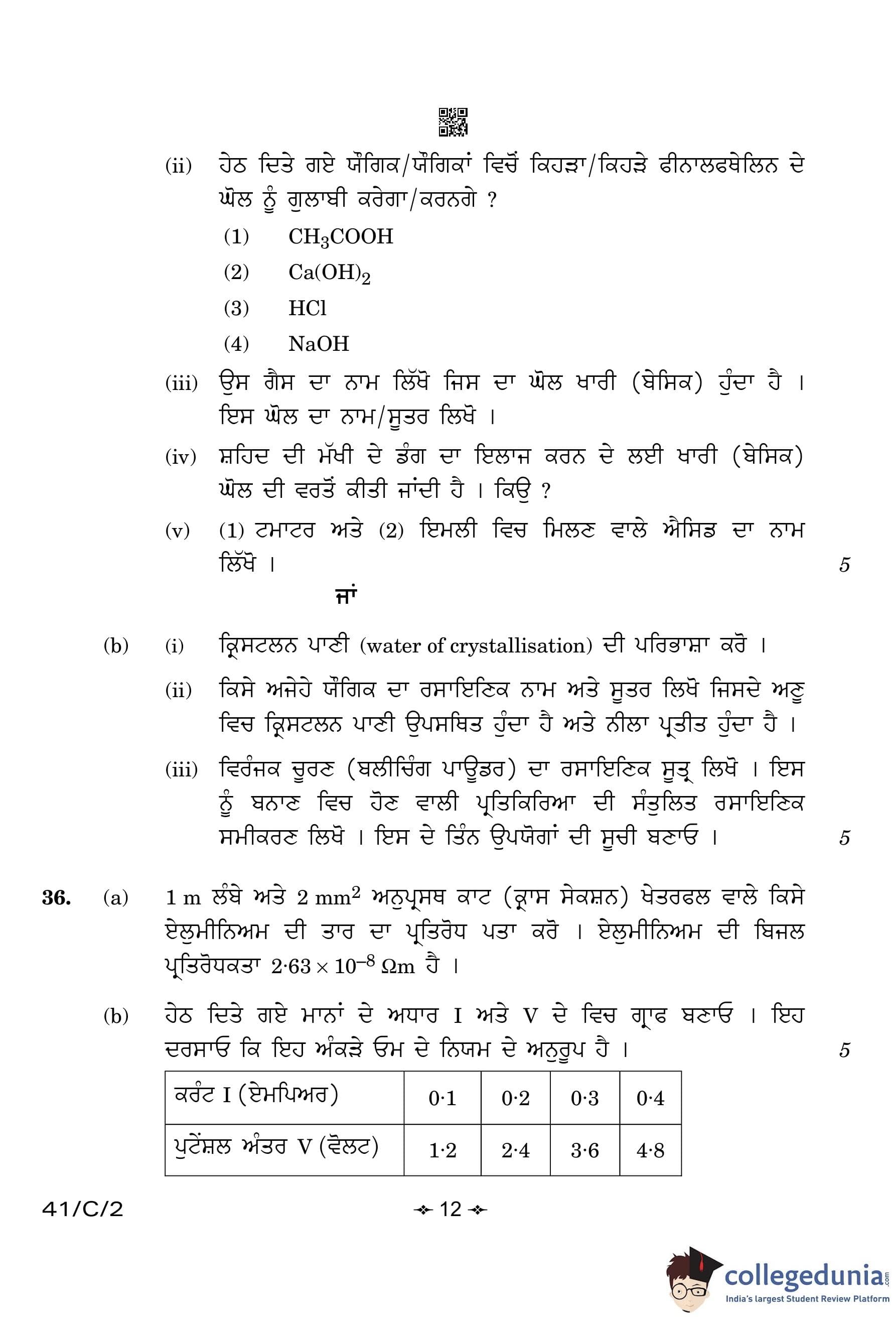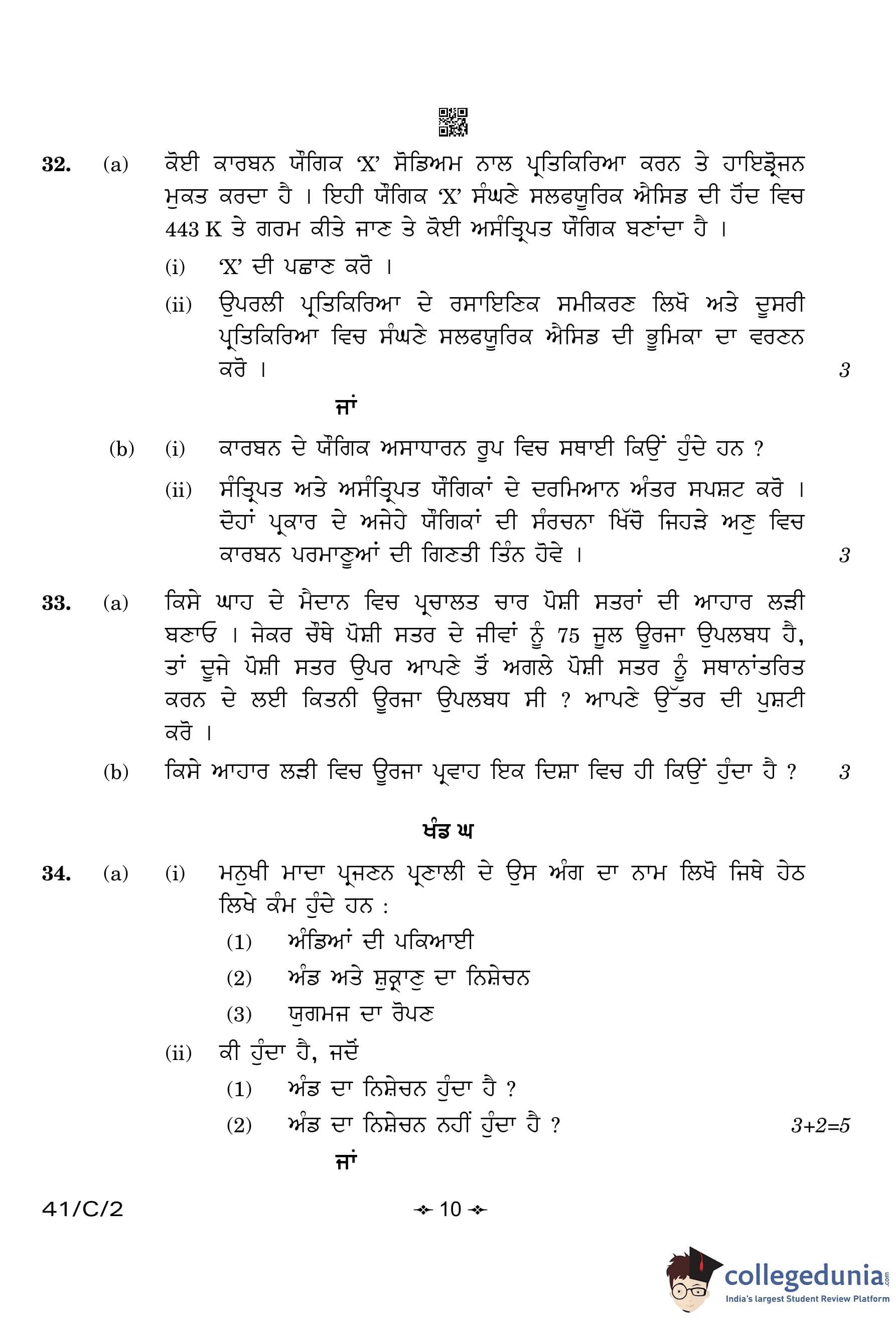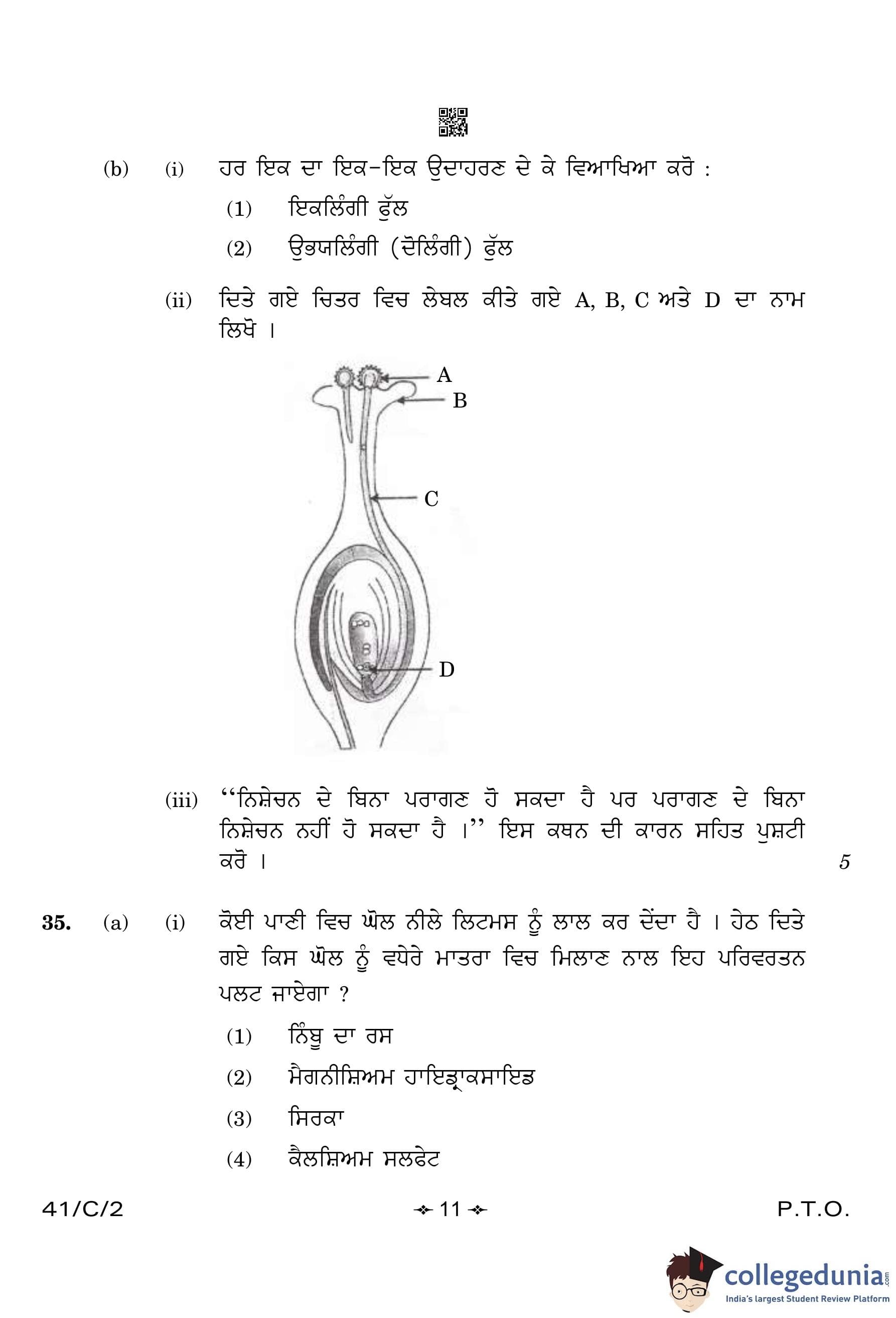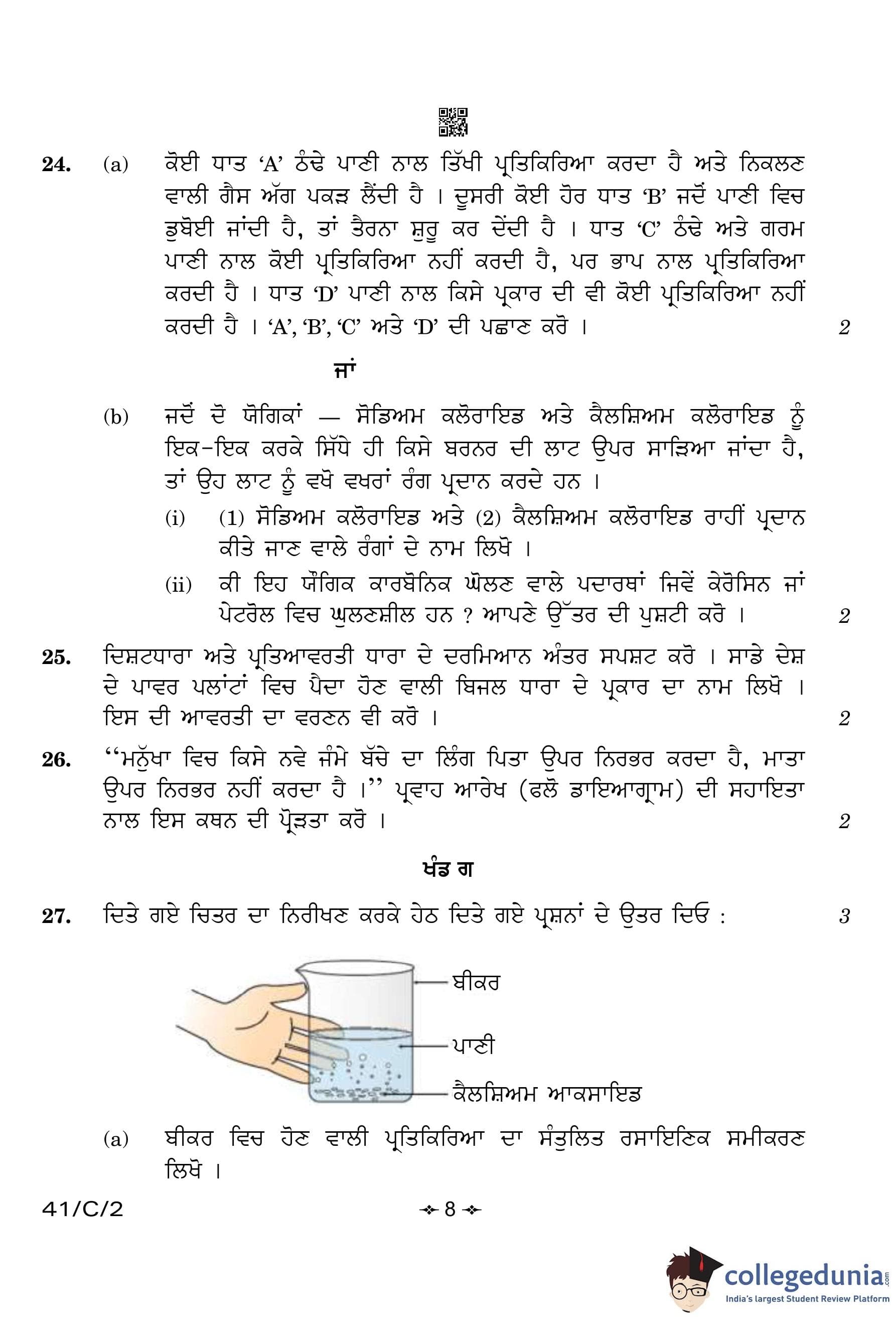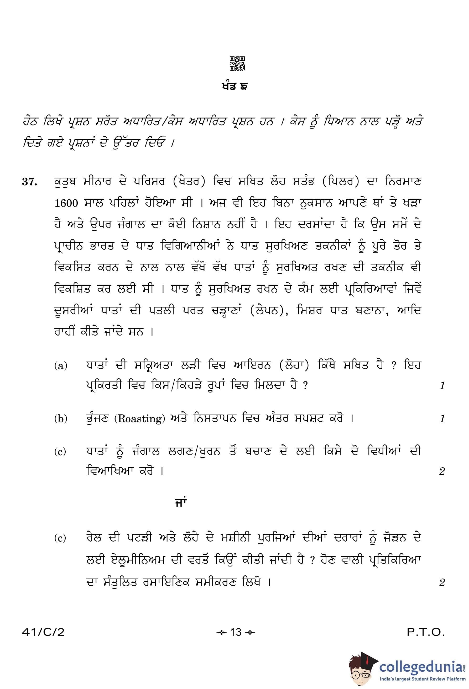 CBSE Class 10 Science (Punjabi) (Set 2- 41/C/2) Compartment Question Paper 2023 with Answer Key