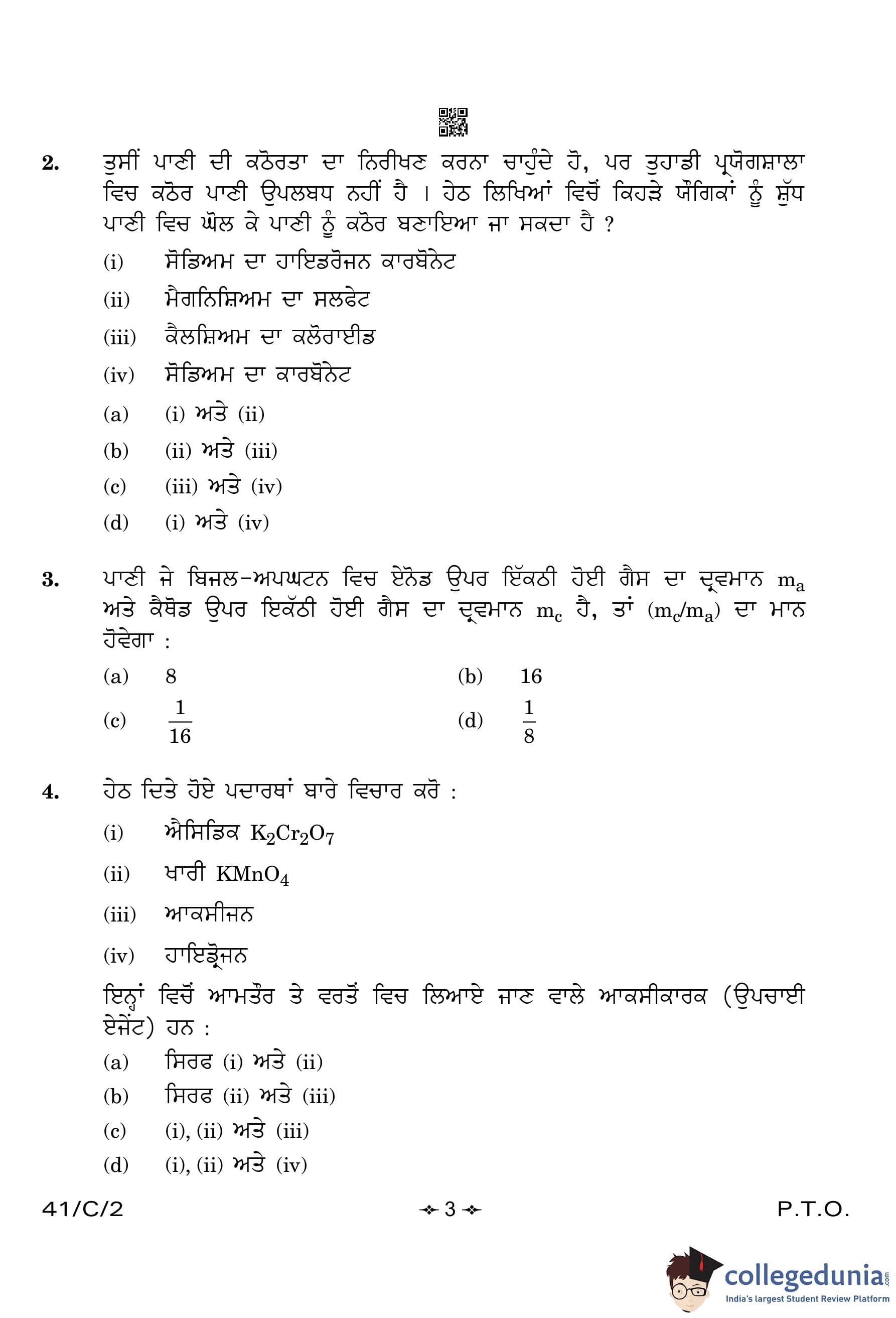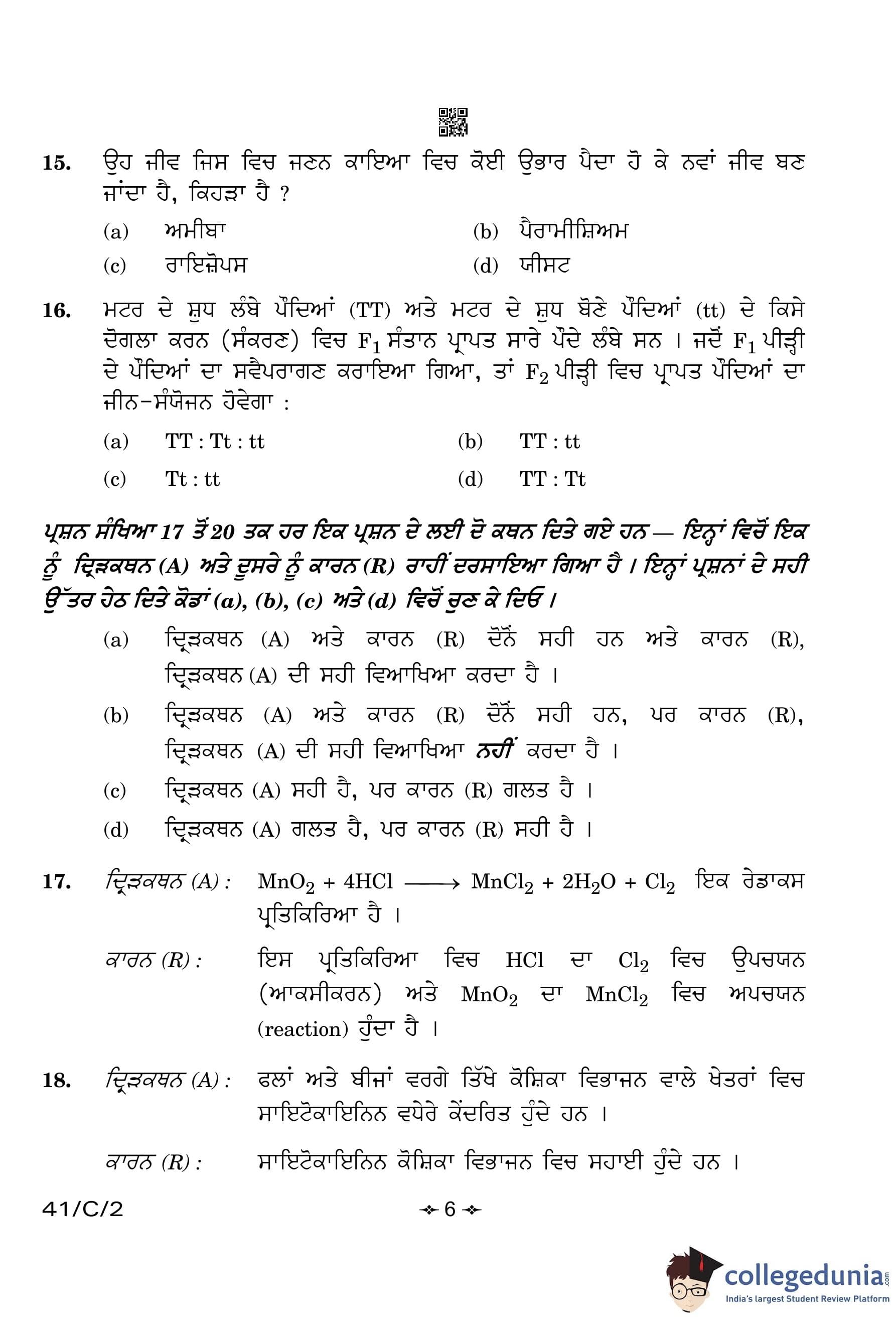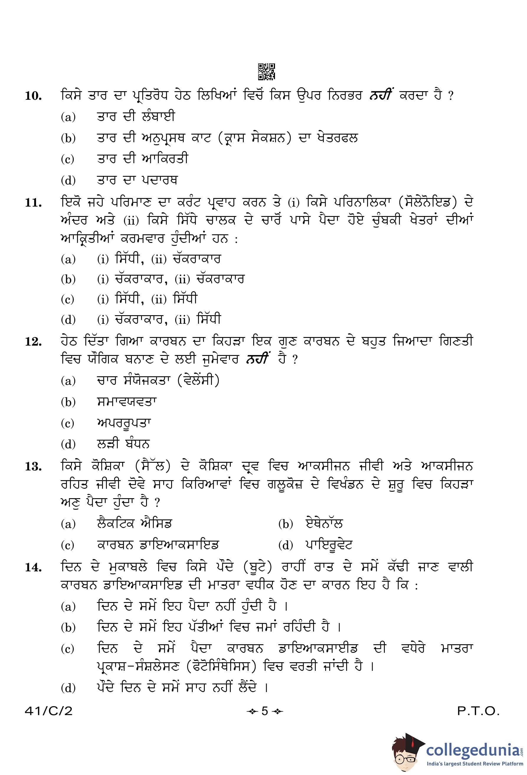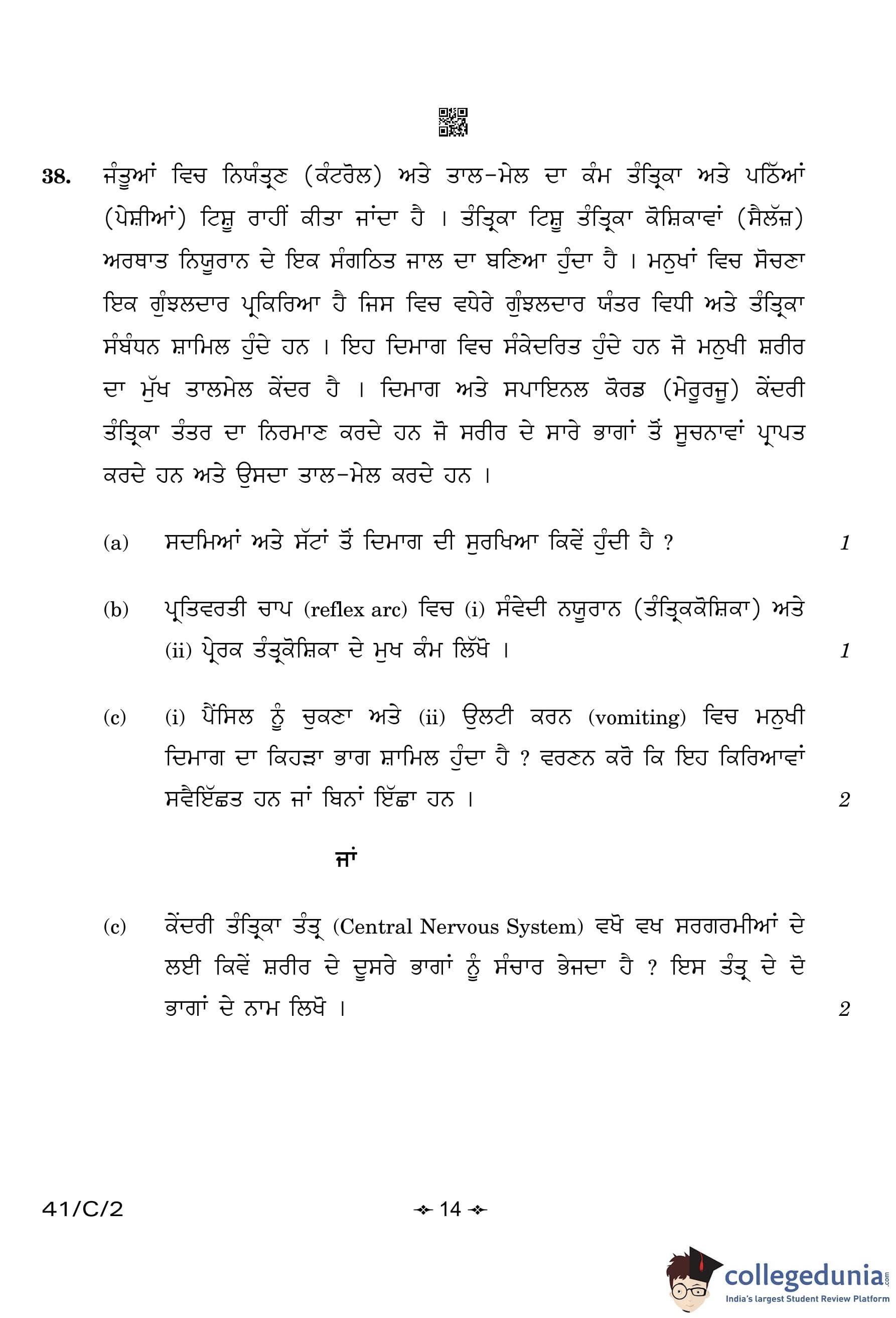 CBSE Class 10 Science (Punjabi) (Set 2- 41/C/2) Compartment Question Paper 2023 with Answer Key