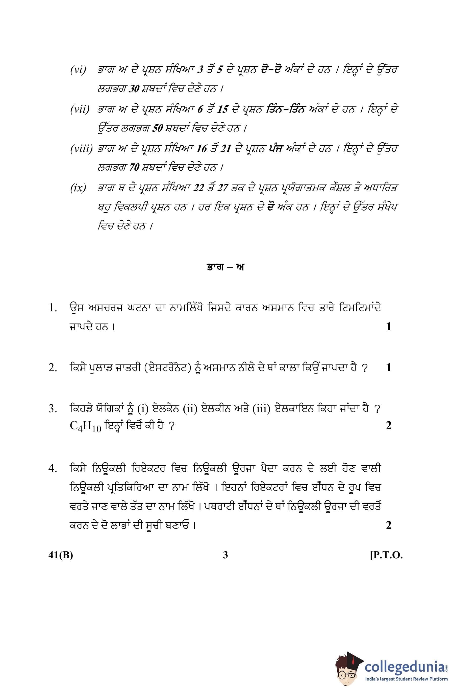 CBSE Class 10 Science Punjabi Set 4 - 41(B) Question Paper 2018 with Answer Key (March 16)