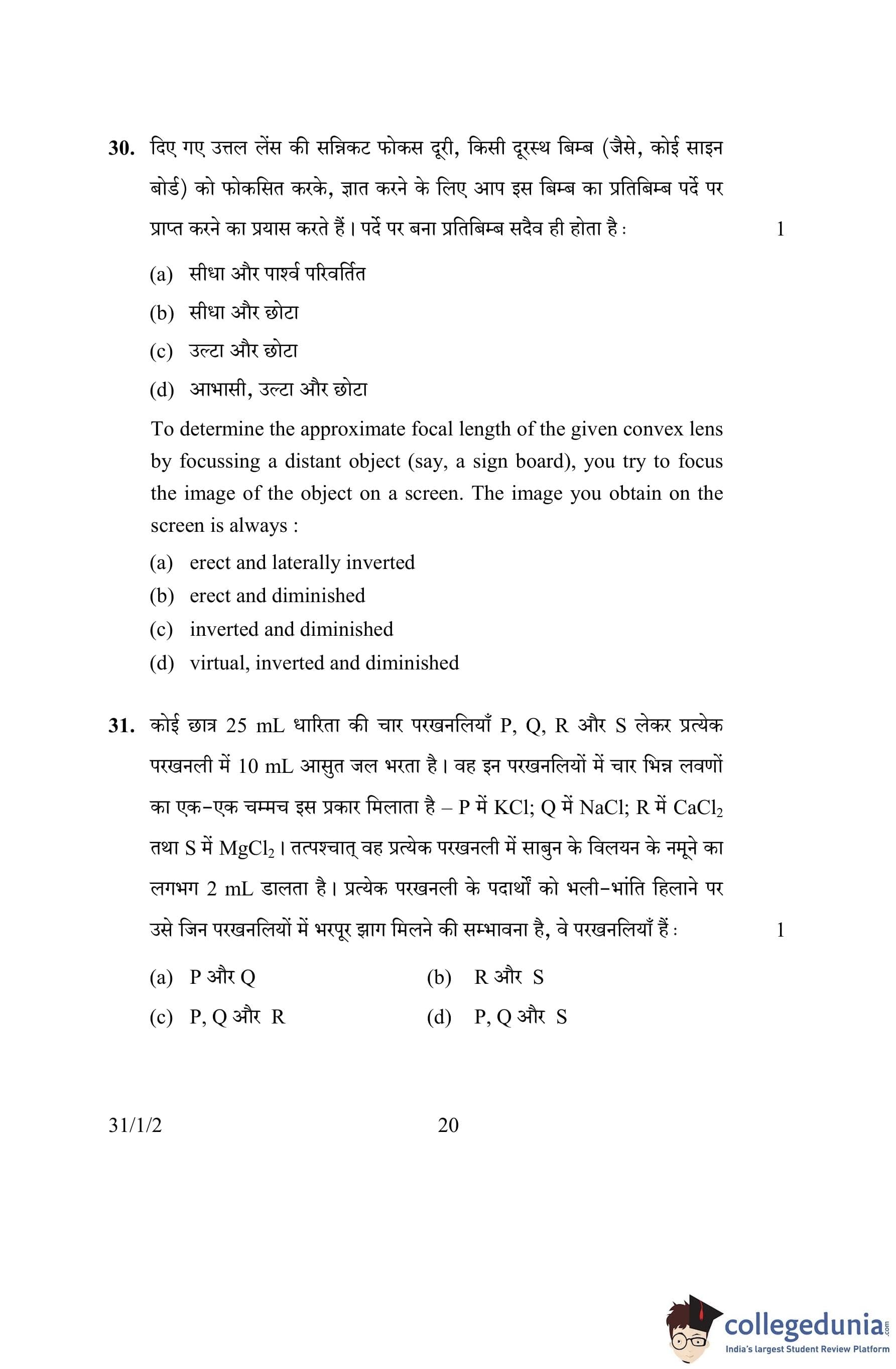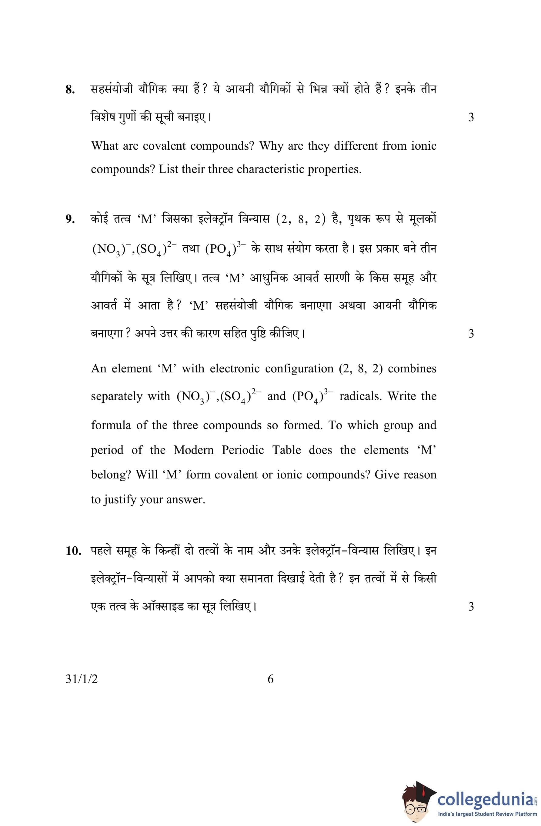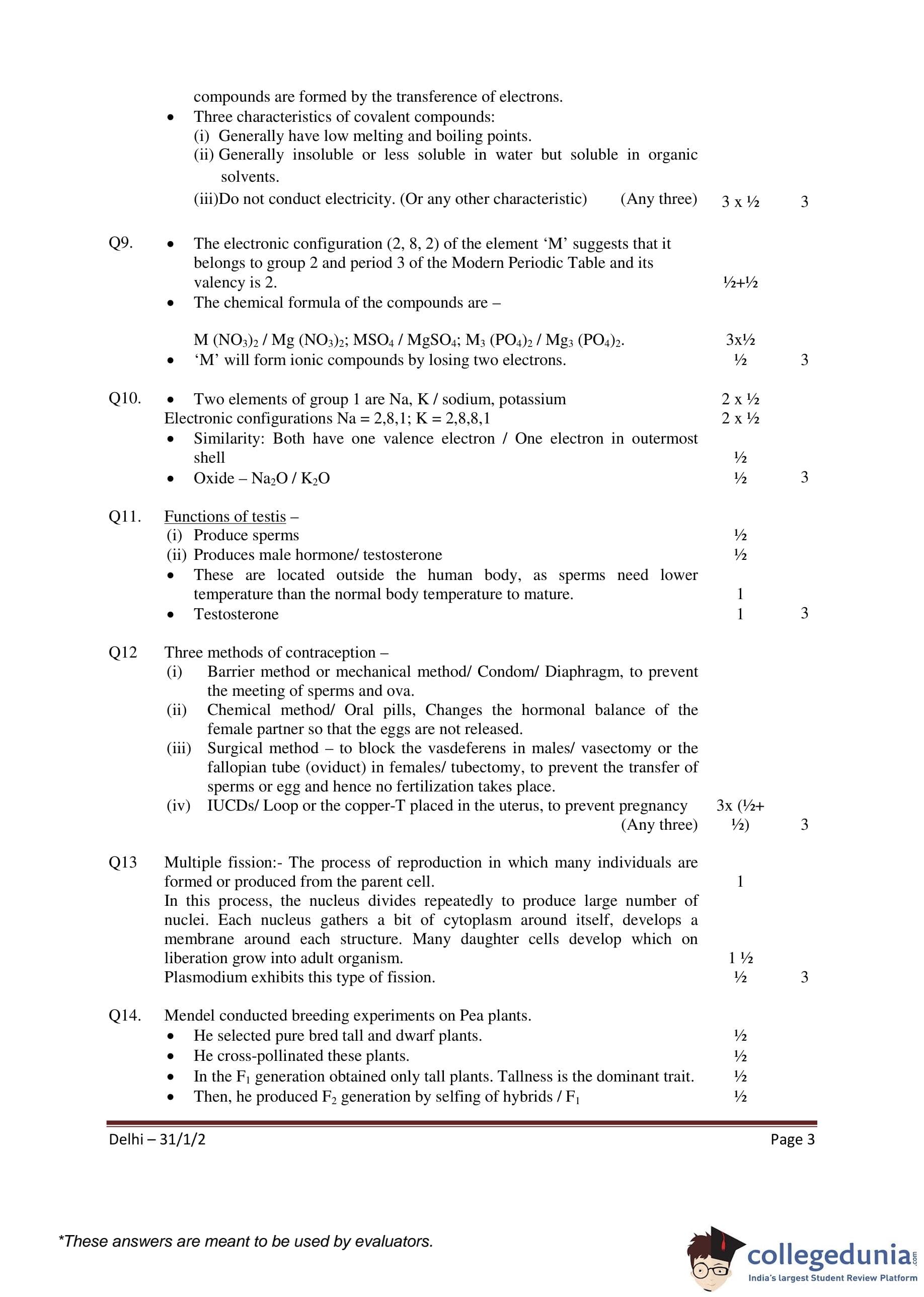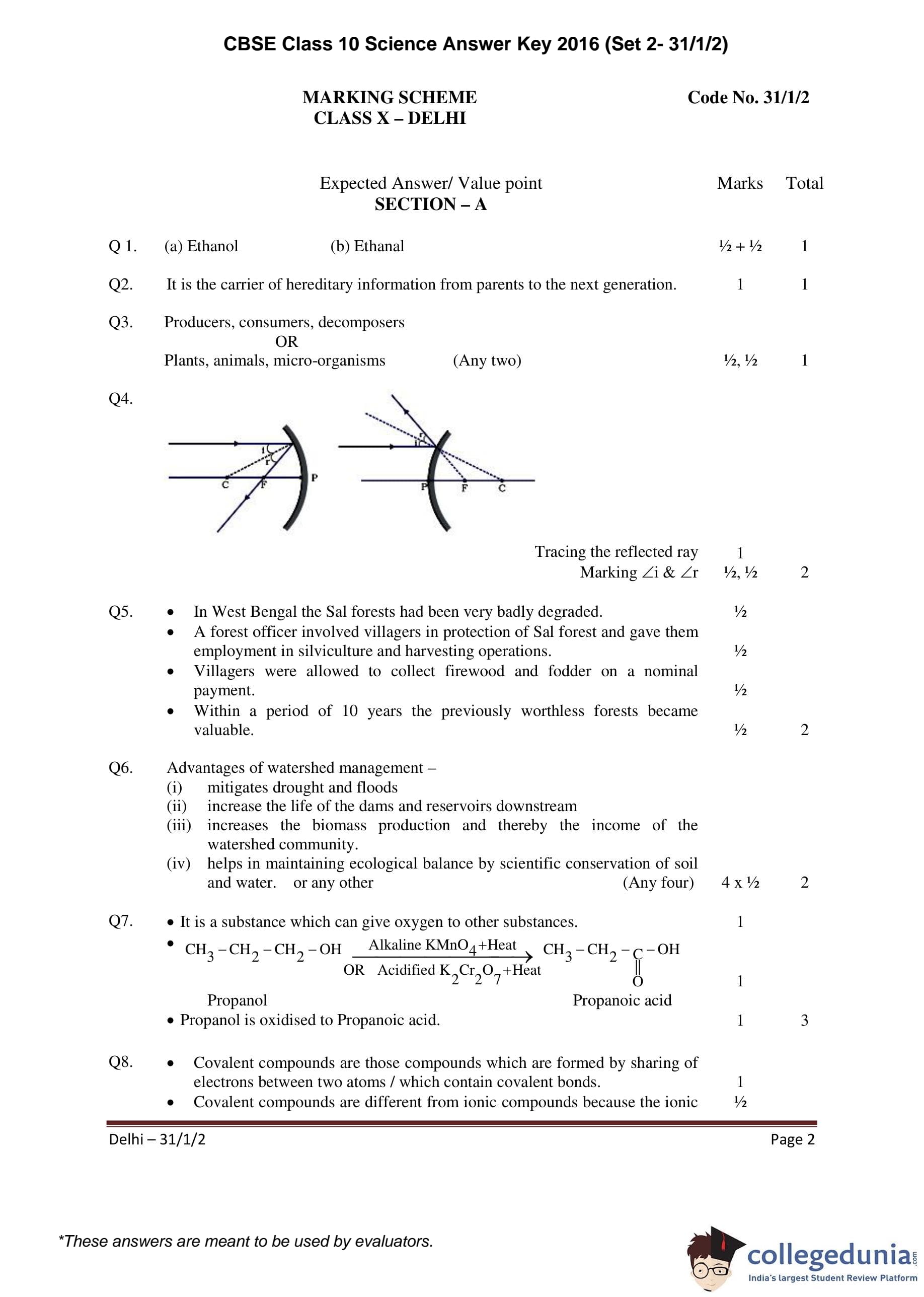 CBSE Class 10 Science Set 2- 31/1/2 Question Paper 2016 with Answer Key (March 2)