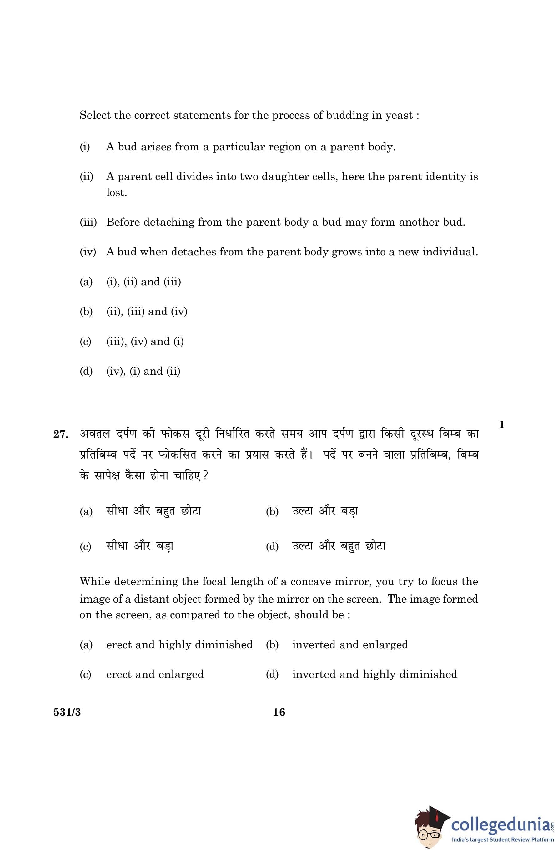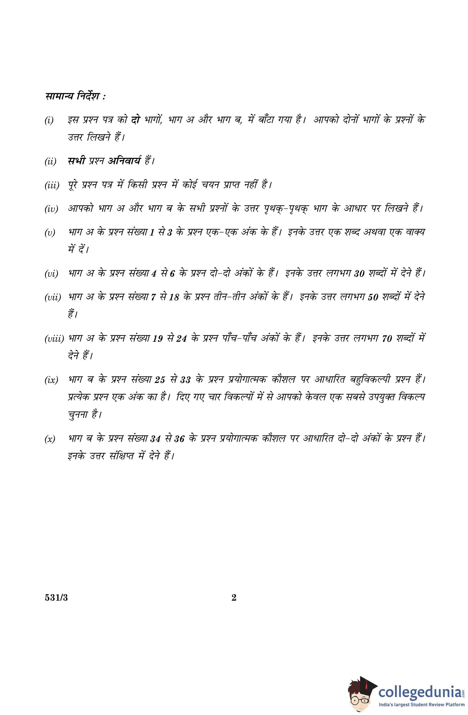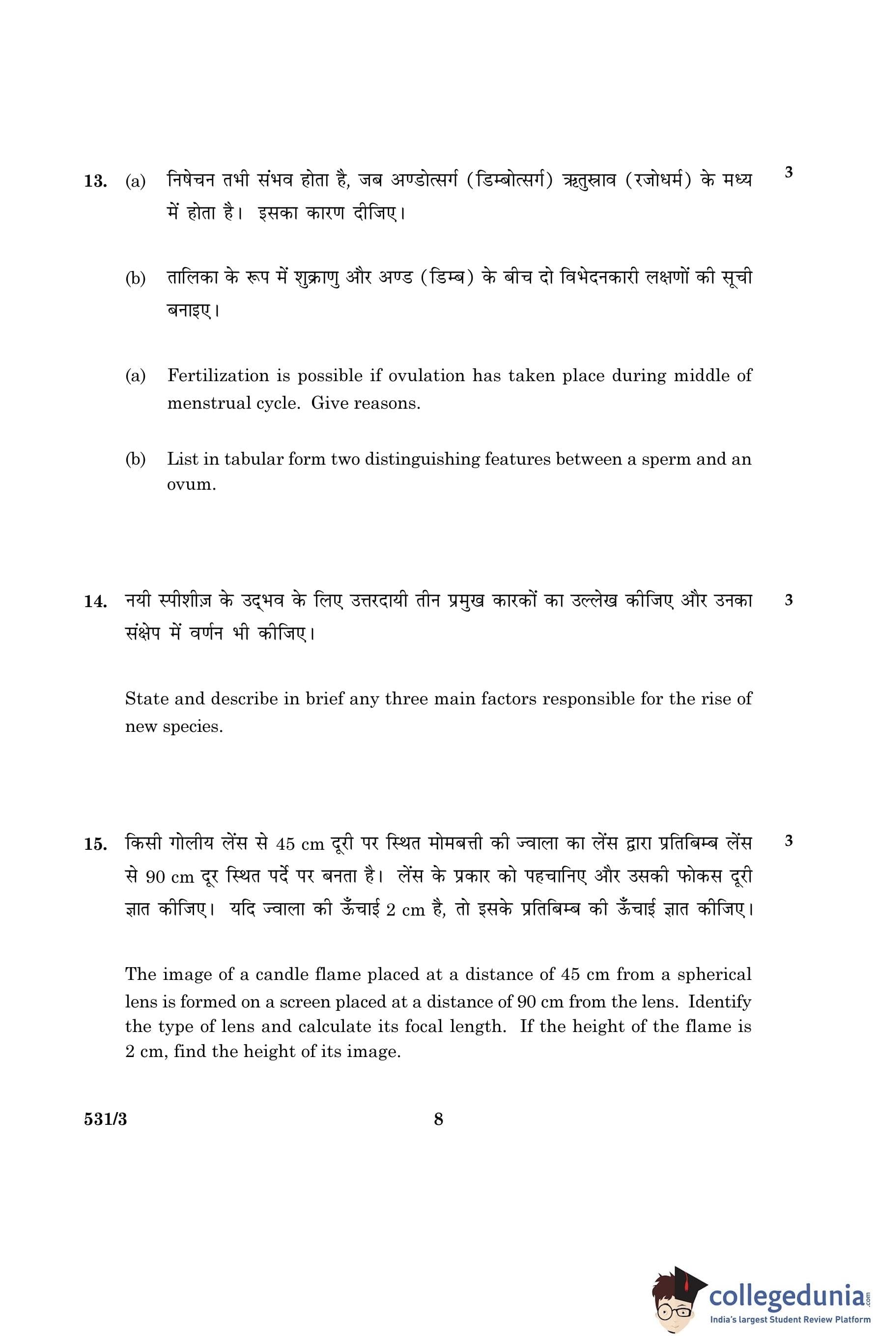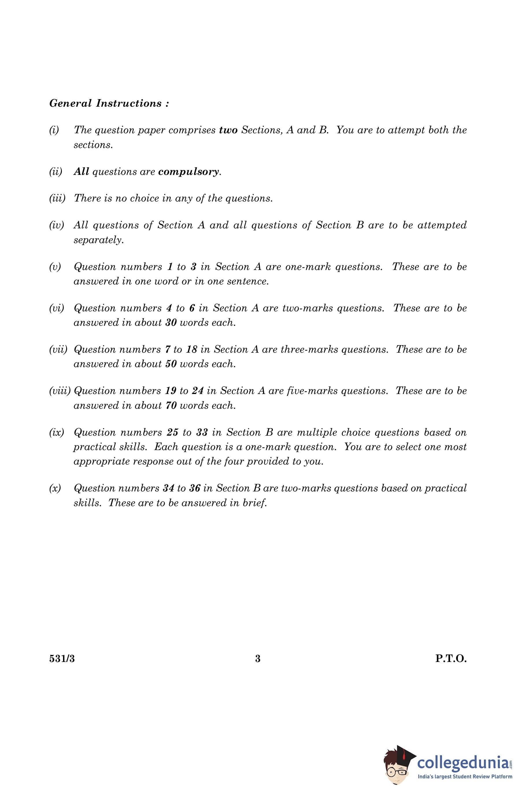 CBSE Class 10 Science Question Paper 2016 with Answer Key Set 3- 531/3 is available for download. The exam was conducted by the Central Board of Secondary Education on March 2, 2016 in the Morning Session 10:30 AM to 1:30 PM. The medium of paper was English and Hindi. The question paper comprised a total of 36 questions divided among 2 sections.
