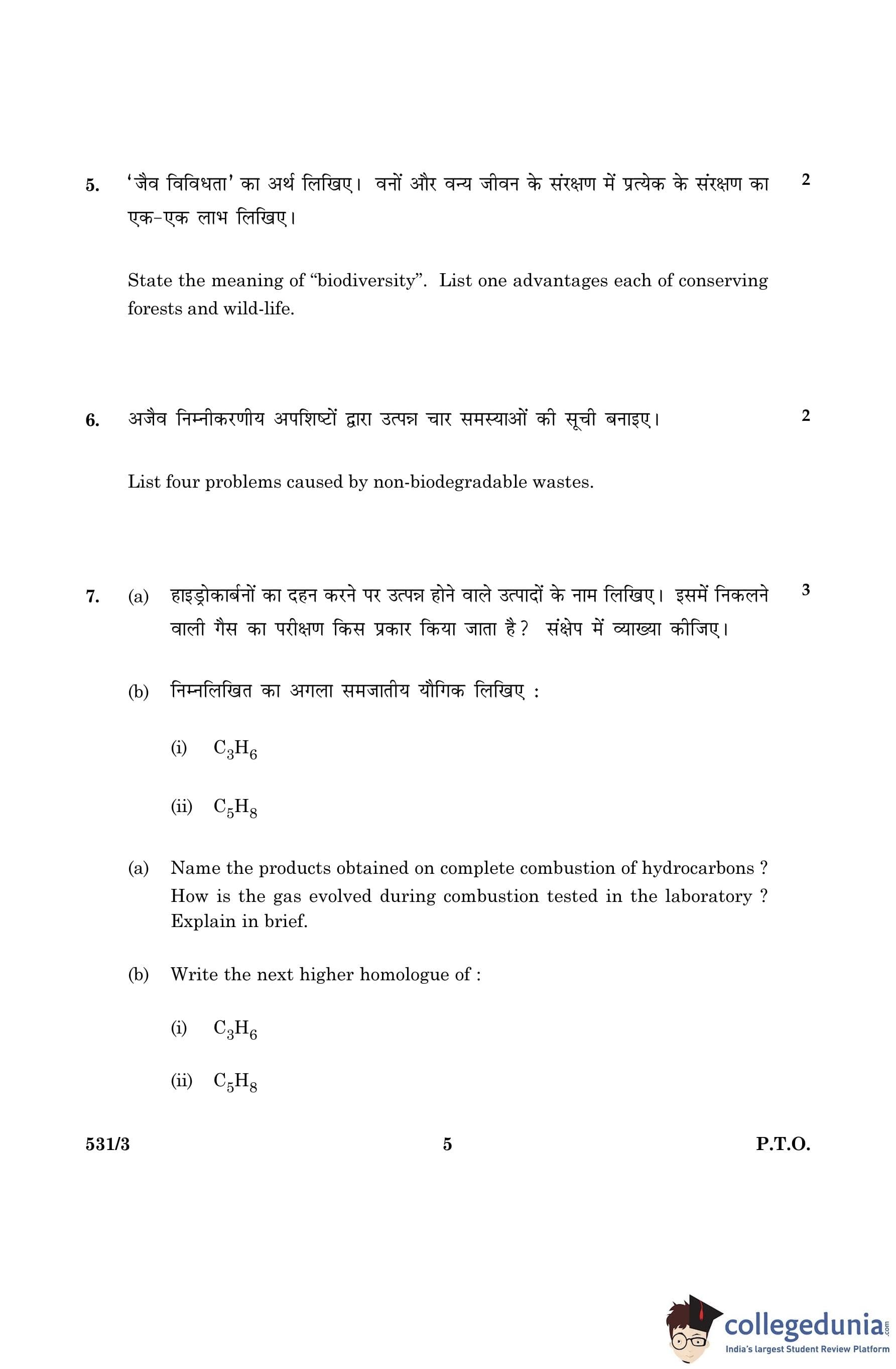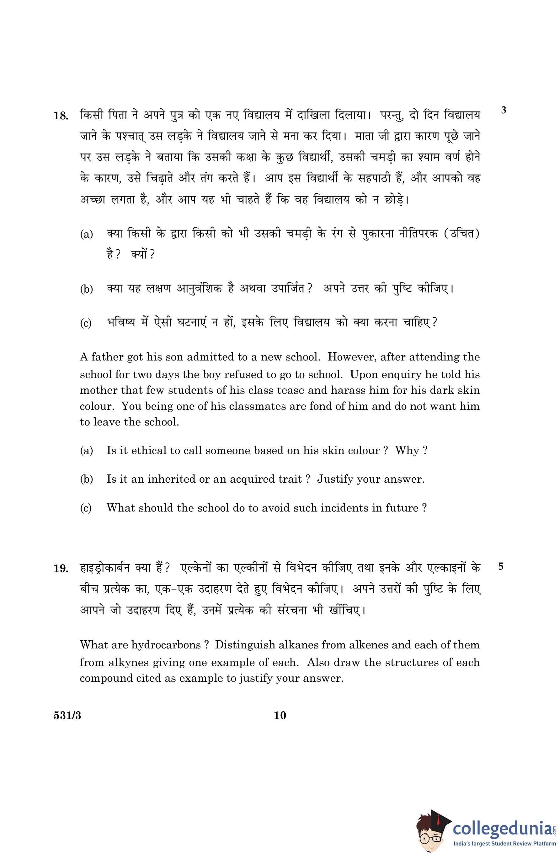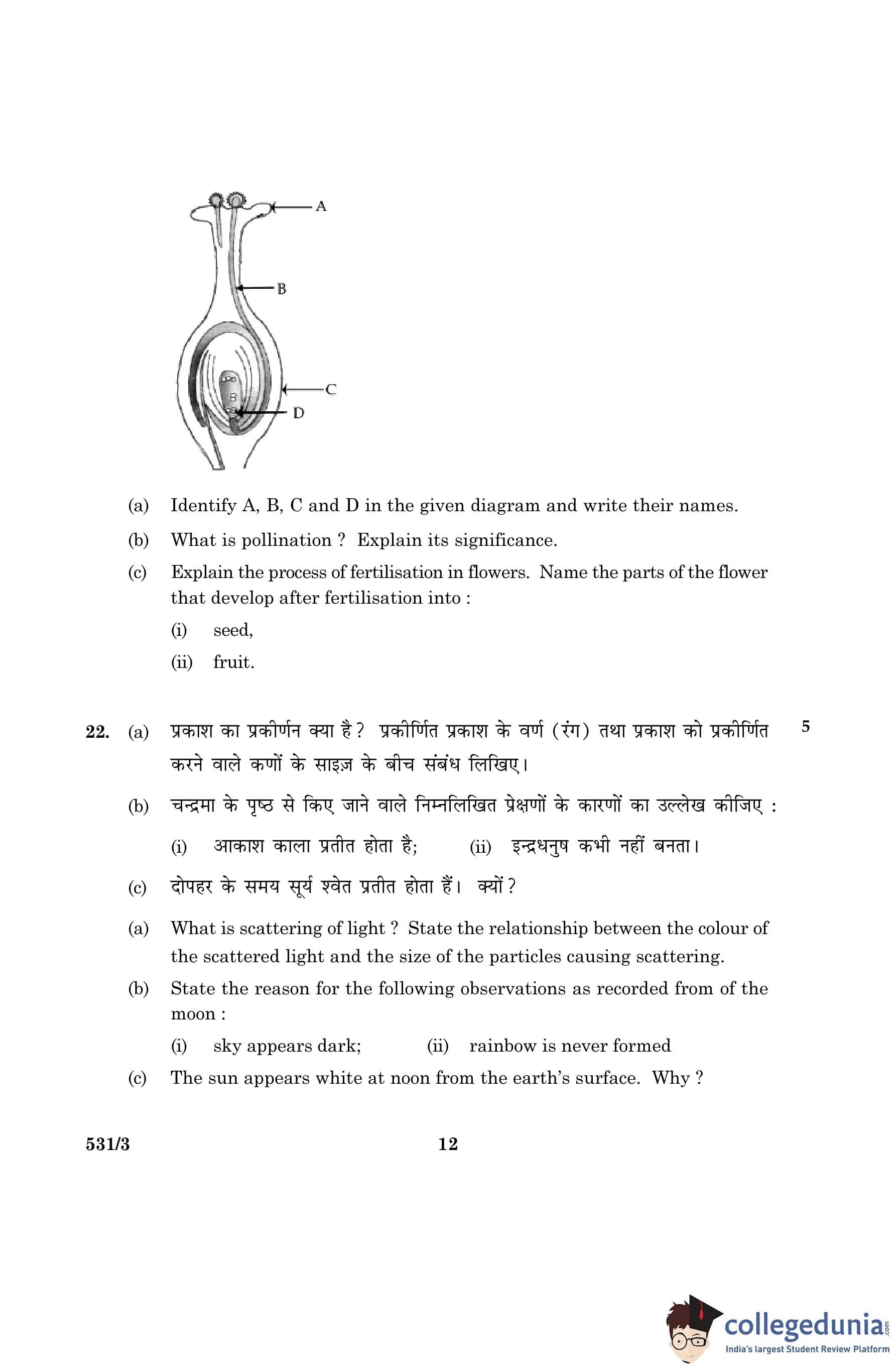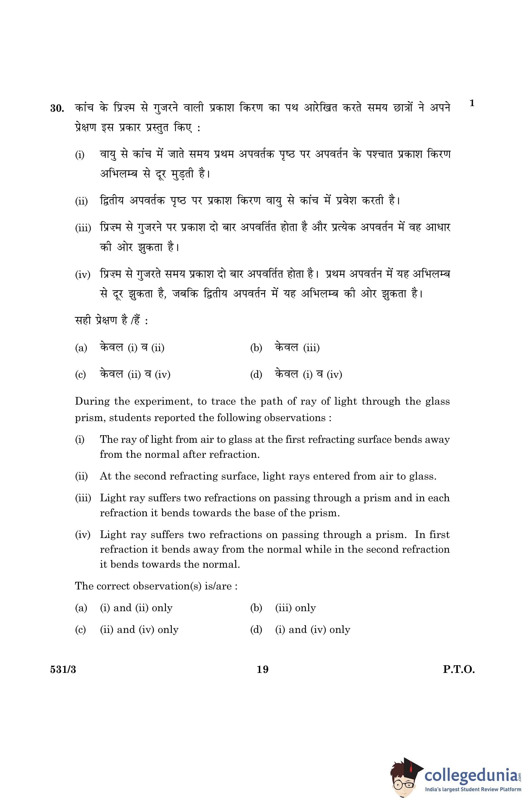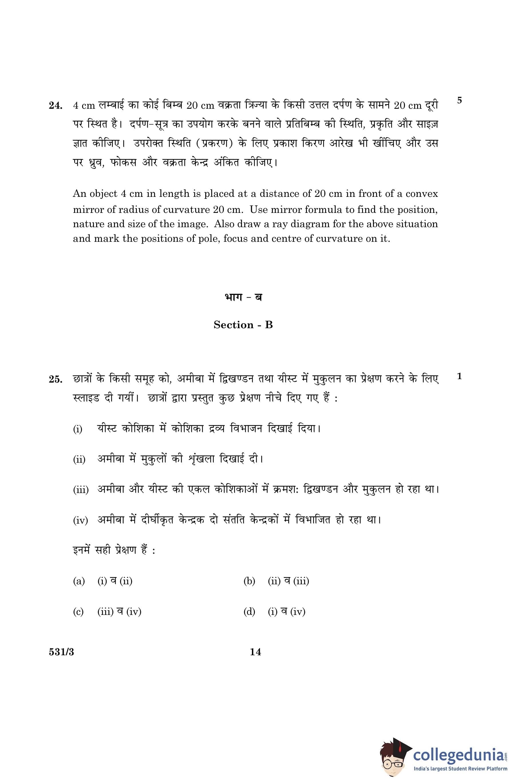 CBSE Class 10 Science Question Paper 2016 with Answer Key Set 3- 531/3 is available for download. The exam was conducted by the Central Board of Secondary Education on March 2, 2016 in the Morning Session 10:30 AM to 1:30 PM. The medium of paper was English and Hindi. The question paper comprised a total of 36 questions divided among 2 sections.