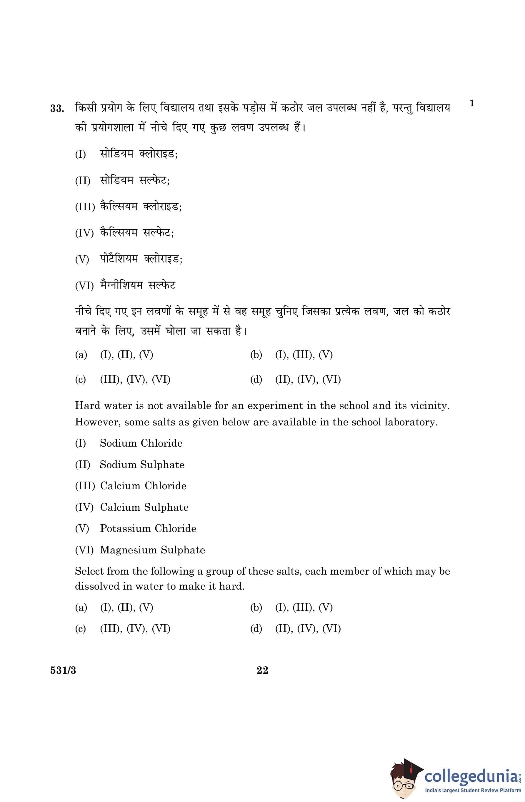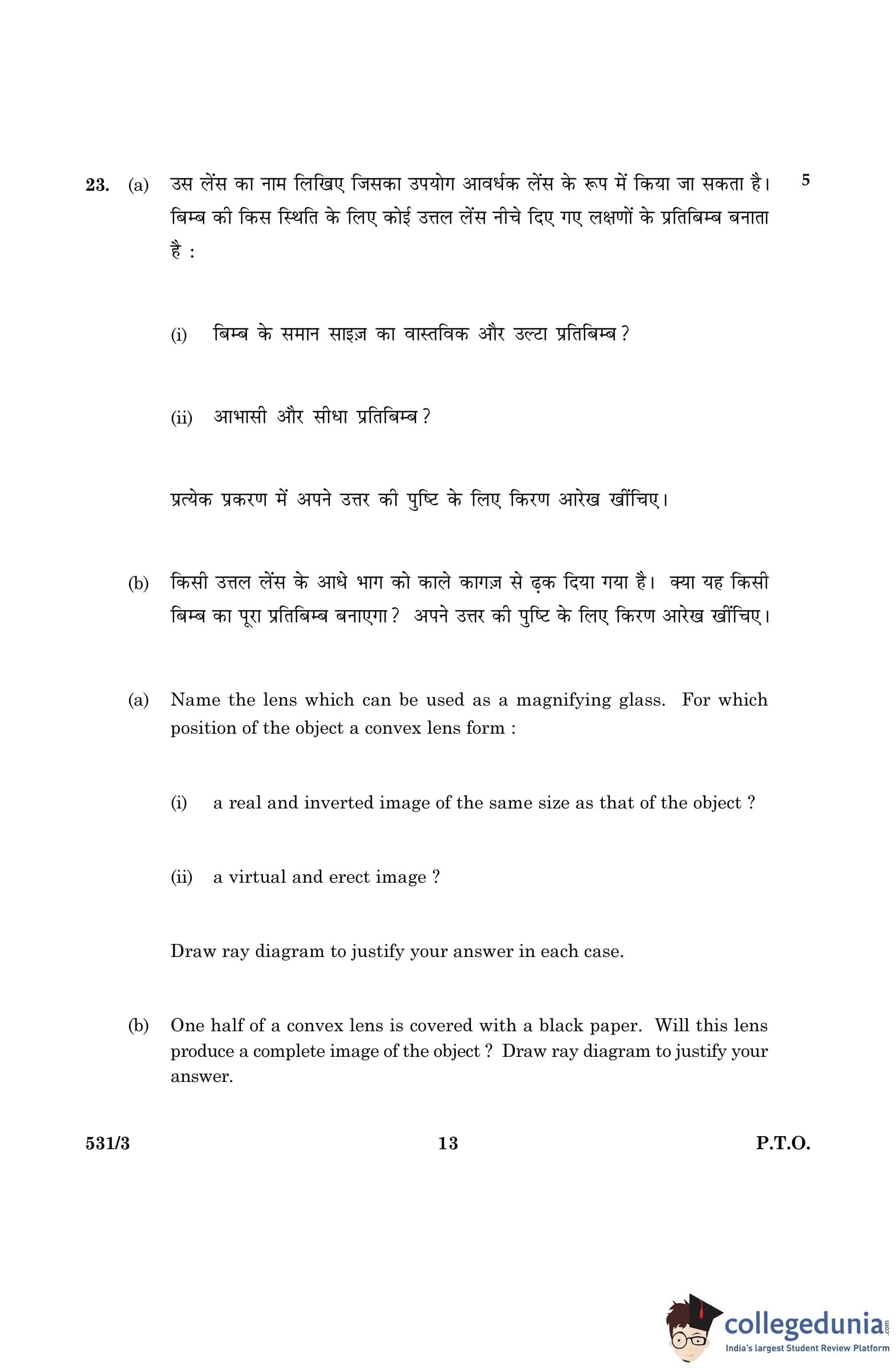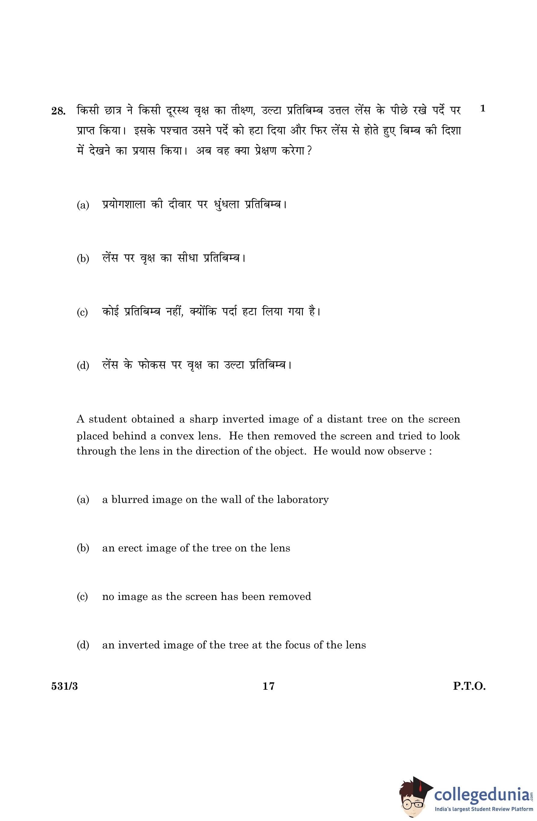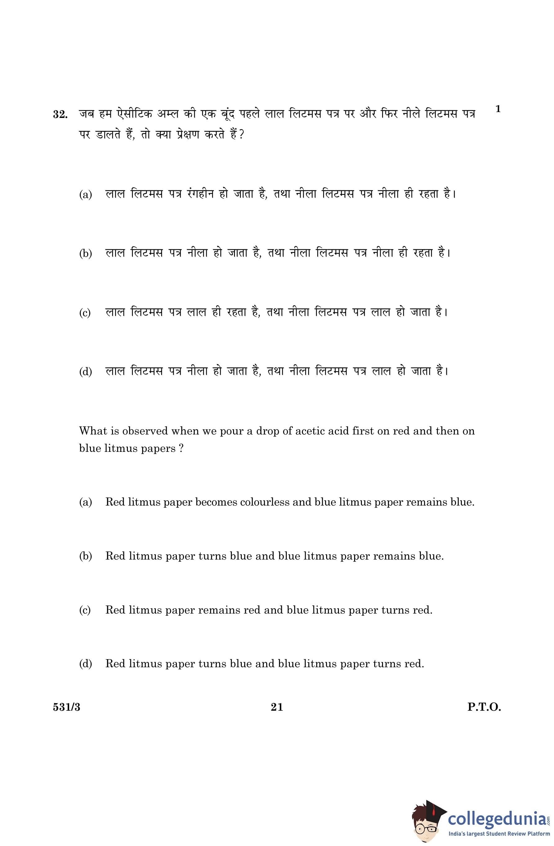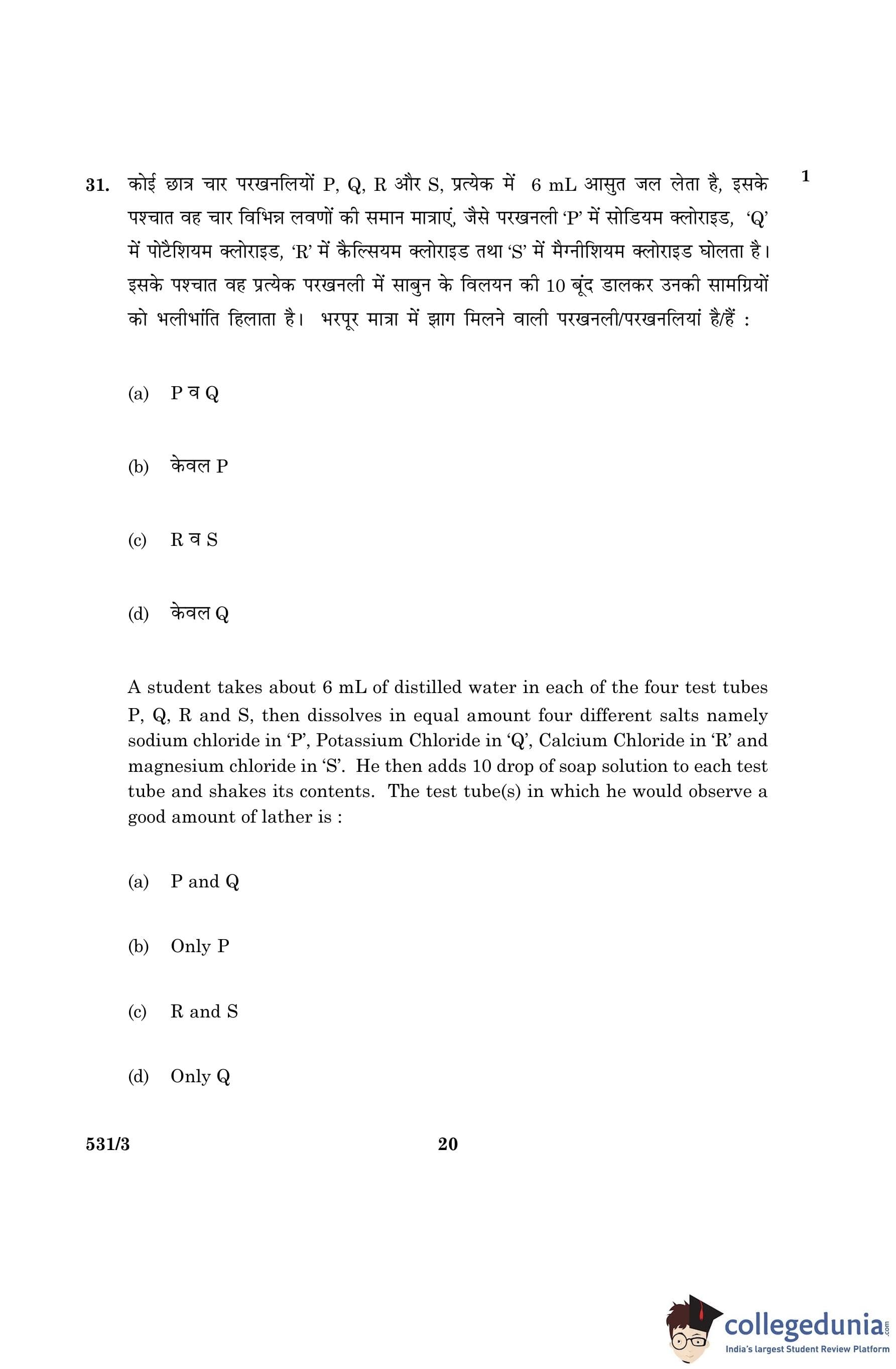 CBSE Class 10 Science Question Paper 2016 with Answer Key Set 3- 531/3 is available for download. The exam was conducted by the Central Board of Secondary Education on March 2, 2016 in the Morning Session 10:30 AM to 1:30 PM. The medium of paper was English and Hindi. The question paper comprised a total of 36 questions divided among 2 sections.