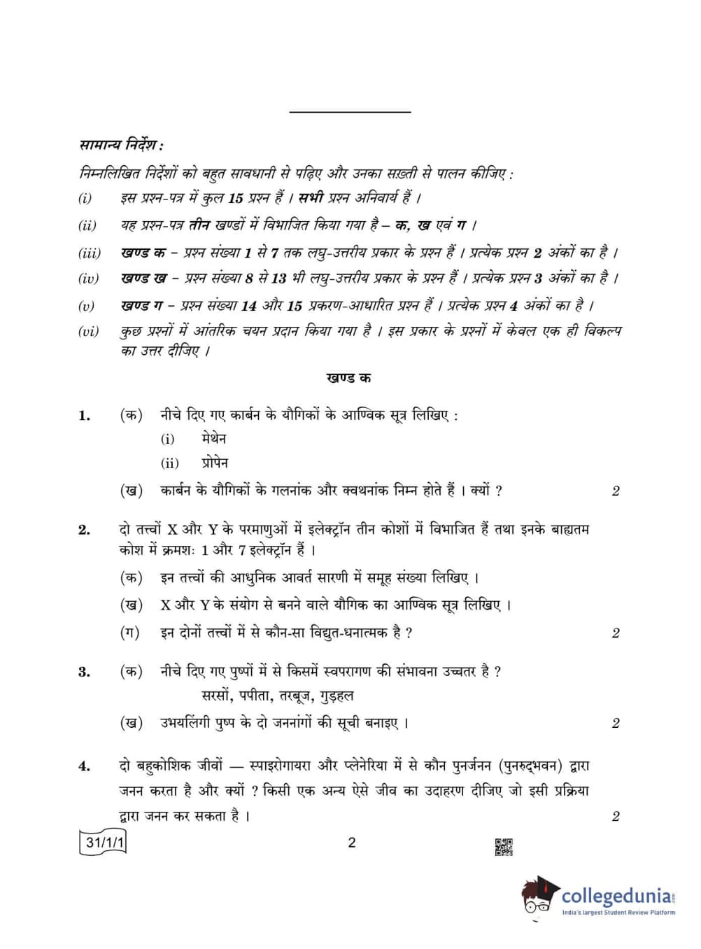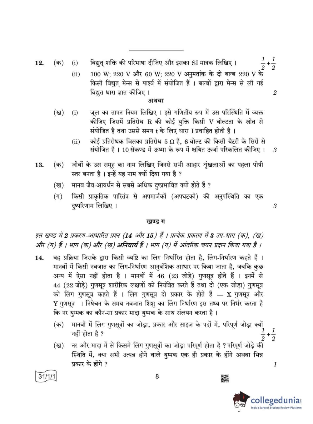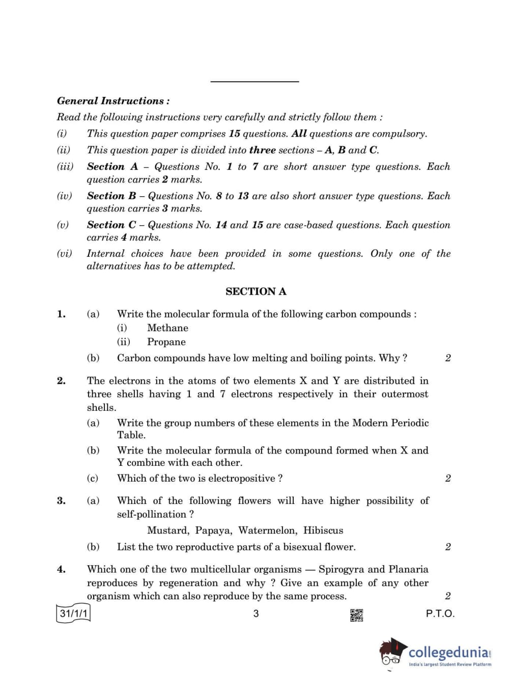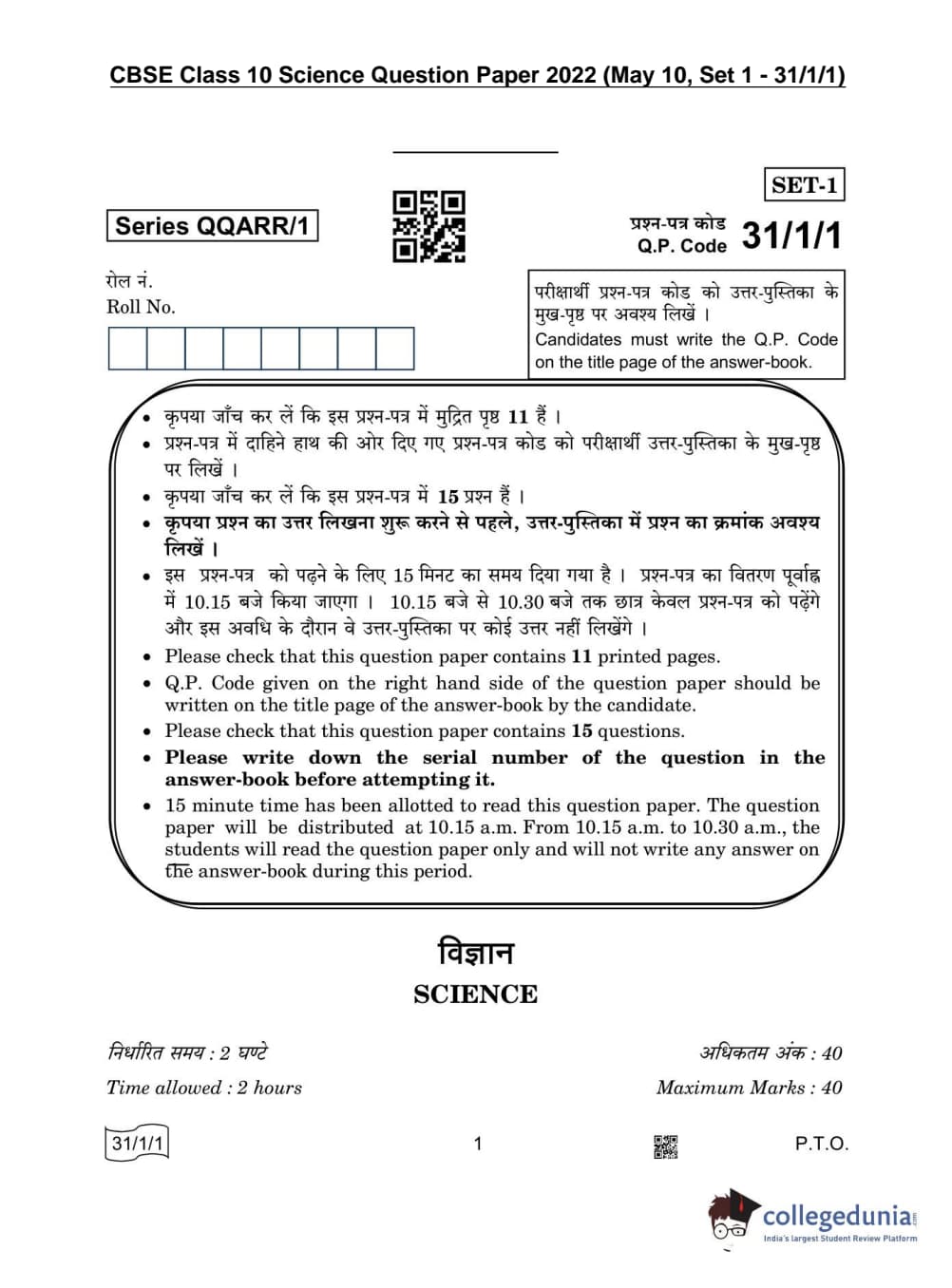 CBSE Class 10 Science Question Paper 2022 with Answer Key Set 1 - 31/1/1 is available for download. The exam was conducted by the Central Board of Secondary Education on May 10, 2022 in the Morning Session 10:30 AM to 12:30 PM. The medium of paper was English & Hindi. The question paper comprised a total of 15 questions divided among 3 sections.