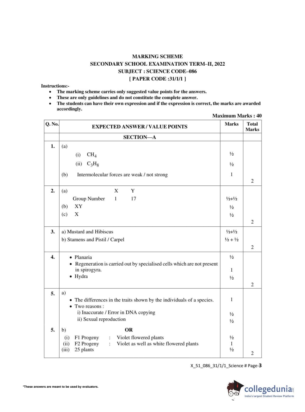 | CBSE Class 10 Science Question Paper 2022 PDF | CBSE Class 10 Science Answer Key 2022 PDF | Detailed Solutions |