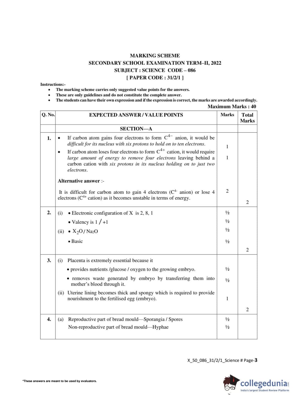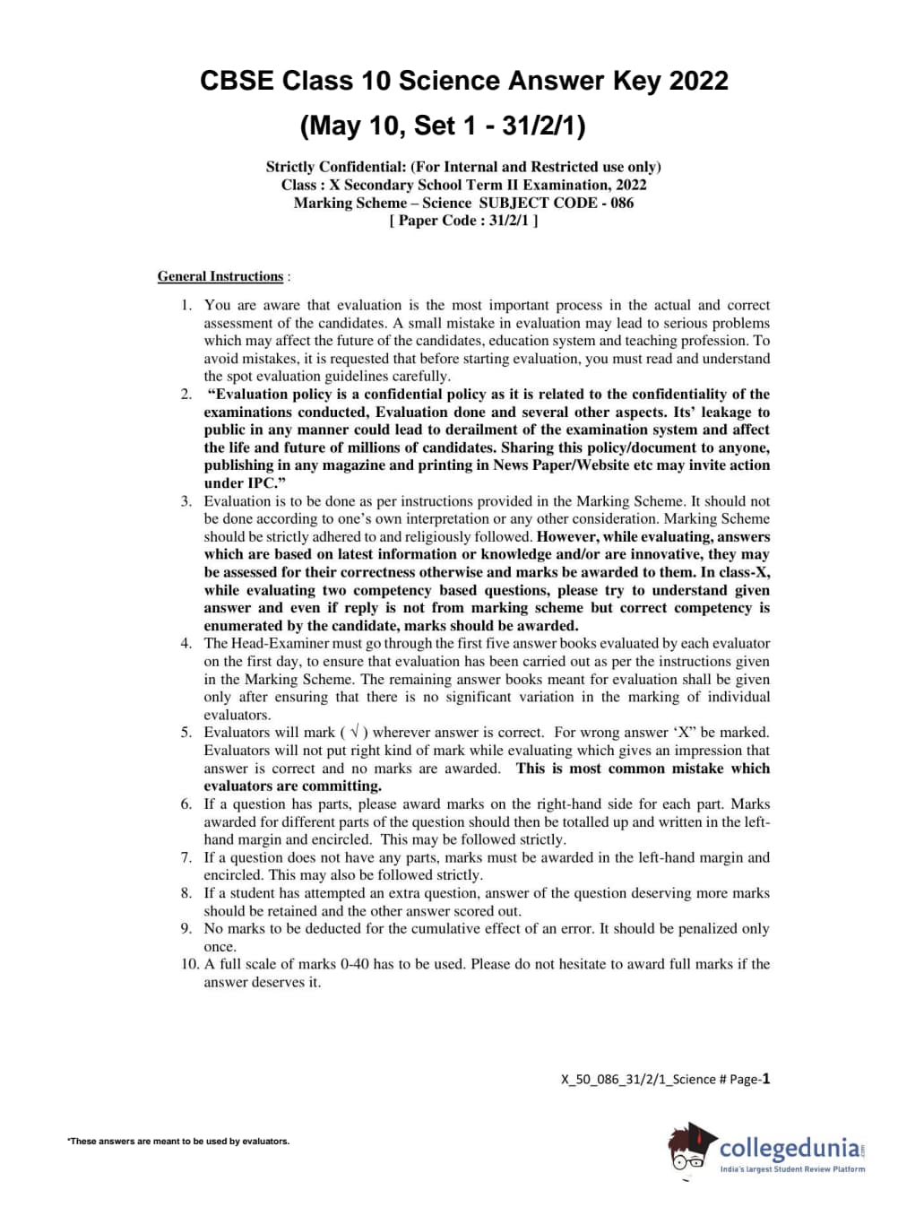 | CBSE Class 10 Science Question Paper 2022 PDF | CBSE Class 10 Science Answer Key 2022 PDF | Detailed Solutions |