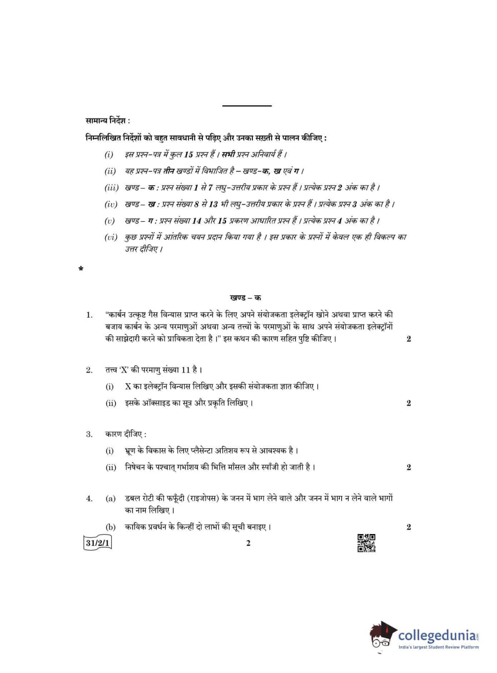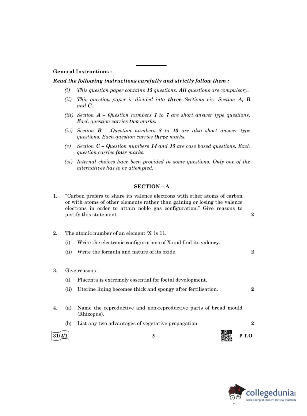 CBSE Class 10 Science Question Paper 2022 with Answer Key Set 1 - 31/2/1 is available for download. The exam was conducted by the Central Board of Secondary Education on May 10, 2022 in the Morning Session 10:30 AM to 12:30 PM. The medium of paper was English & Hindi. The question paper comprised a total of 15 questions divided among 3 sections.