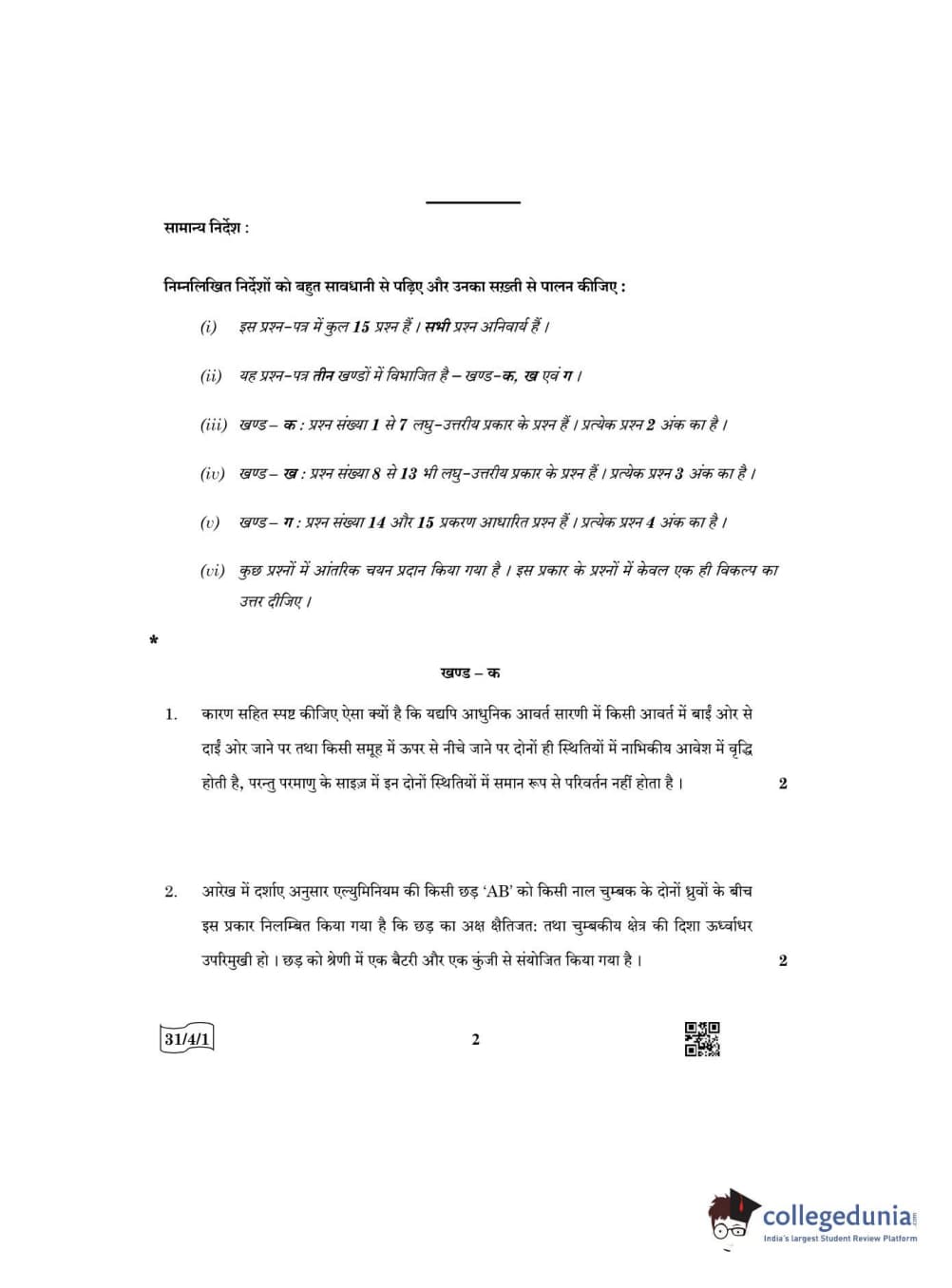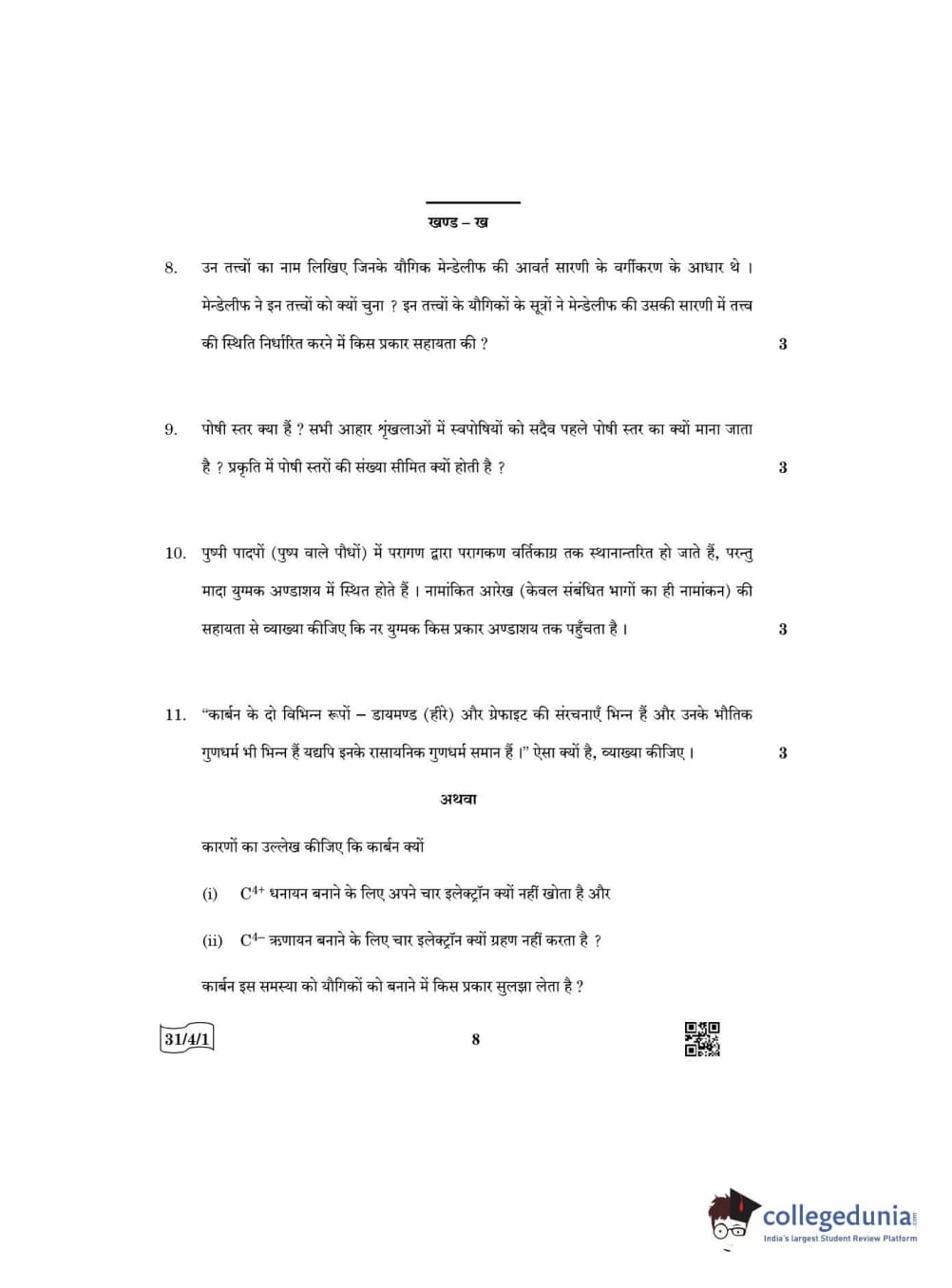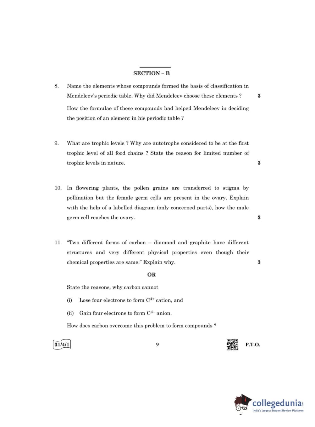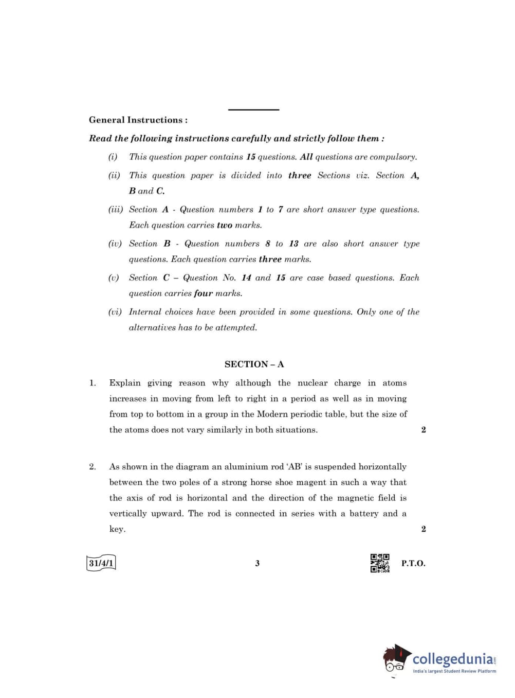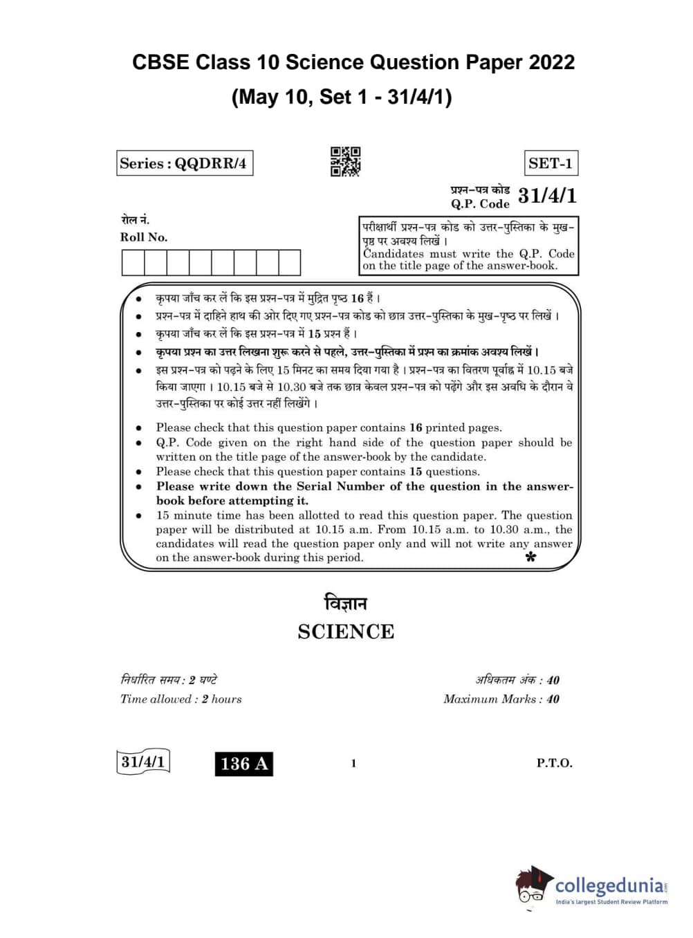 CBSE Class 10 Science Question Paper 2022 with Answer Key Set 1 - 31/4/1 is available for download. The exam was conducted by the Central Board of Secondary Education on May 10, 2022 in the Morning Session 10:30 AM to 12:30 PM. The medium of paper was English & Hindi. The question paper comprised a total of 15 questions divided among 3 sections.