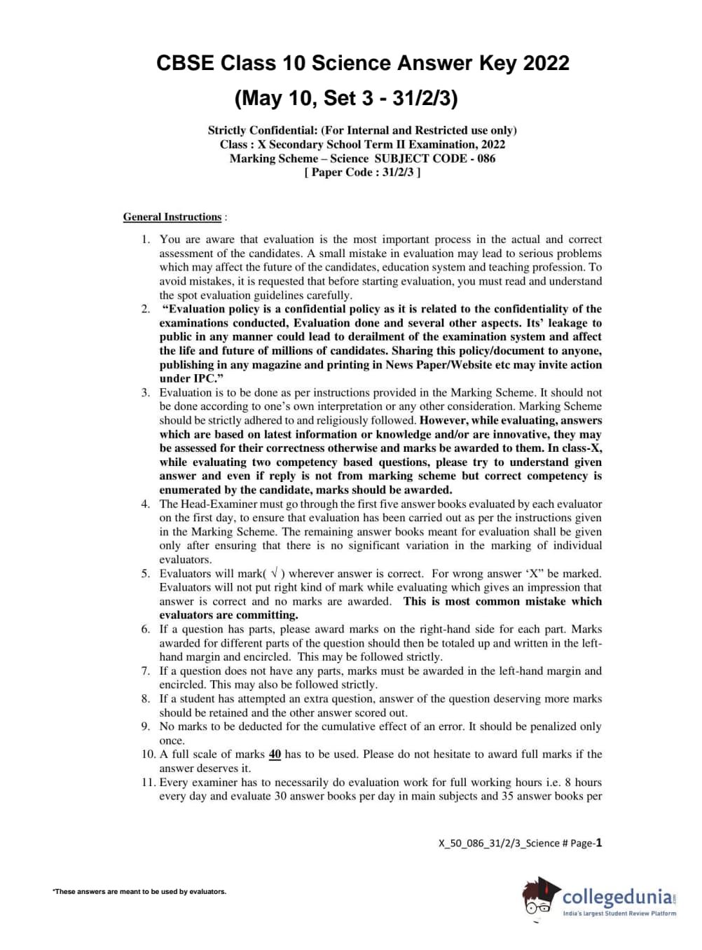 | CBSE Class 10 Science Question Paper 2022 PDF | CBSE Class 10 Science Answer Key 2022 PDF | Detailed Solutions |