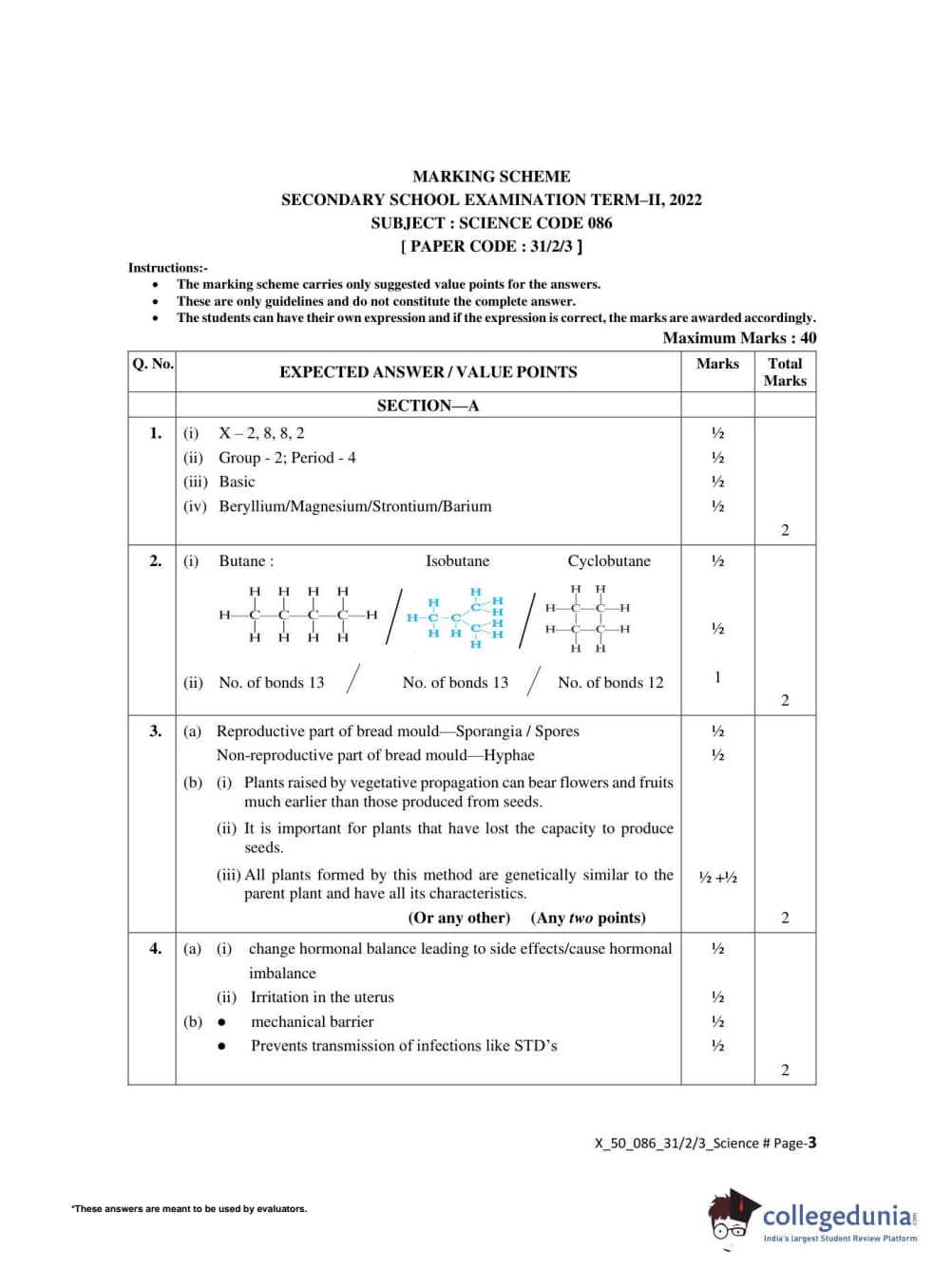 CBSE Class 10 Science Set 3 - 31/2/3 Question Paper 2022 with Answer Key (May 10)
