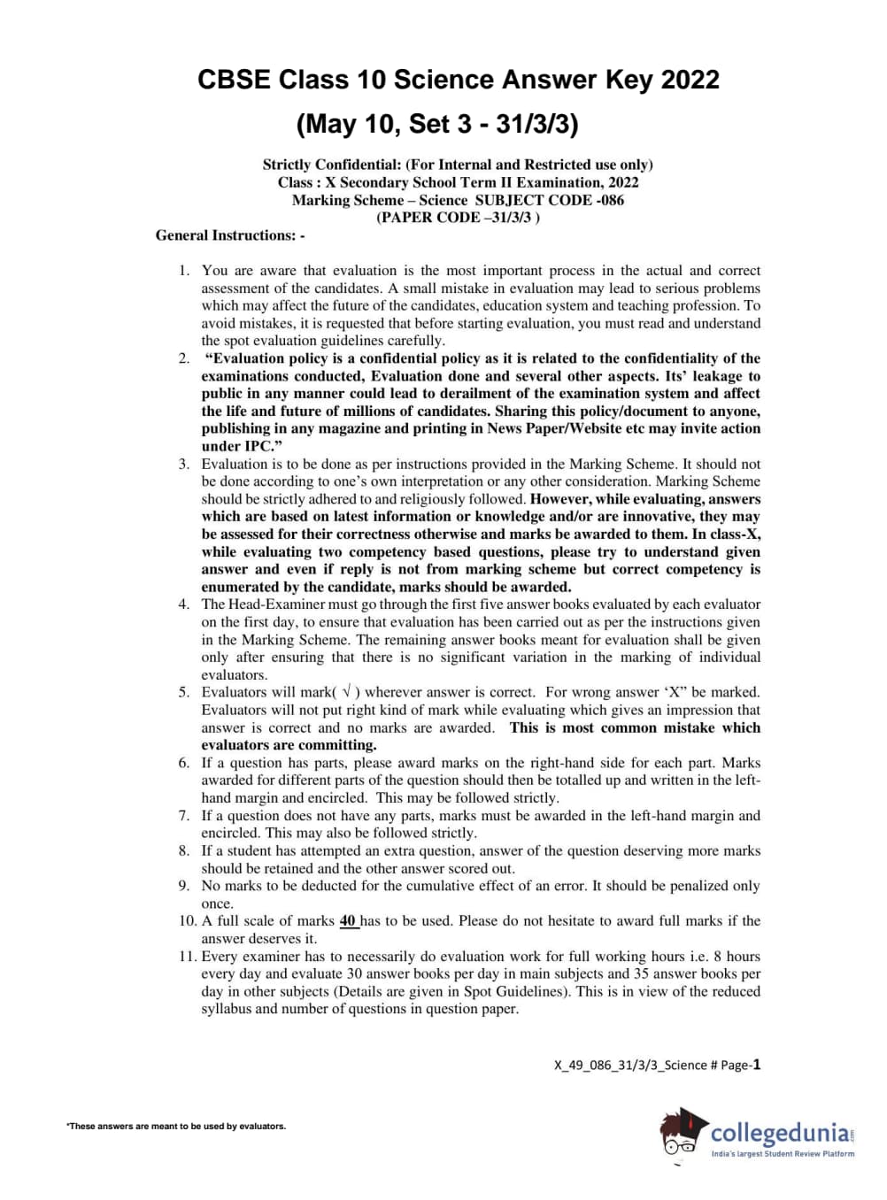 | CBSE Class 10 Science Question Paper 2022 PDF | CBSE Class 10 Science Answer Key 2022 PDF | Detailed Solutions |