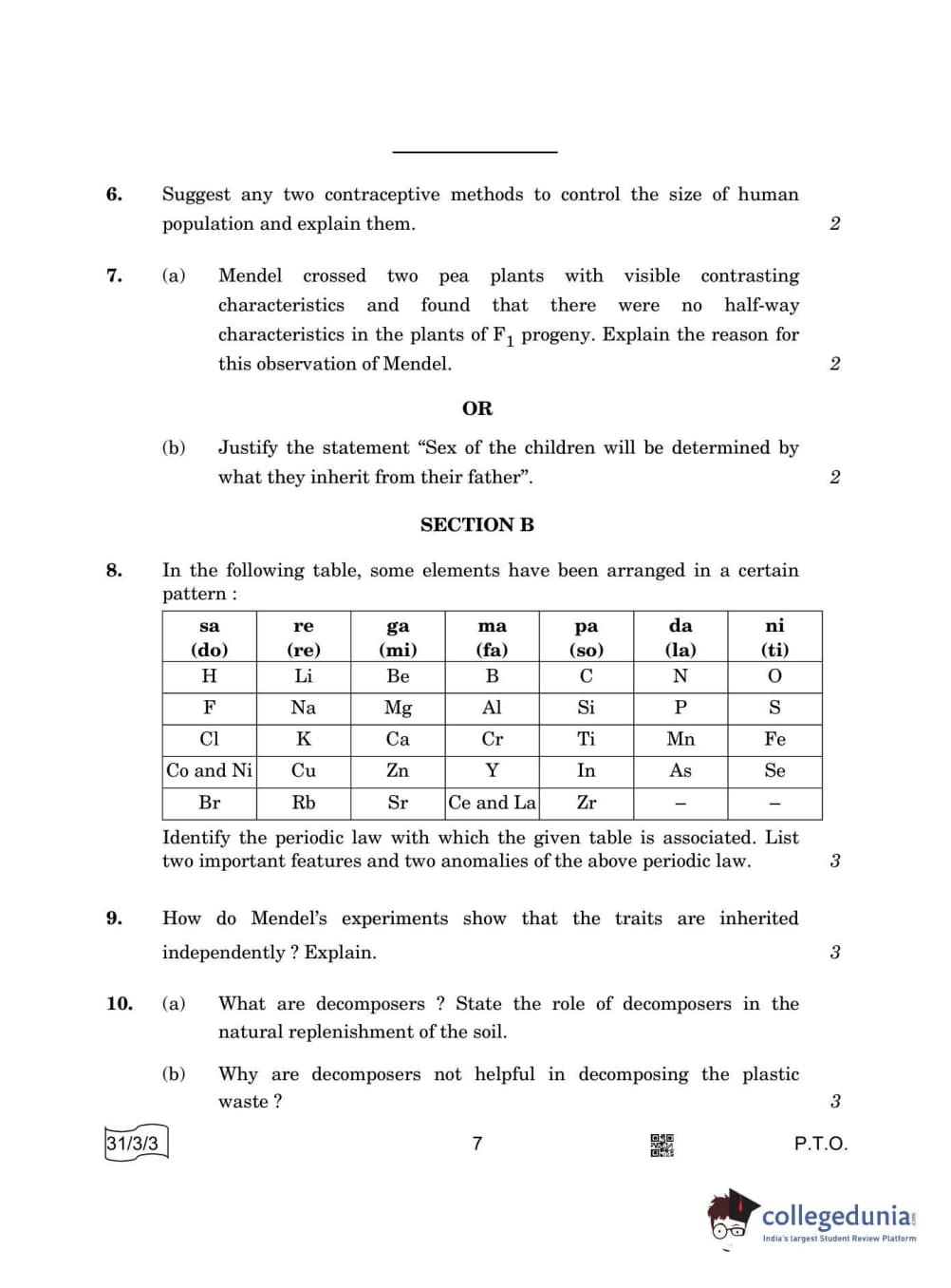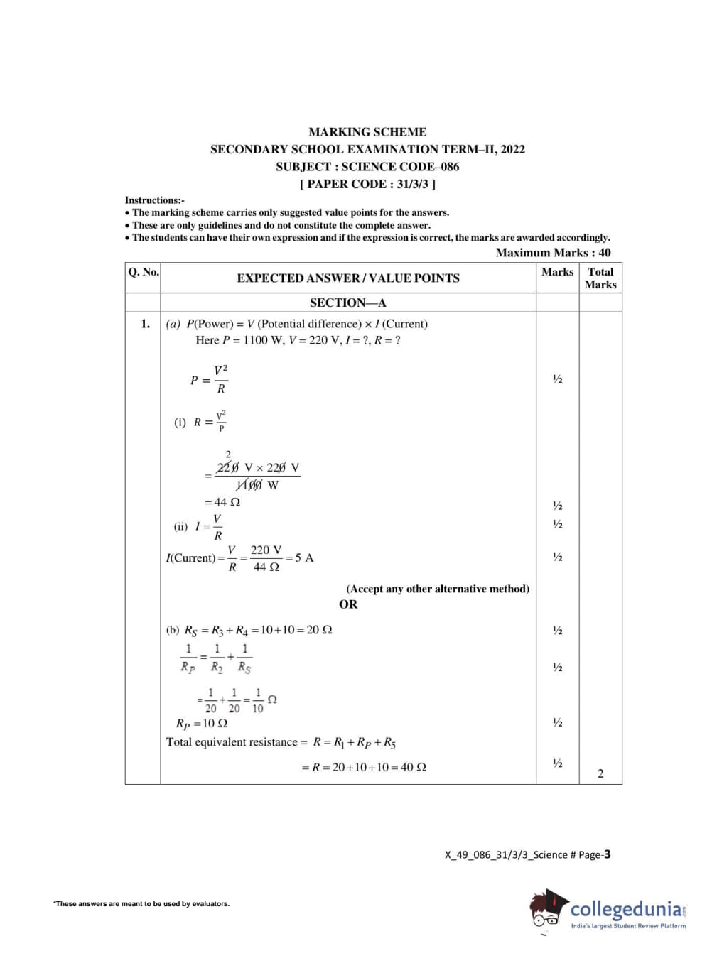 CBSE Class 10 Science Set 3 - 31/3/3 Question Paper 2022 with Answer Key (May 10)