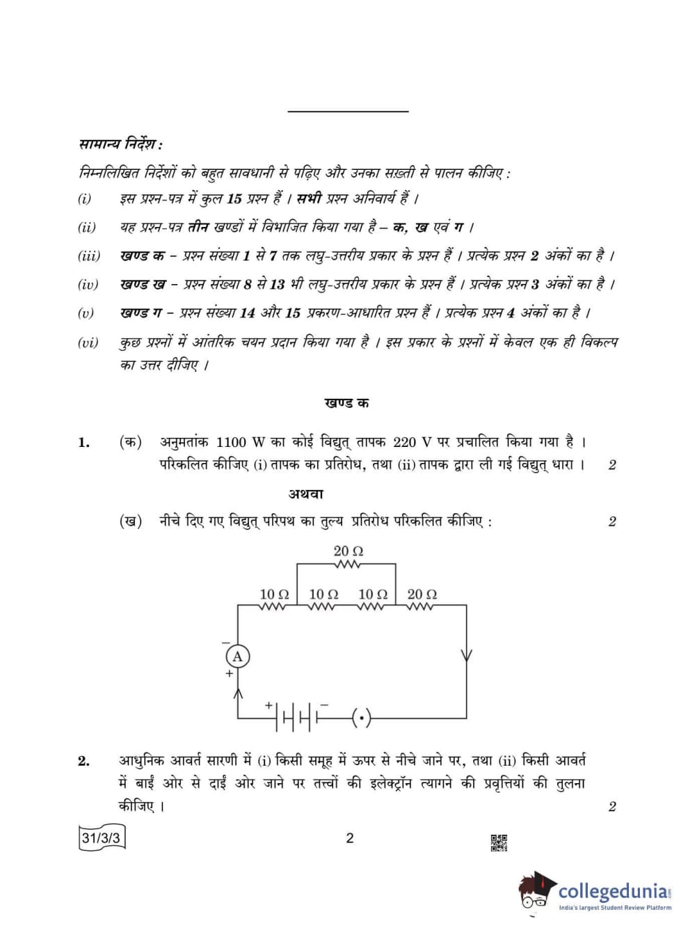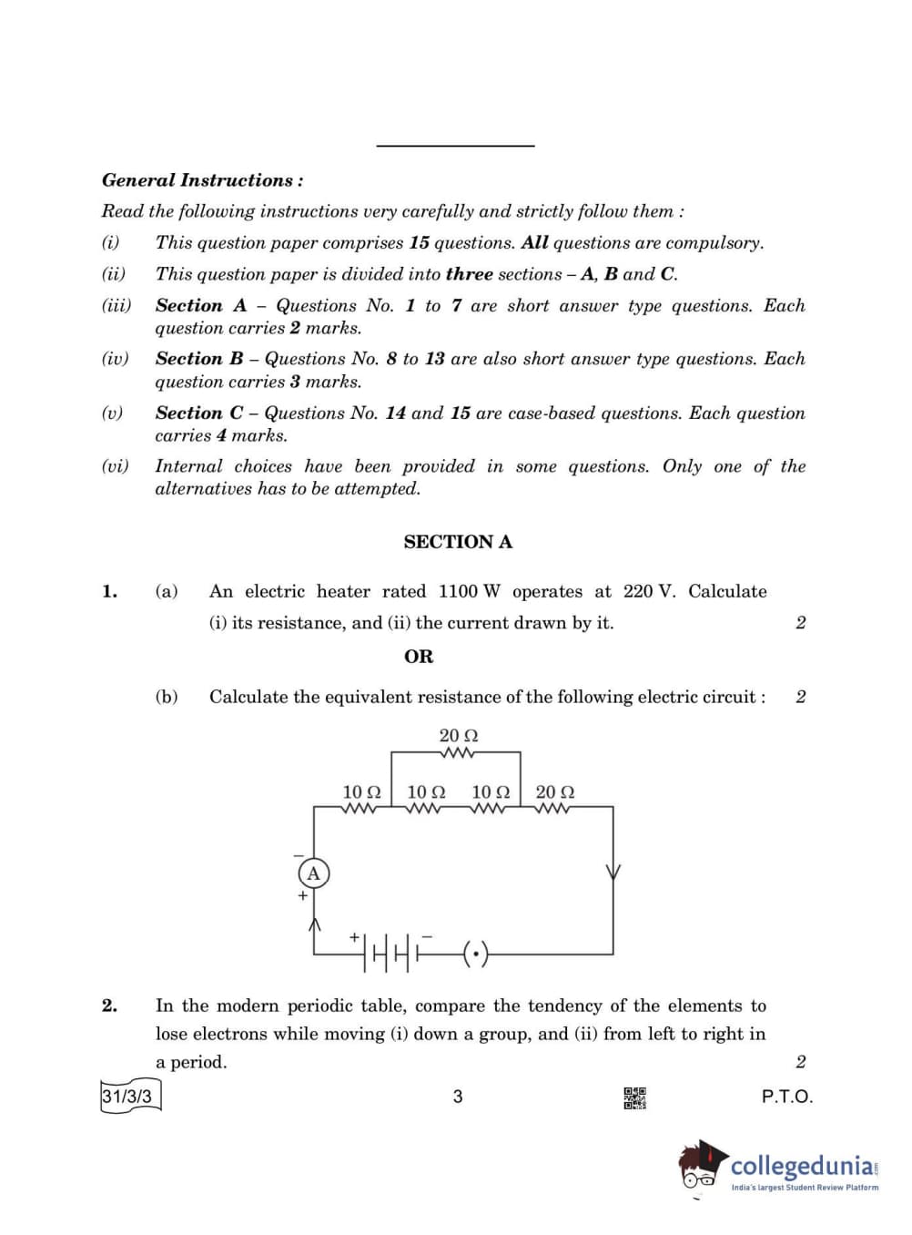CBSE Class 10 Science Question Paper 2022 with Answer Key Set 3 - 31/3/3 is available for download. The exam was conducted by the Central Board of Secondary Education on May 10, 2022 in the Morning Session 10:30 AM to 12:30 PM. The medium of paper was English & Hindi. The question paper comprised a total of 15 questions divided among 3 sections.