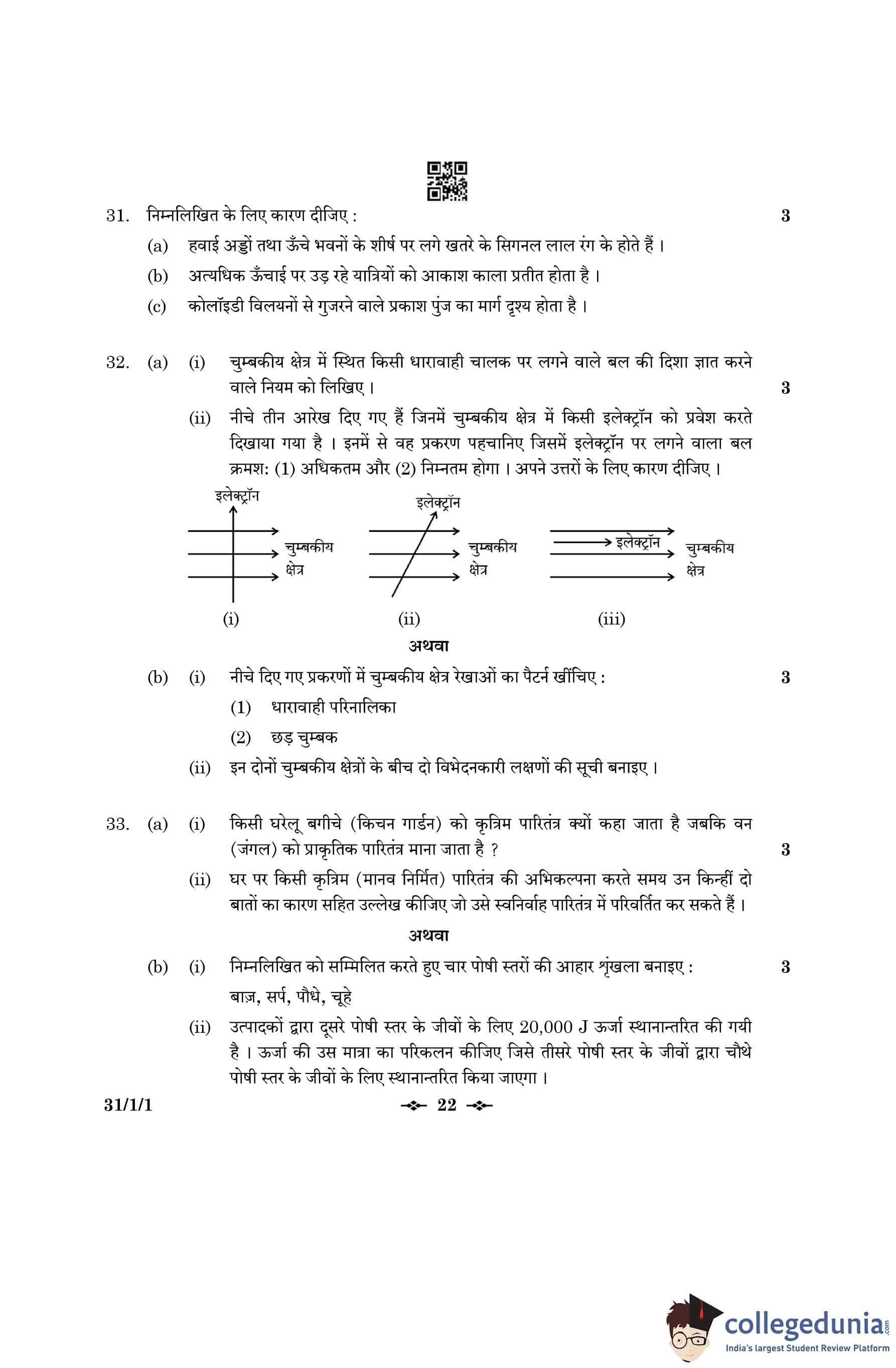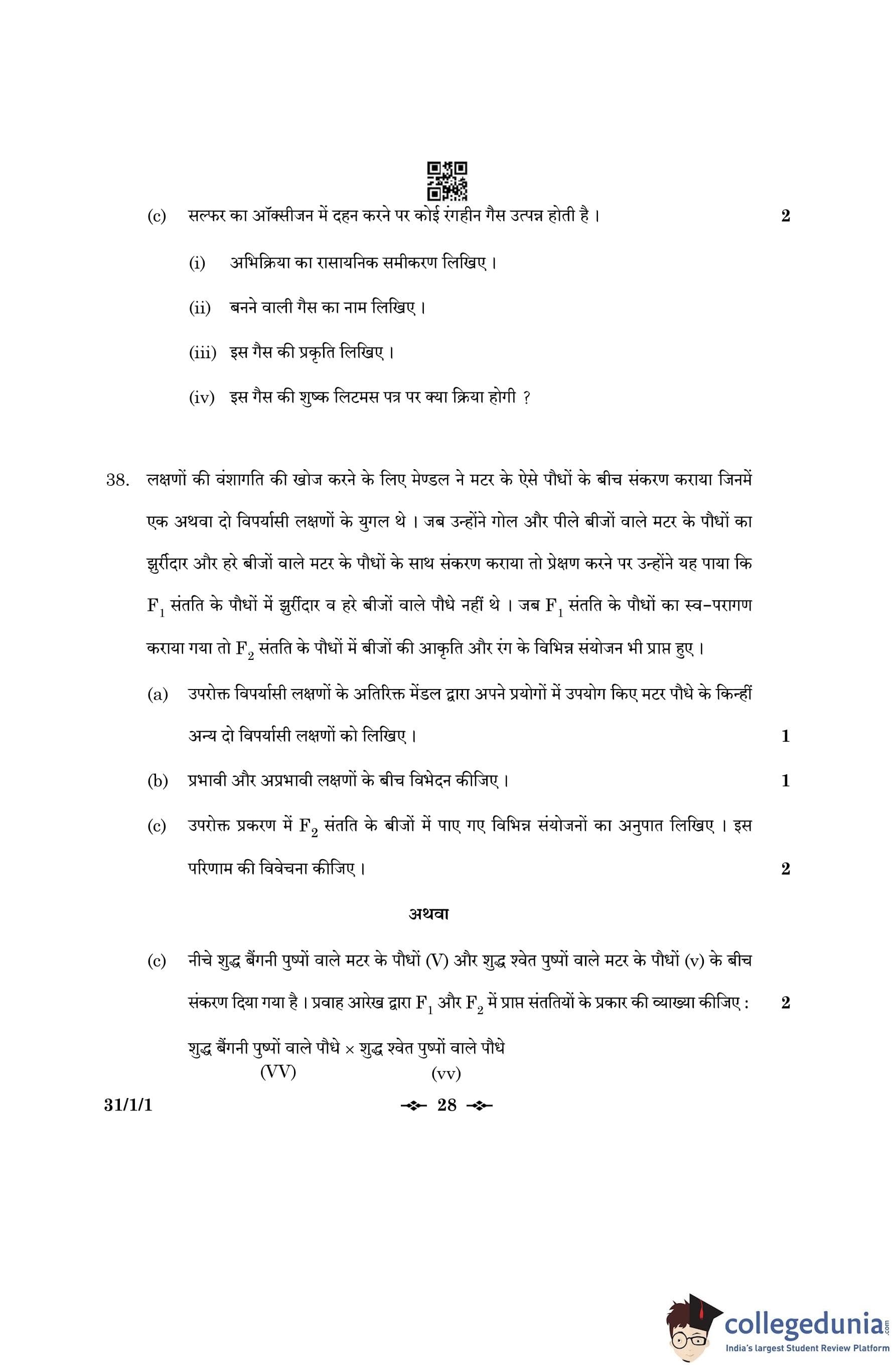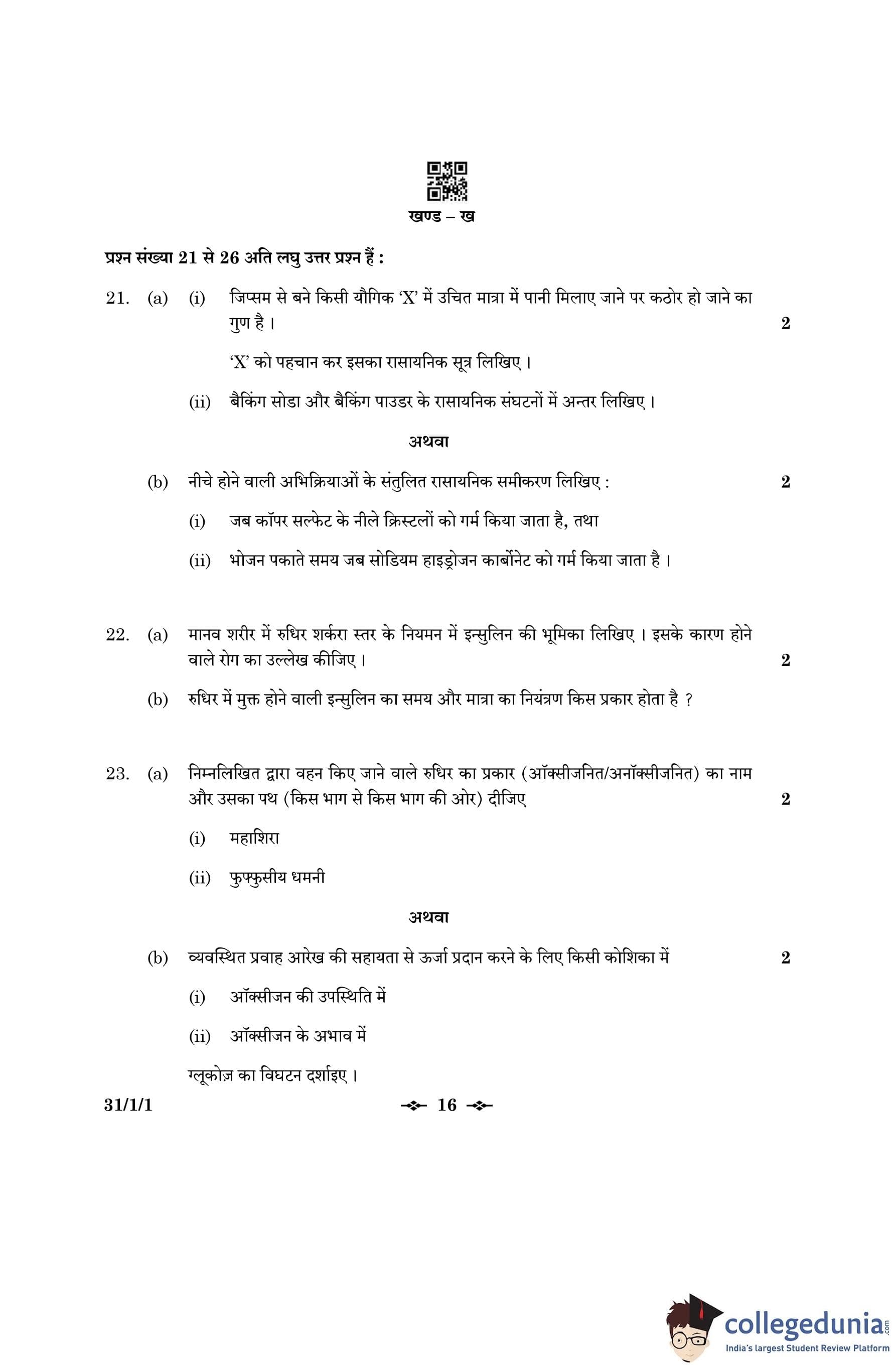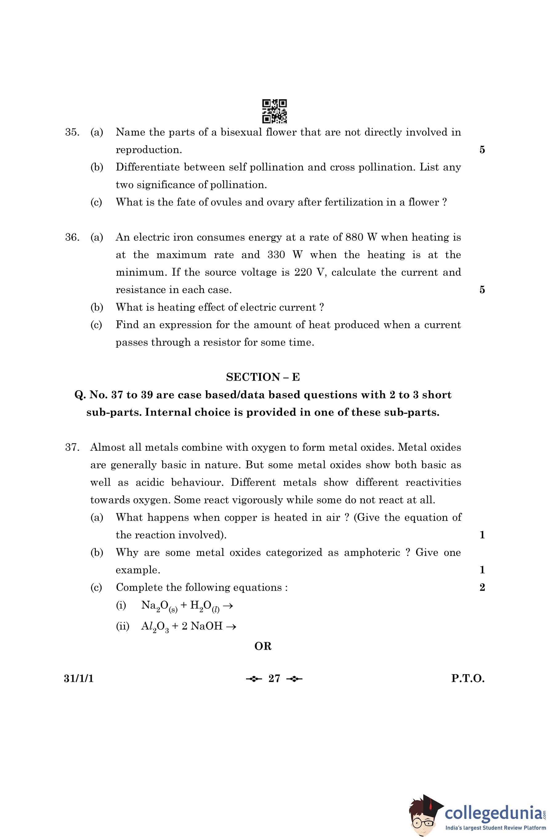 CBSE Class 10 Science (Set 1- 31/1/1) Question Paper 2023 with Answer Key