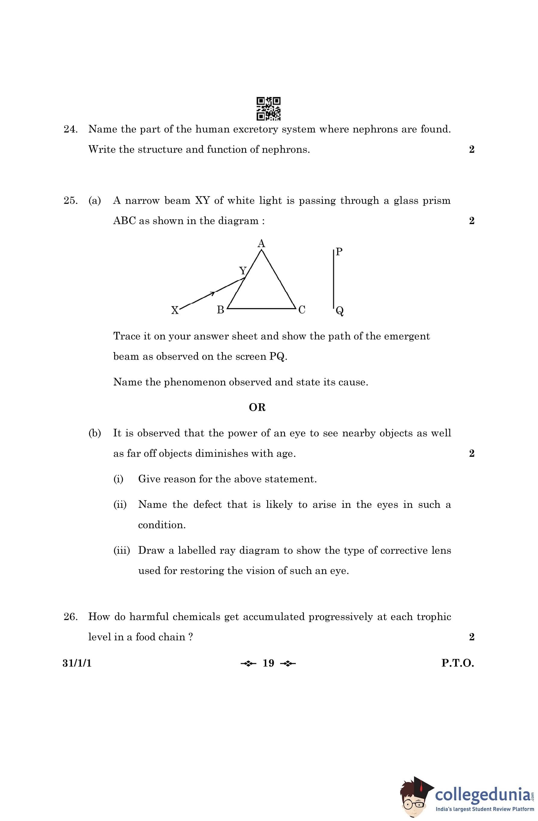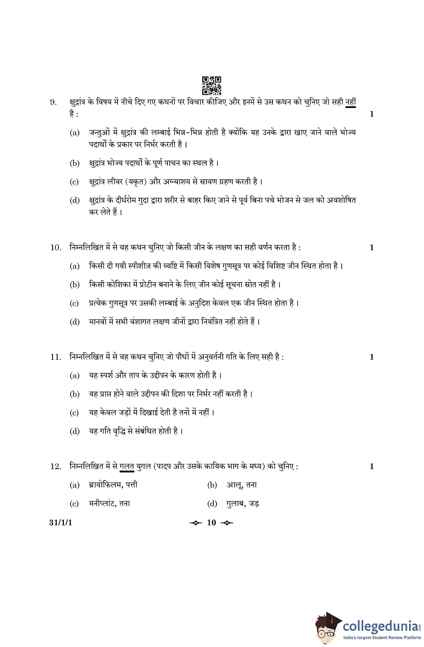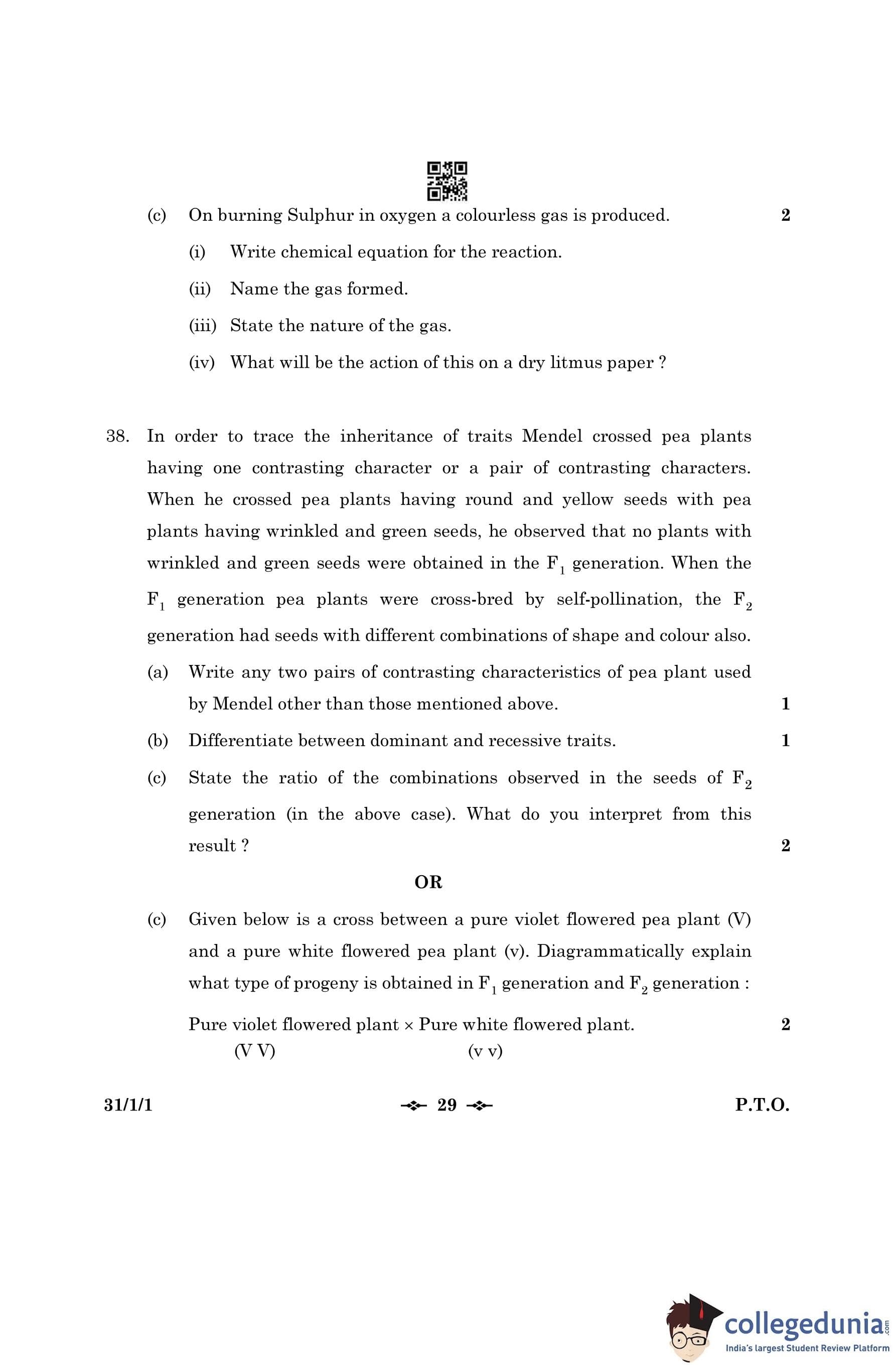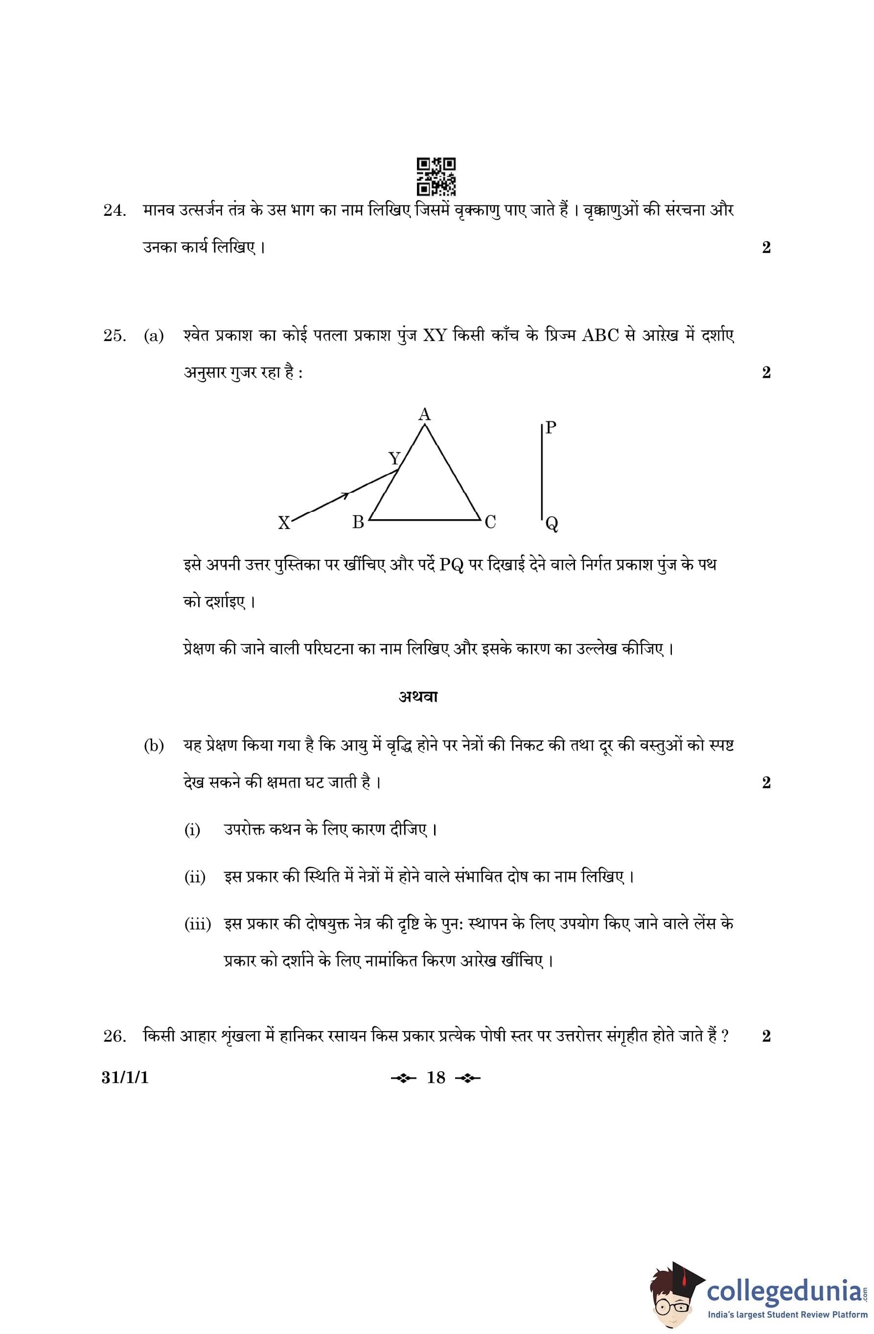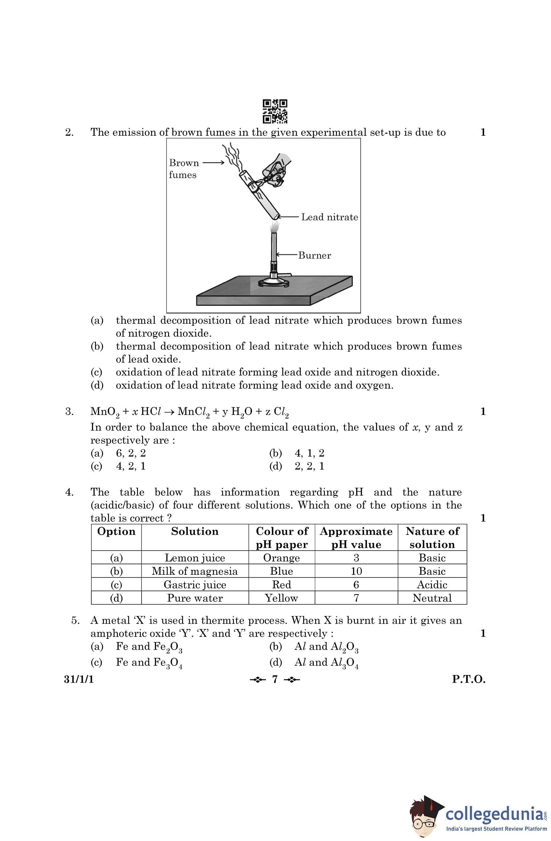 CBSE Class 10 Science (Set 1- 31/1/1) Question Paper 2023 with Answer Key