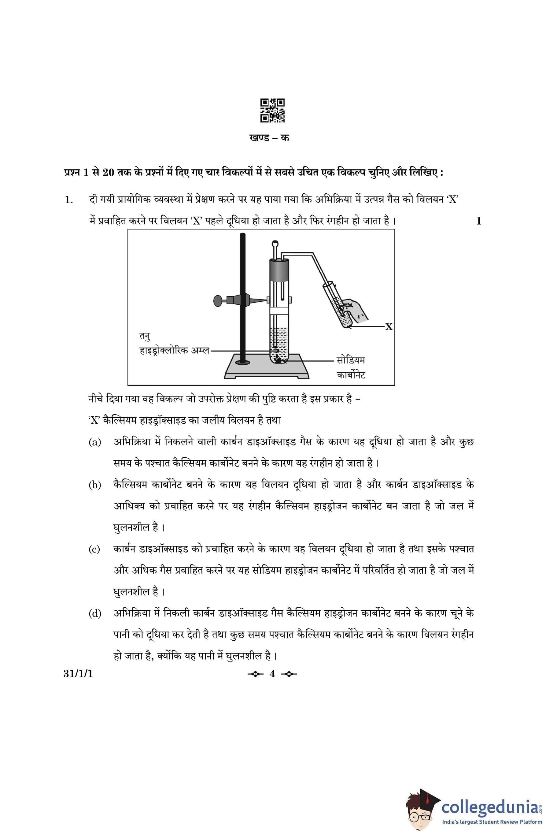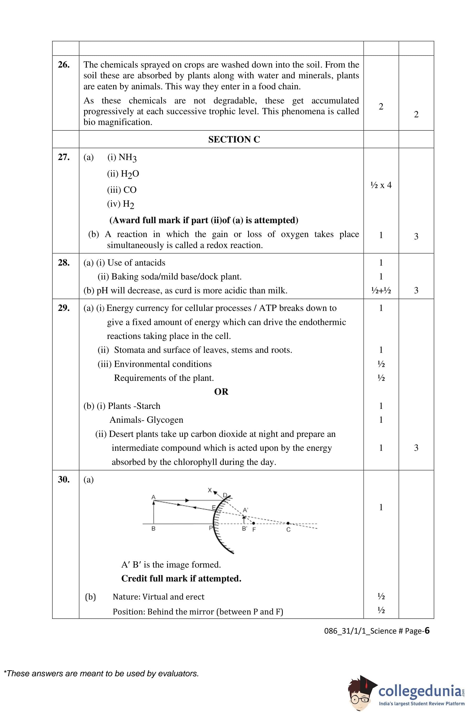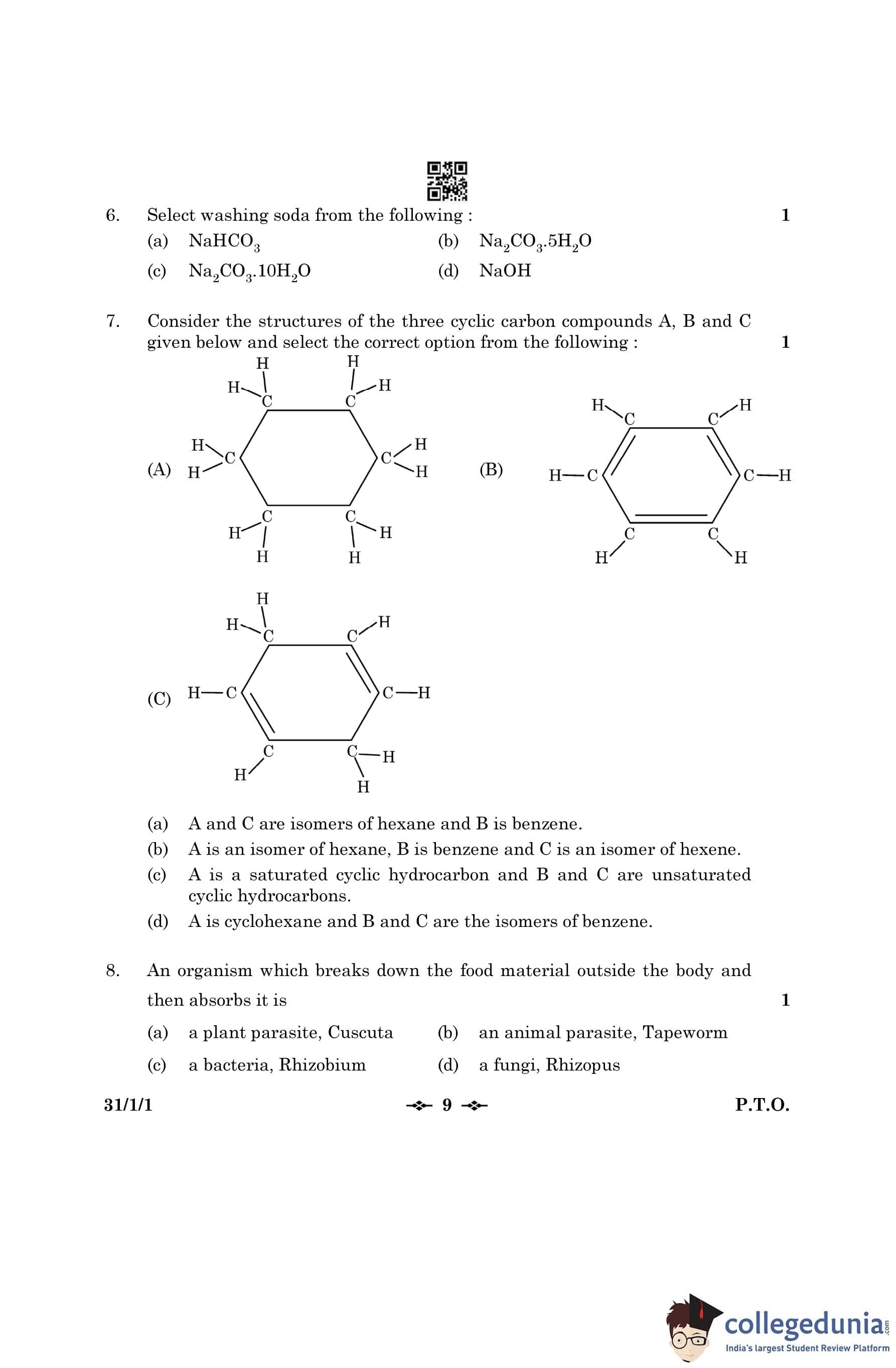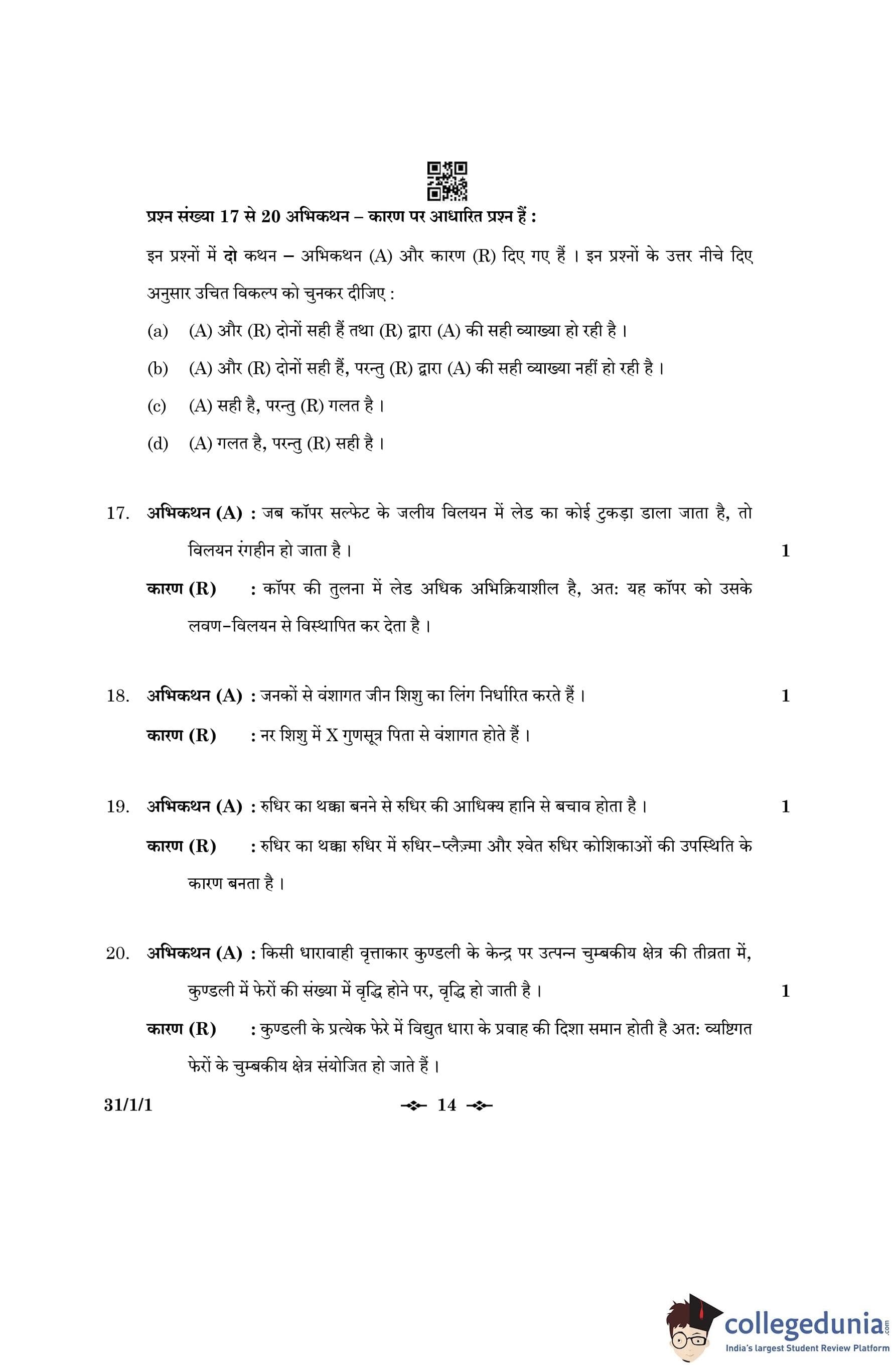 CBSE Class 10 Science (Set 1- 31/1/1) Question Paper 2023 with Answer Key