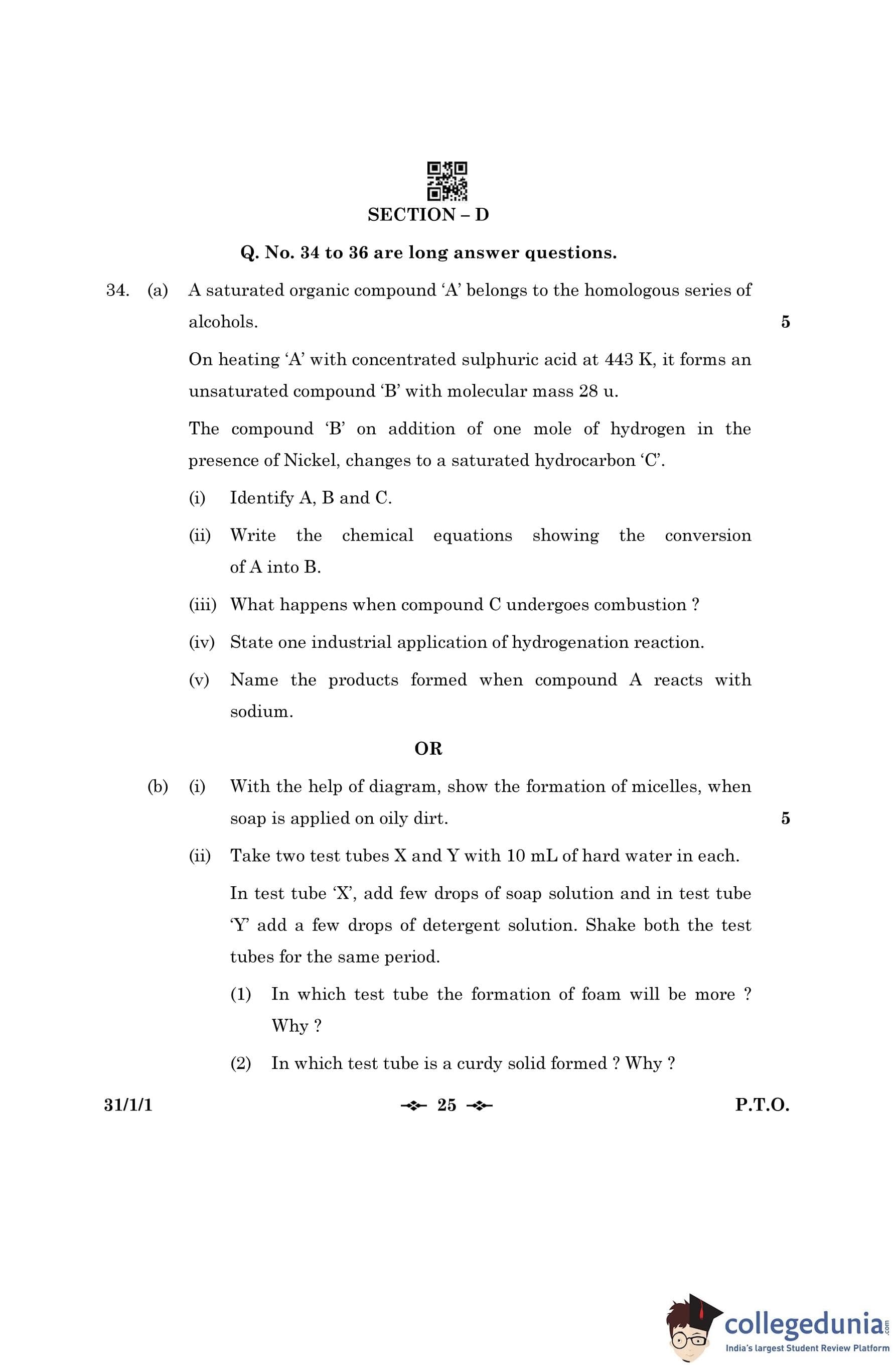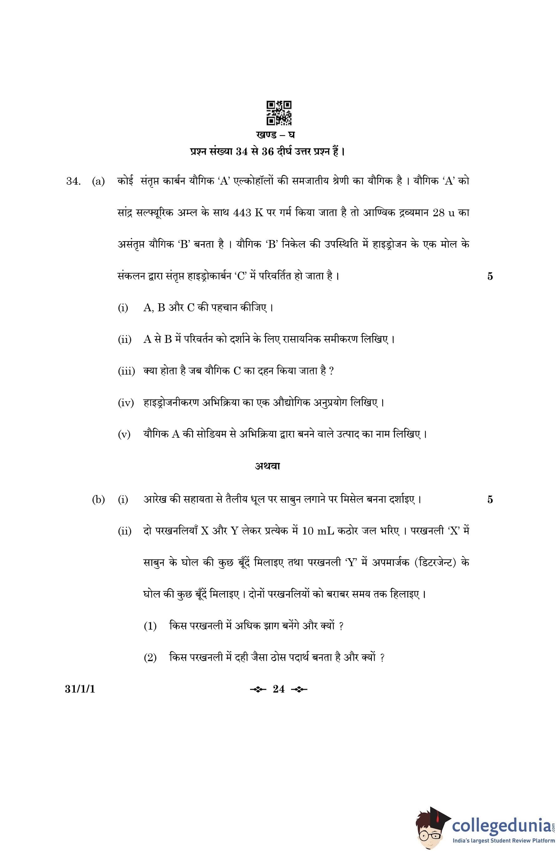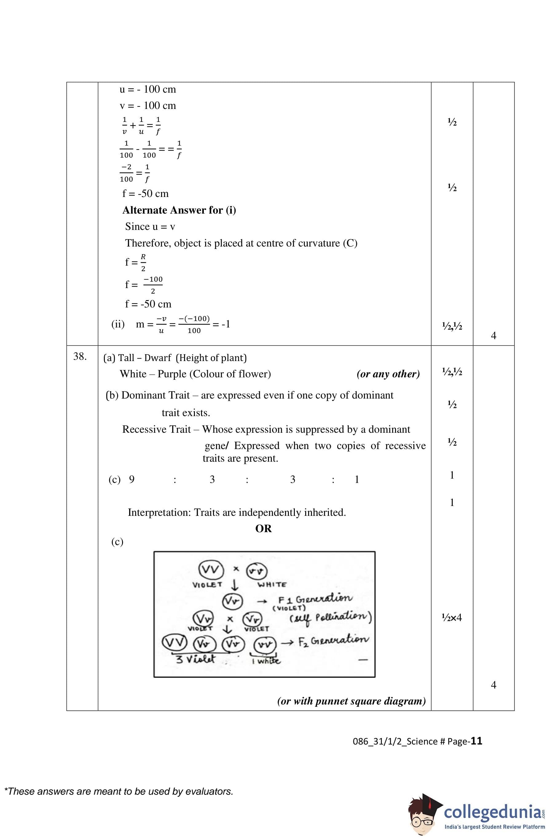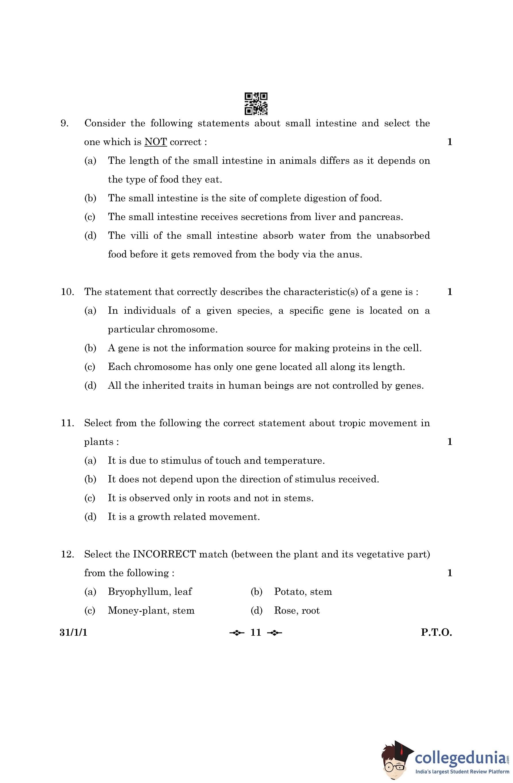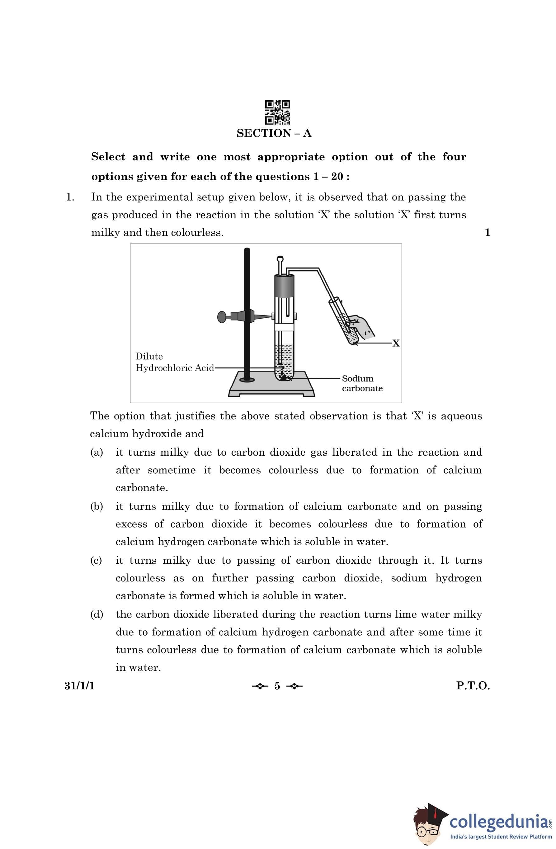 CBSE Class 10 Science (Set 1- 31/1/1) Question Paper 2023 with Answer Key