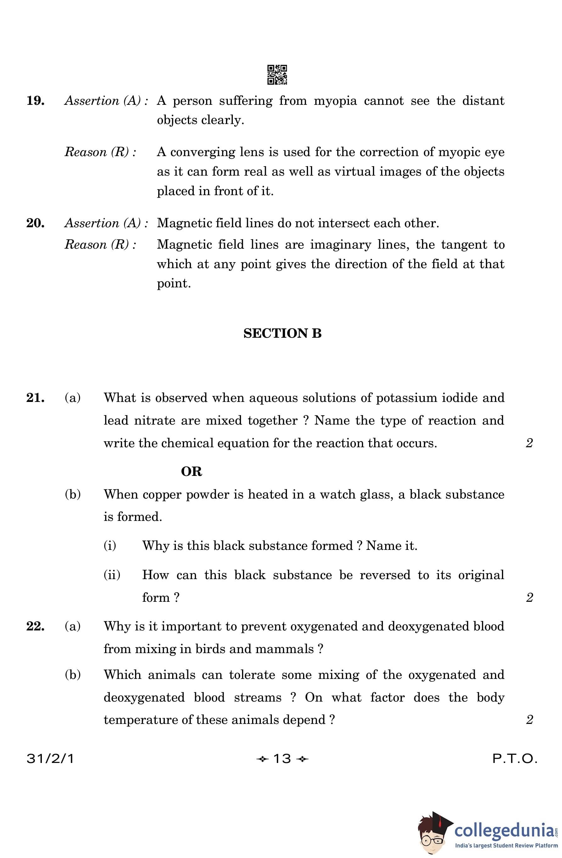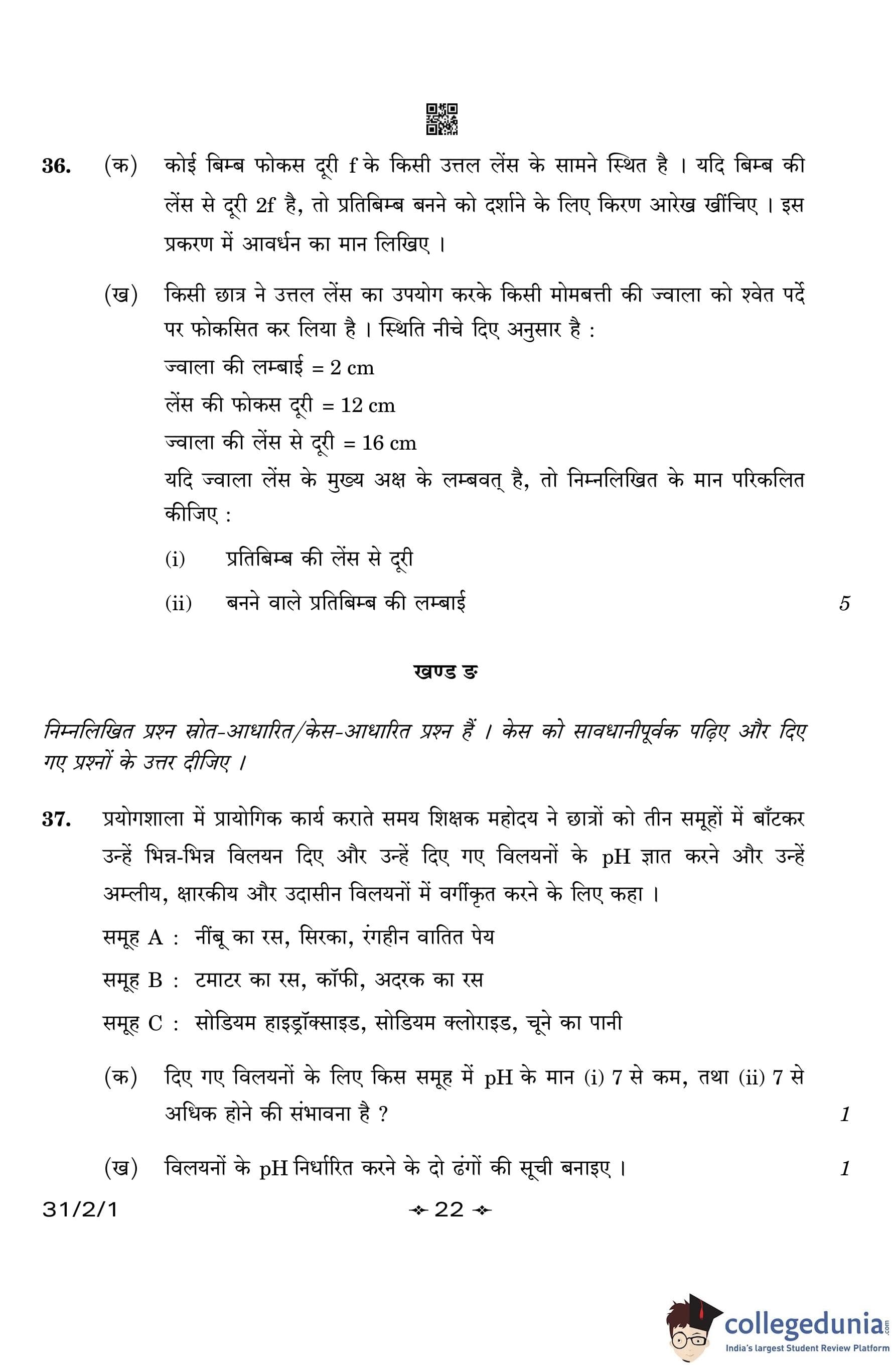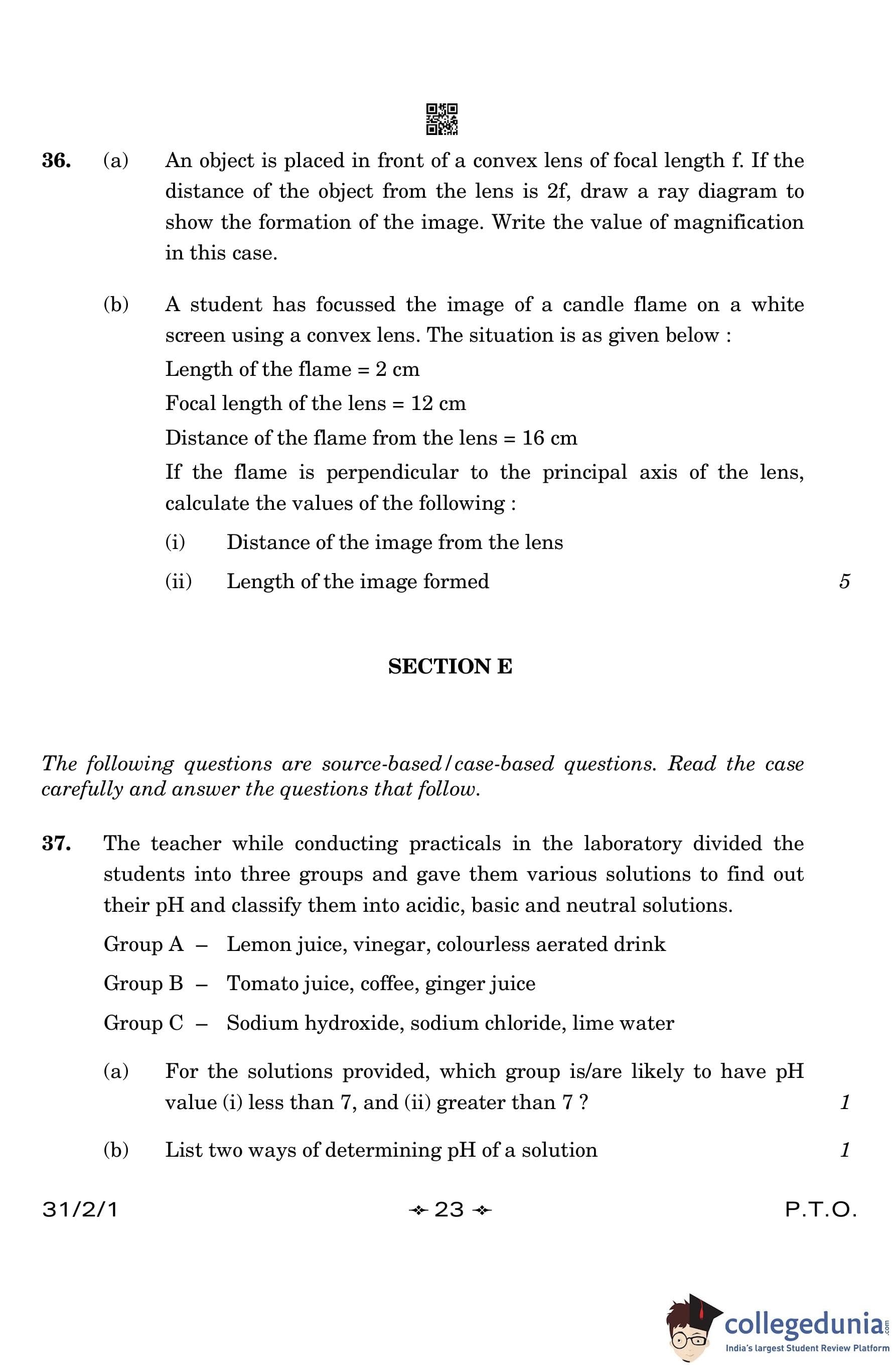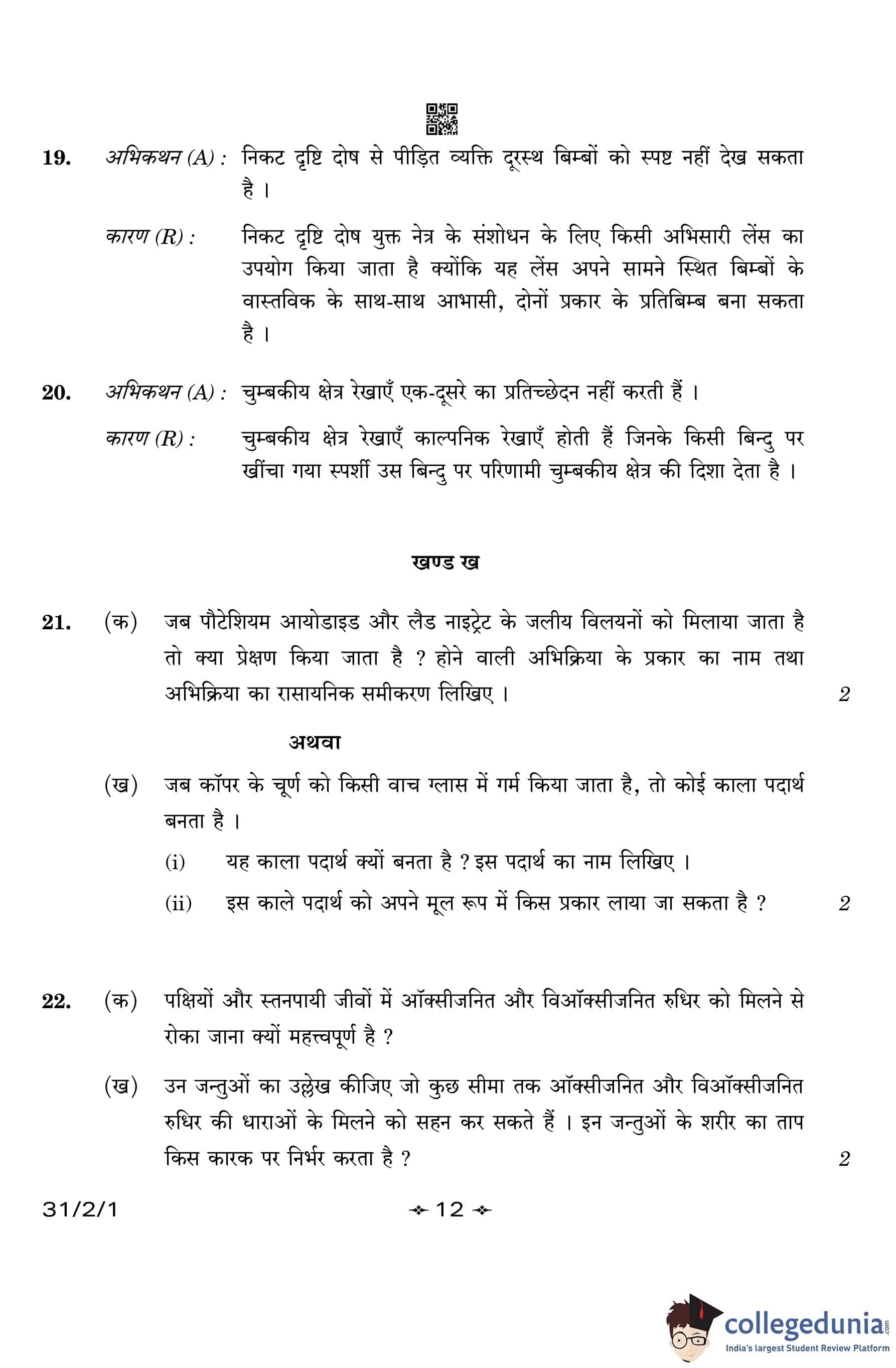 CBSE Class 10 Science Question Paper 2023 with Answer Key (Set 1- 31/2/1) is available for download here. The exam was conducted by the Central Board of Secondary Education on March 4, 2023 in the Morning Session 10:30 AM to 1:30 PM. The medium of paper was English & Hindi. According to initial student reaction, the CBSE Class 12 Science Paper was rated as Moderate in difficulty level. The question paper comprised a total of 39 questions divided among 5 sections.