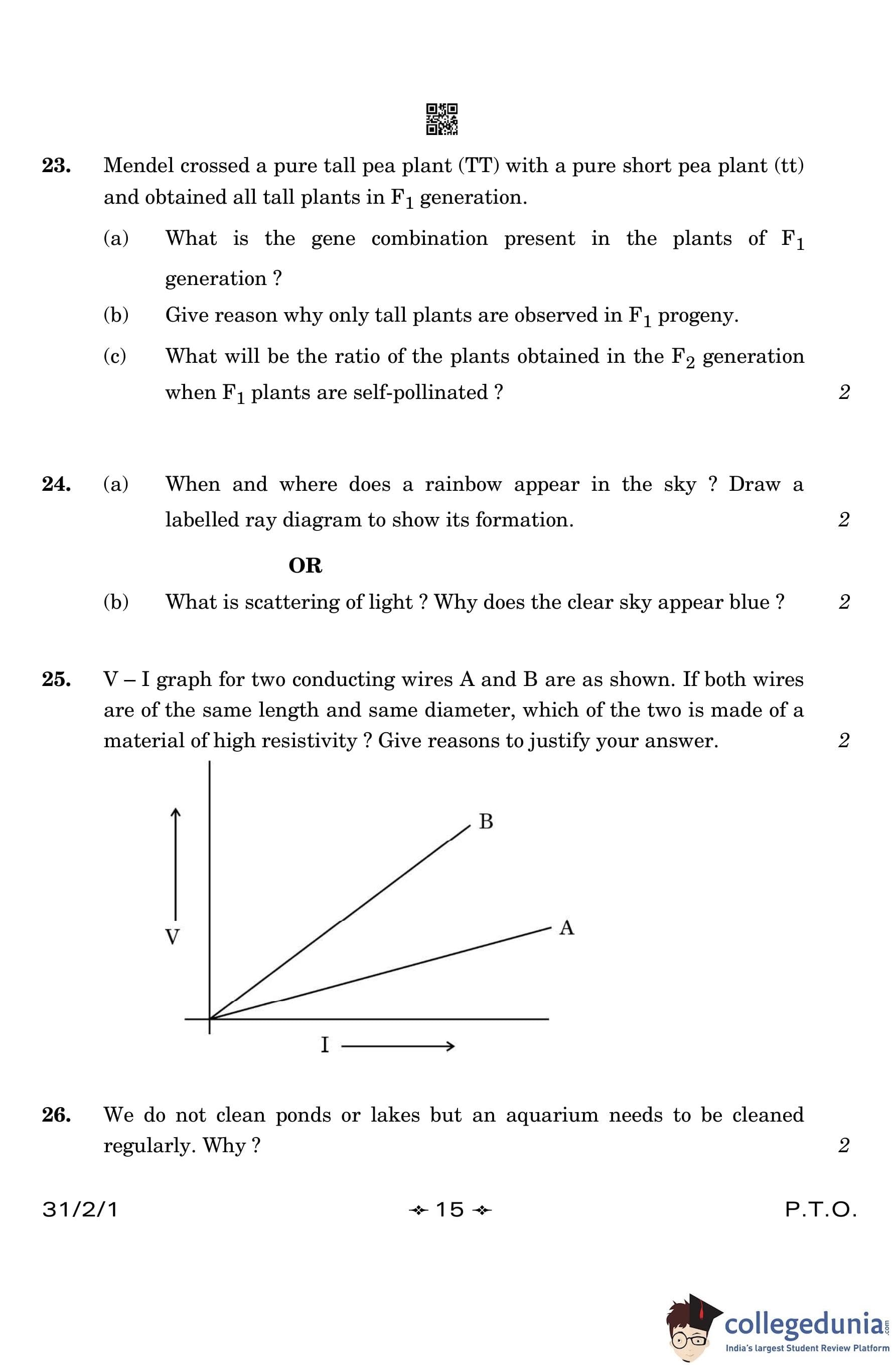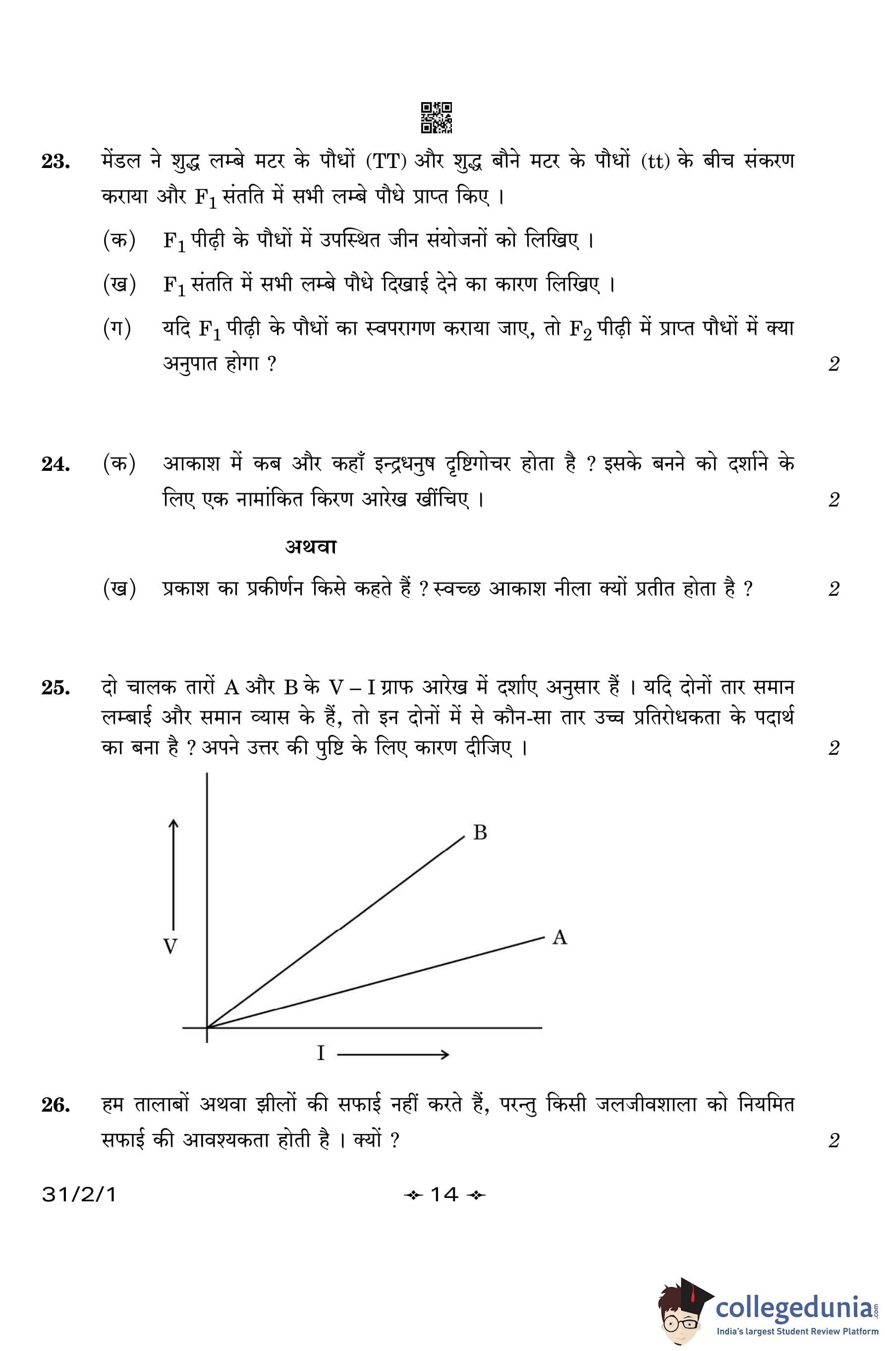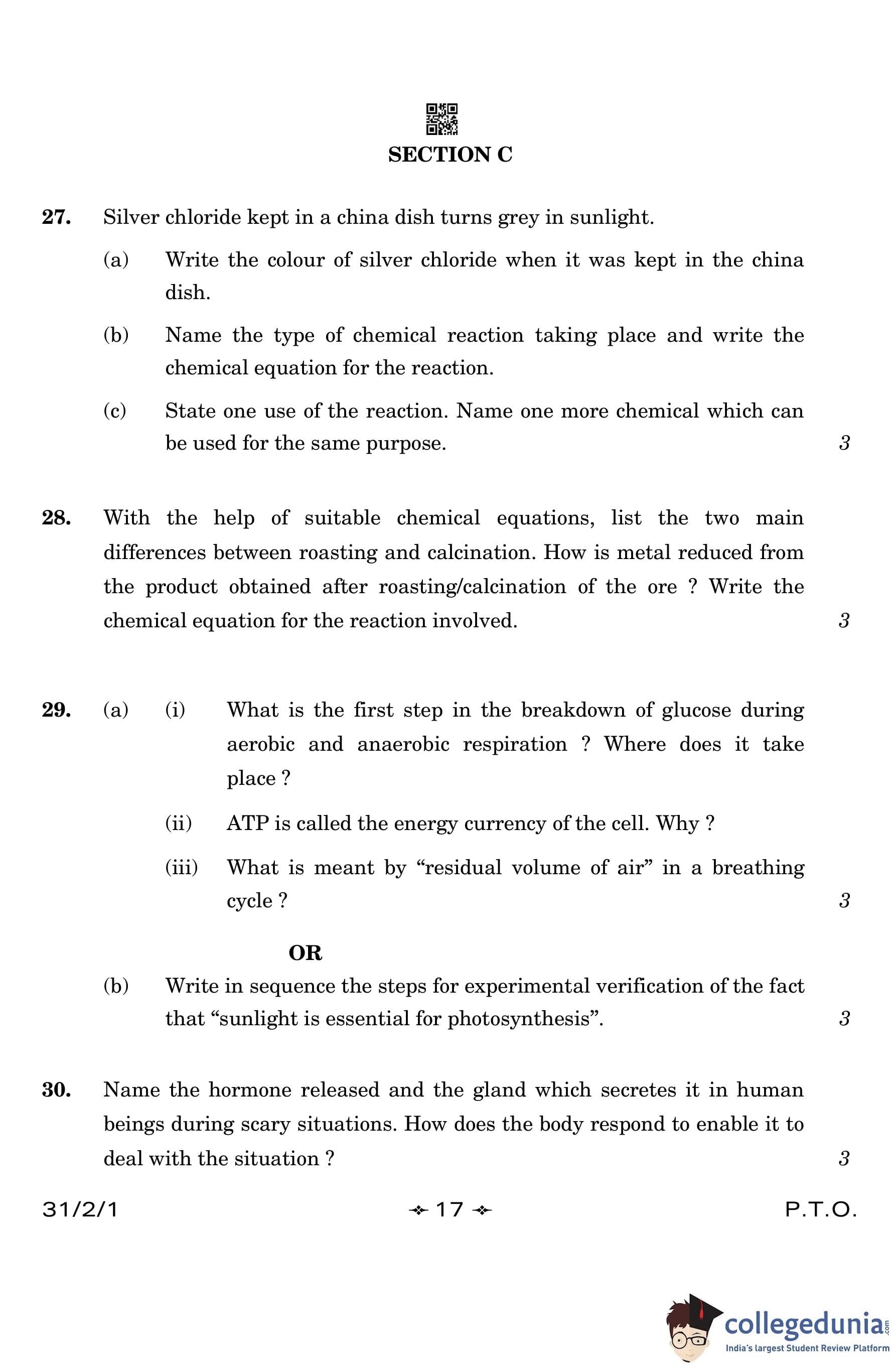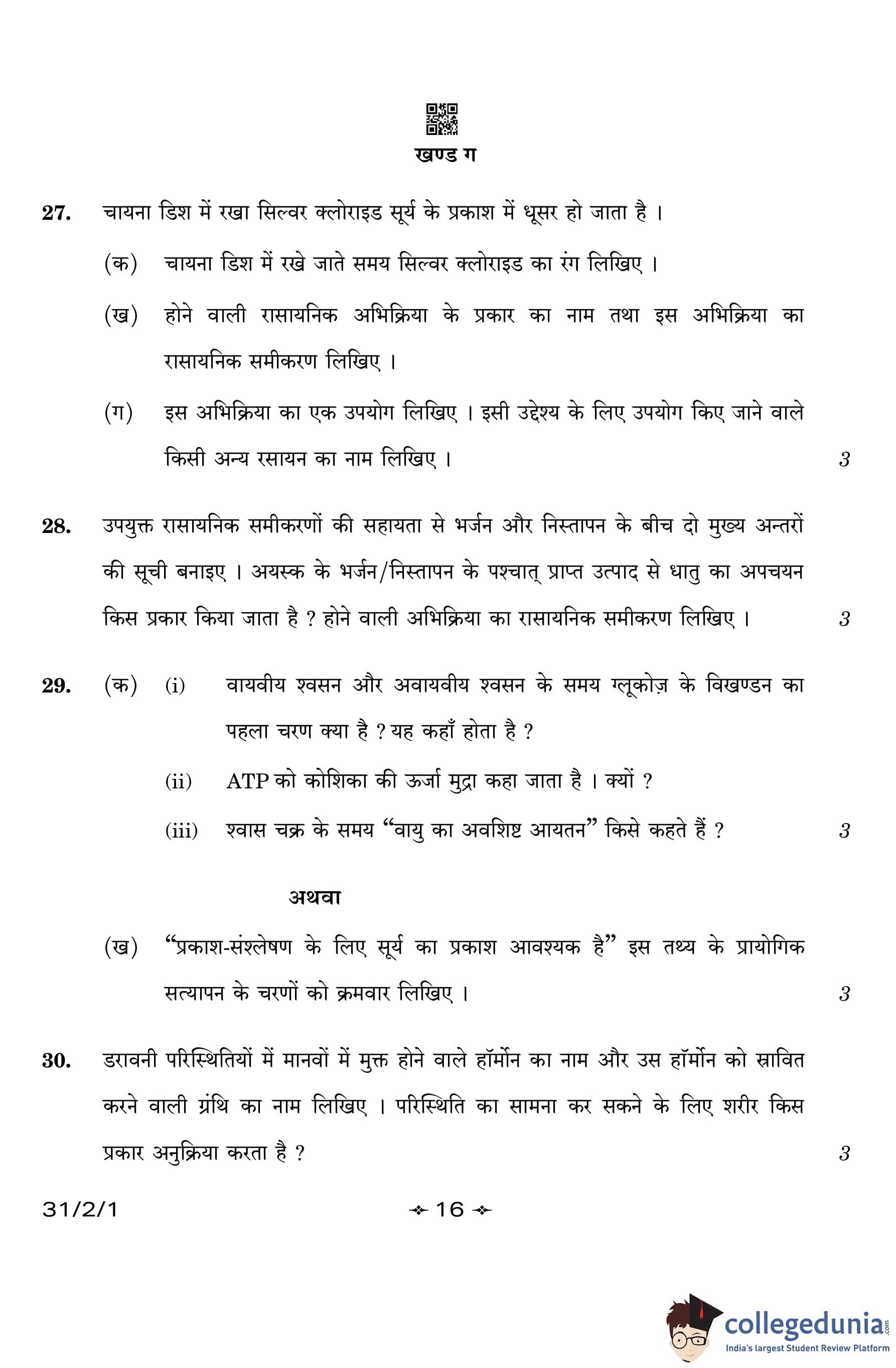 CBSE Class 10 Science (Set 1- 31/2/1) Question Paper 2023 with Answer Key