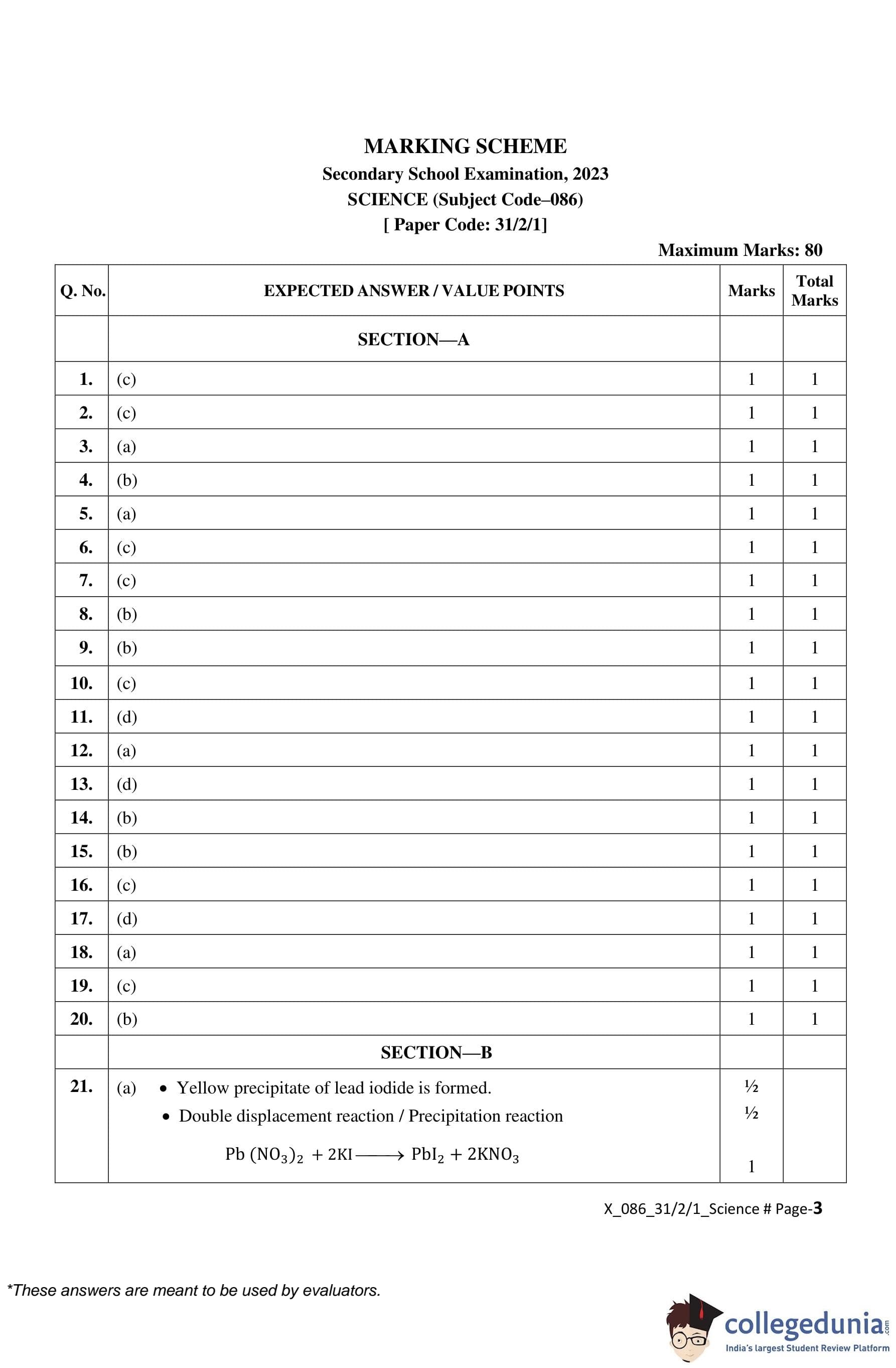 | CBSE Class 10 Science Question Paper 2023 PDF | CBSE Class 10 Science Answer Key 2023 PDF | Detailed Solutions |