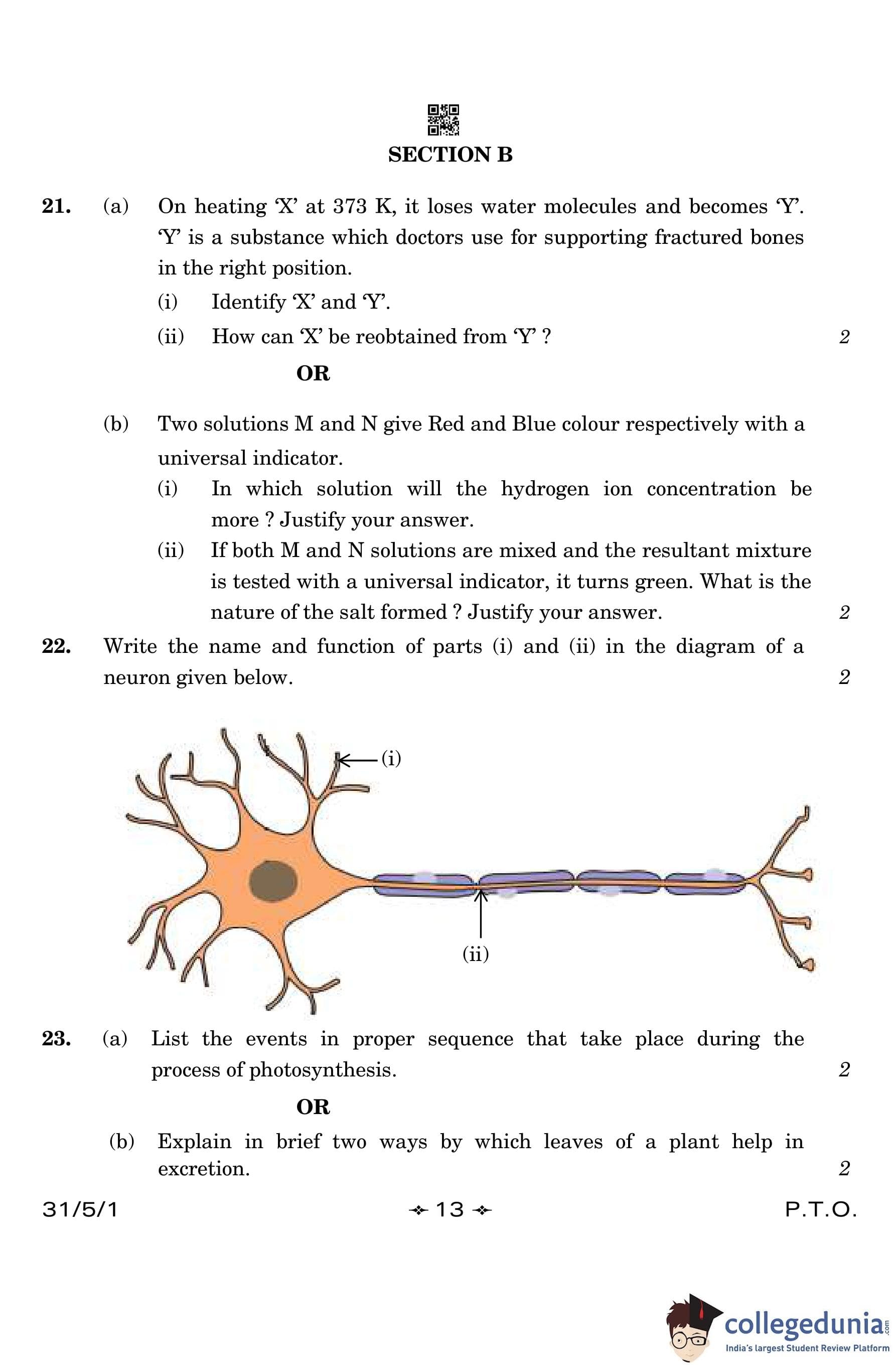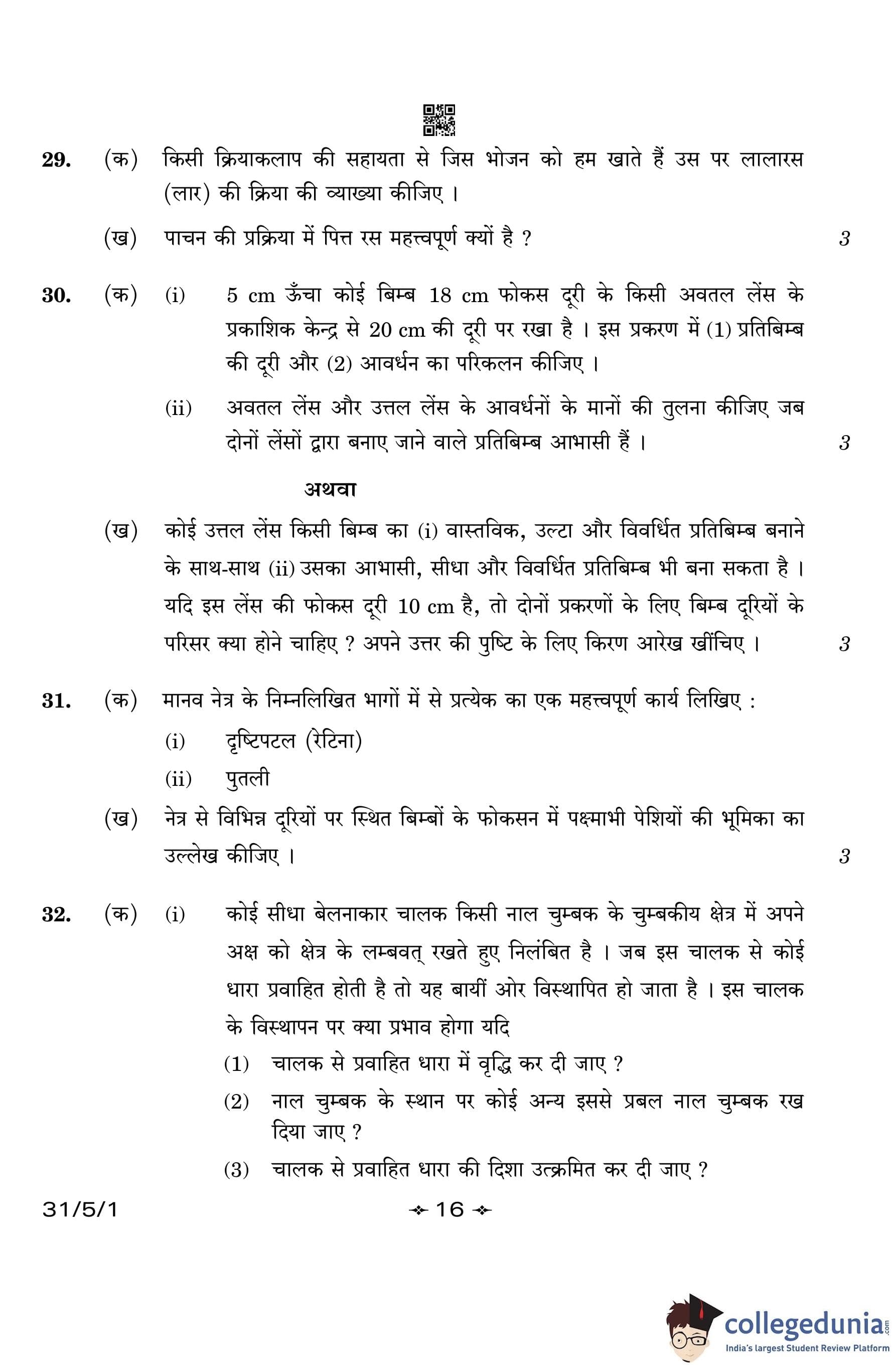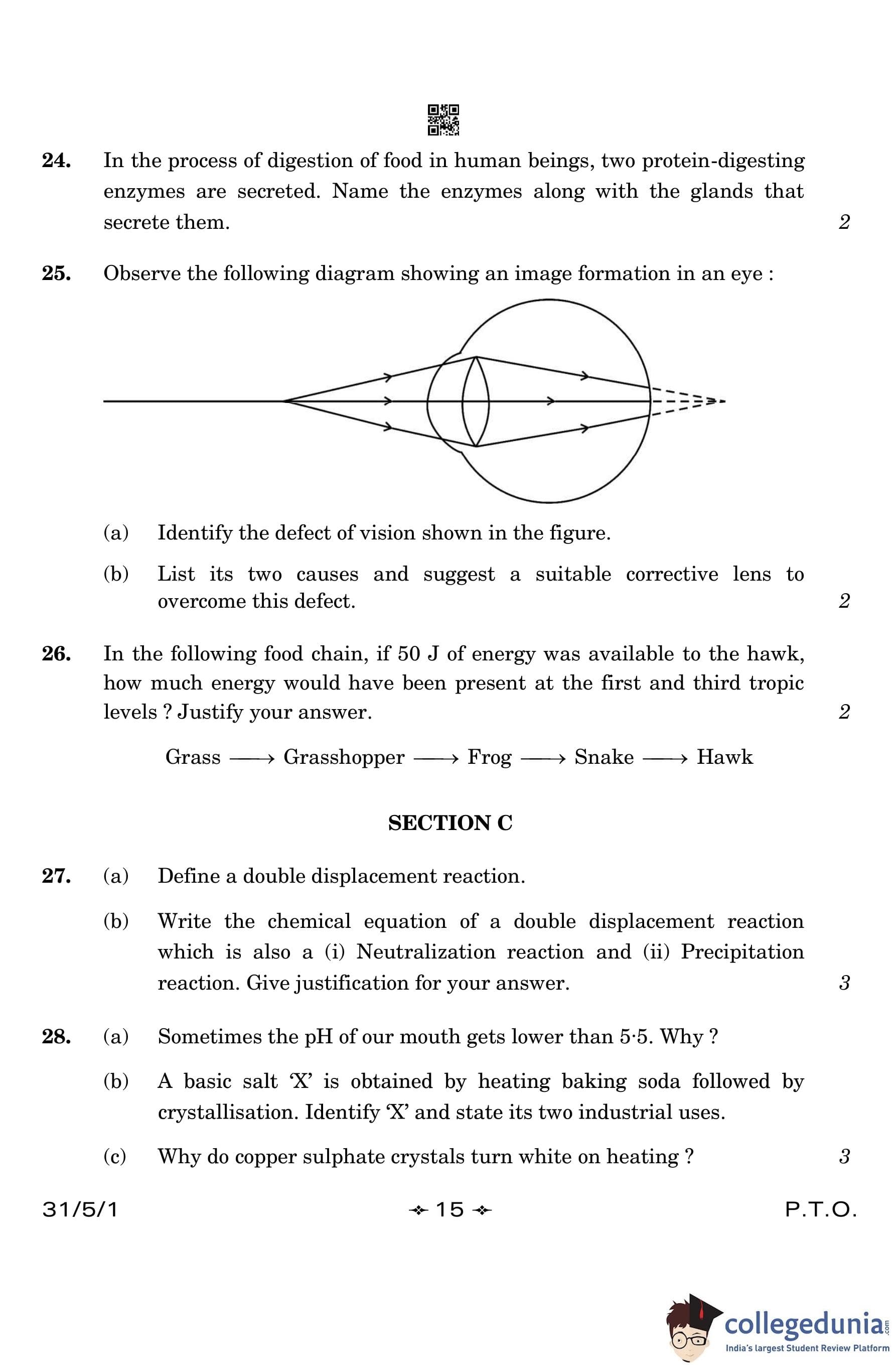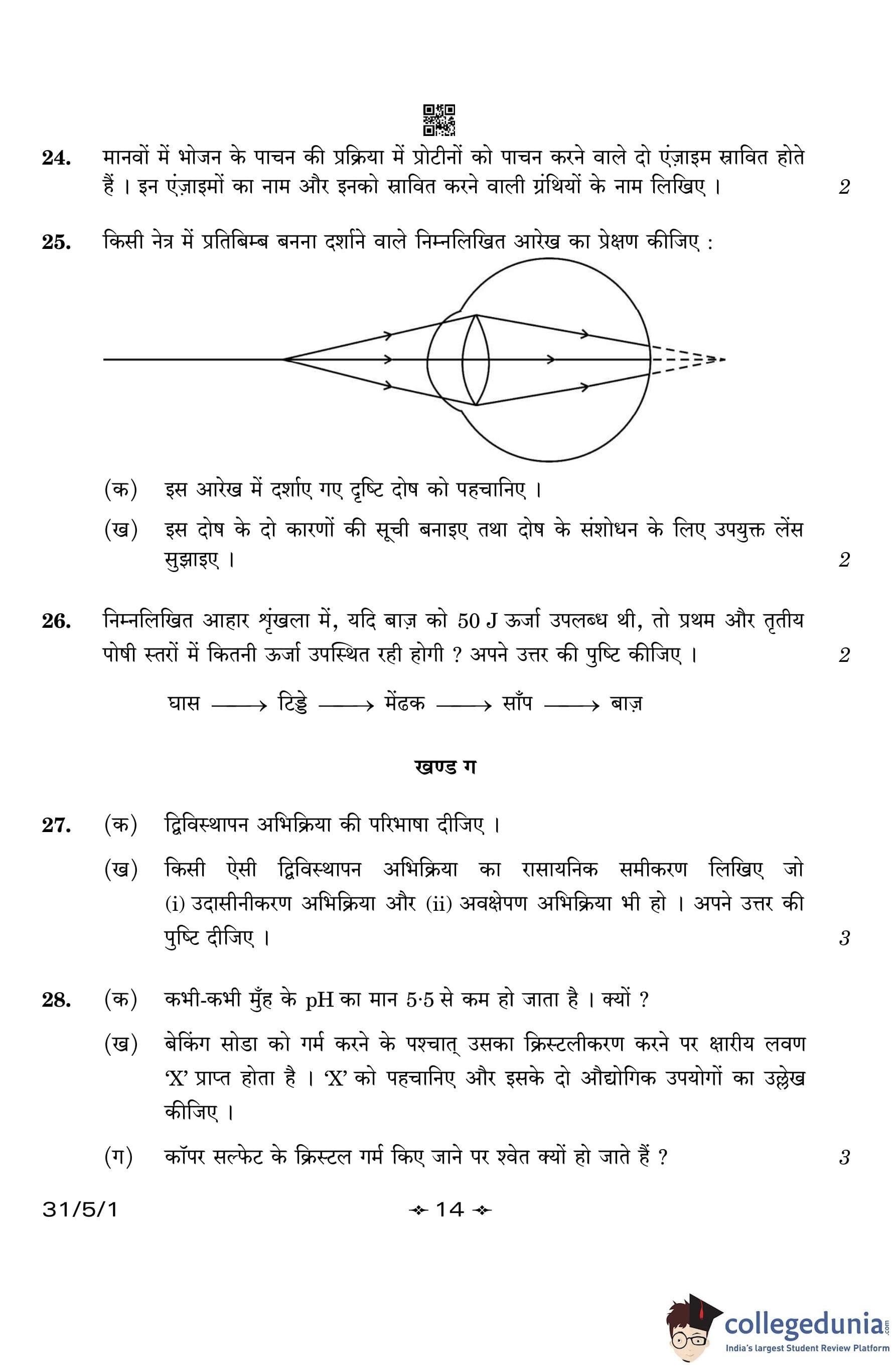 CBSE Class 10 Science (Set 1- 31/5/1) Question Paper 2023 with Answer Key