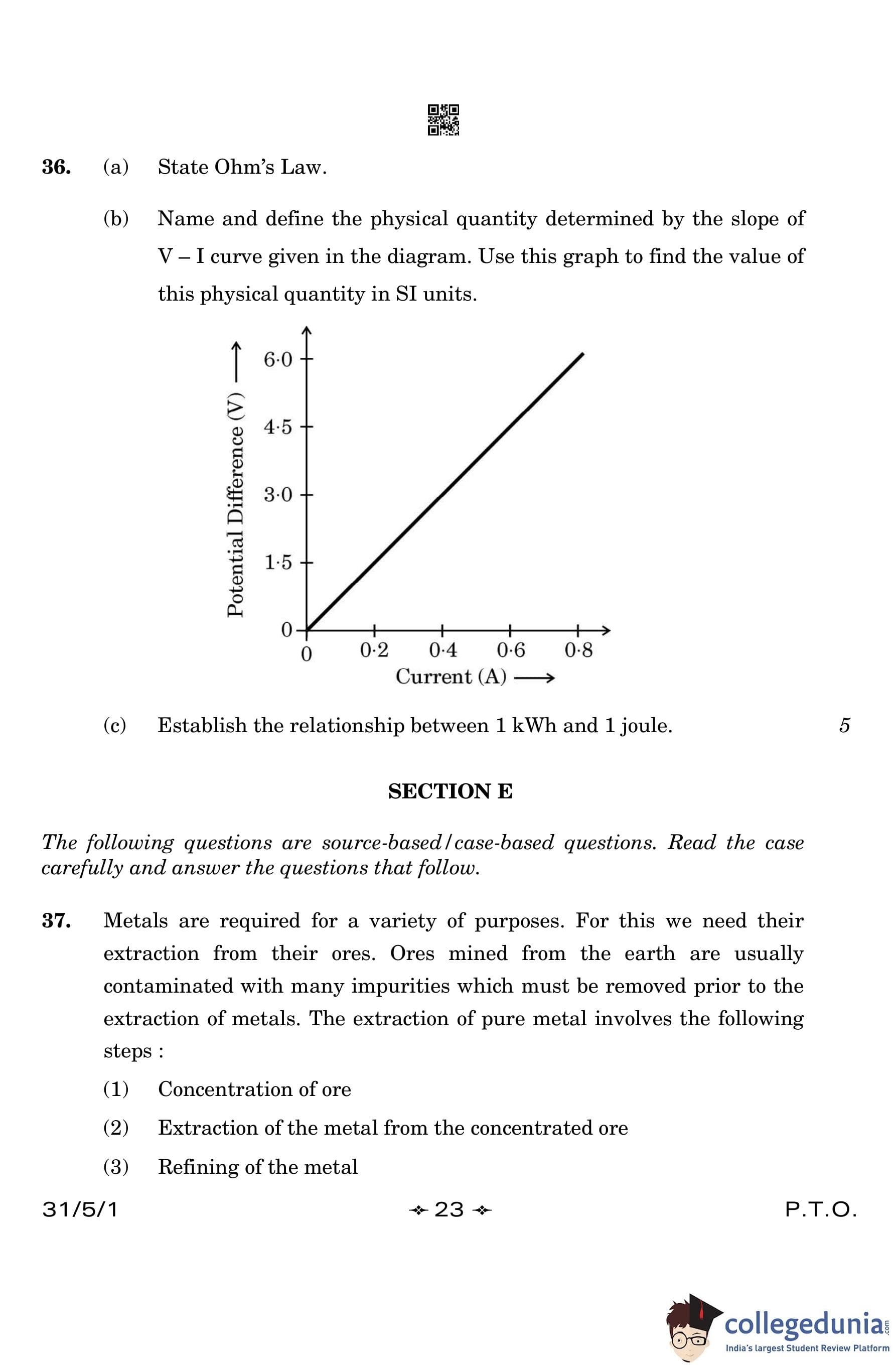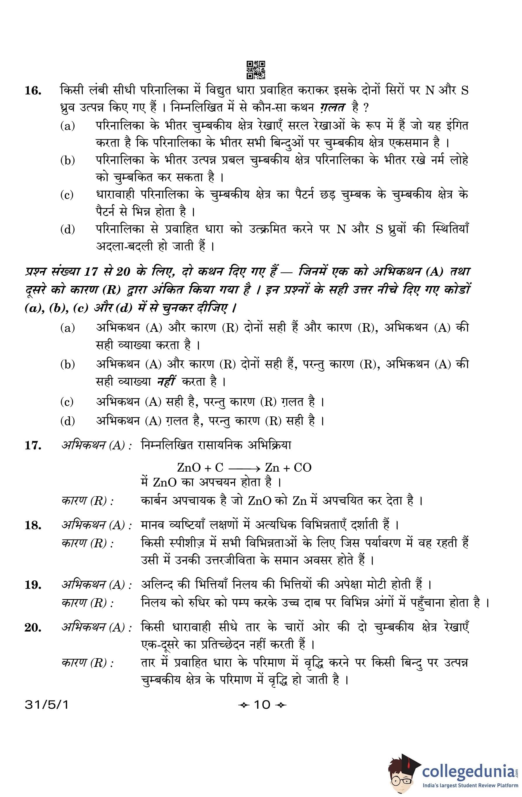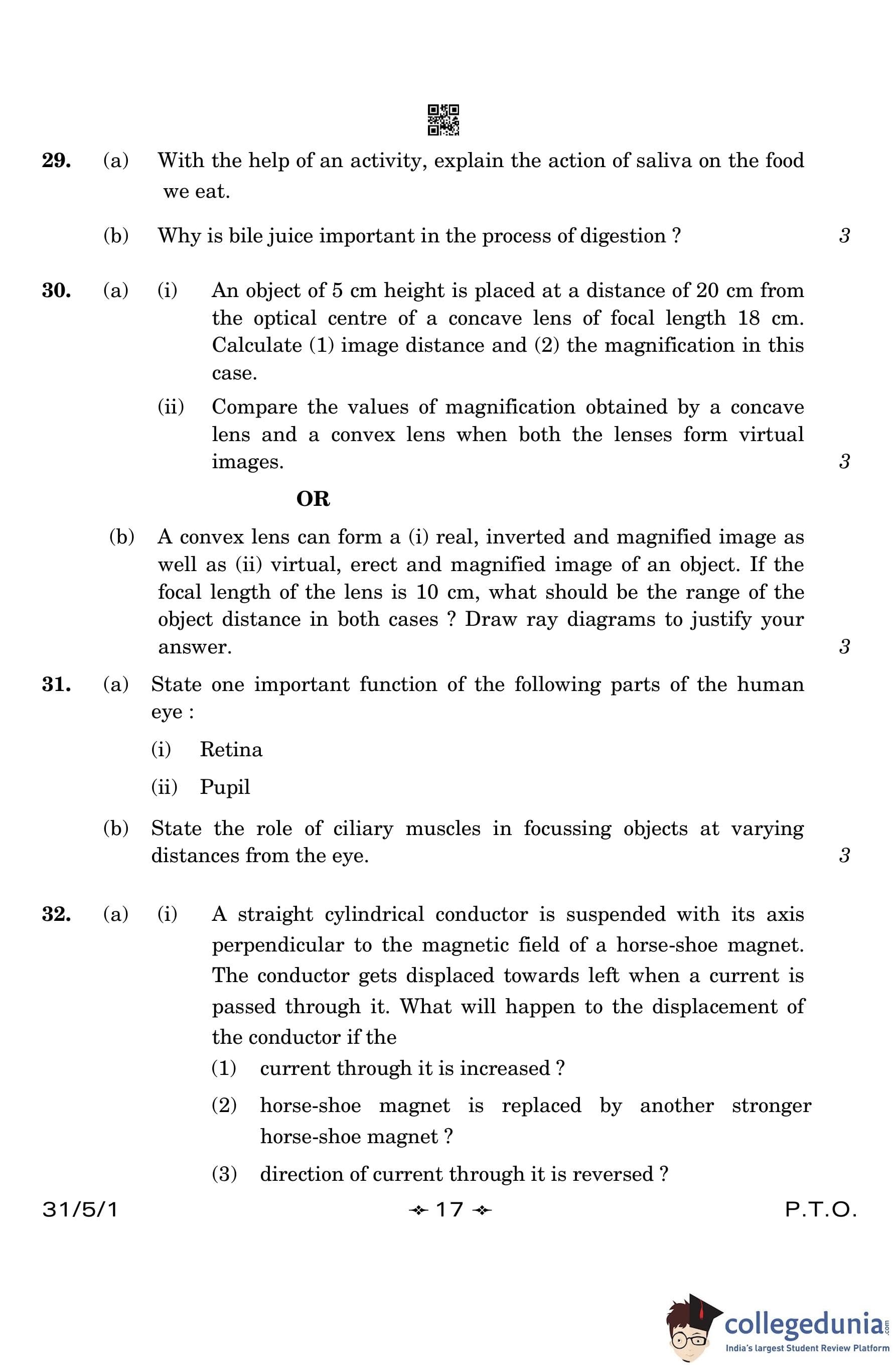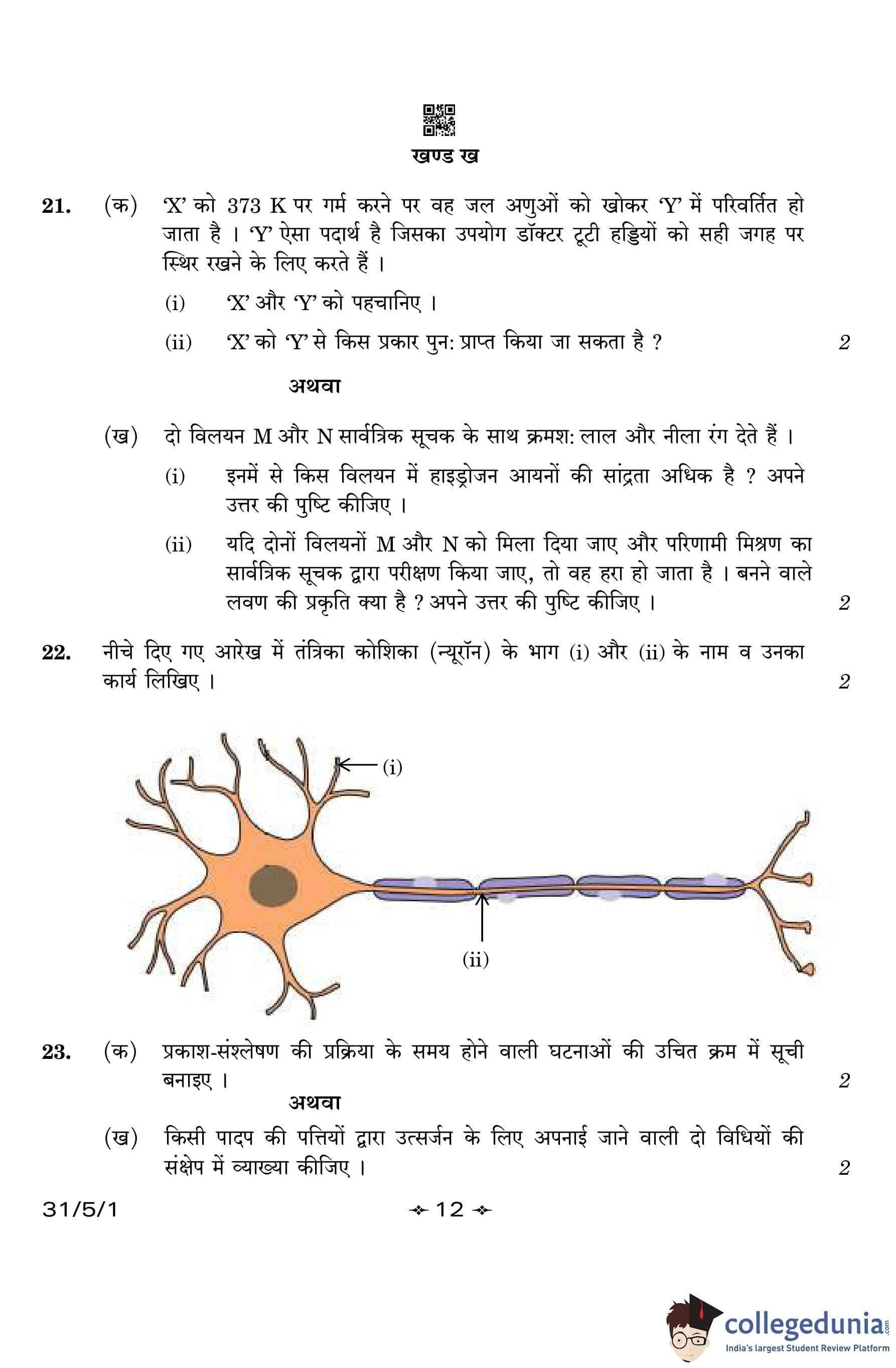 CBSE Class 10 Science (Set 1- 31/5/1) Question Paper 2023 with Answer Key
