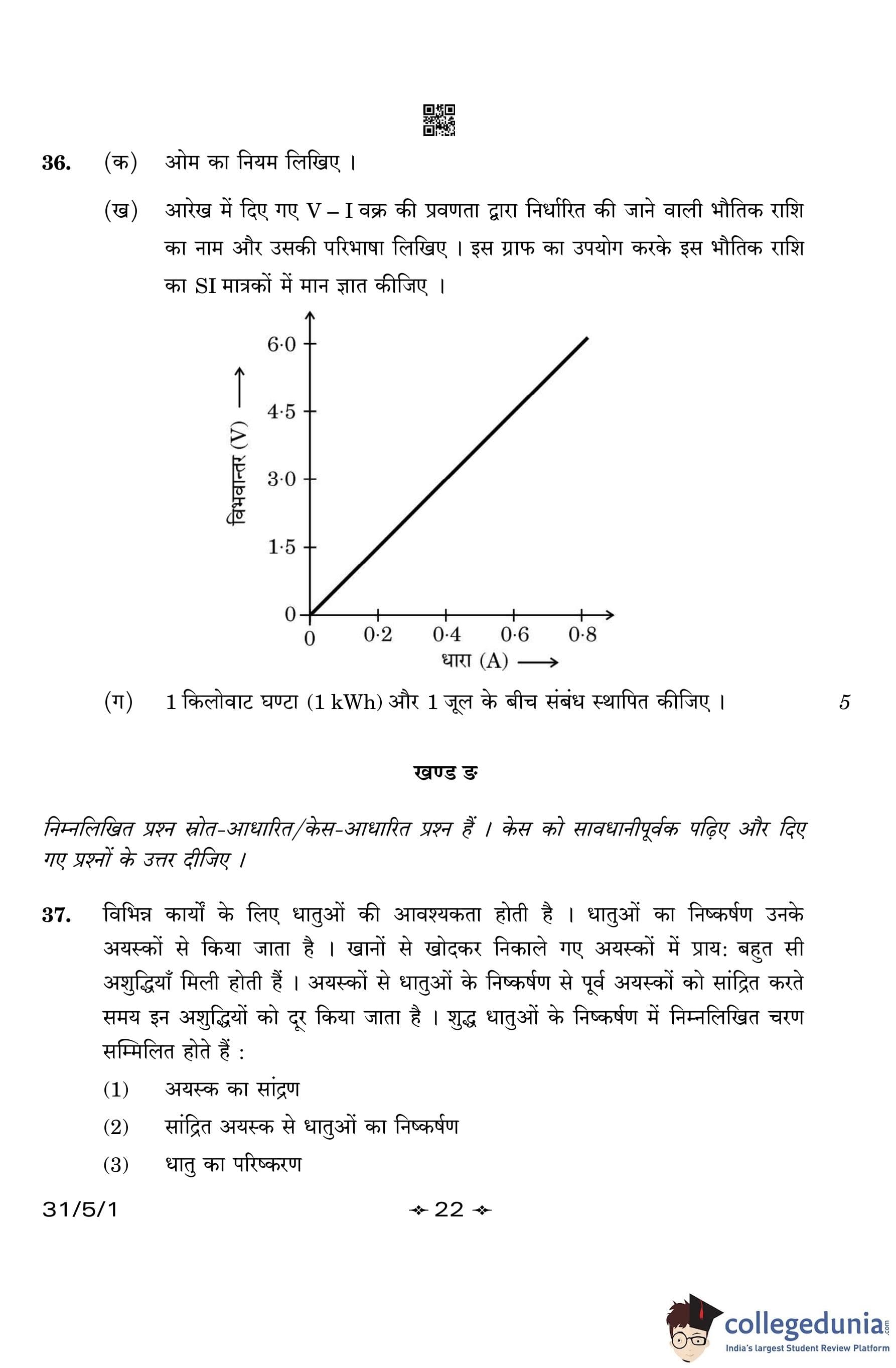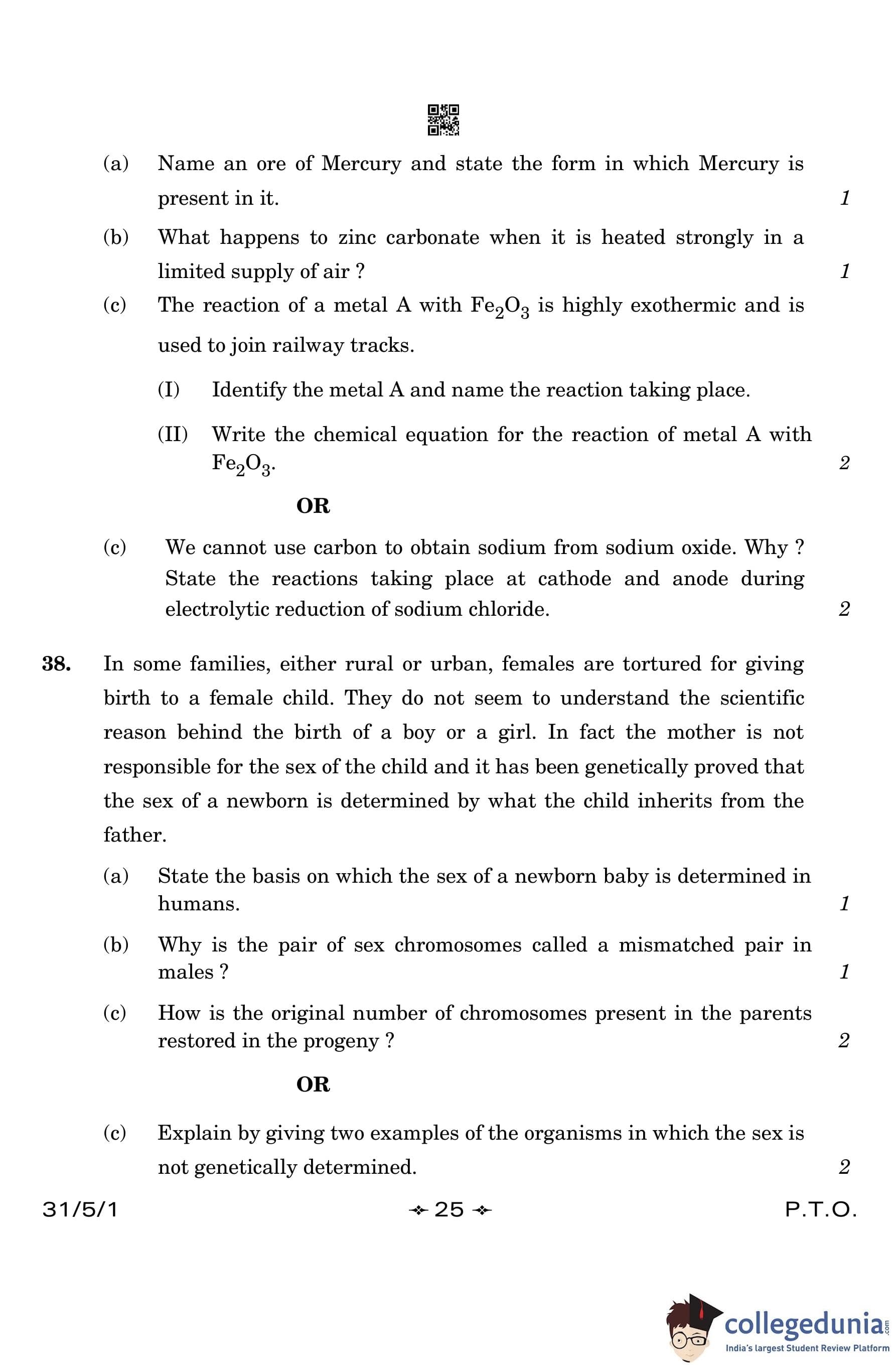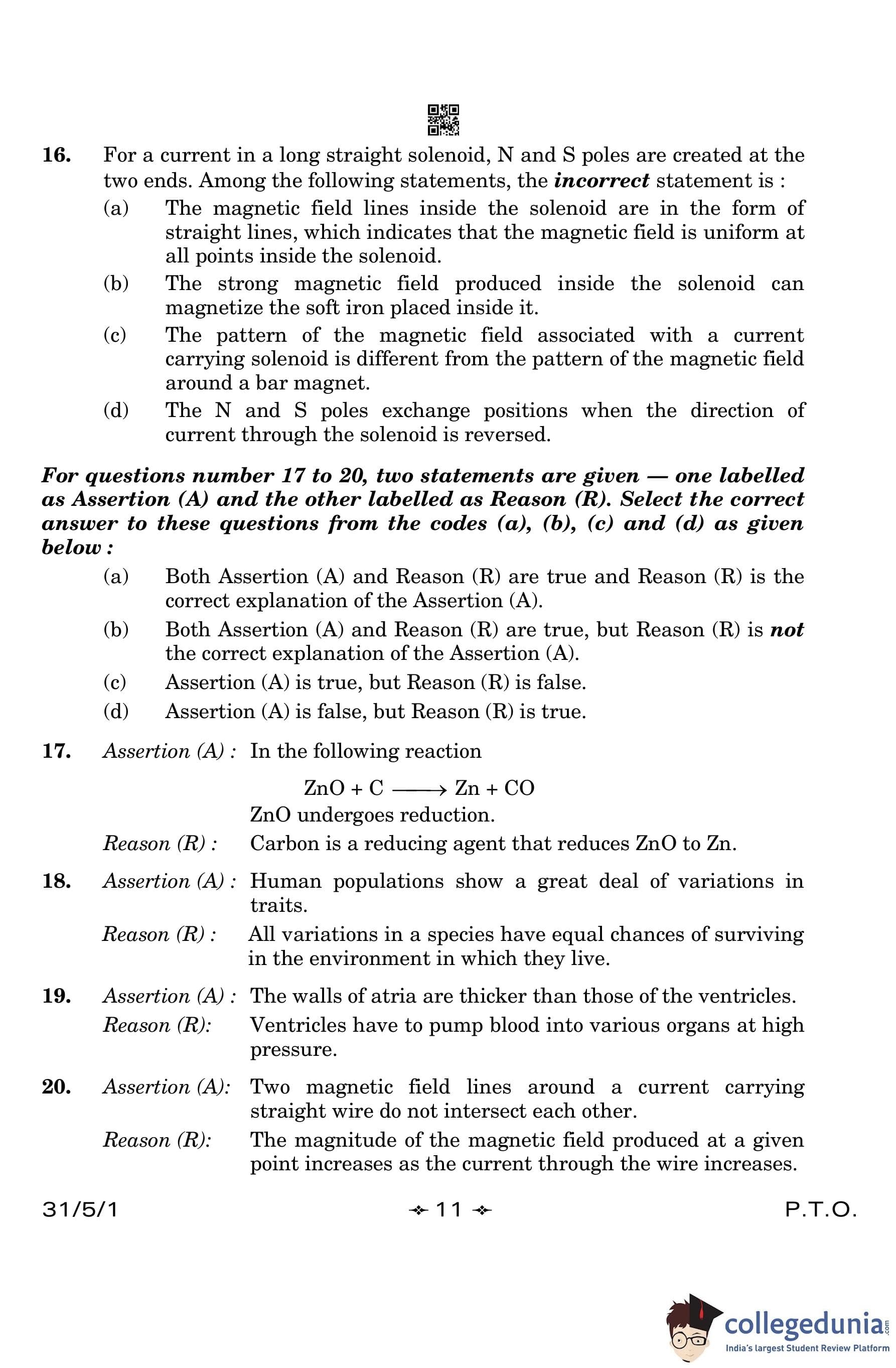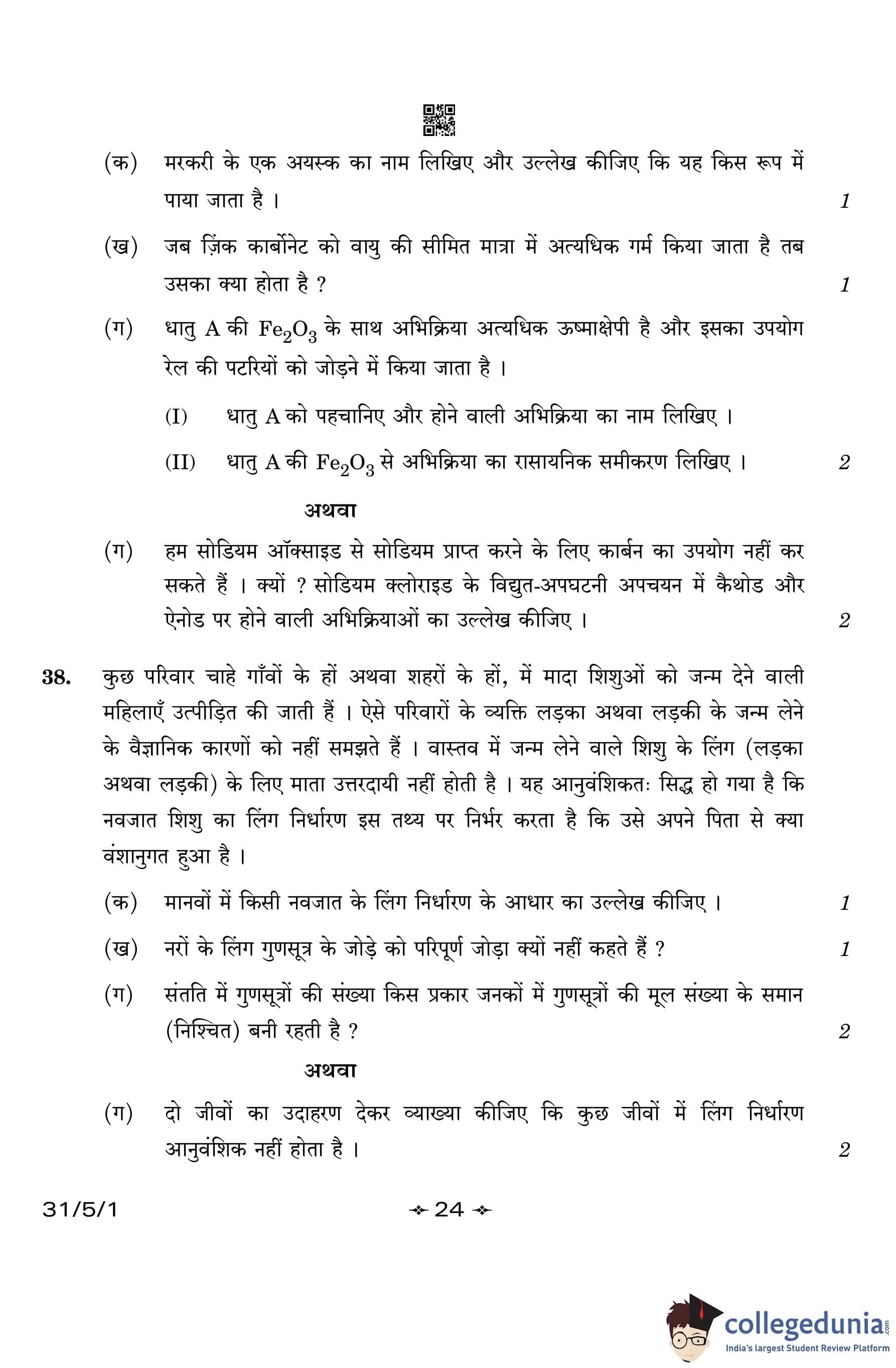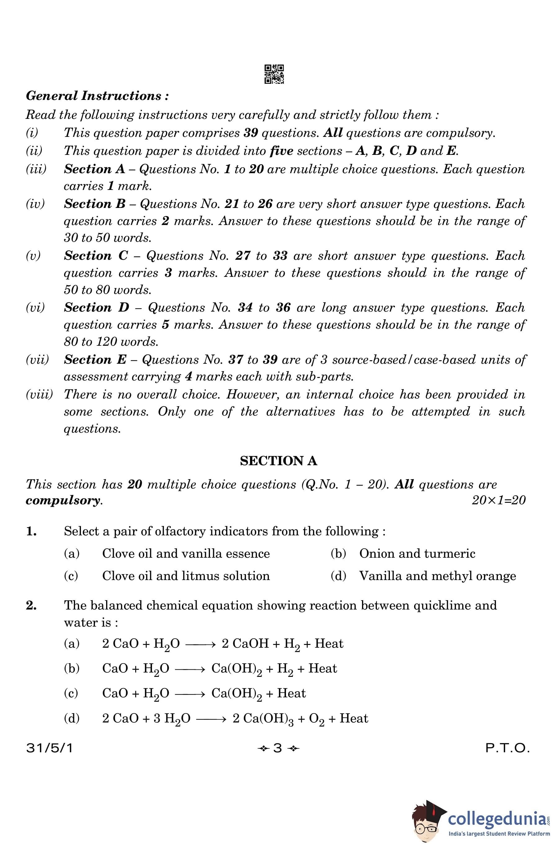 CBSE Class 10 Science (Set 1- 31/5/1) Question Paper 2023 with Answer Key