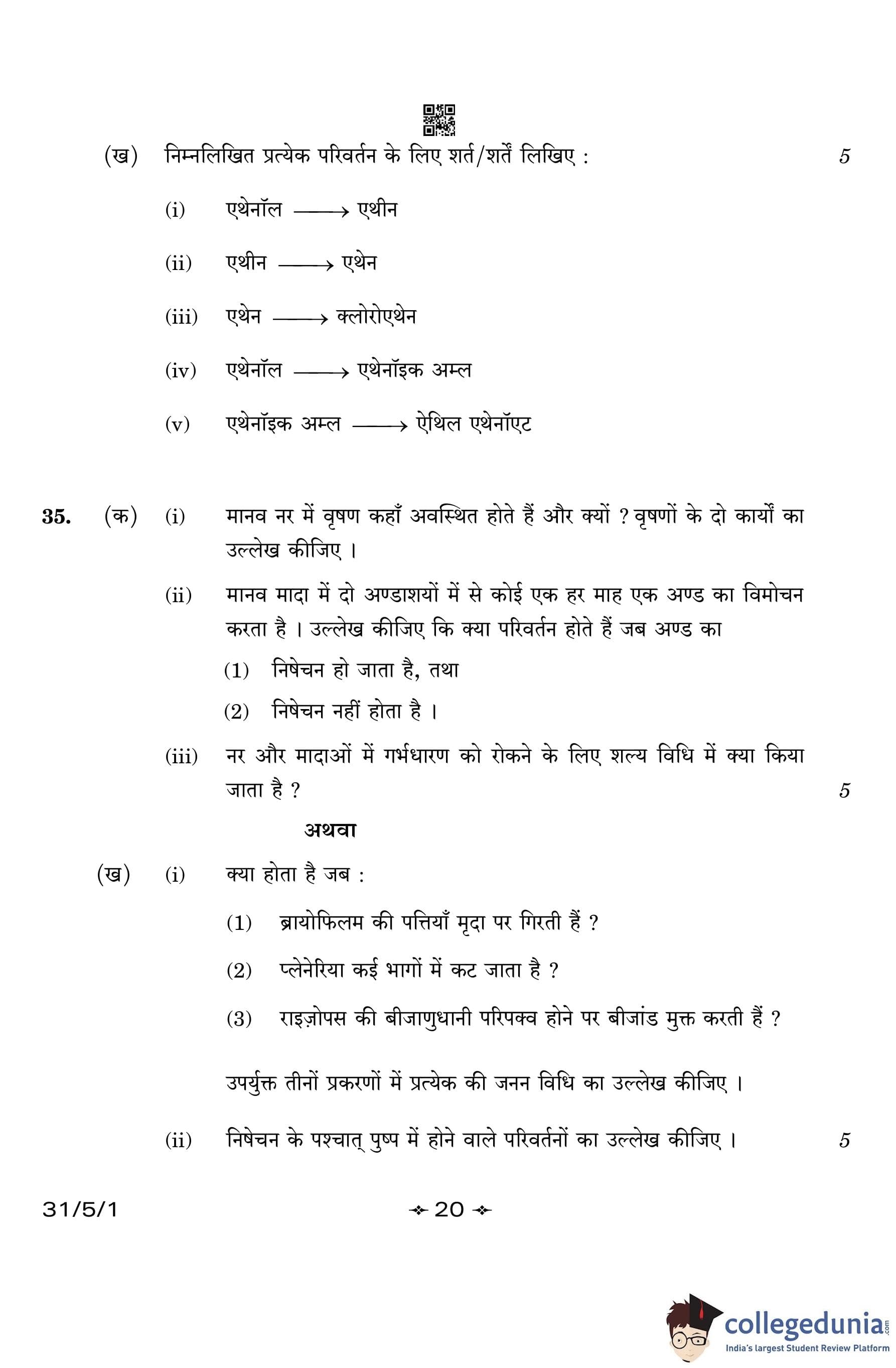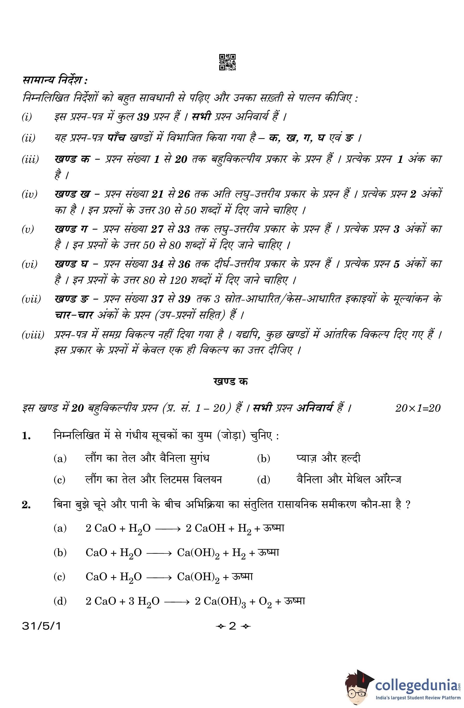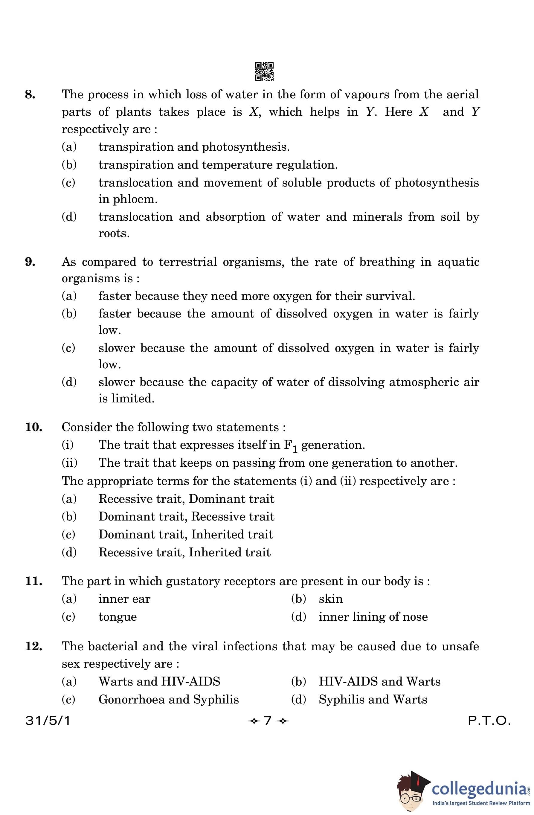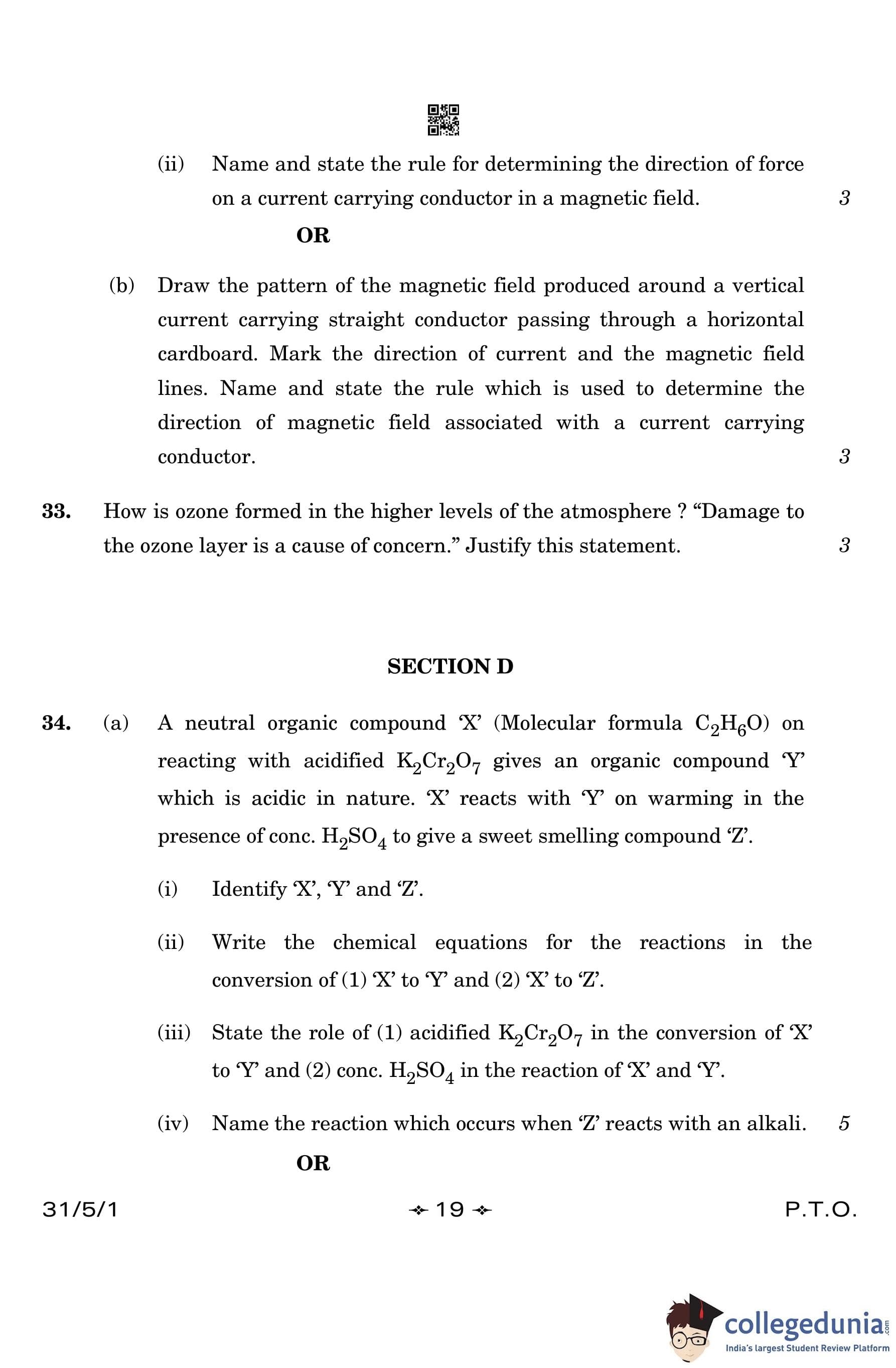CBSE Class 10 Science (Set 1- 31/5/1) Question Paper 2023 with Answer Key