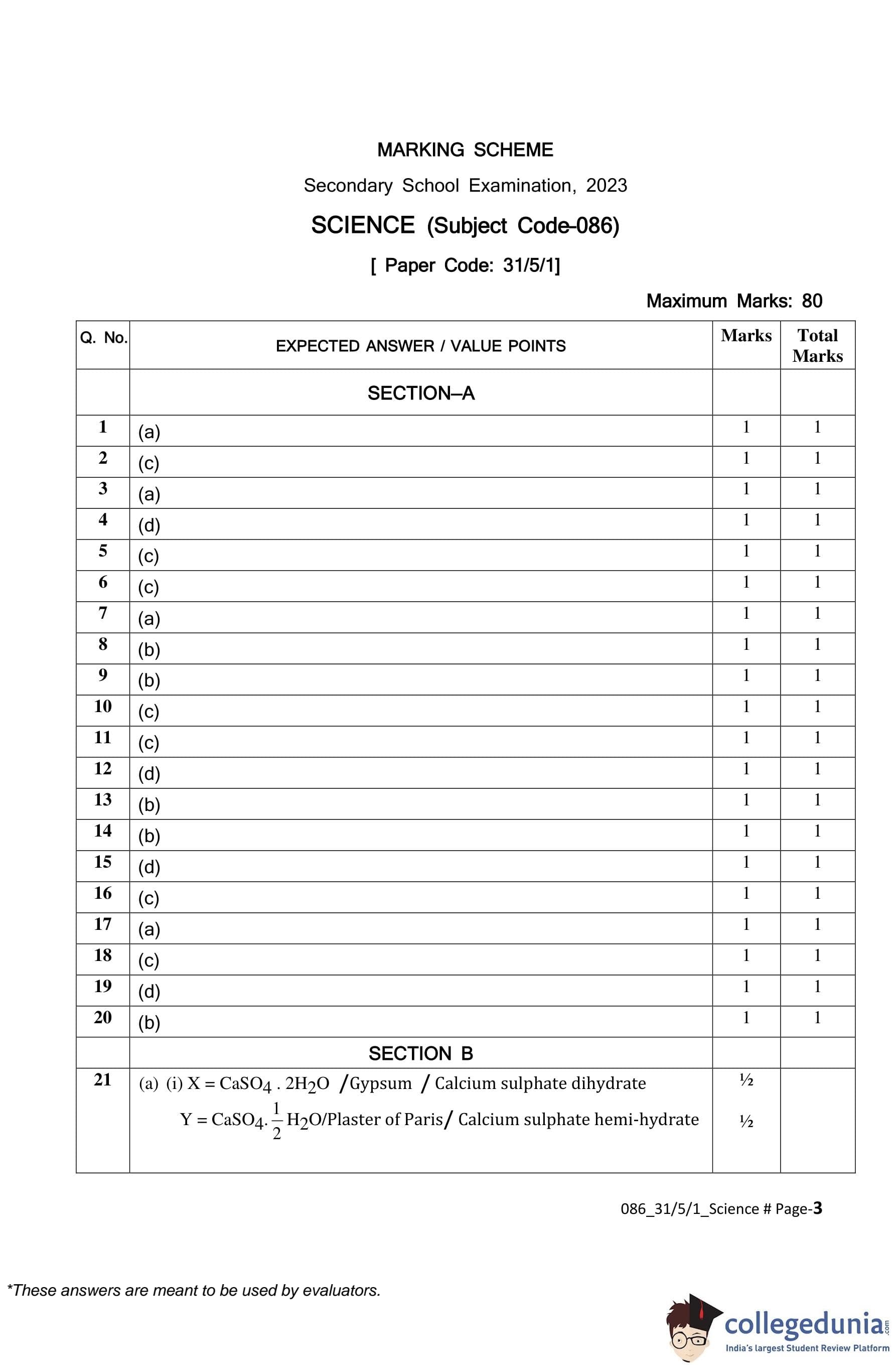 | CBSE Class 10 Science Question Paper 2023 PDF | CBSE Class 10 Science Answer Key 2023 PDF | Detailed Solutions |