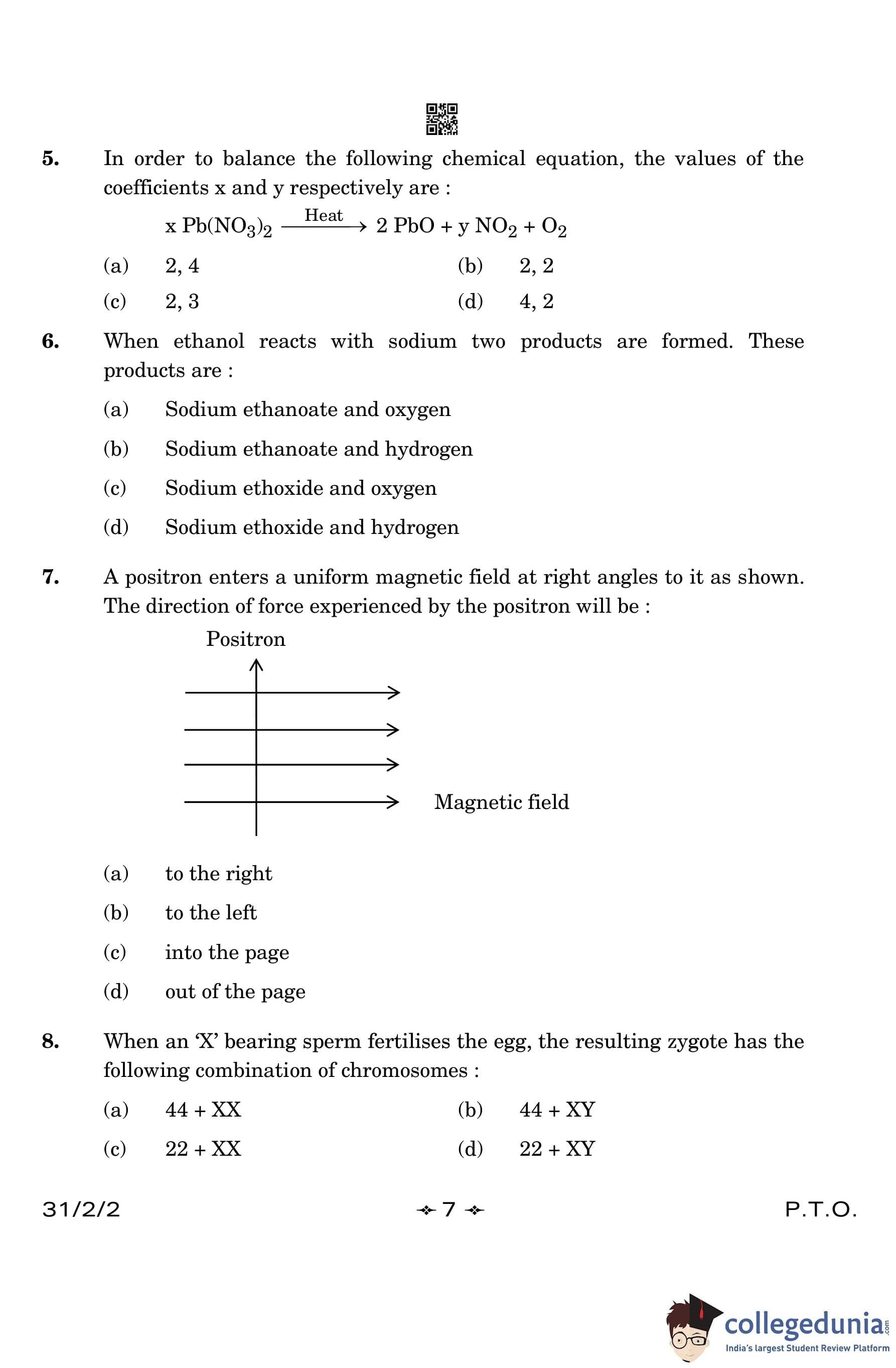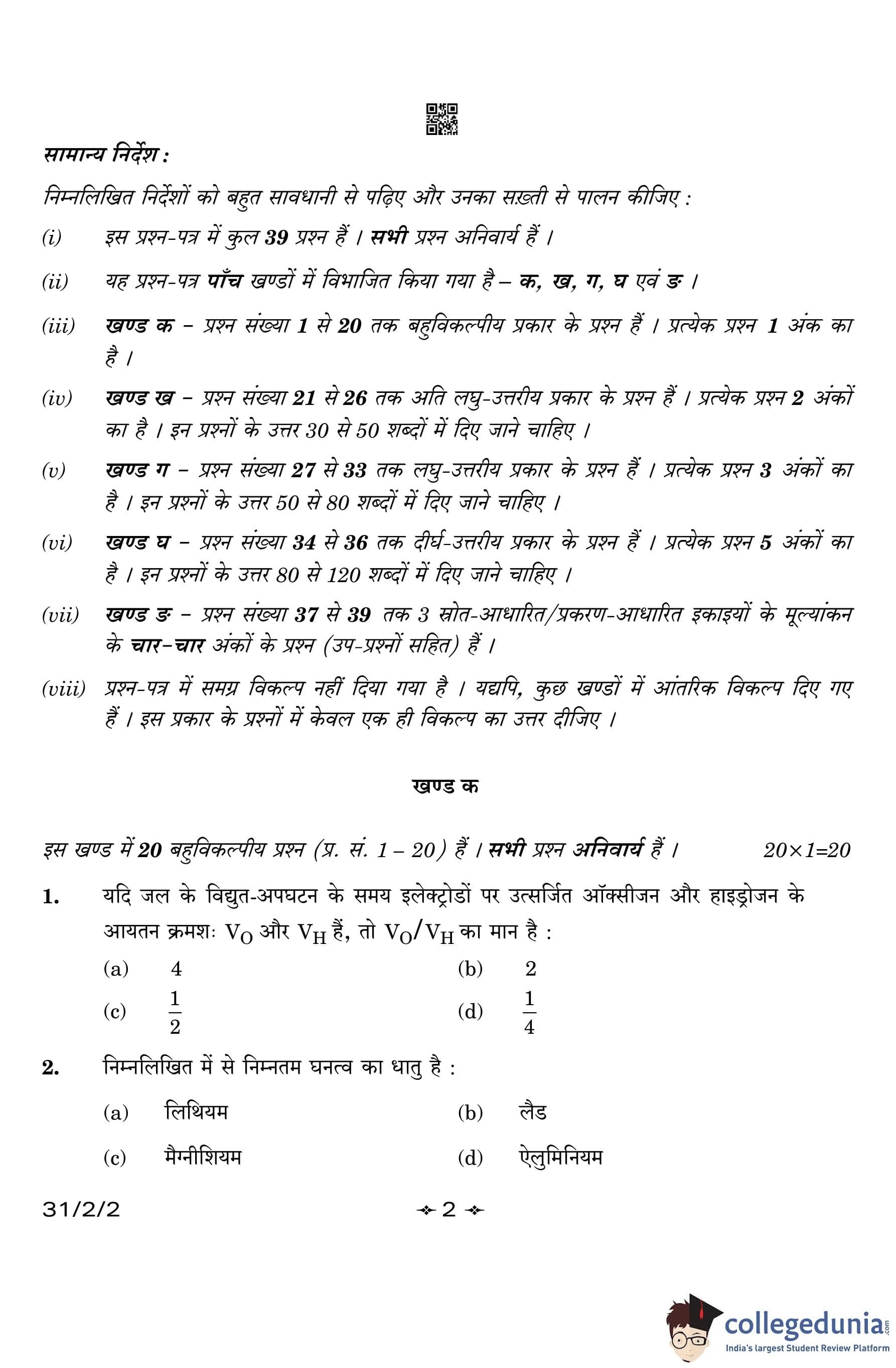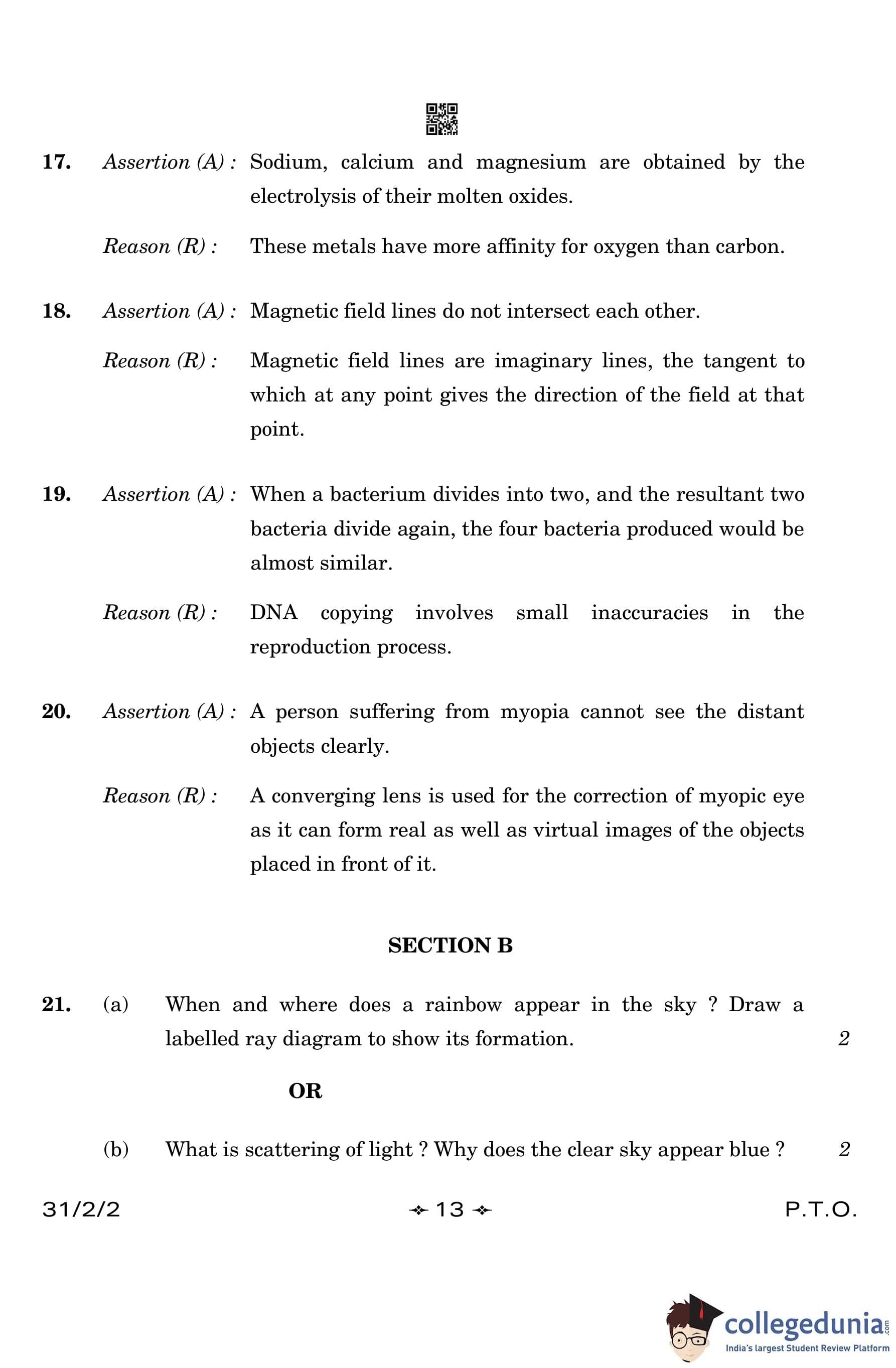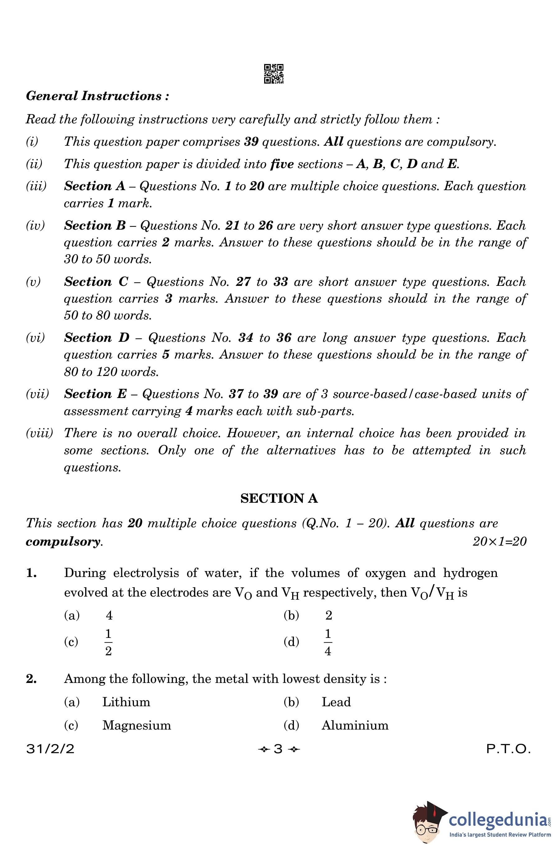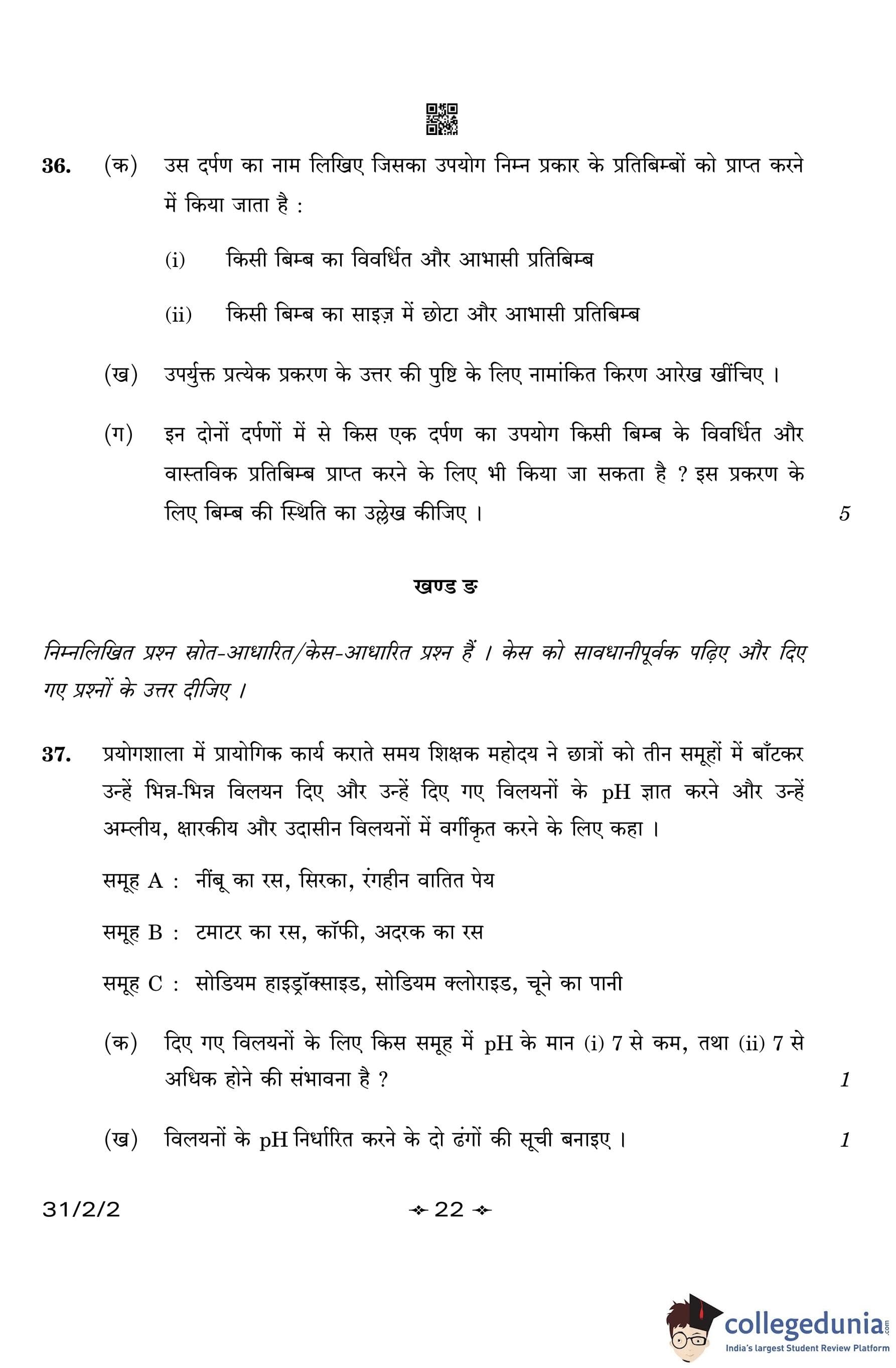 CBSE Class 10 Science Question Paper 2023 with Answer Key (Set 2- 31/2/2) is available for download here. The exam was conducted by the Central Board of Secondary Education on March 4, 2023 in the Morning Session 10:30 AM to 1:30 PM. The medium of paper was English & Hindi. According to initial student reaction, the CBSE Class 12 Science Paper was rated as Moderate in difficulty level. The question paper comprised a total of 39 questions divided among 5 sections.