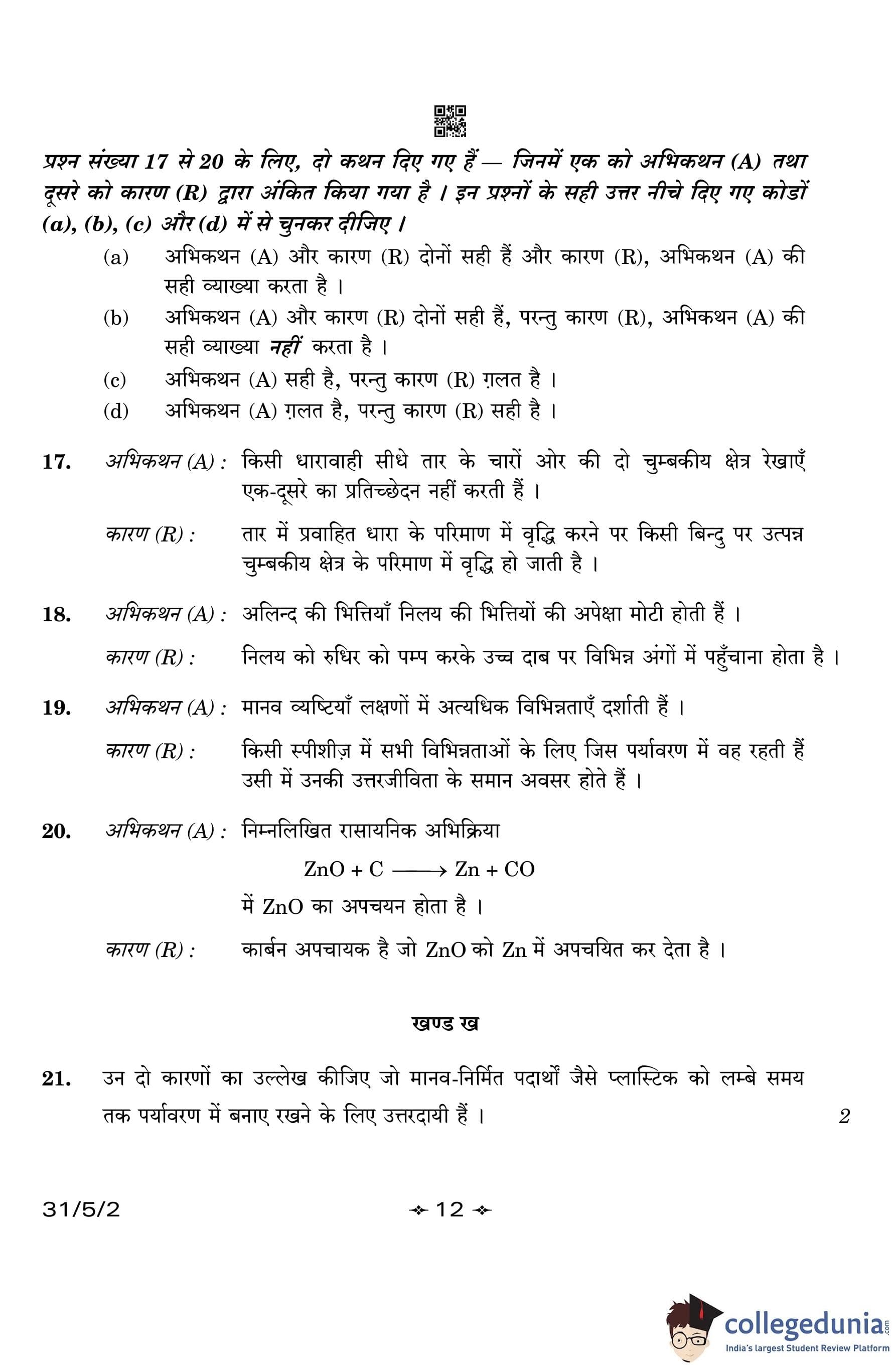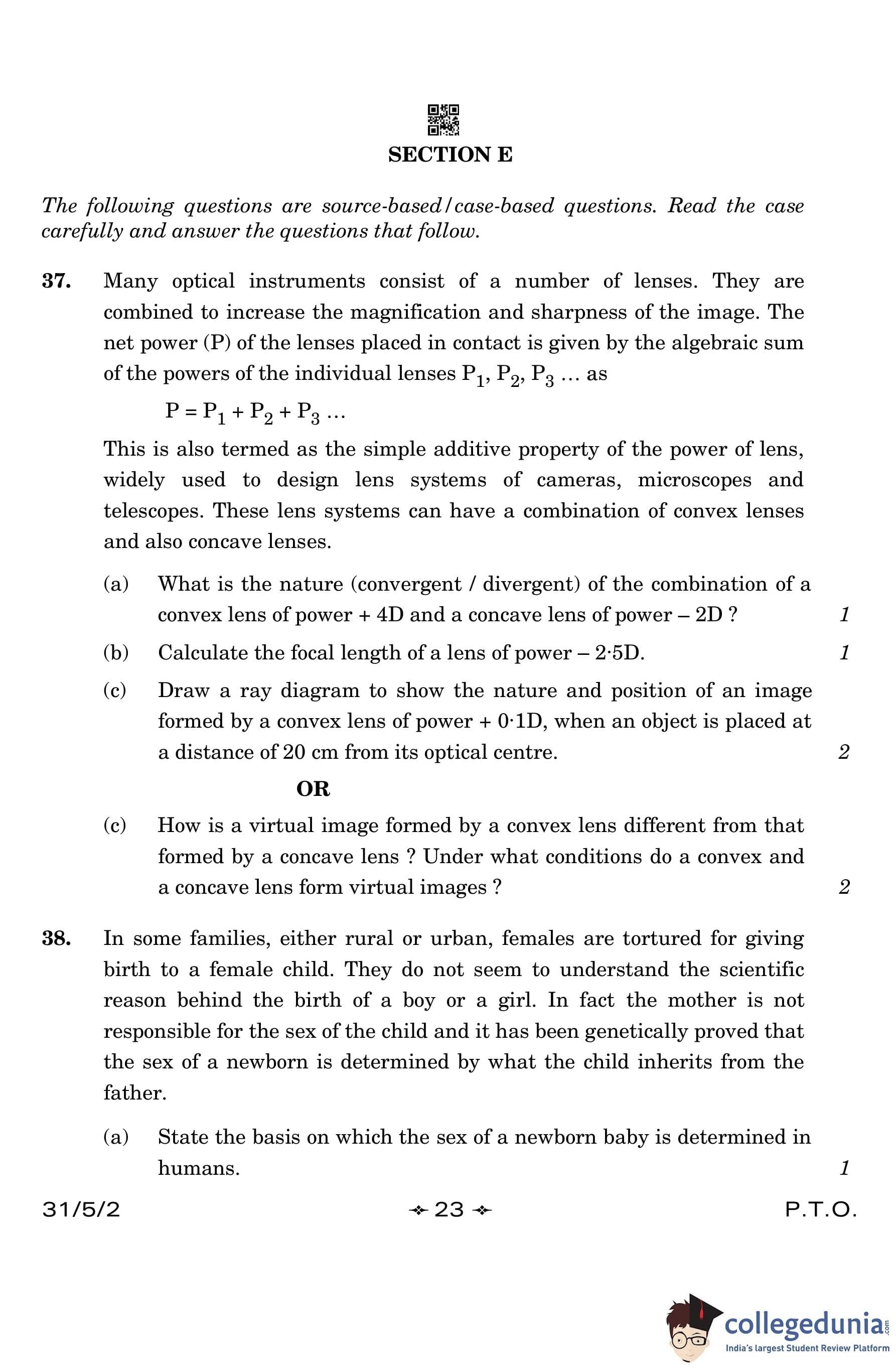 CBSE Class 10 Science (Set 2- 31/5/2) Question Paper 2023 with Answer Key