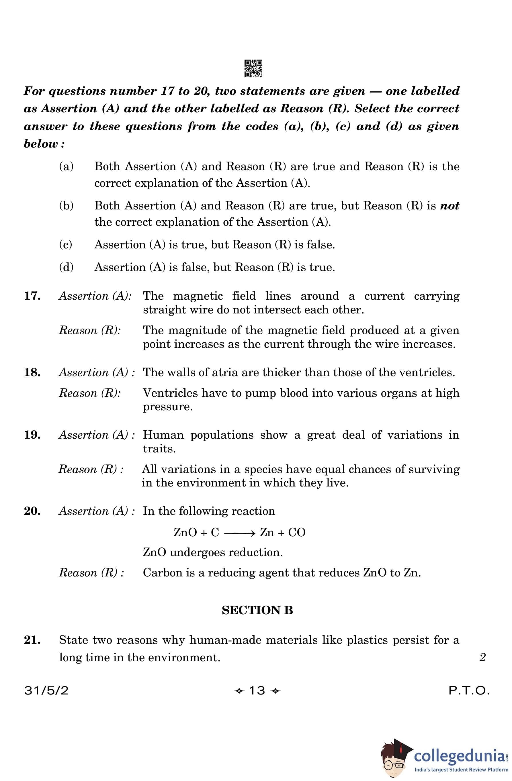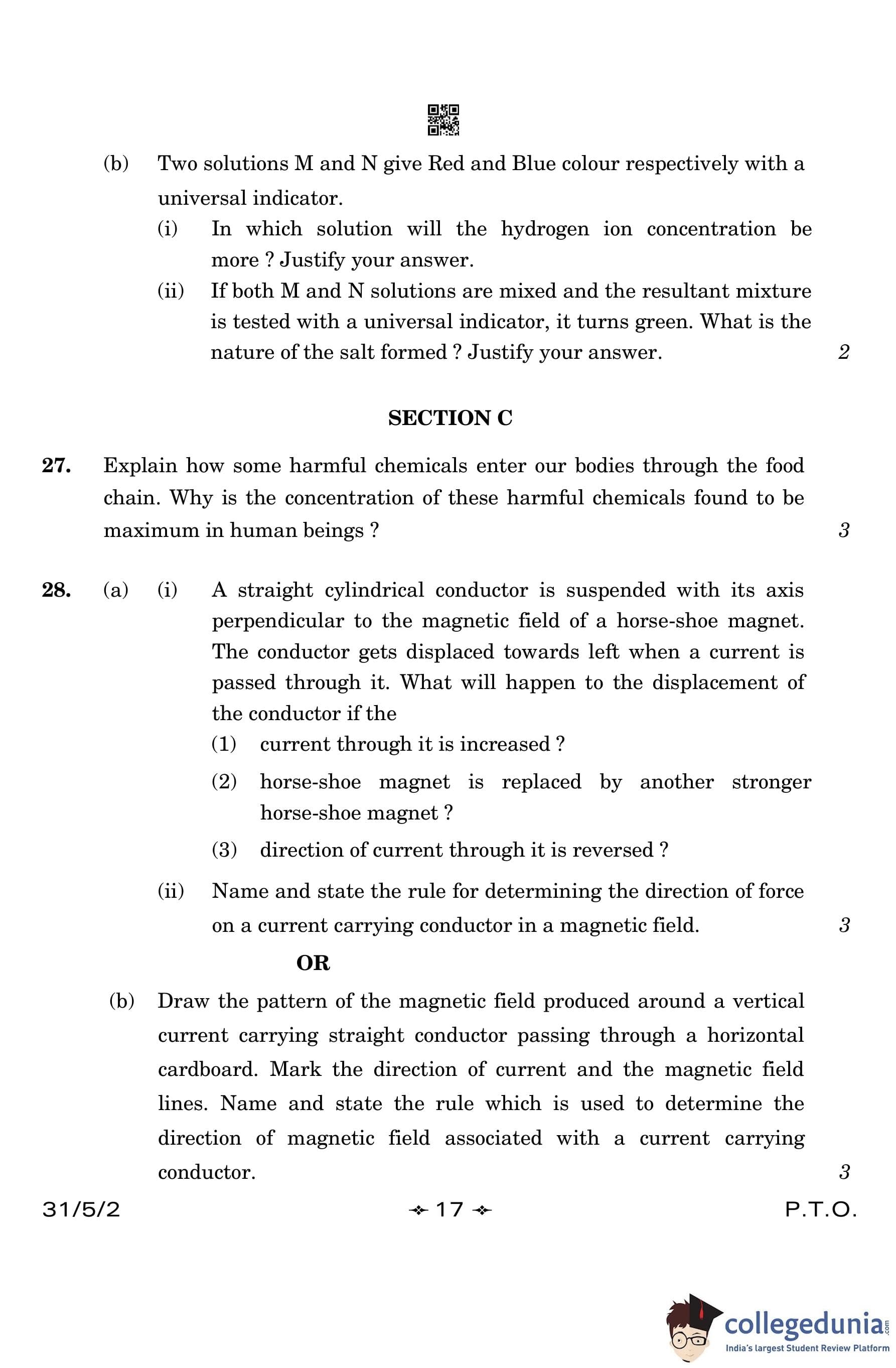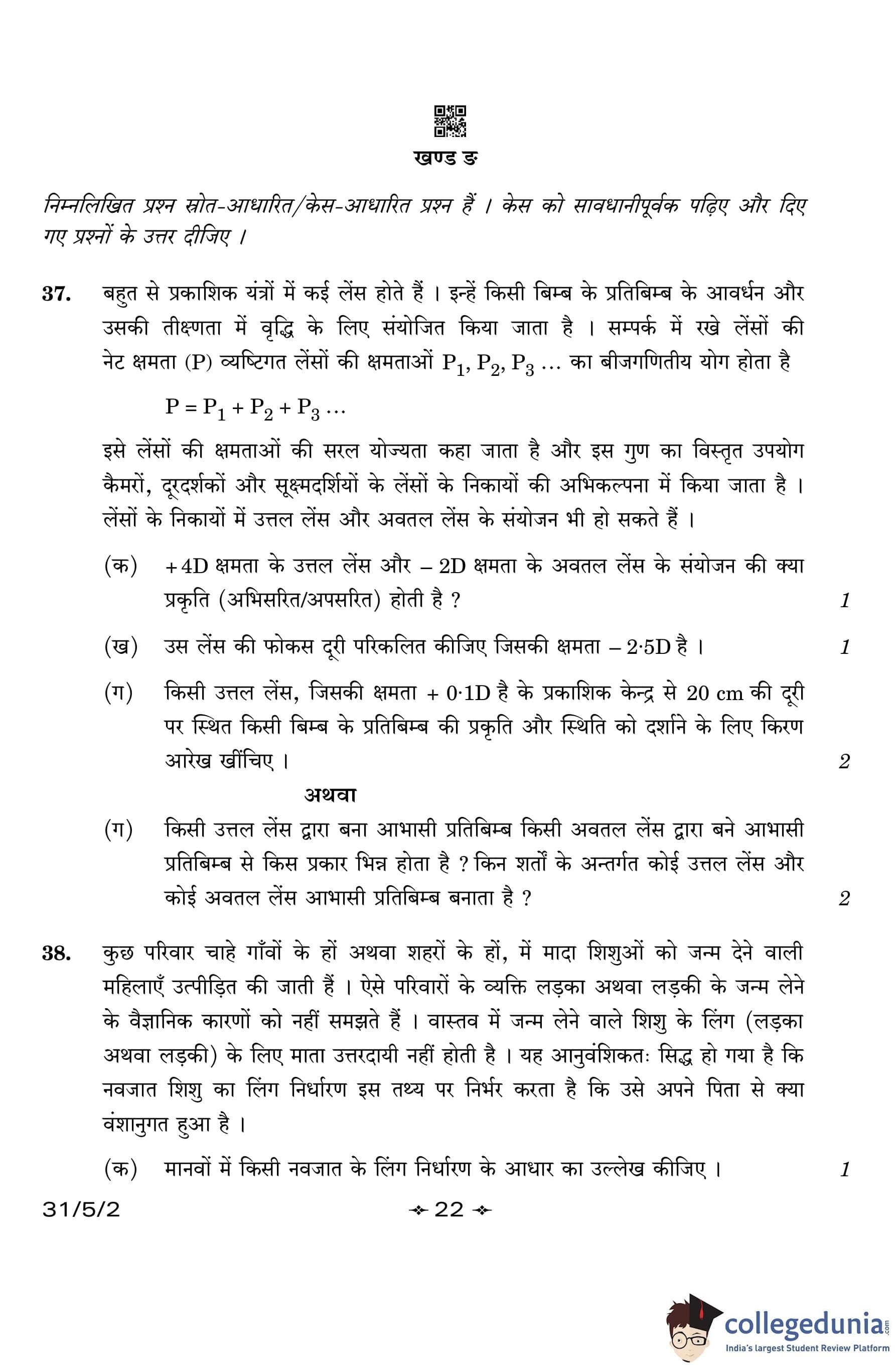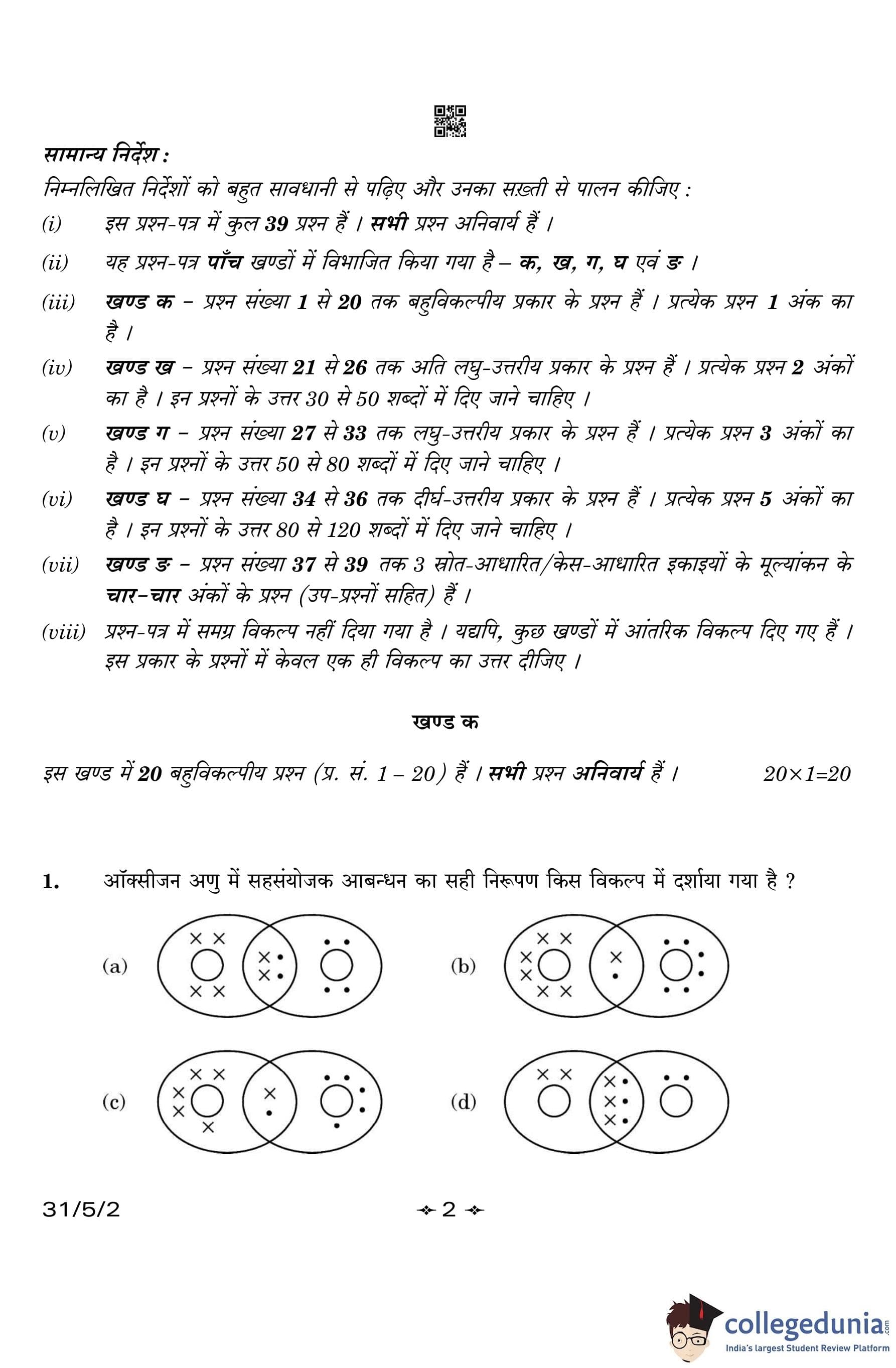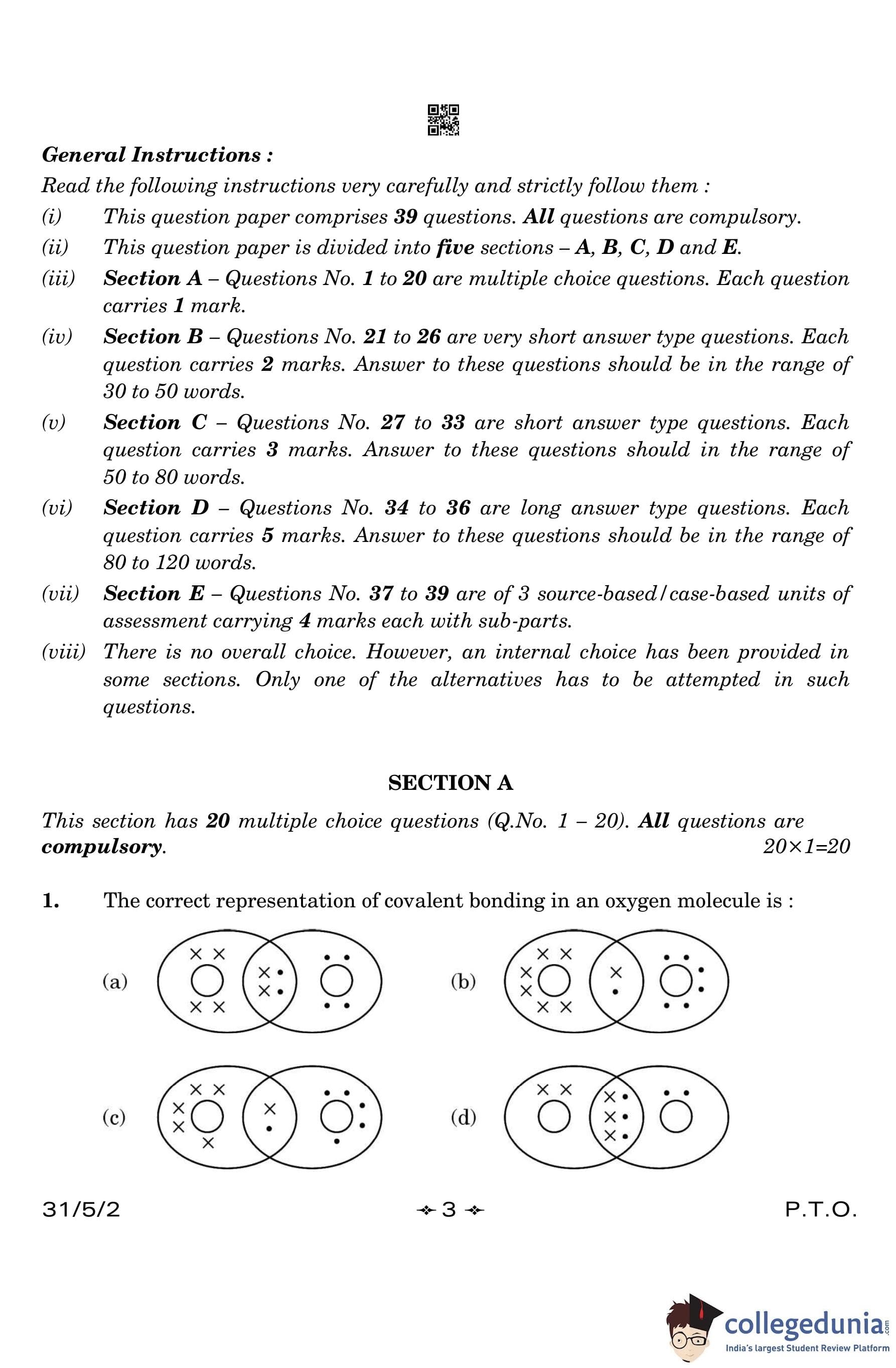 CBSE Class 10 Science Question Paper 2023 with Answer Key (Set 2- 31/5/2) is available for download here. The exam was conducted by the Central Board of Secondary Education on March 4, 2023 in the Morning Session 10:30 AM to 1:30 PM. The medium of paper was English & Hindi. According to initial student reaction, the CBSE Class 12 Science Paper was rated as Moderate in difficulty level. The question paper comprised a total of 39 questions divided among 5 sections.