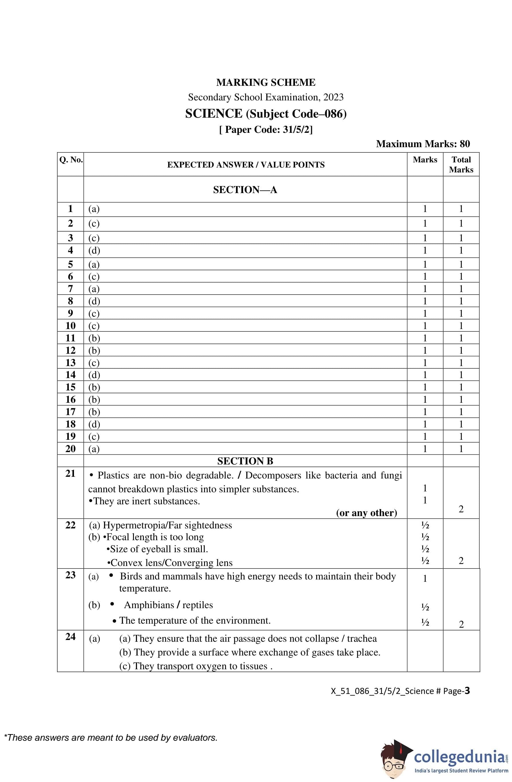 | CBSE Class 10 Science Question Paper 2023 PDF | CBSE Class 10 Science Answer Key 2023 PDF | Detailed Solutions |