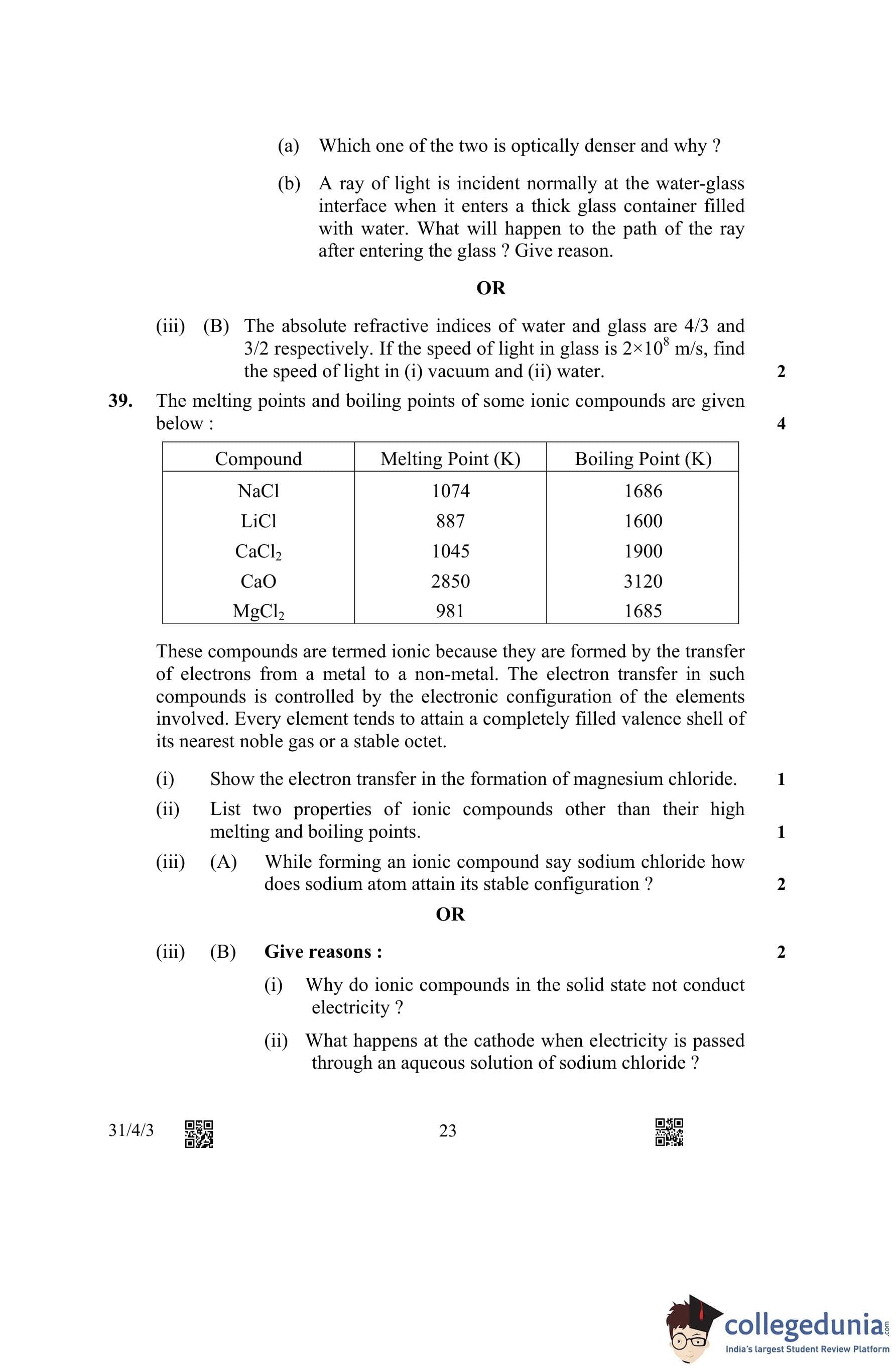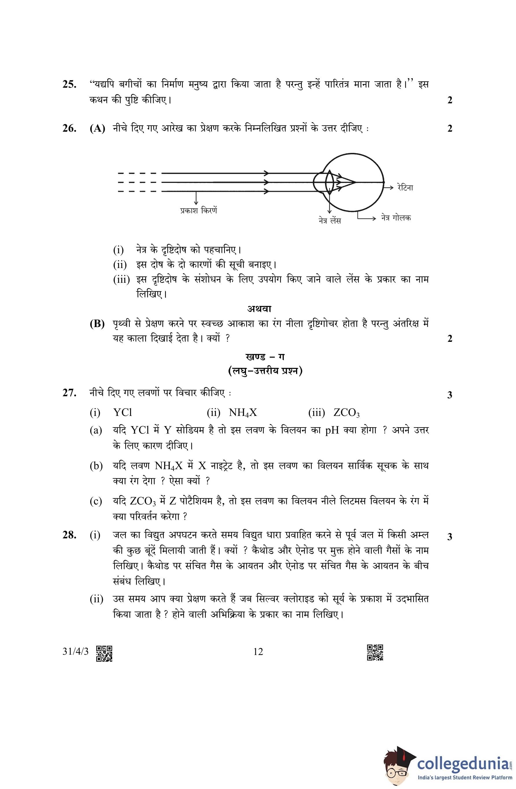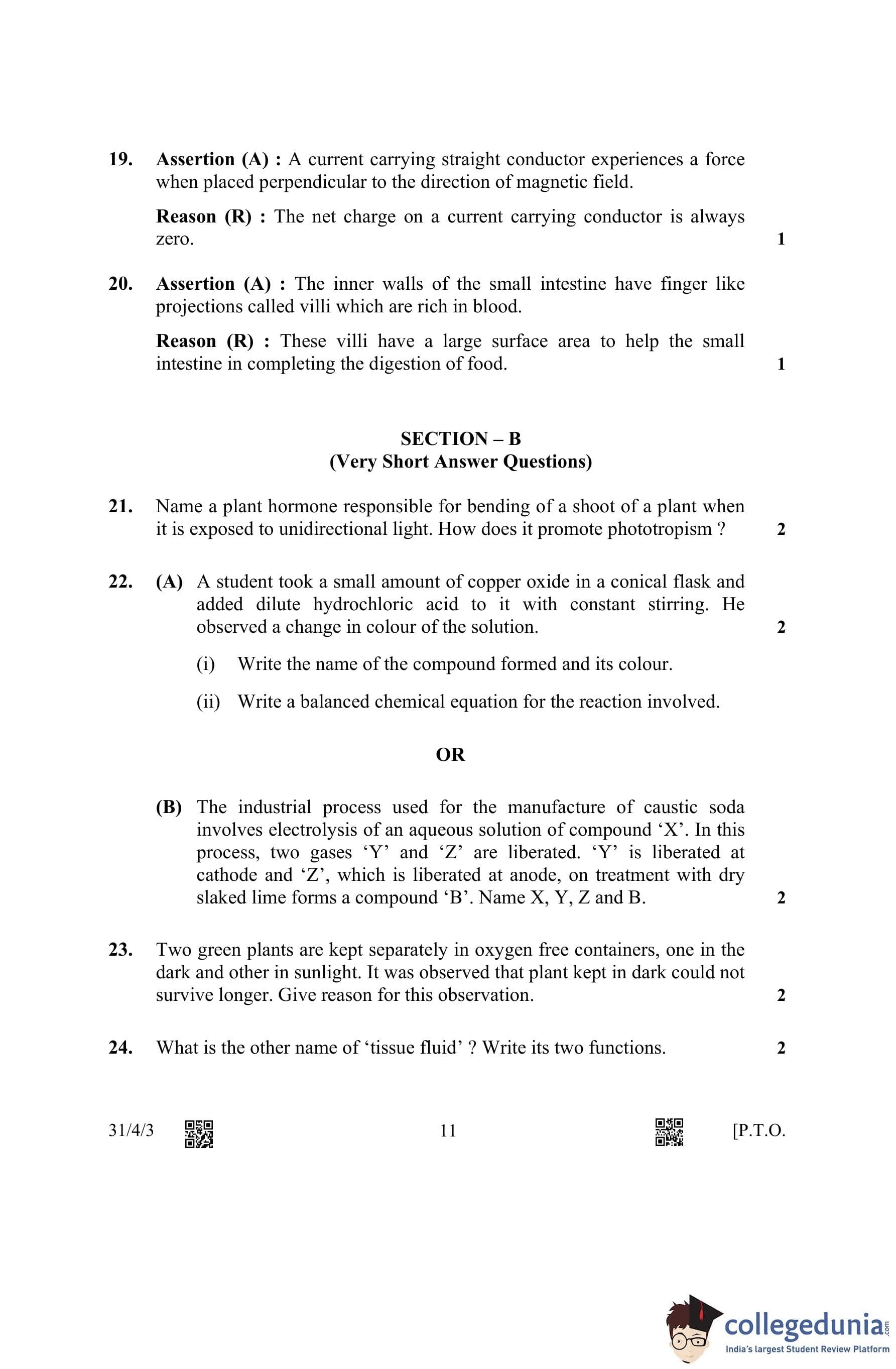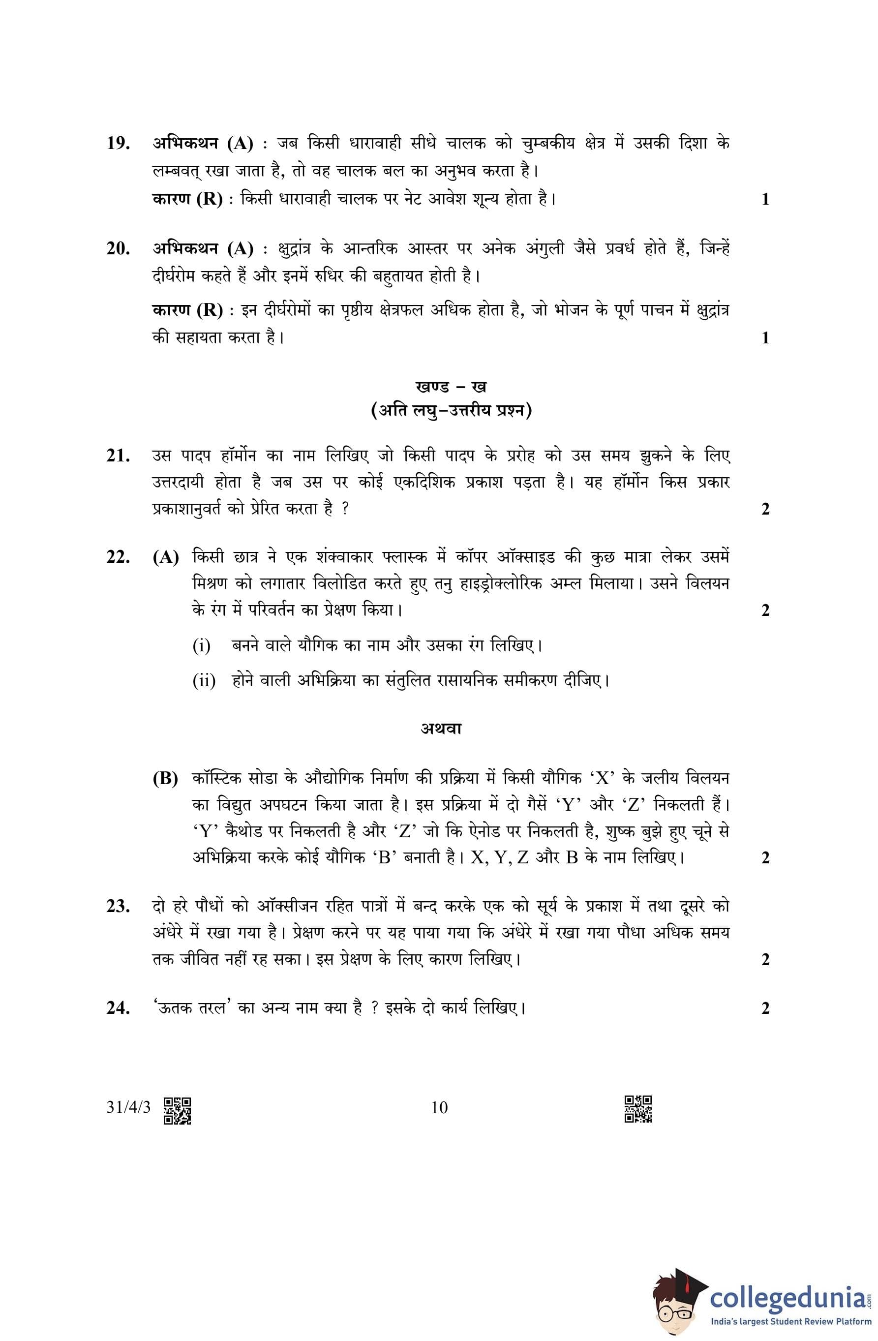 CBSE Class 10 Science (Set 3- 31/4/3) Question Paper 2023 with Answer Key